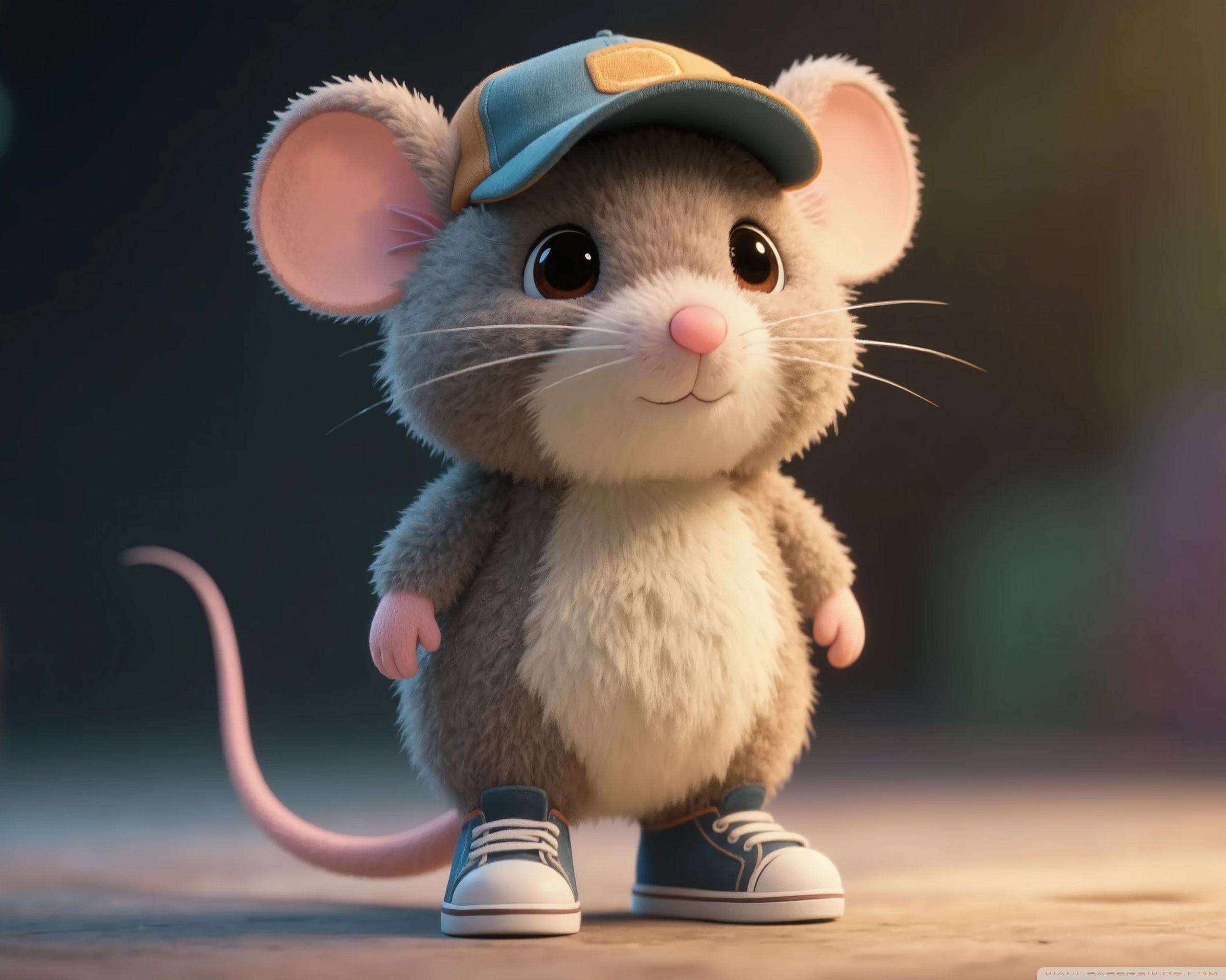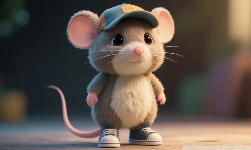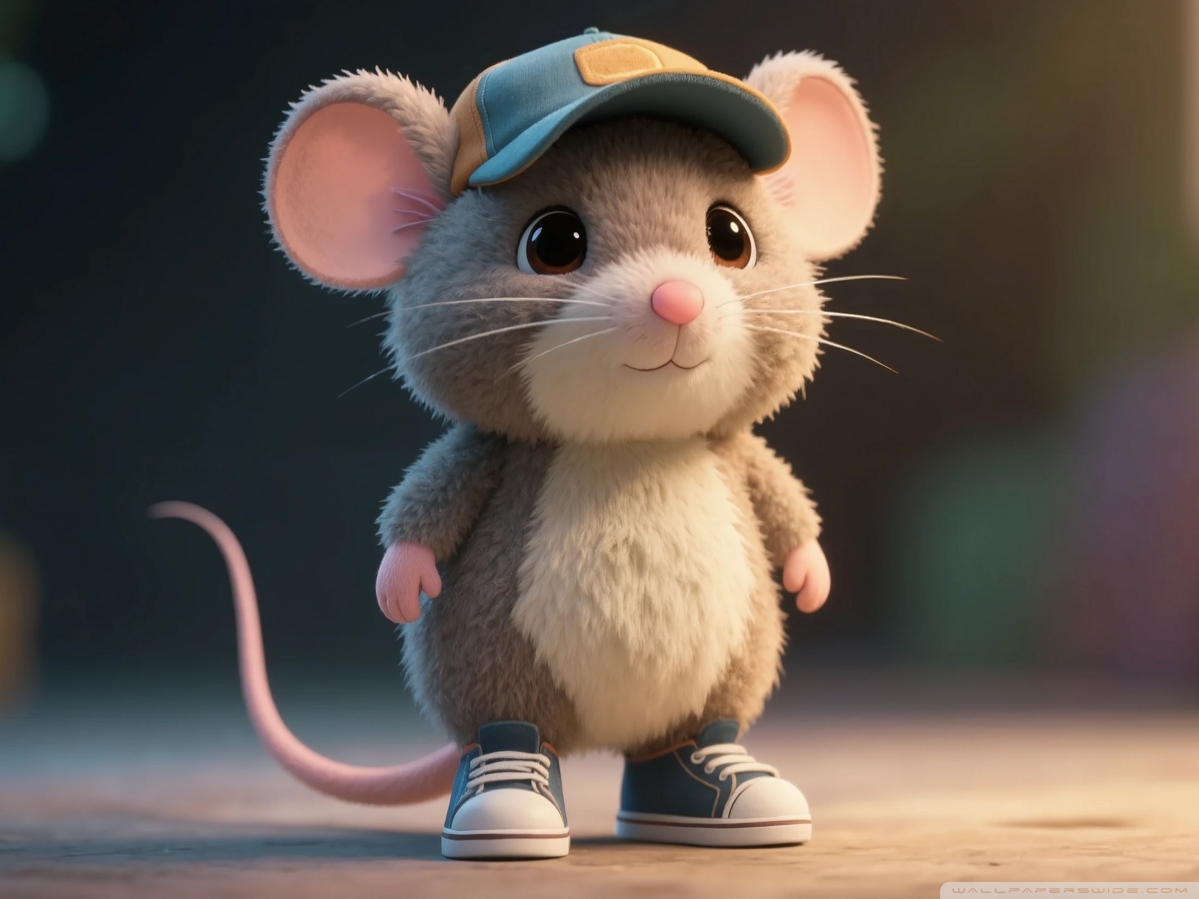Download 3D Mouse with Cap and Sneakers 4K UHD Wallpaper