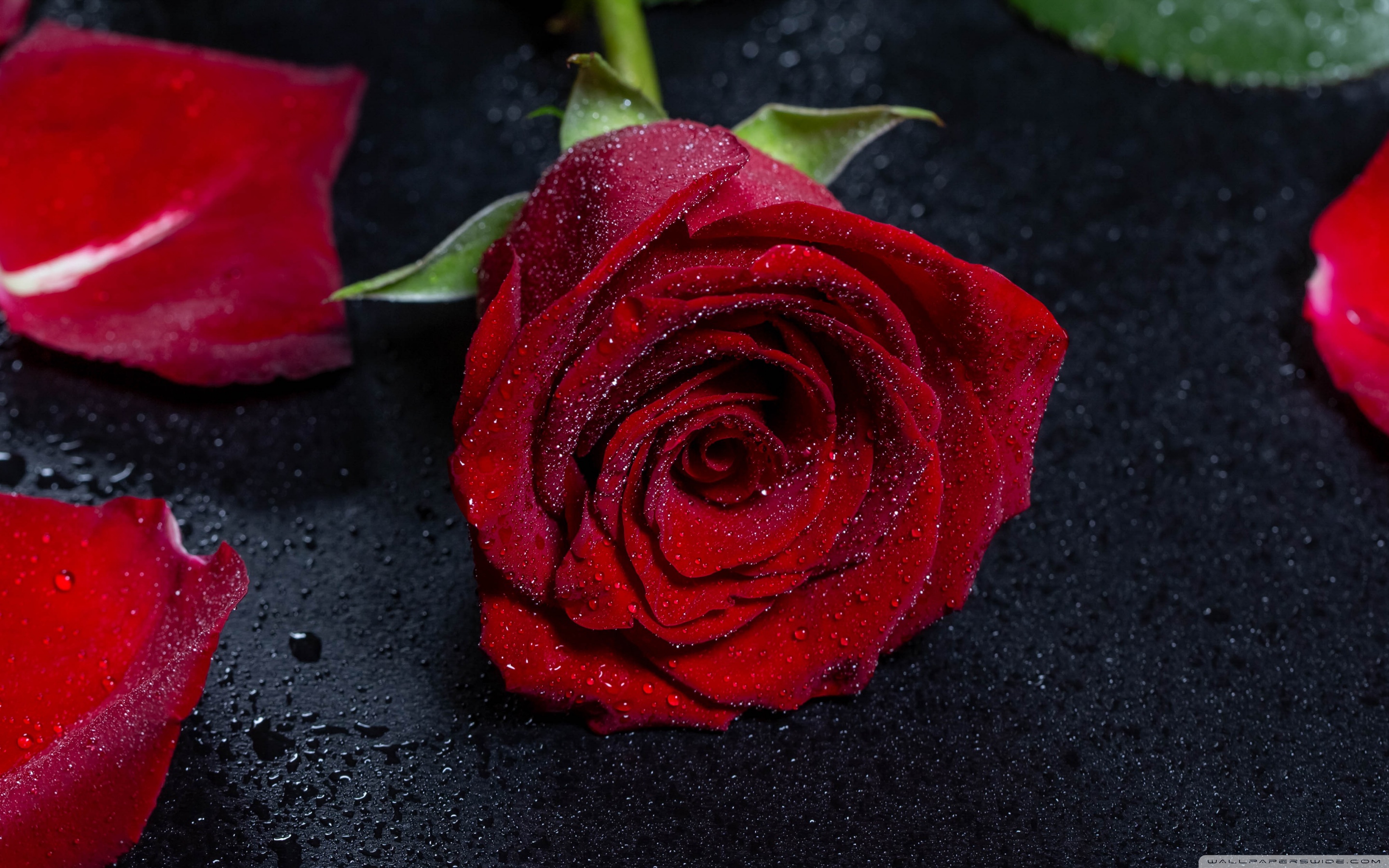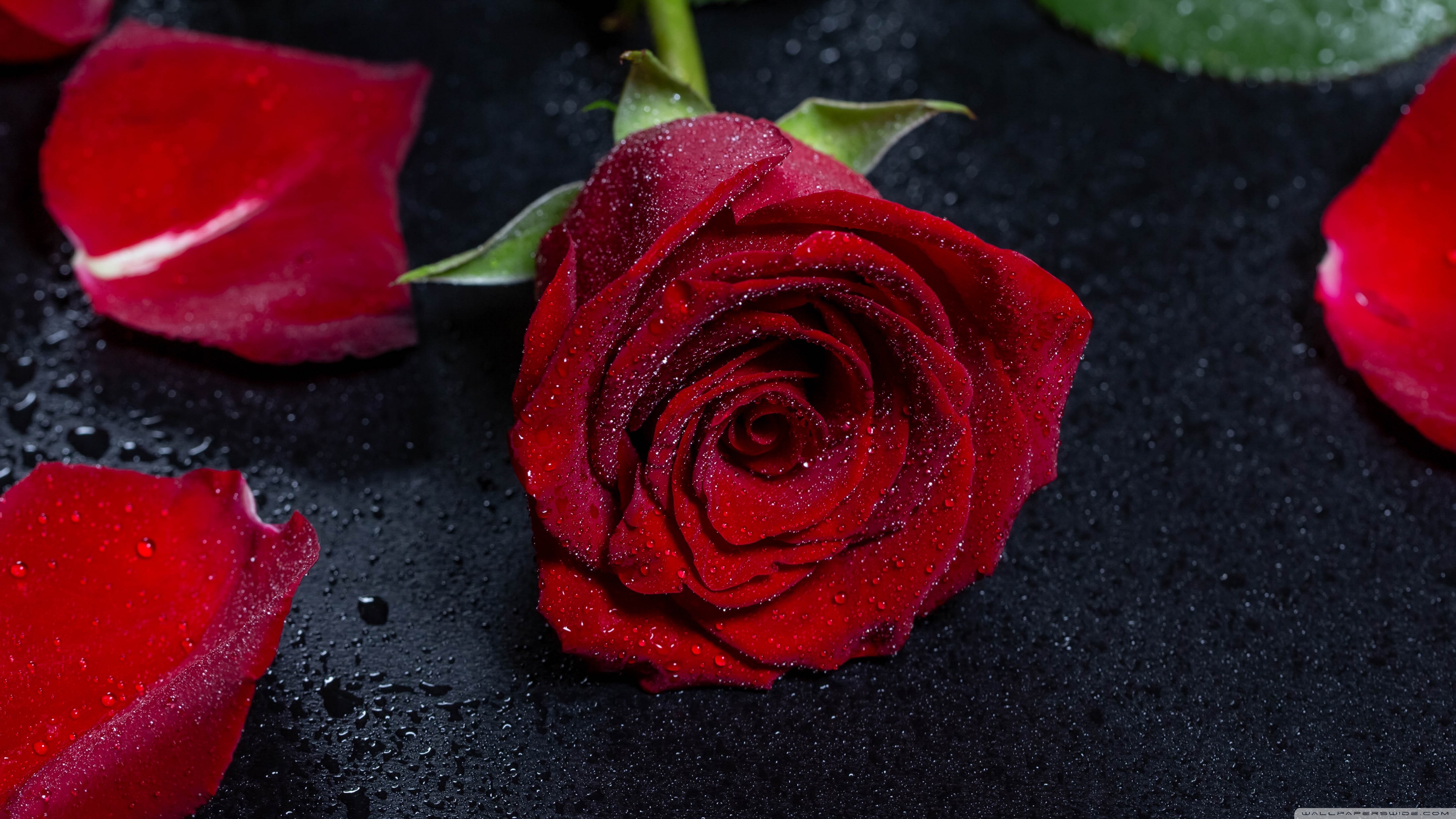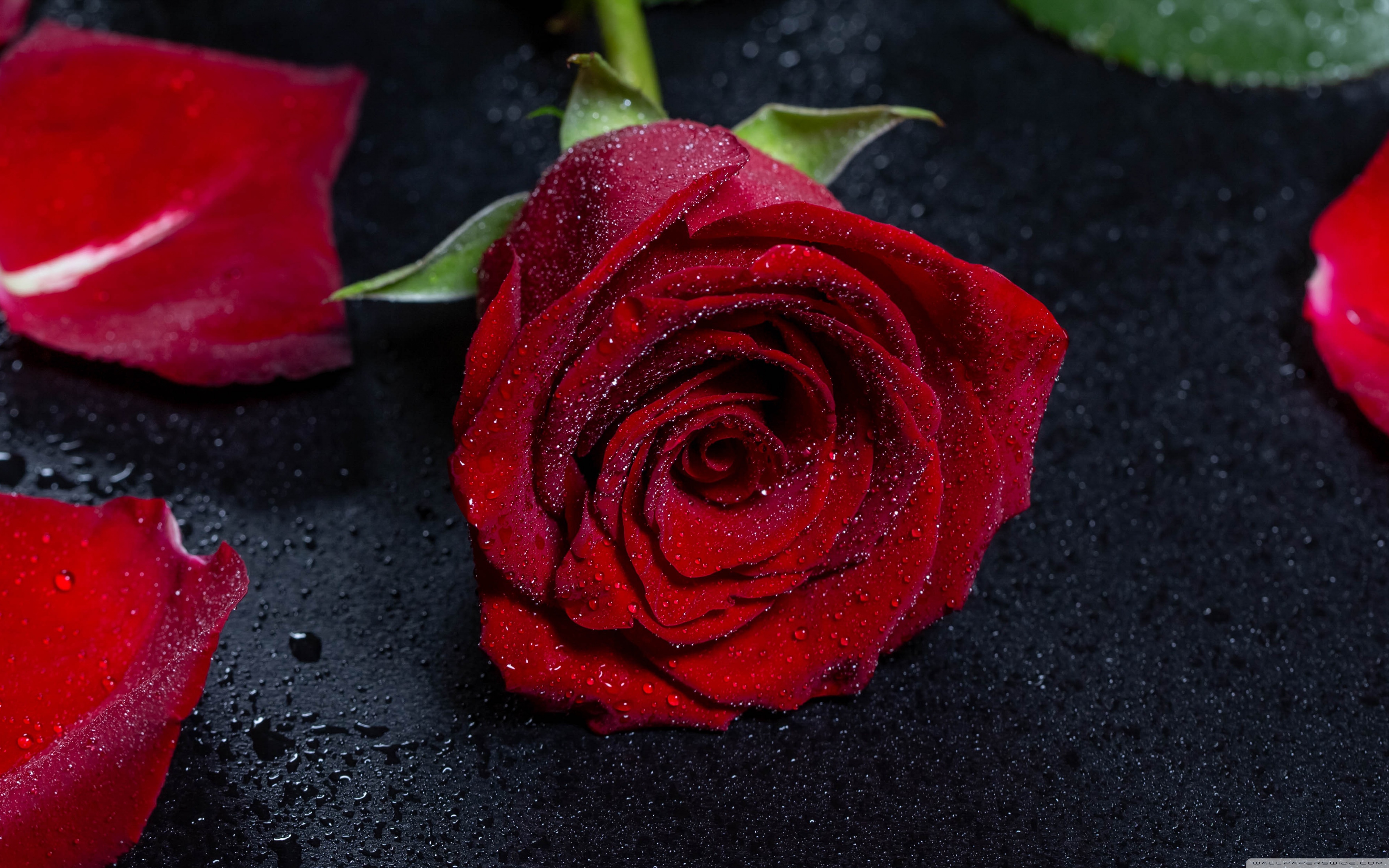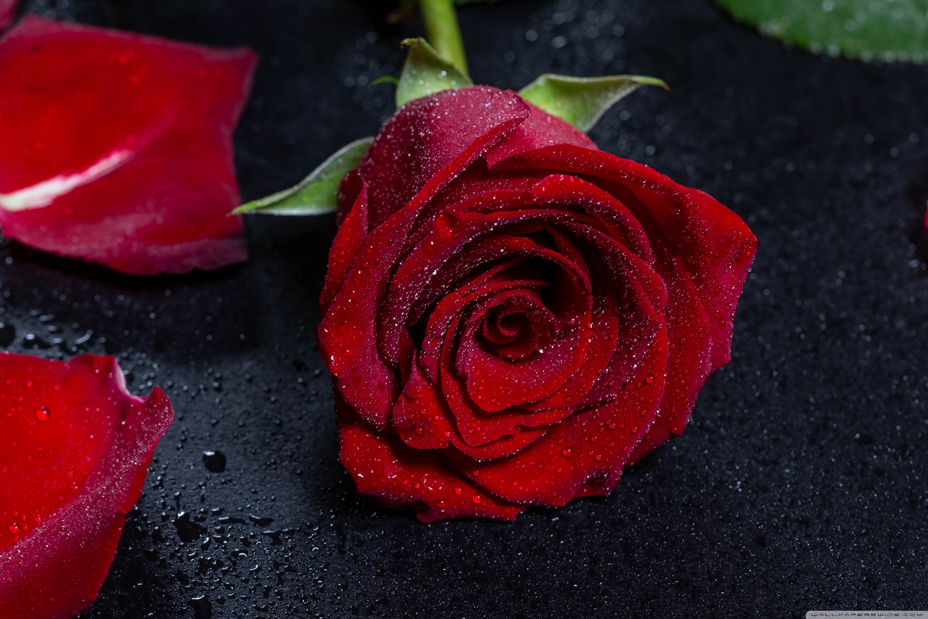 Download A Red Rose Adorned with Water Drops 4K UHD Wallpaper