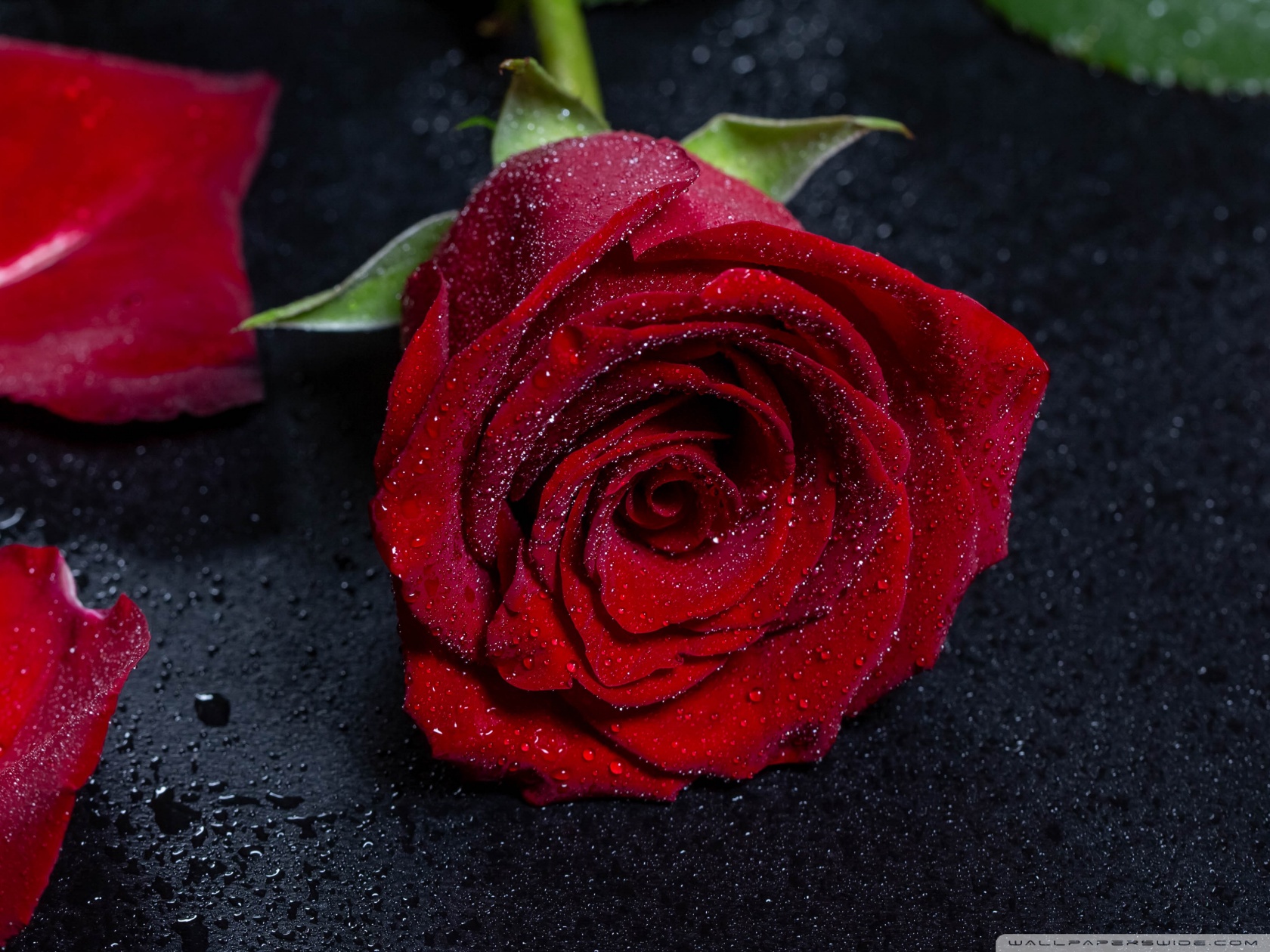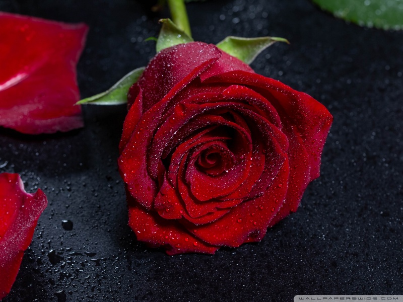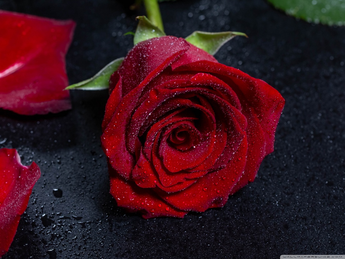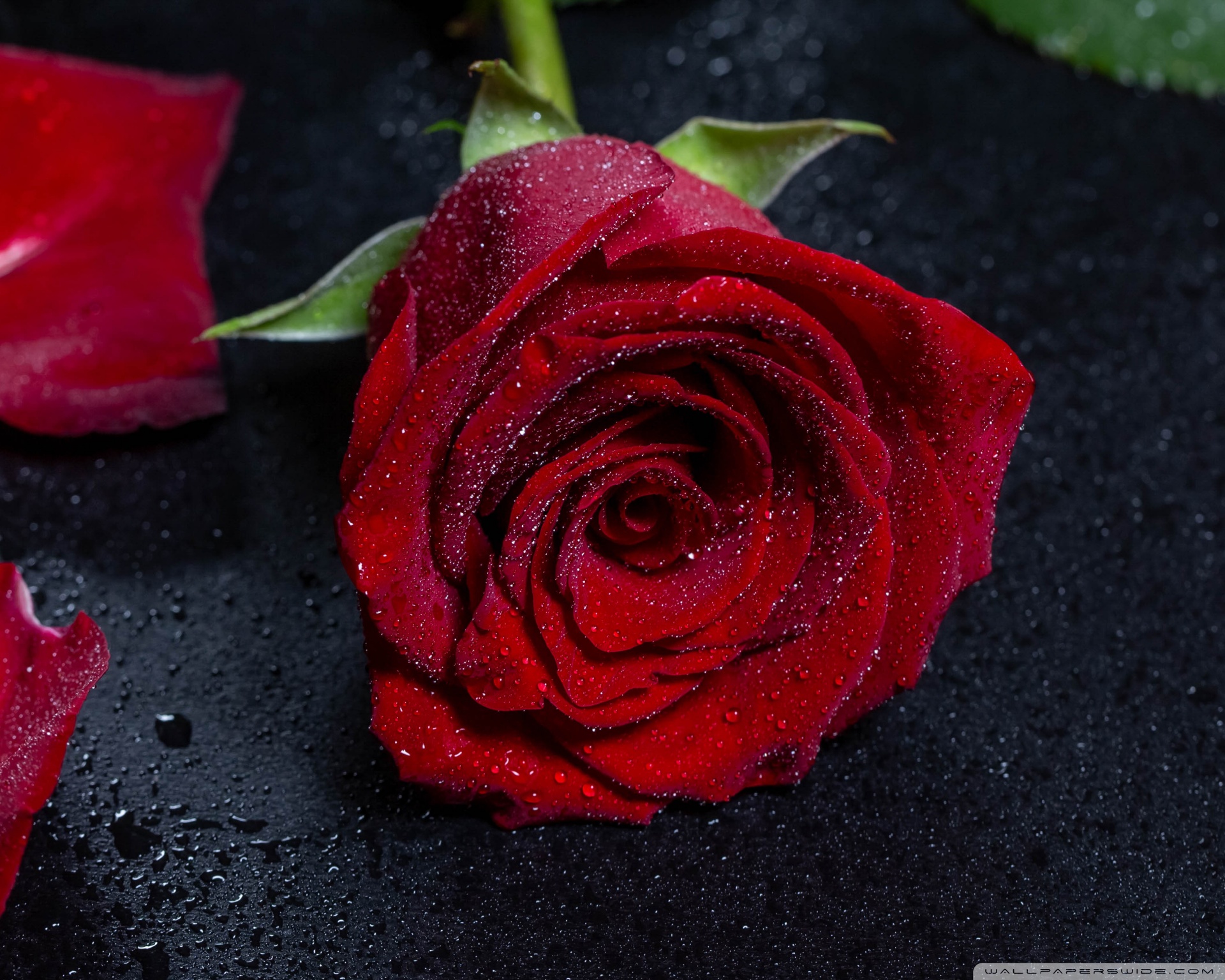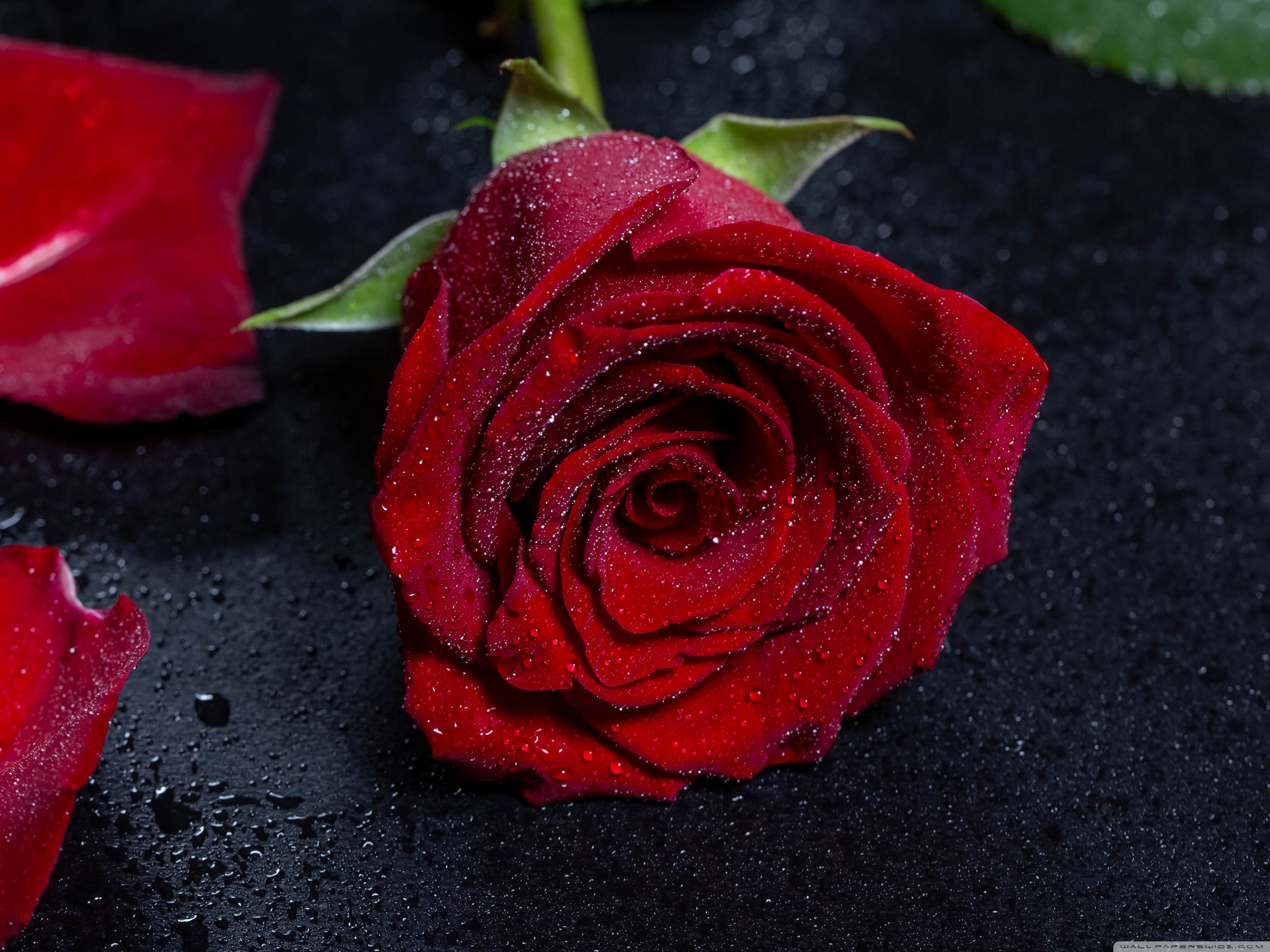 Download A Red Rose Adorned with Water Drops 4K UHD Wallpaper