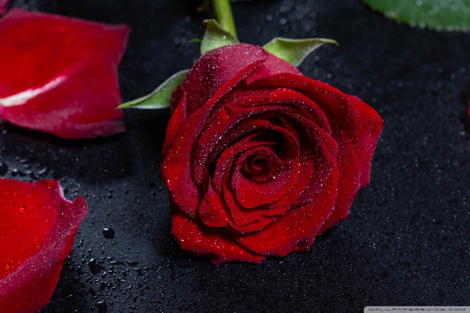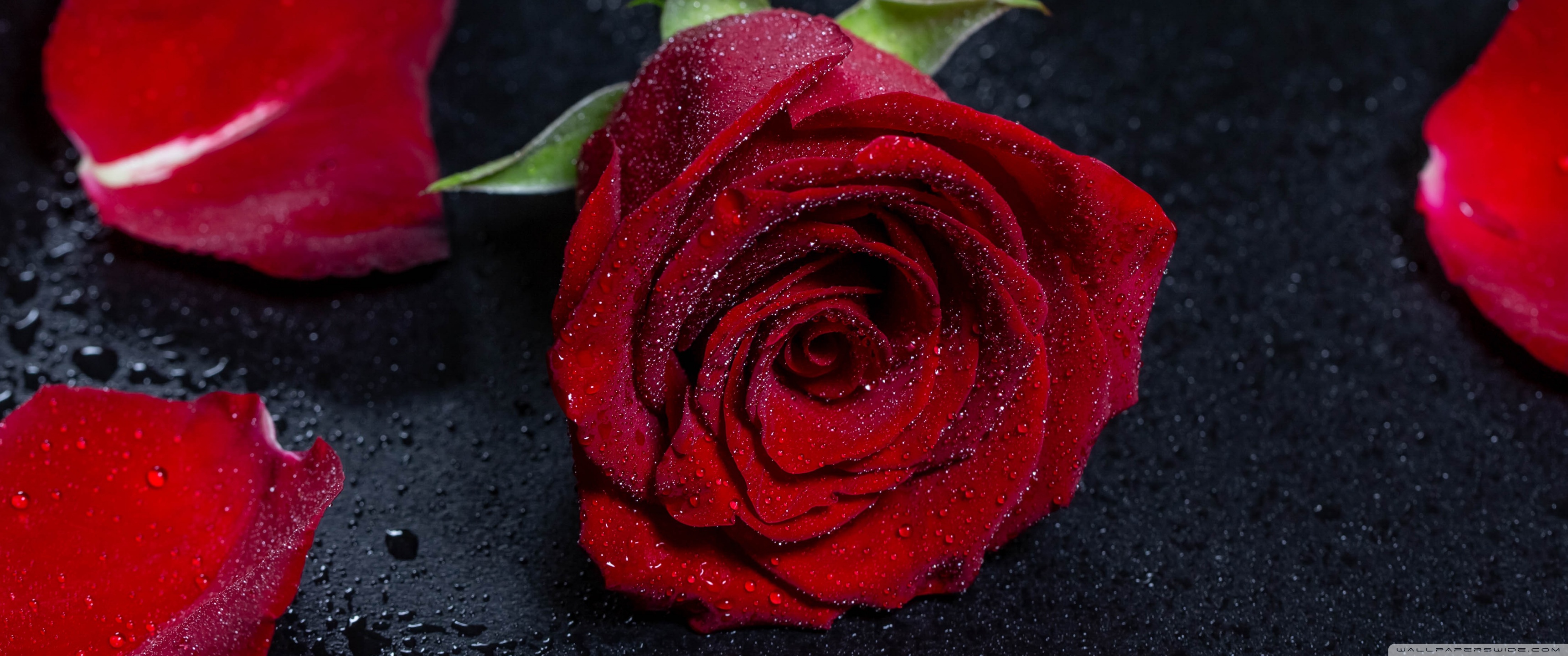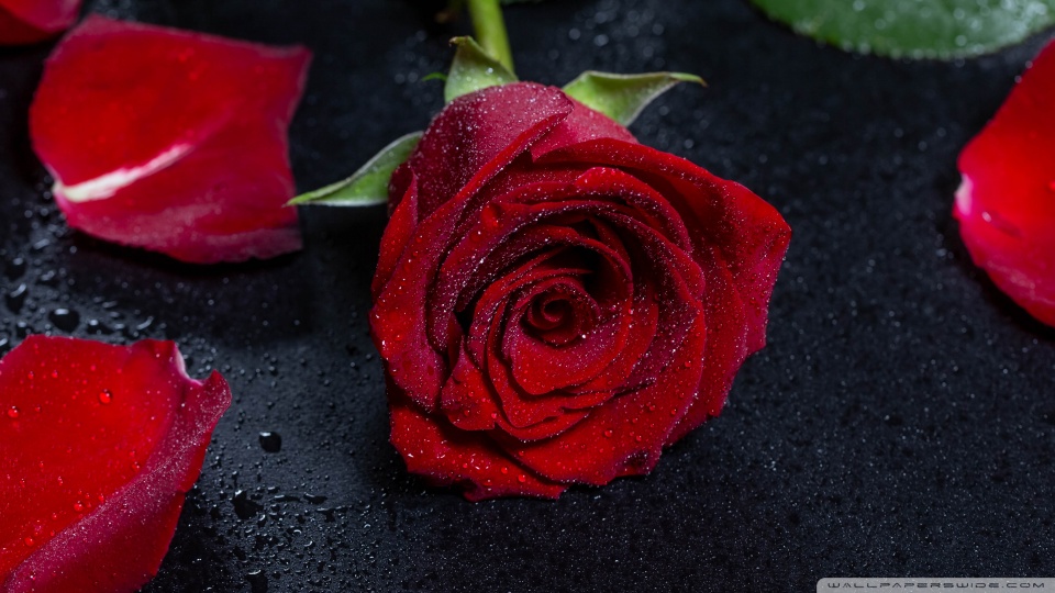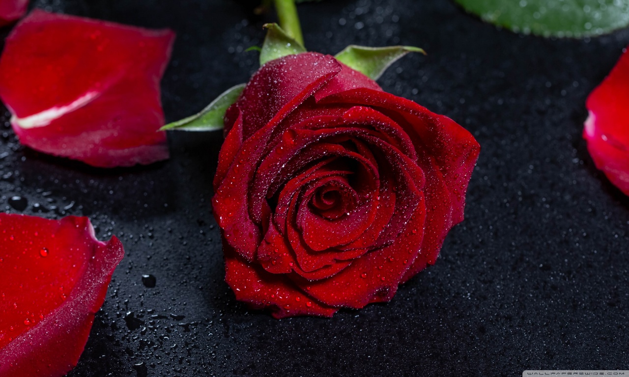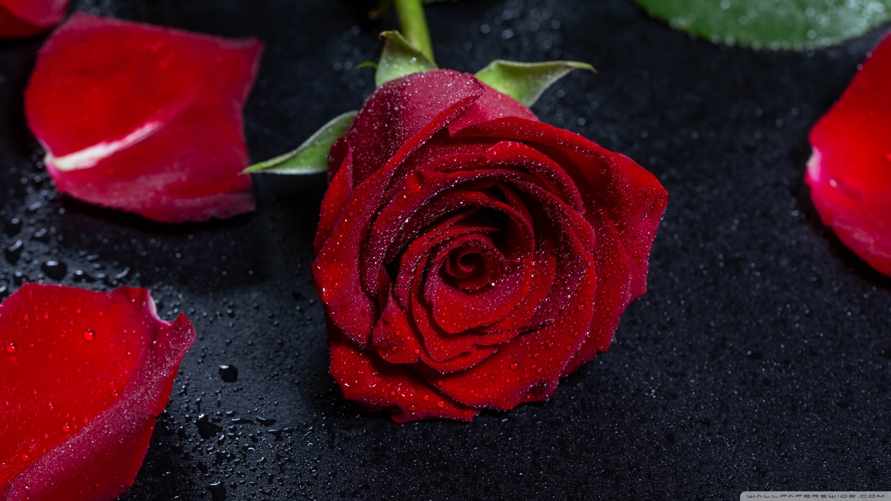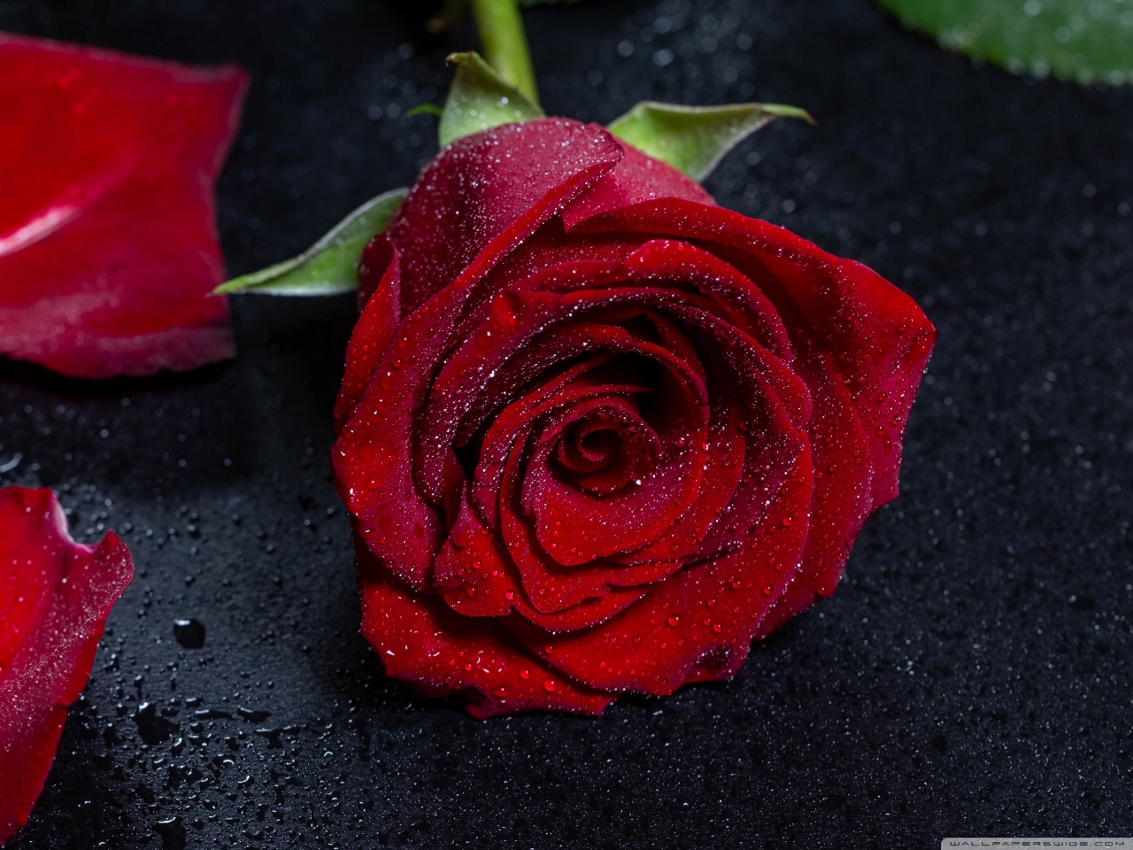 Download A Red Rose Adorned with Water Drops 4K UHD Wallpaper