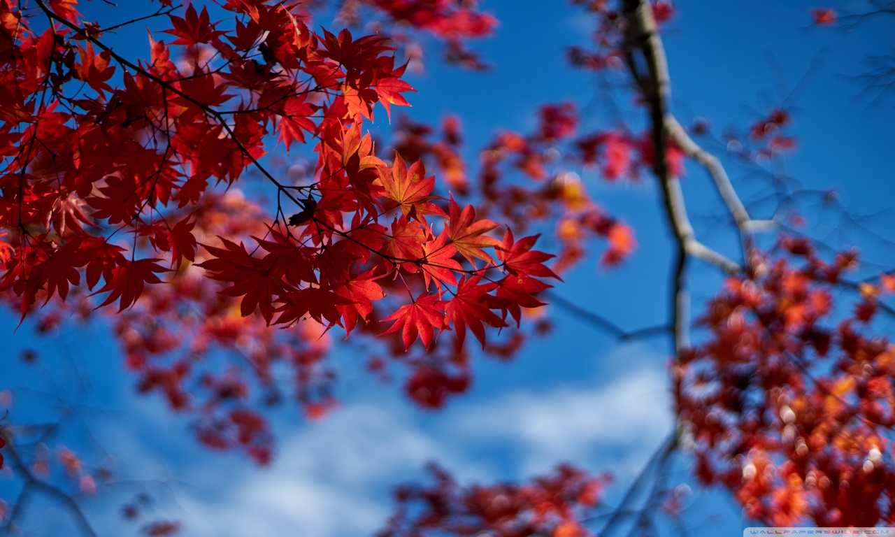 Download Above, Japanese Maple Tree Branches with Red... 4K UHD Wallpaper