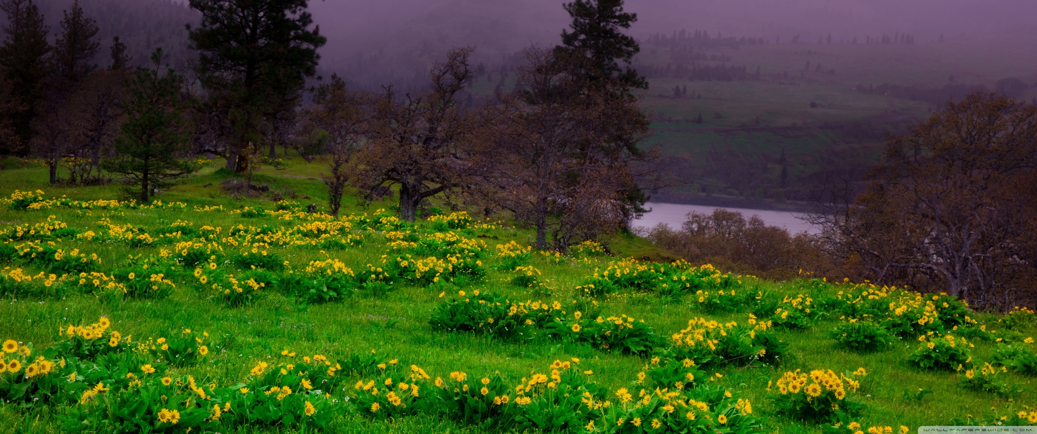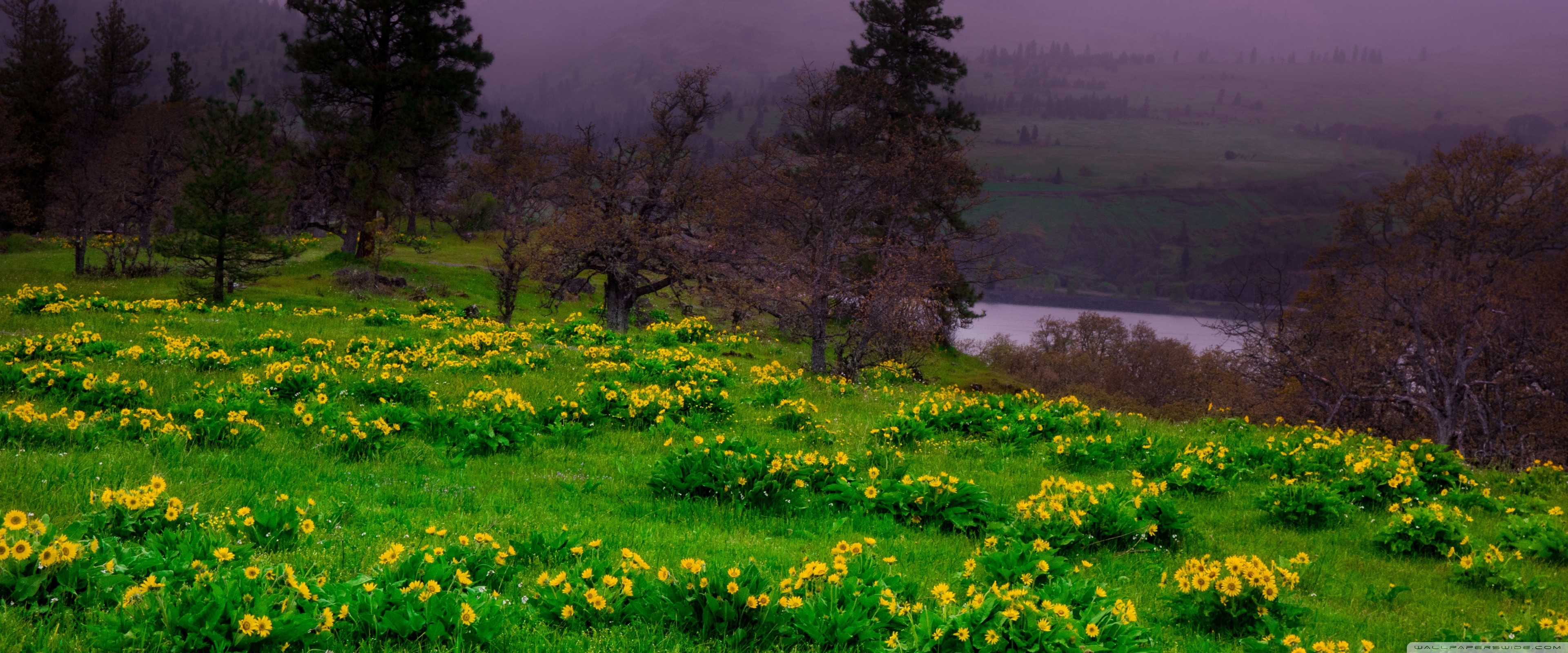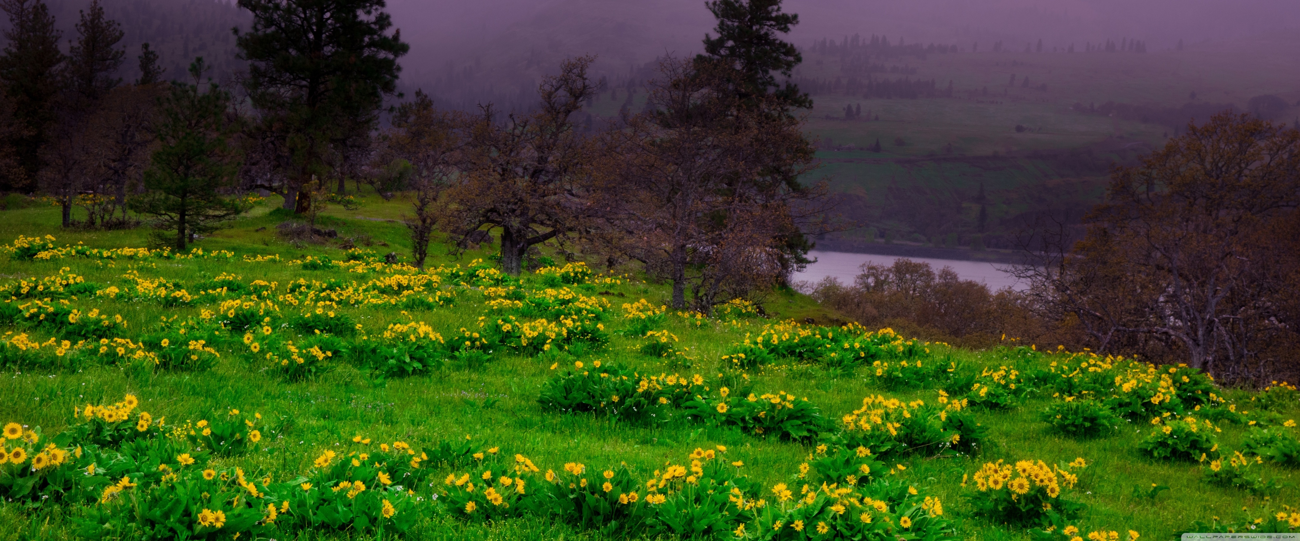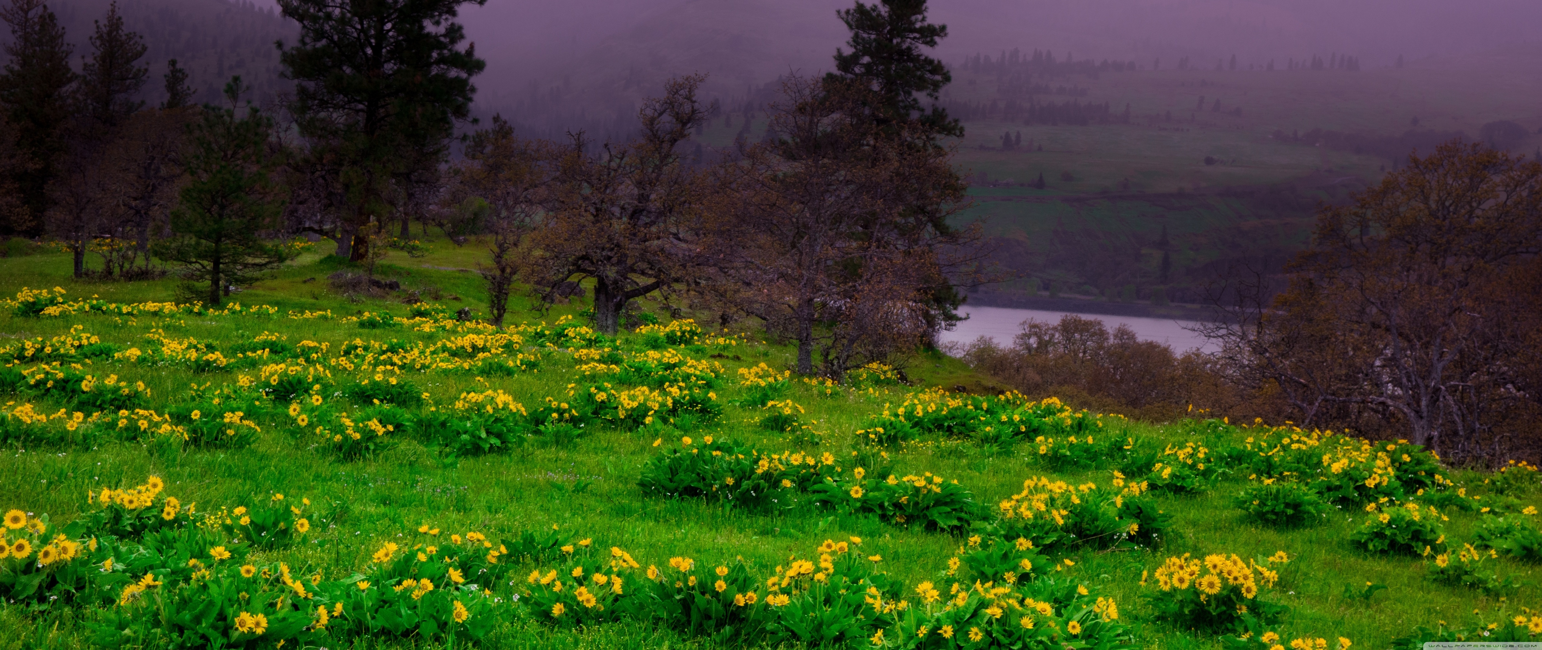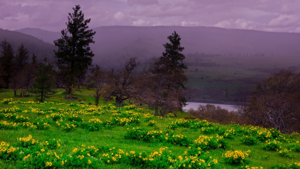Download Arrowleaf Balsamroot blooming along Highway 30 4K UHD Wallpaper