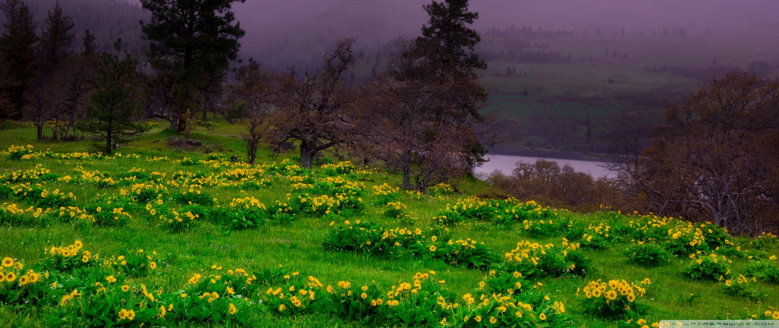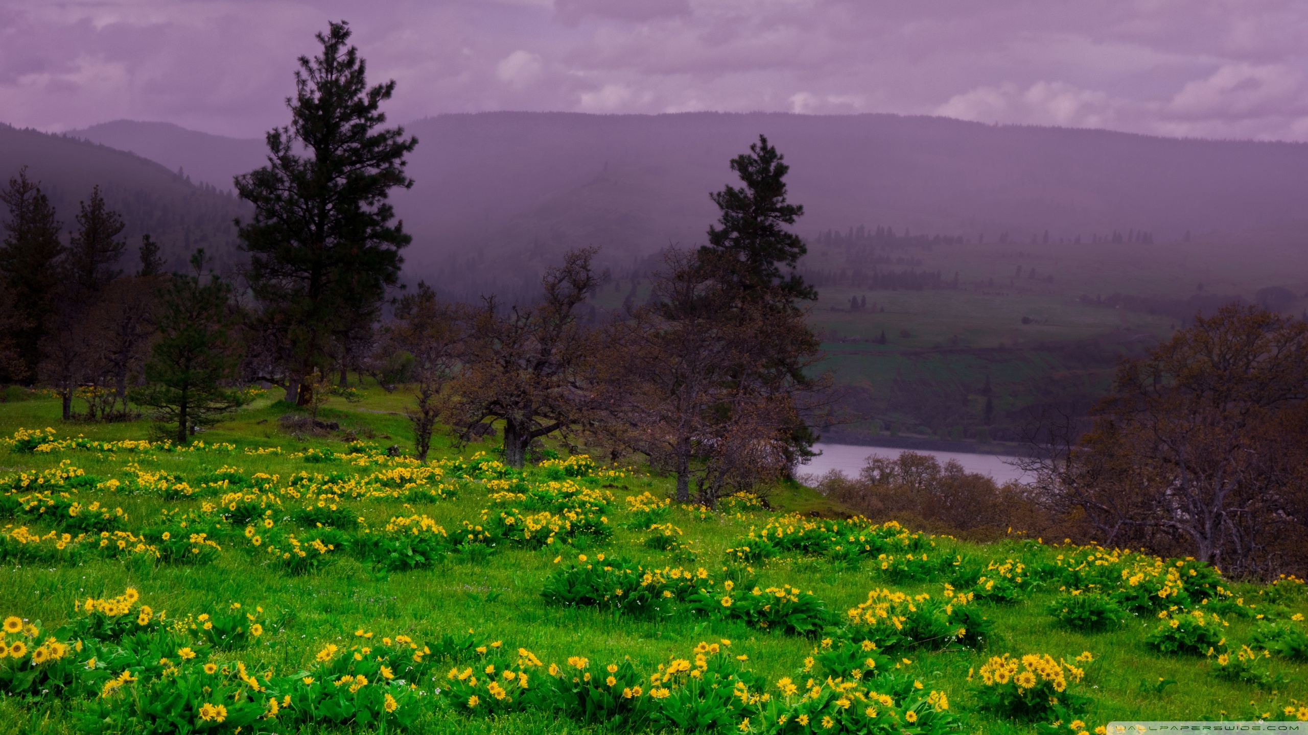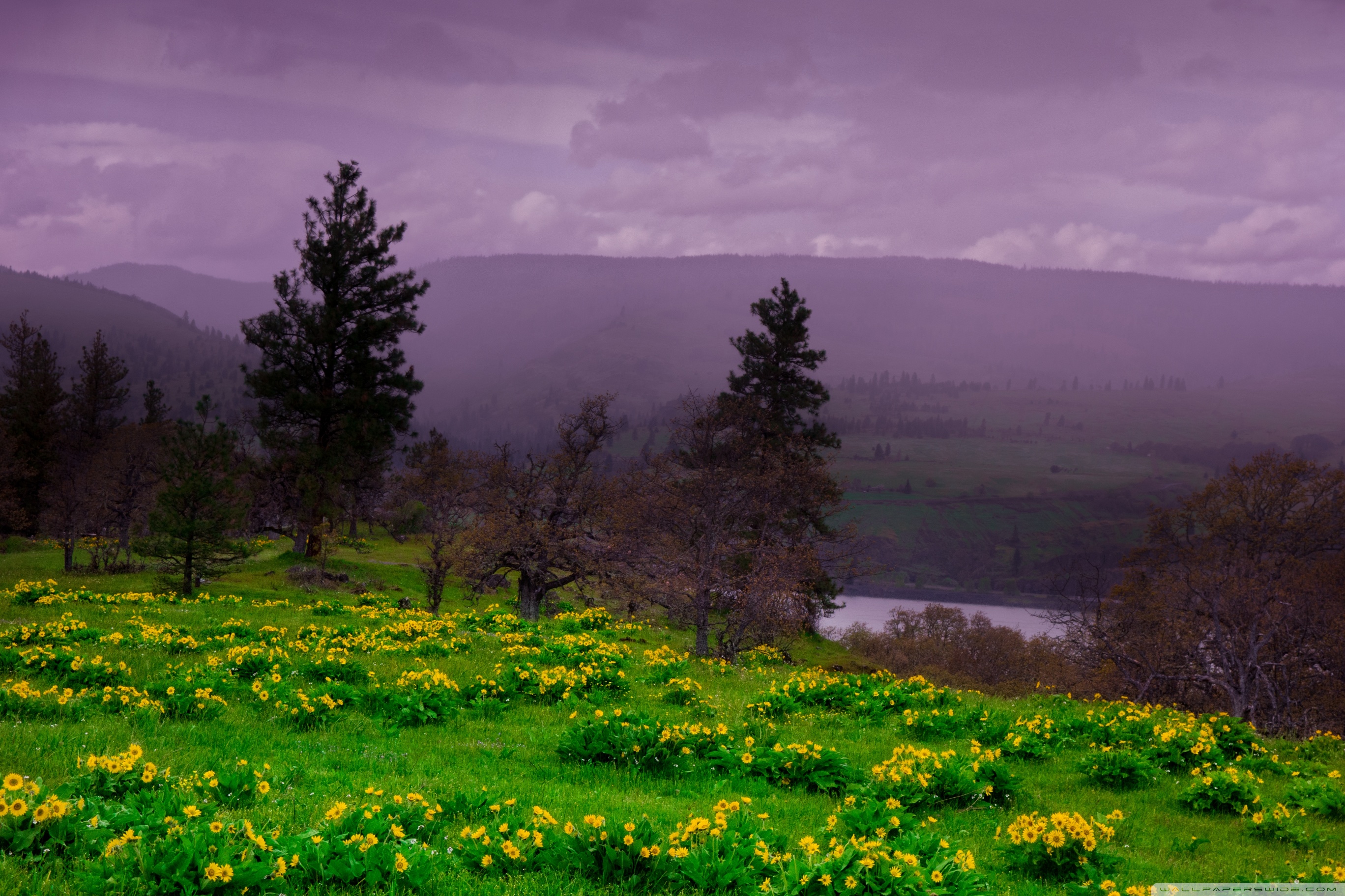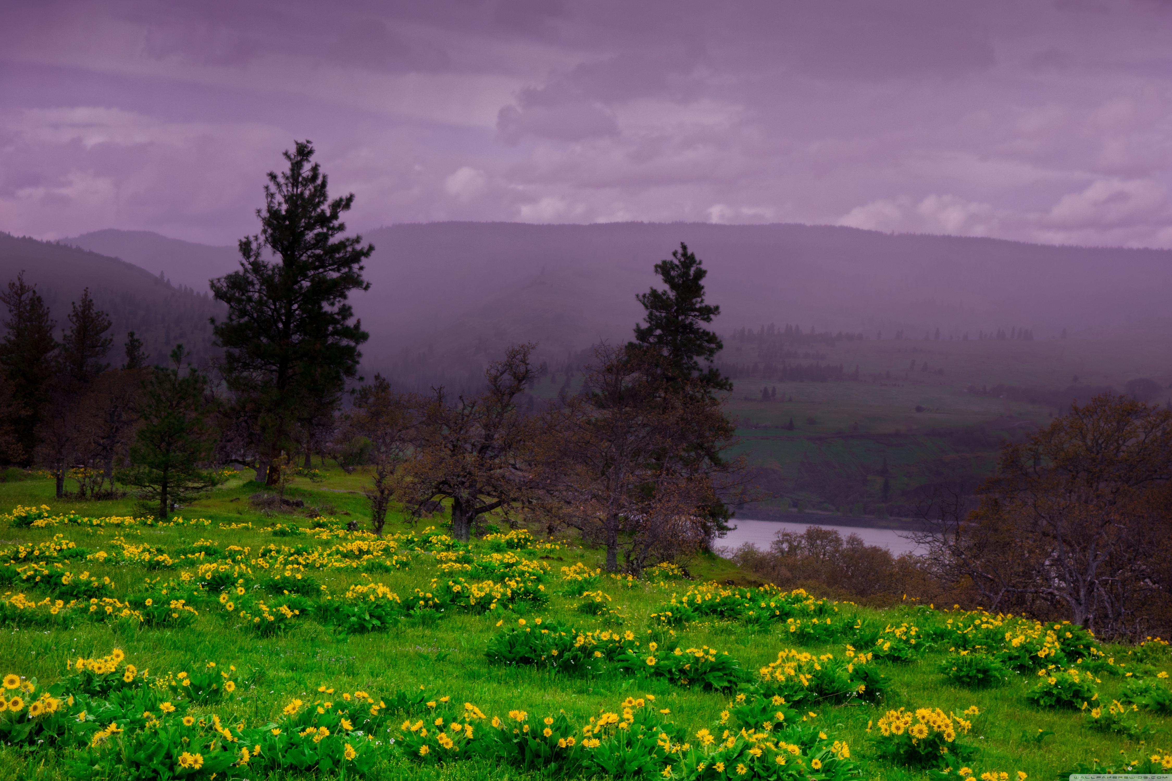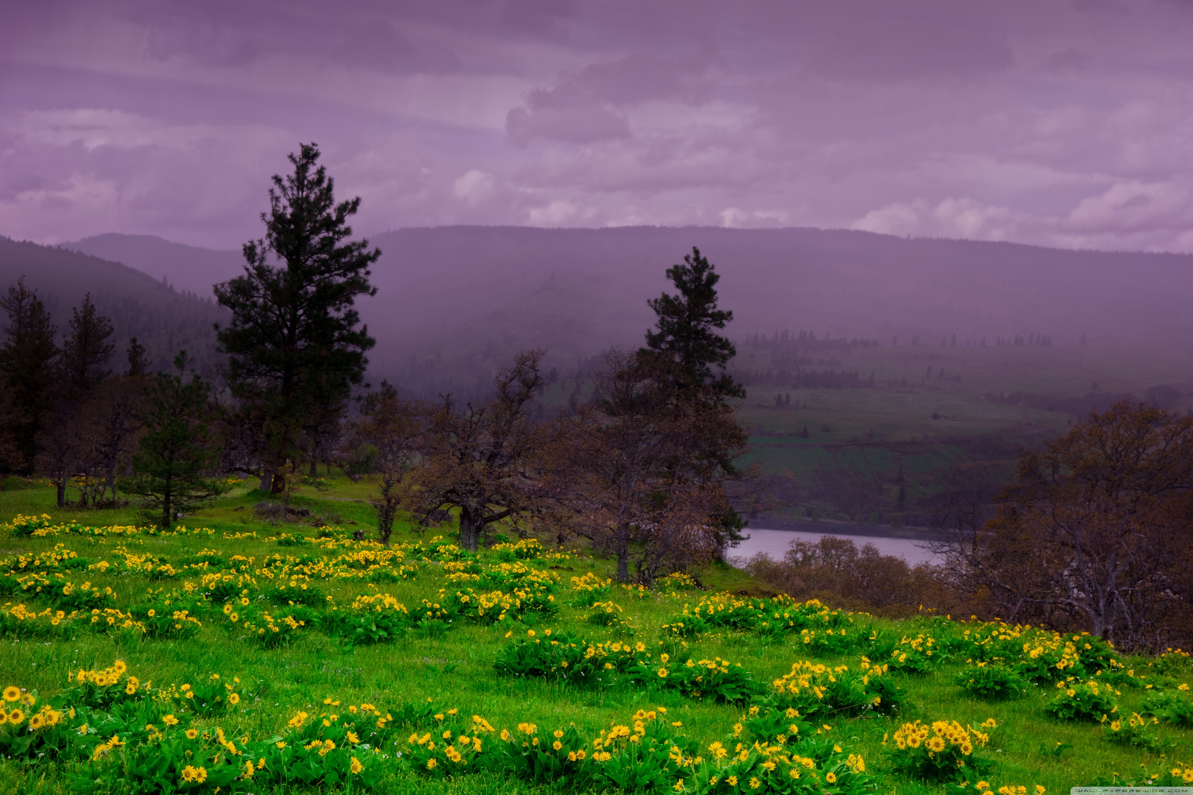 Download Arrowleaf Balsamroot blooming along Highway 30 4K UHD Wallpaper