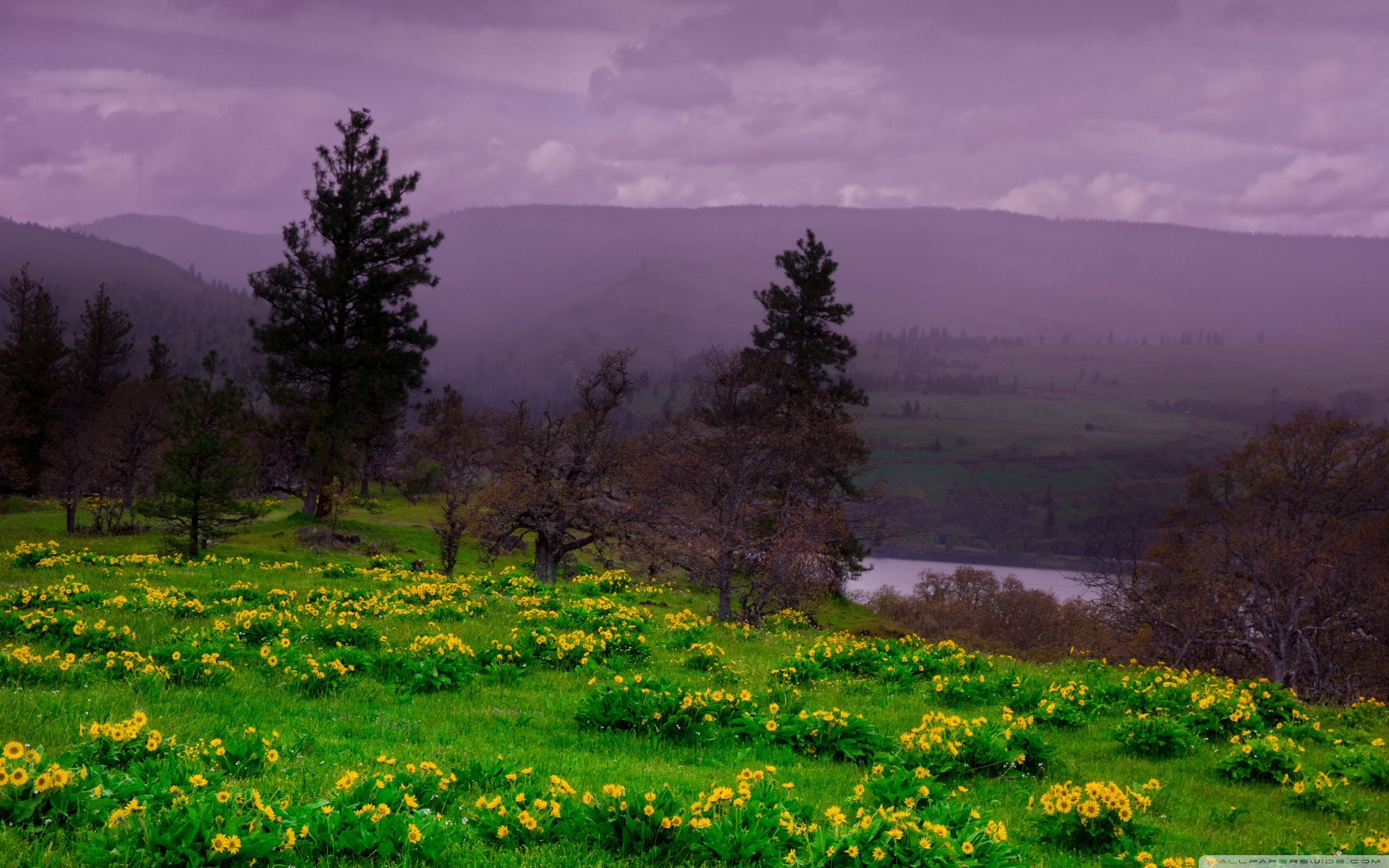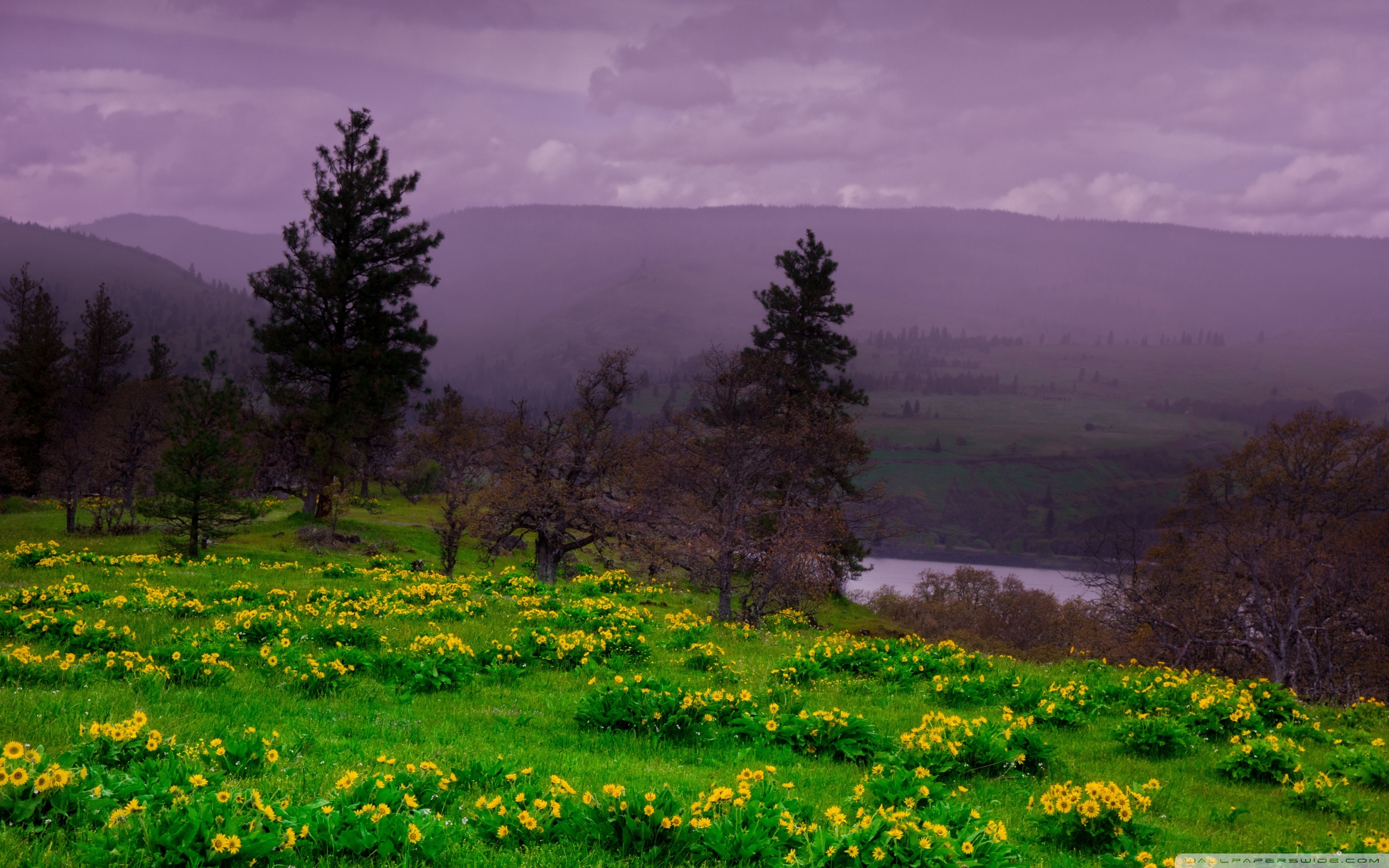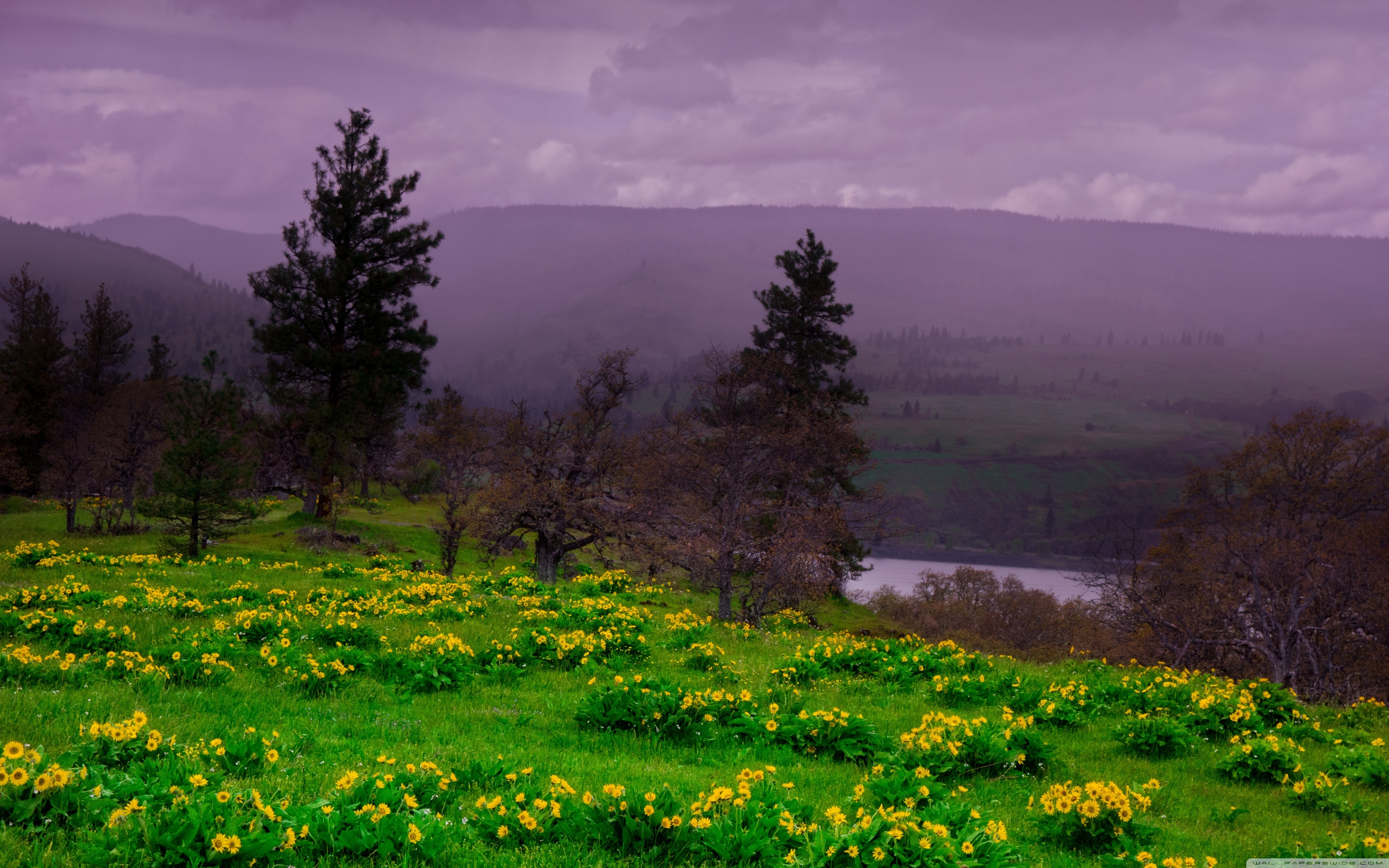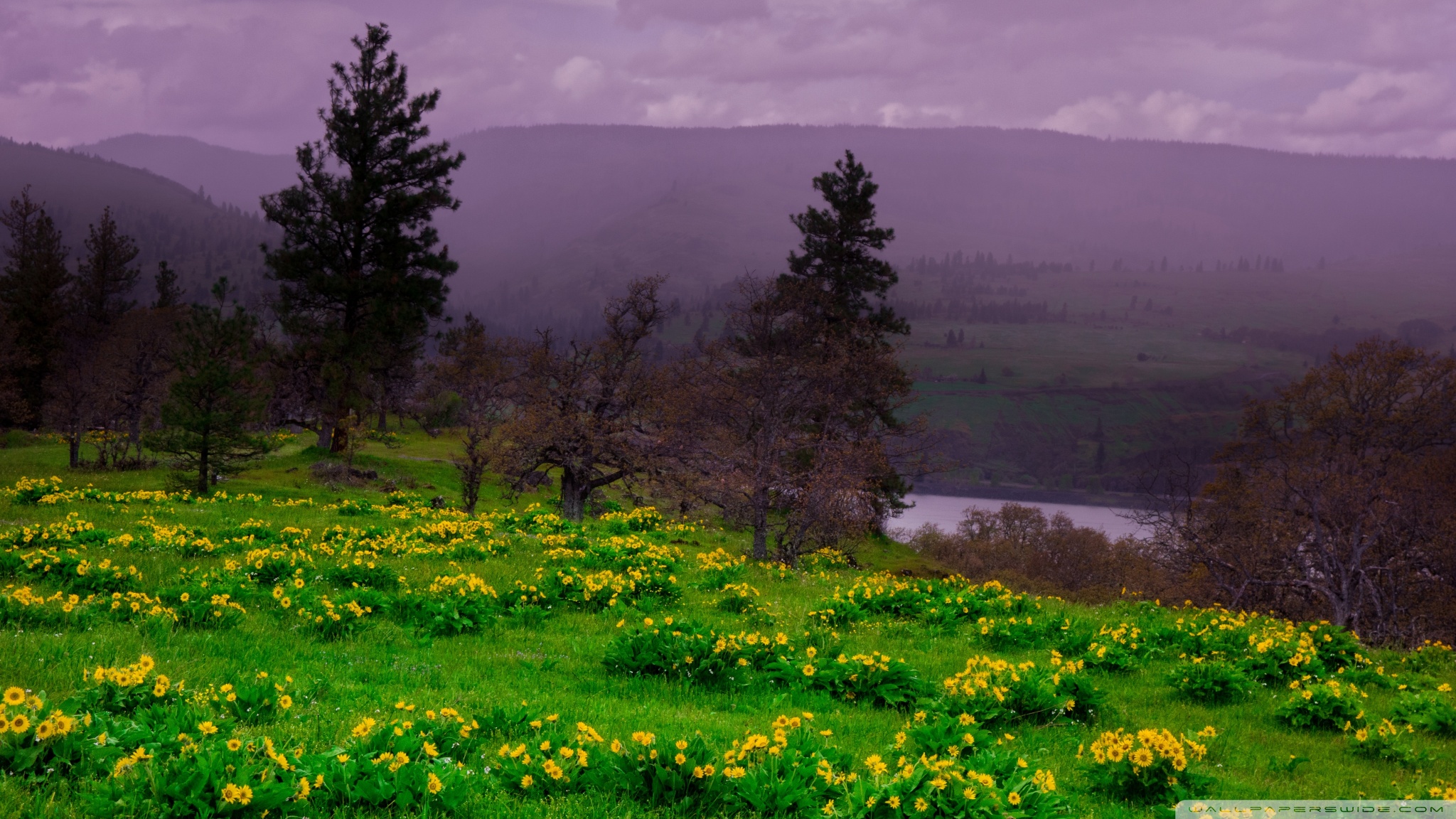 Download Arrowleaf Balsamroot blooming along Highway 30 4K UHD Wallpaper