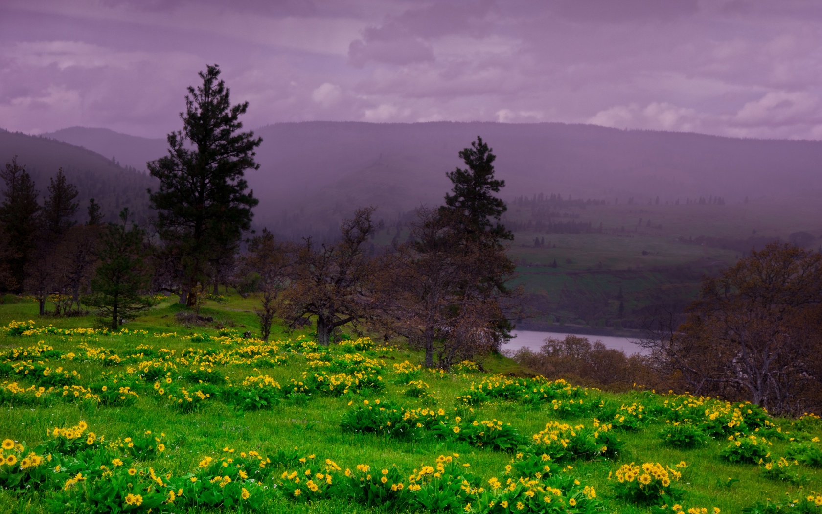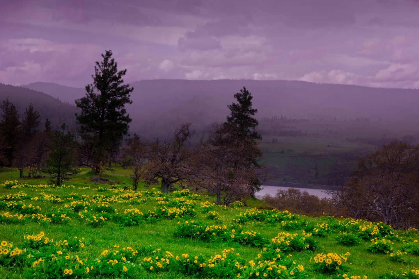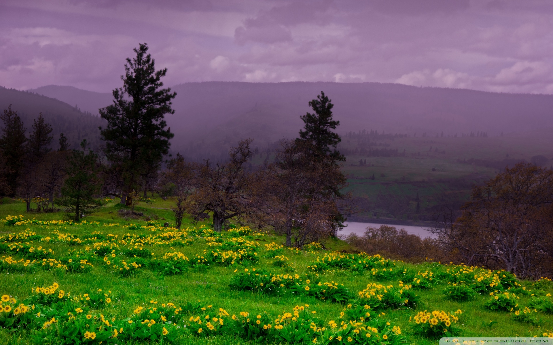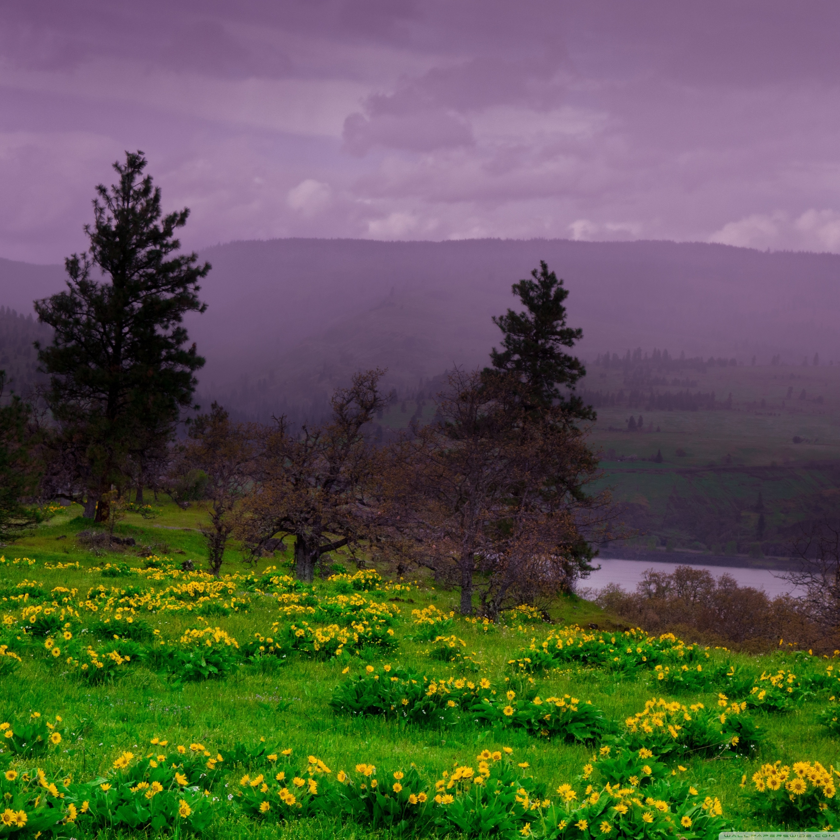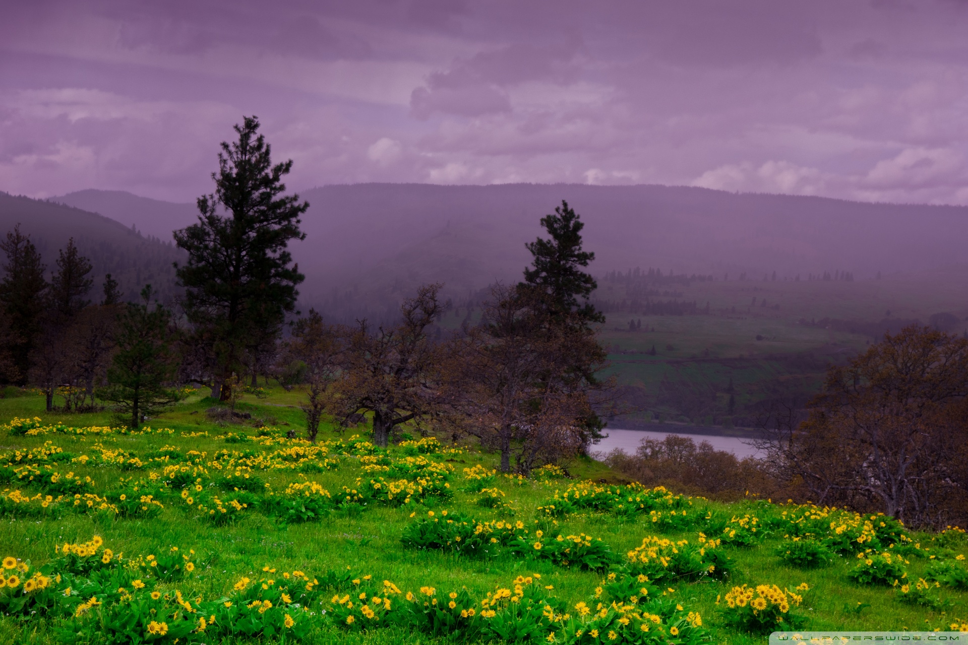 Download Arrowleaf Balsamroot blooming along Highway 30 4K UHD Wallpaper