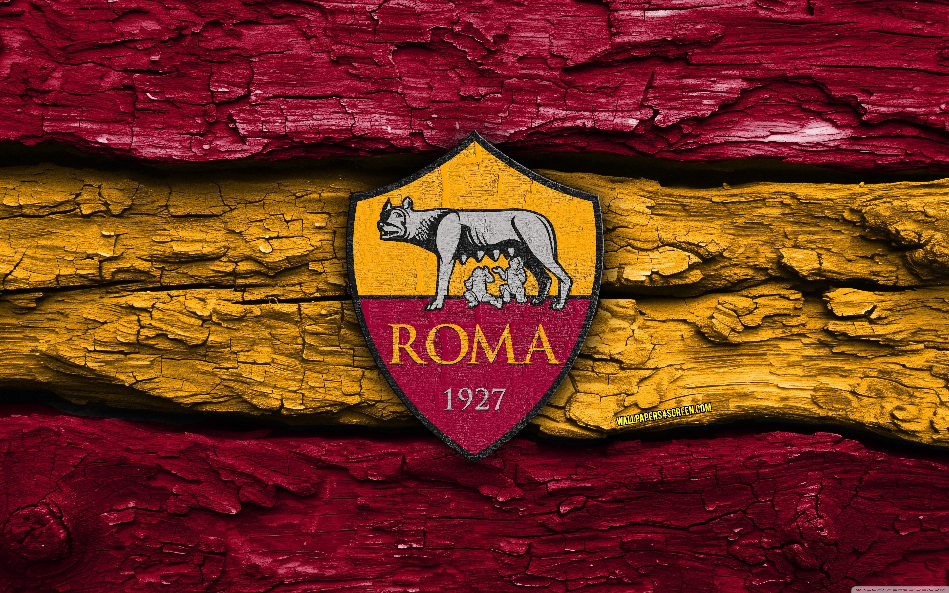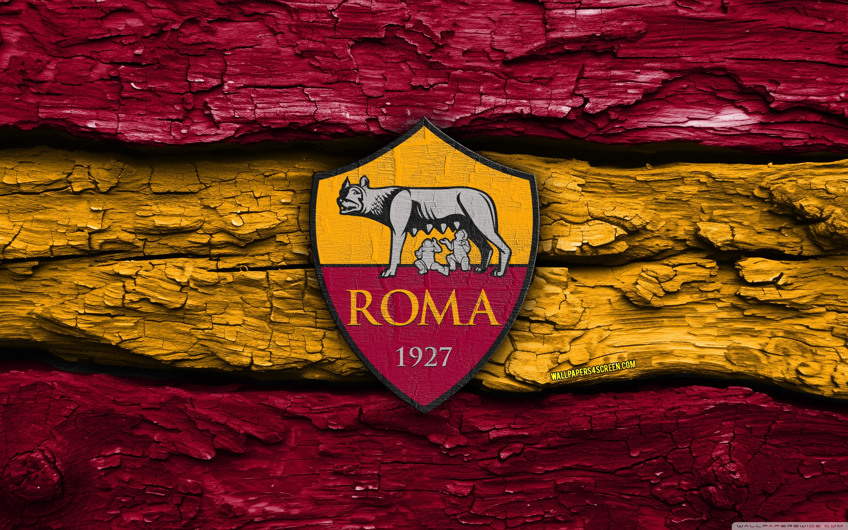 Download AS Roma Wooden Logo 4K UHD Wallpaper