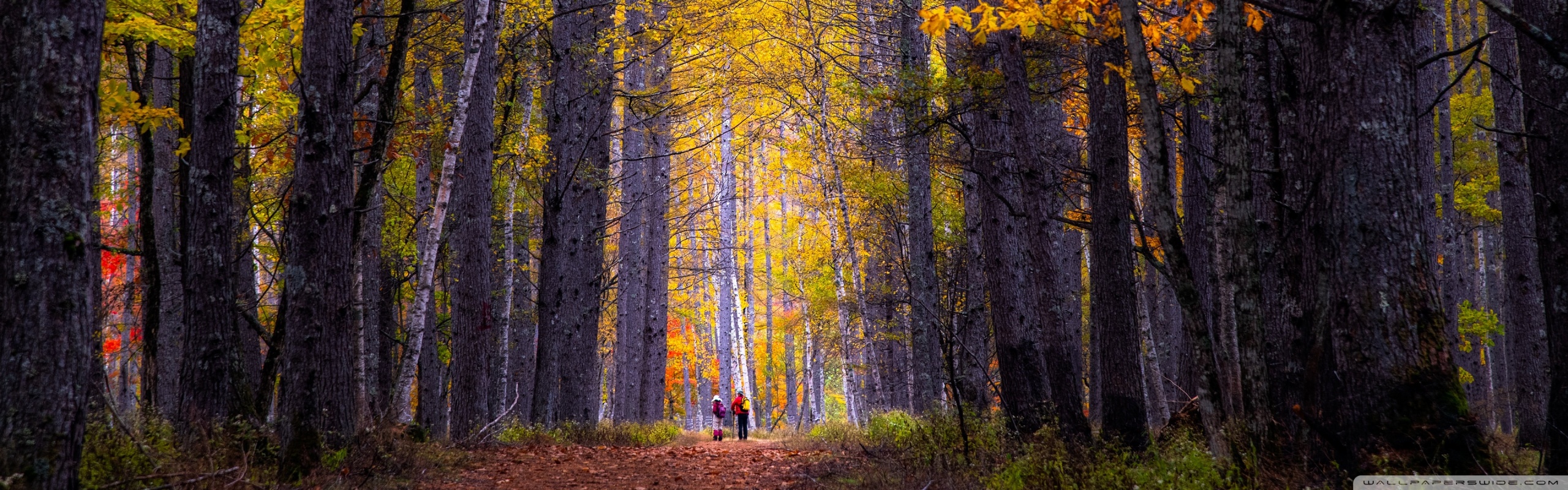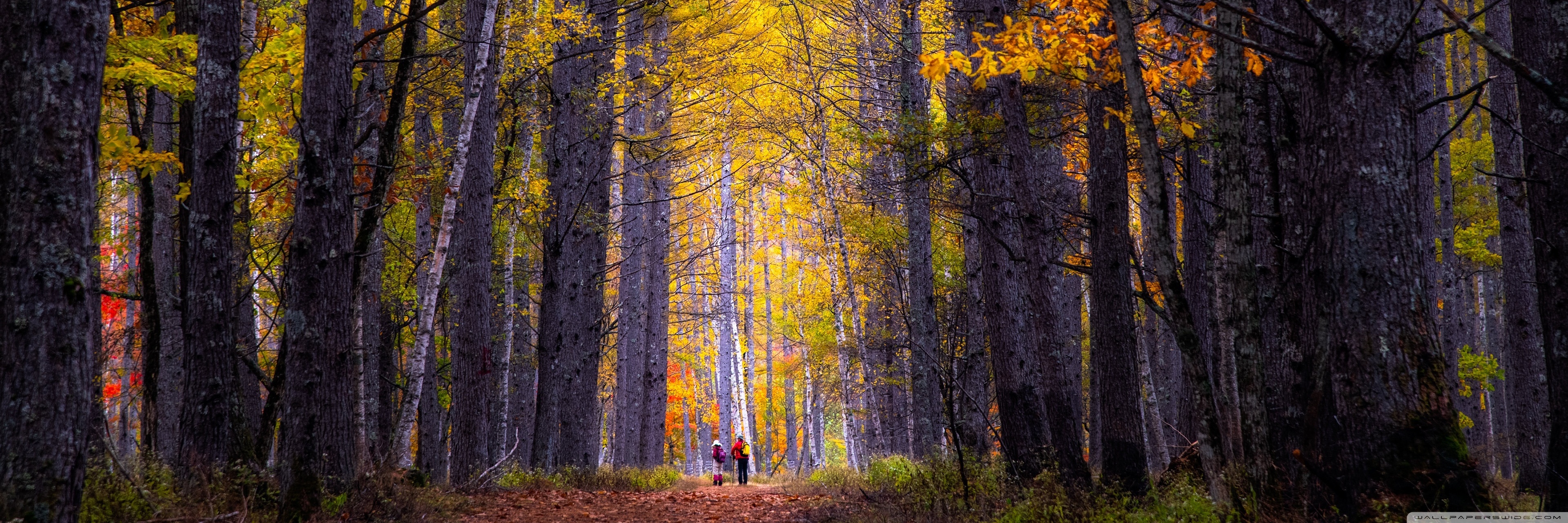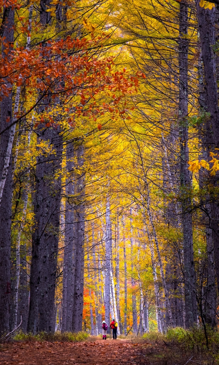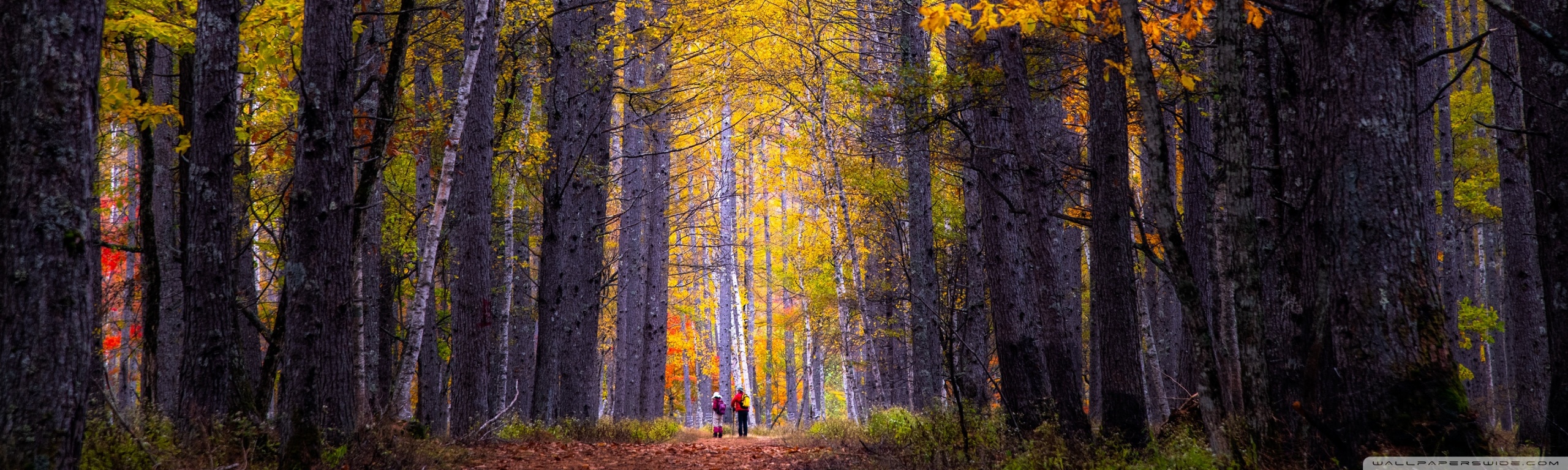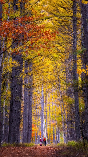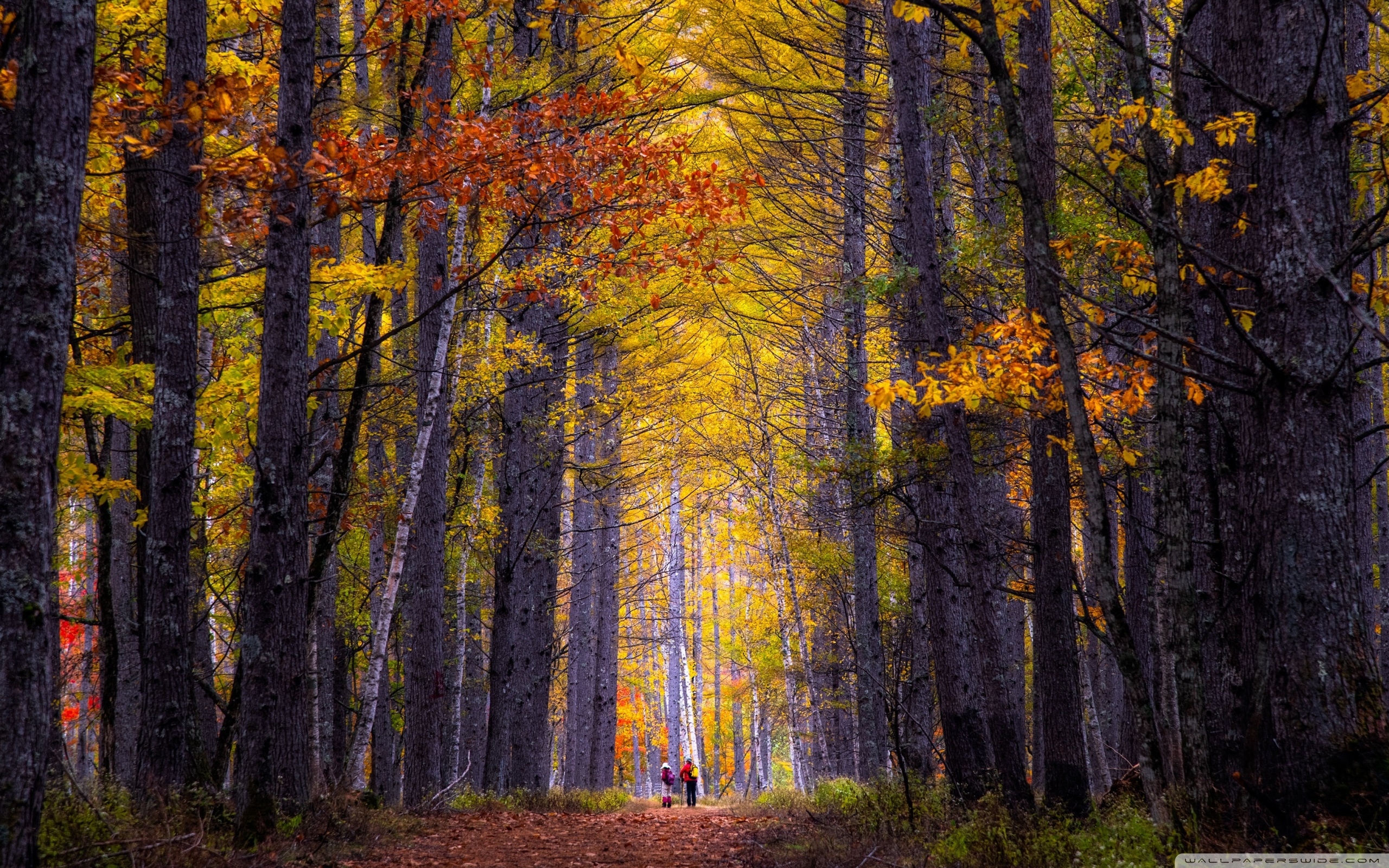 Download Autumn, Hike, Tall Trees, Forest 4K UHD Wallpaper