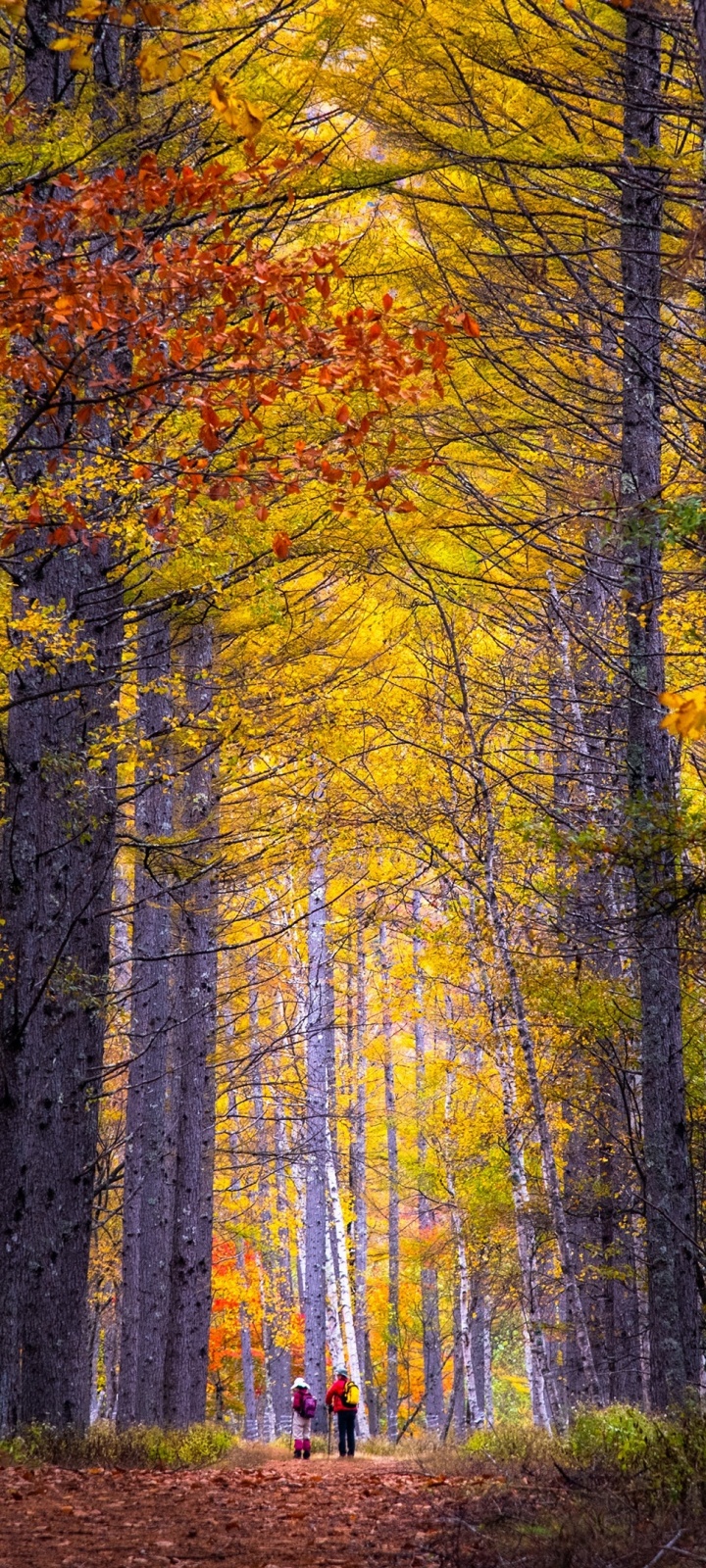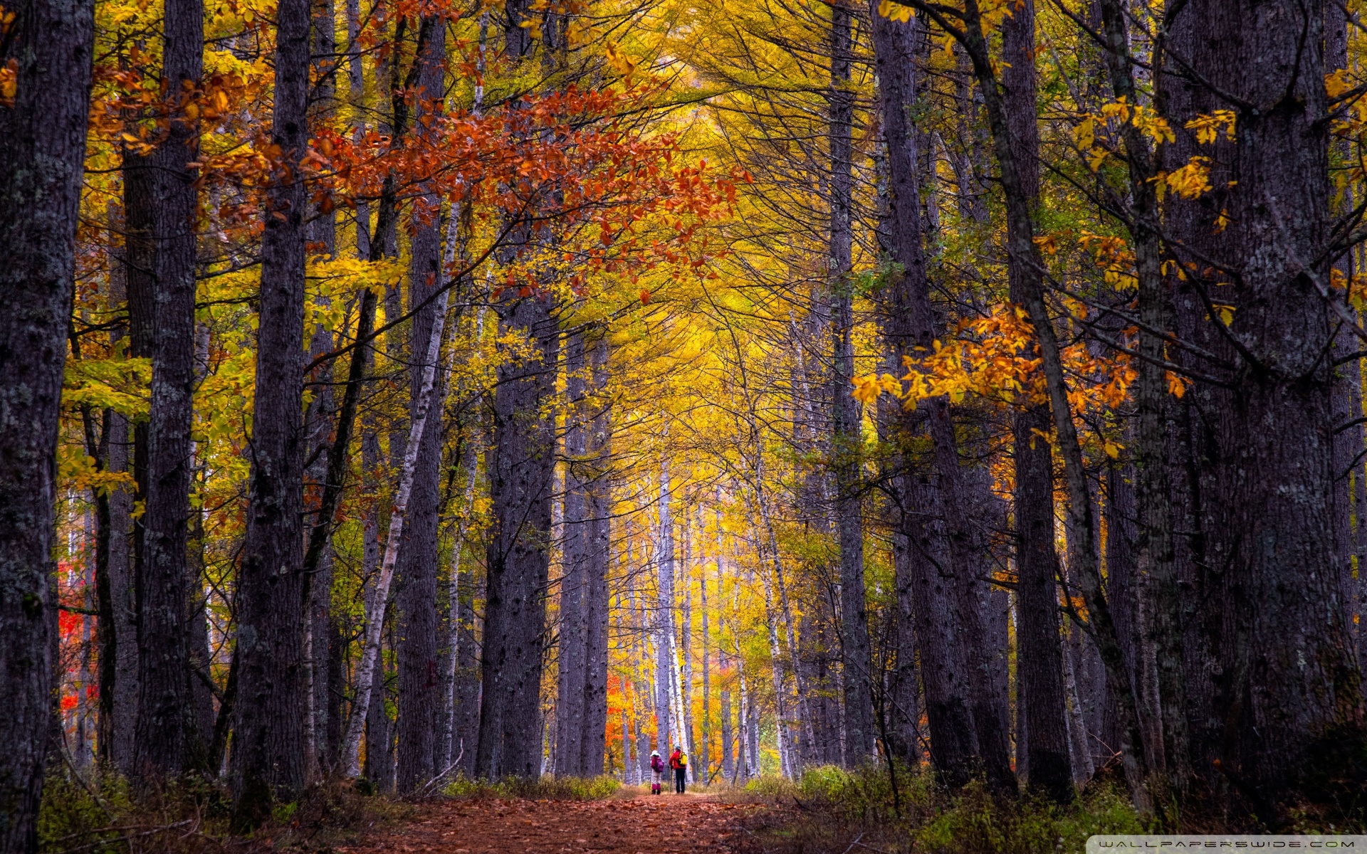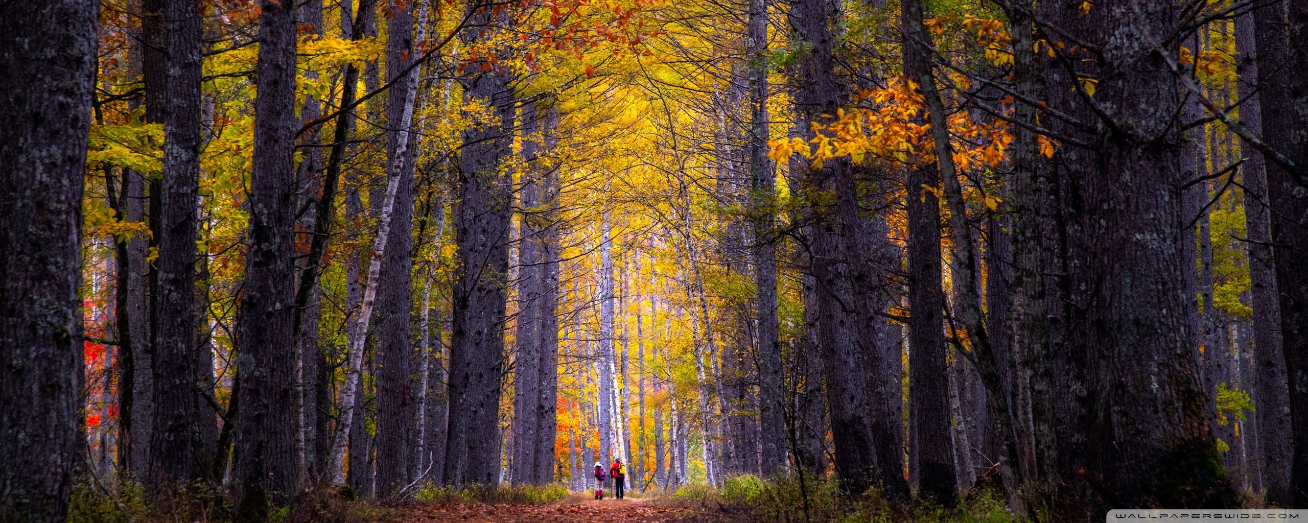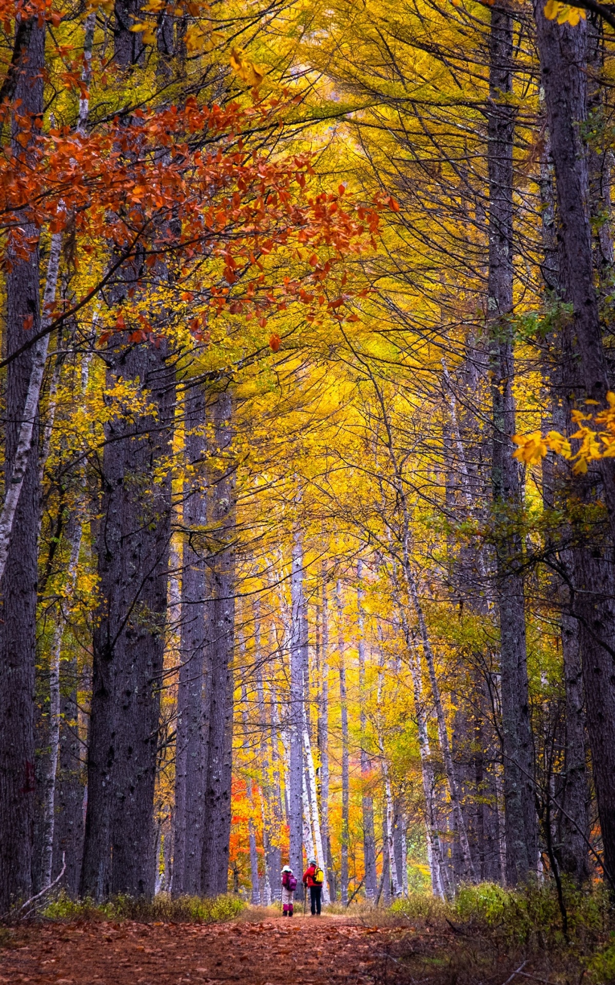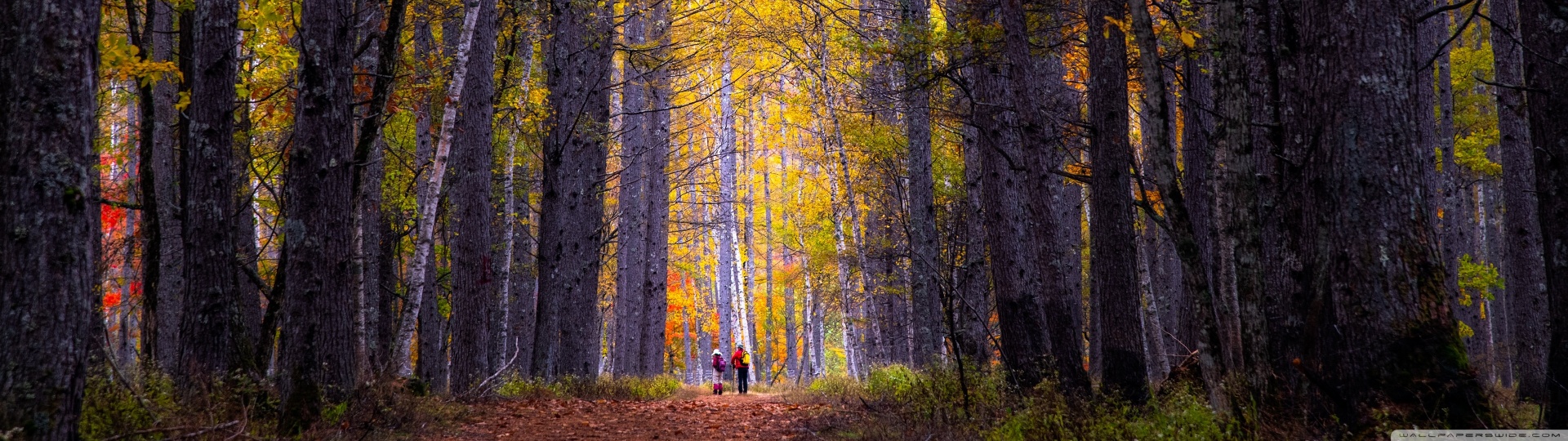 Download Autumn, Hike, Tall Trees, Forest 4K UHD Wallpaper