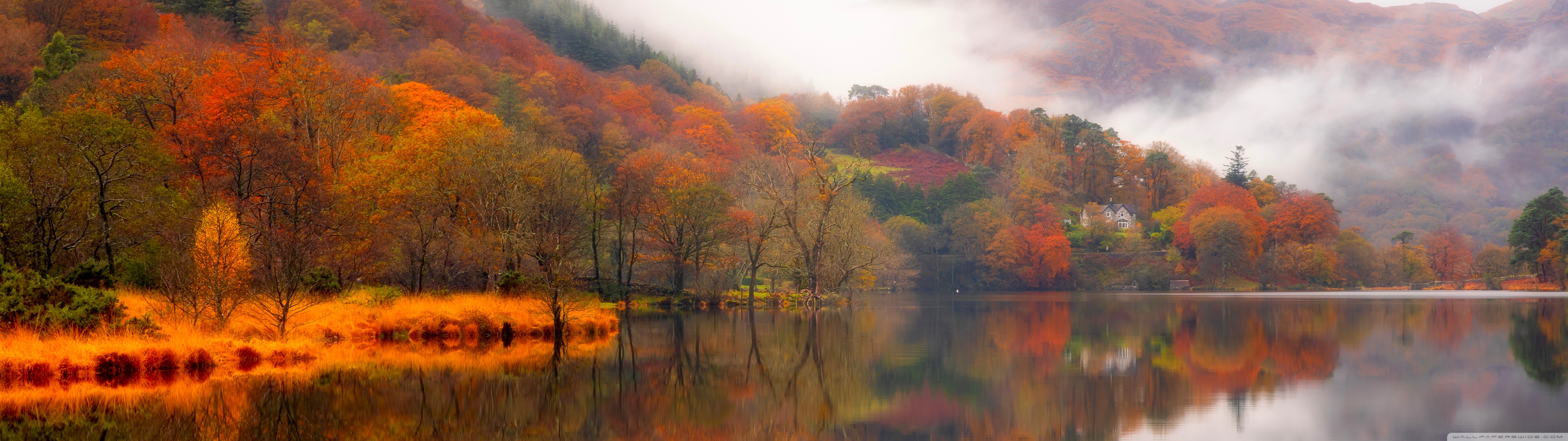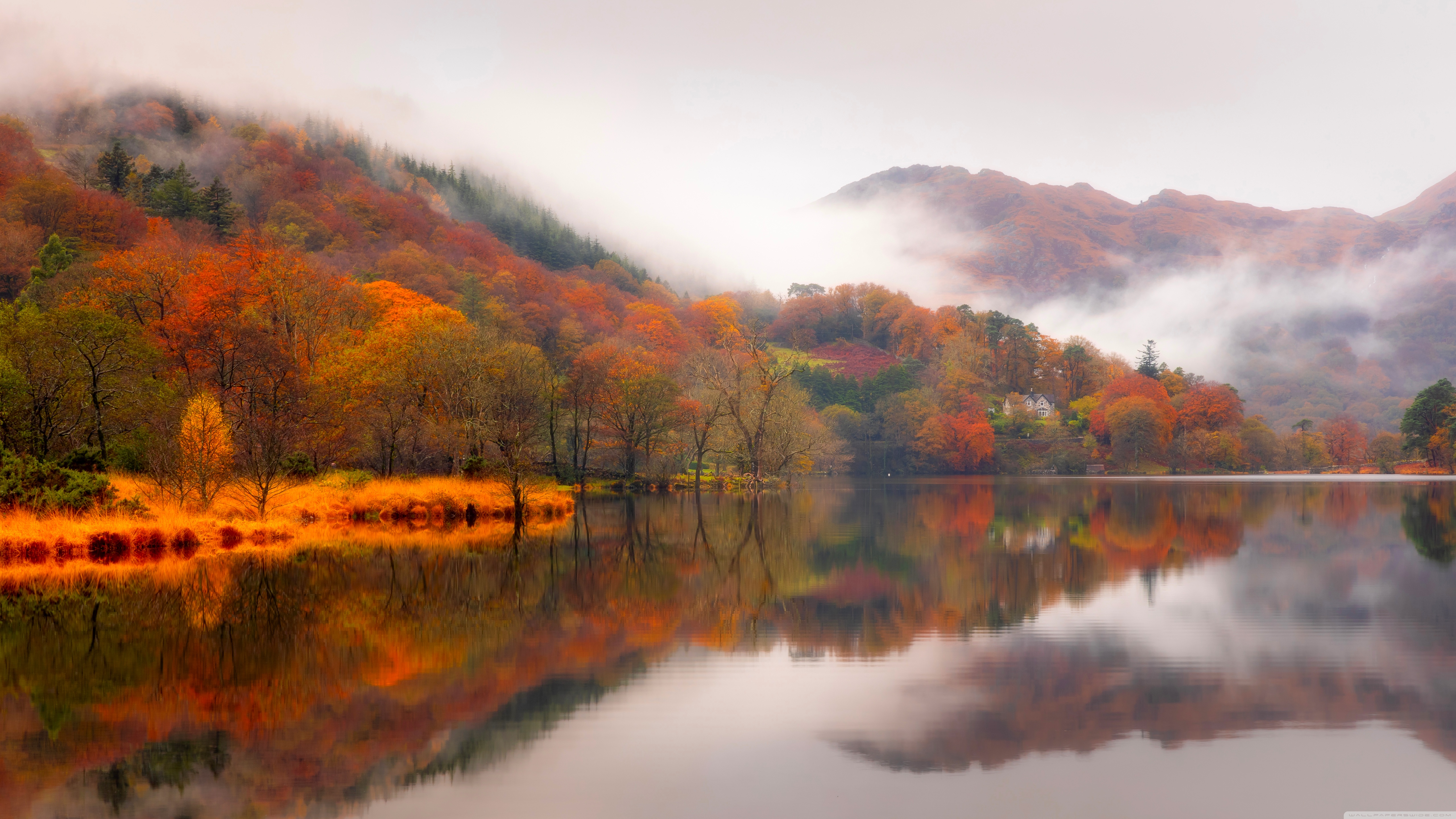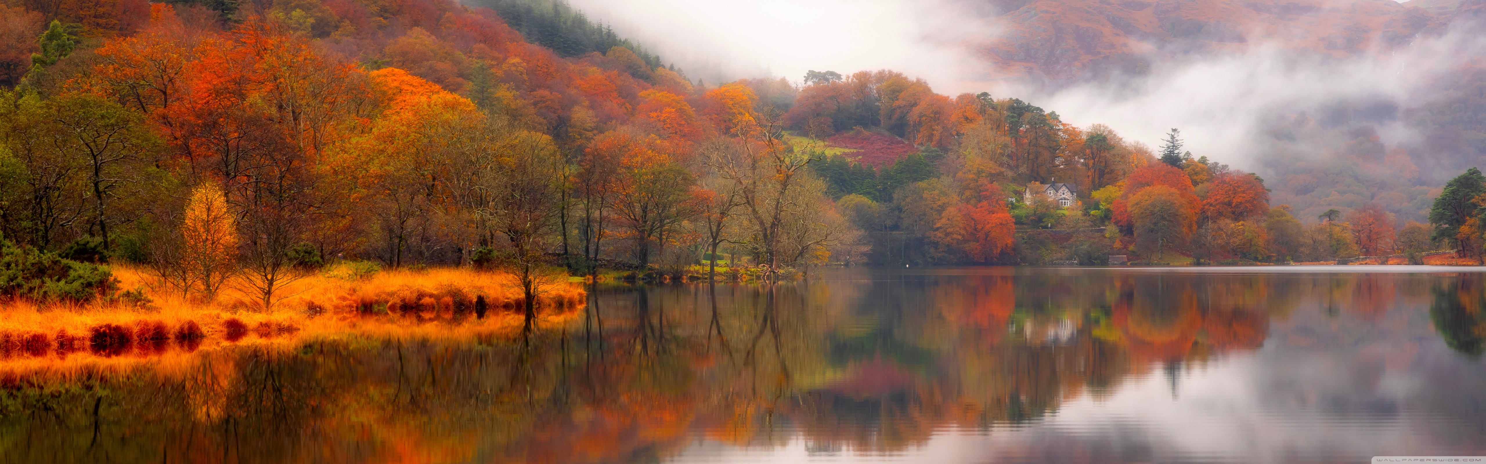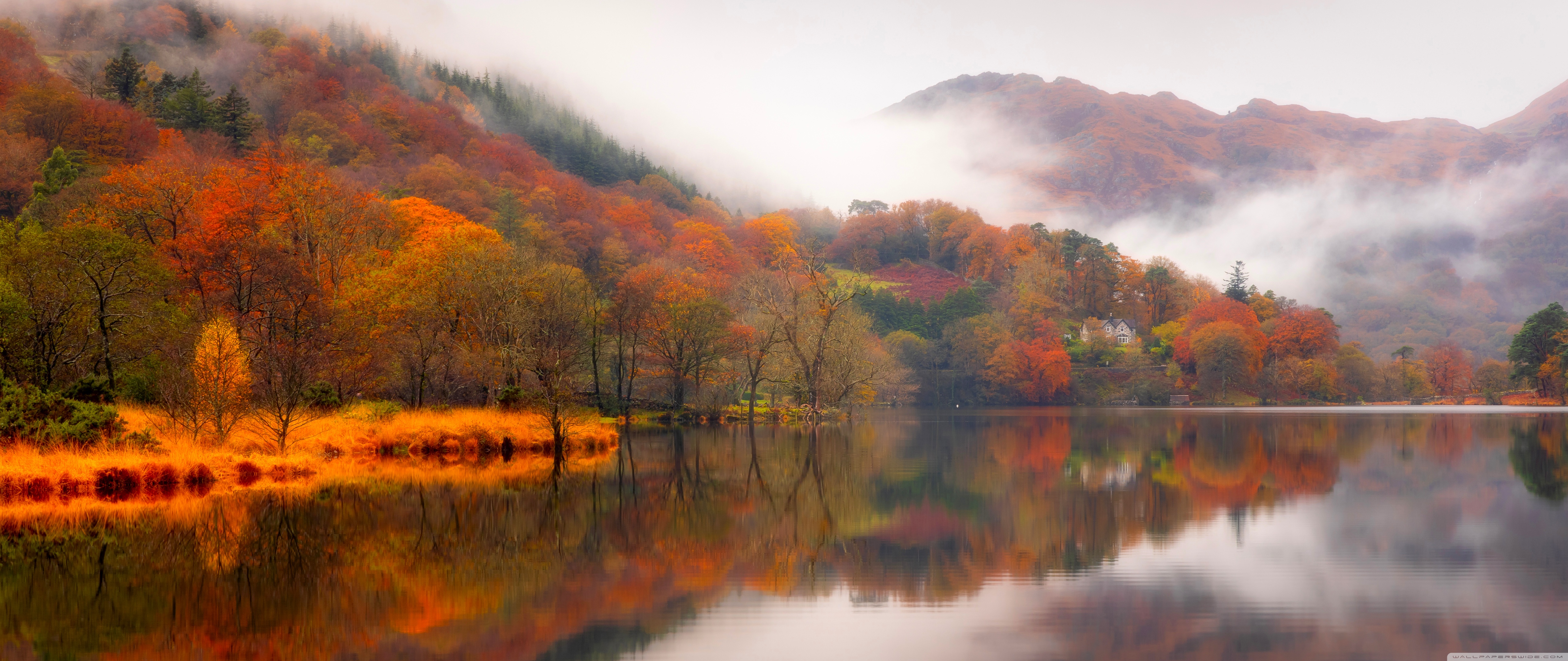Download Autumn Lakeside House 4K UHD Wallpaper