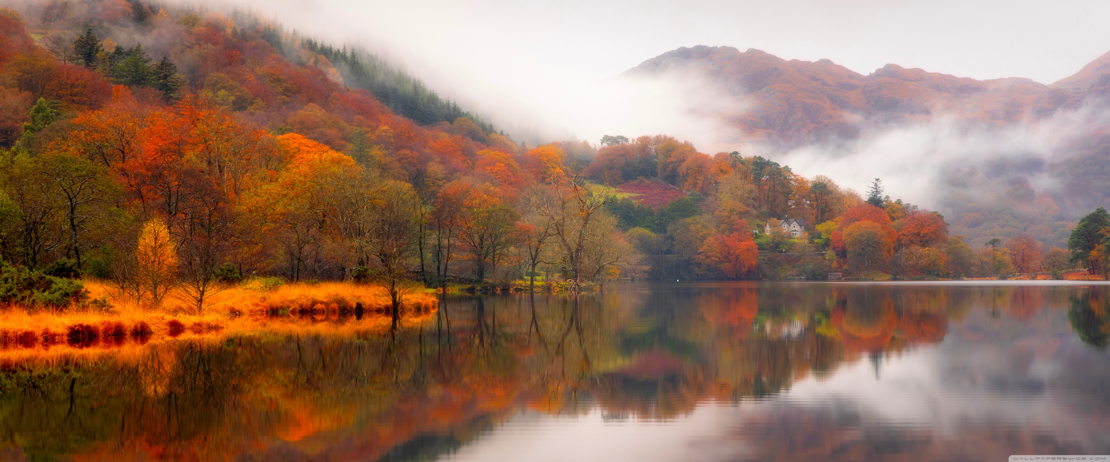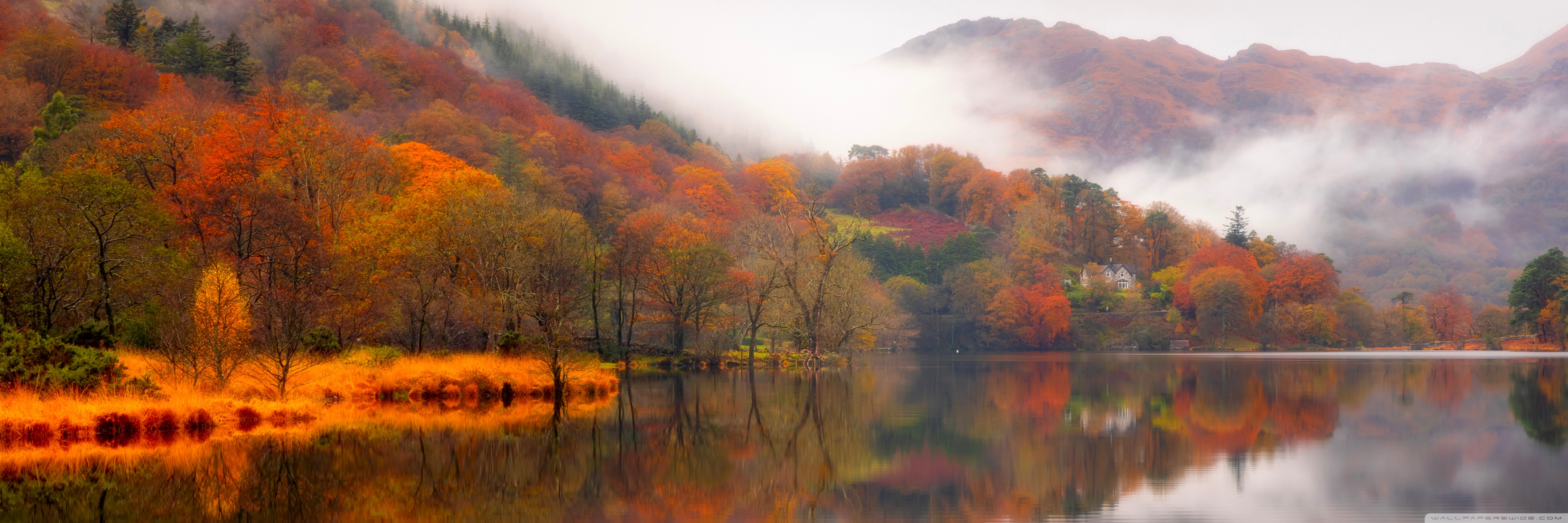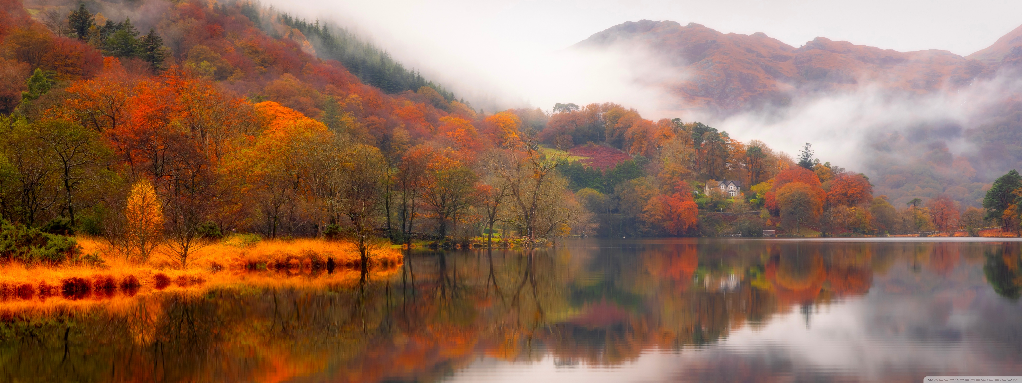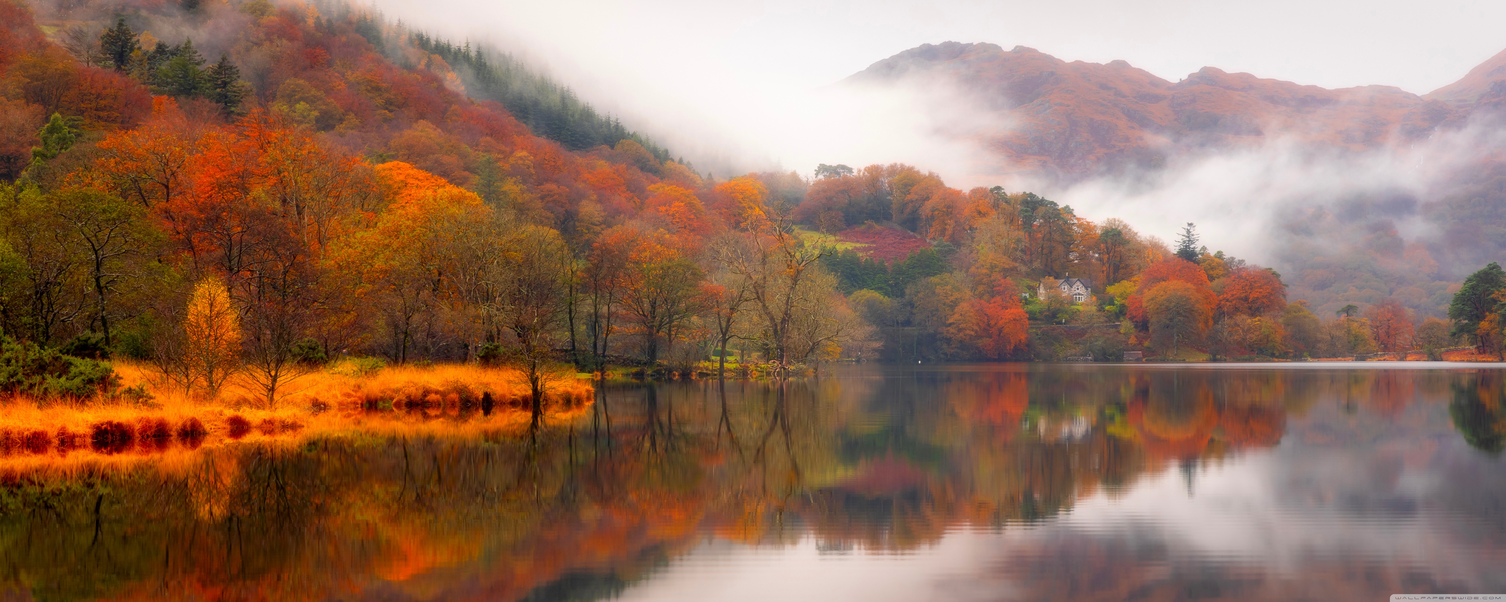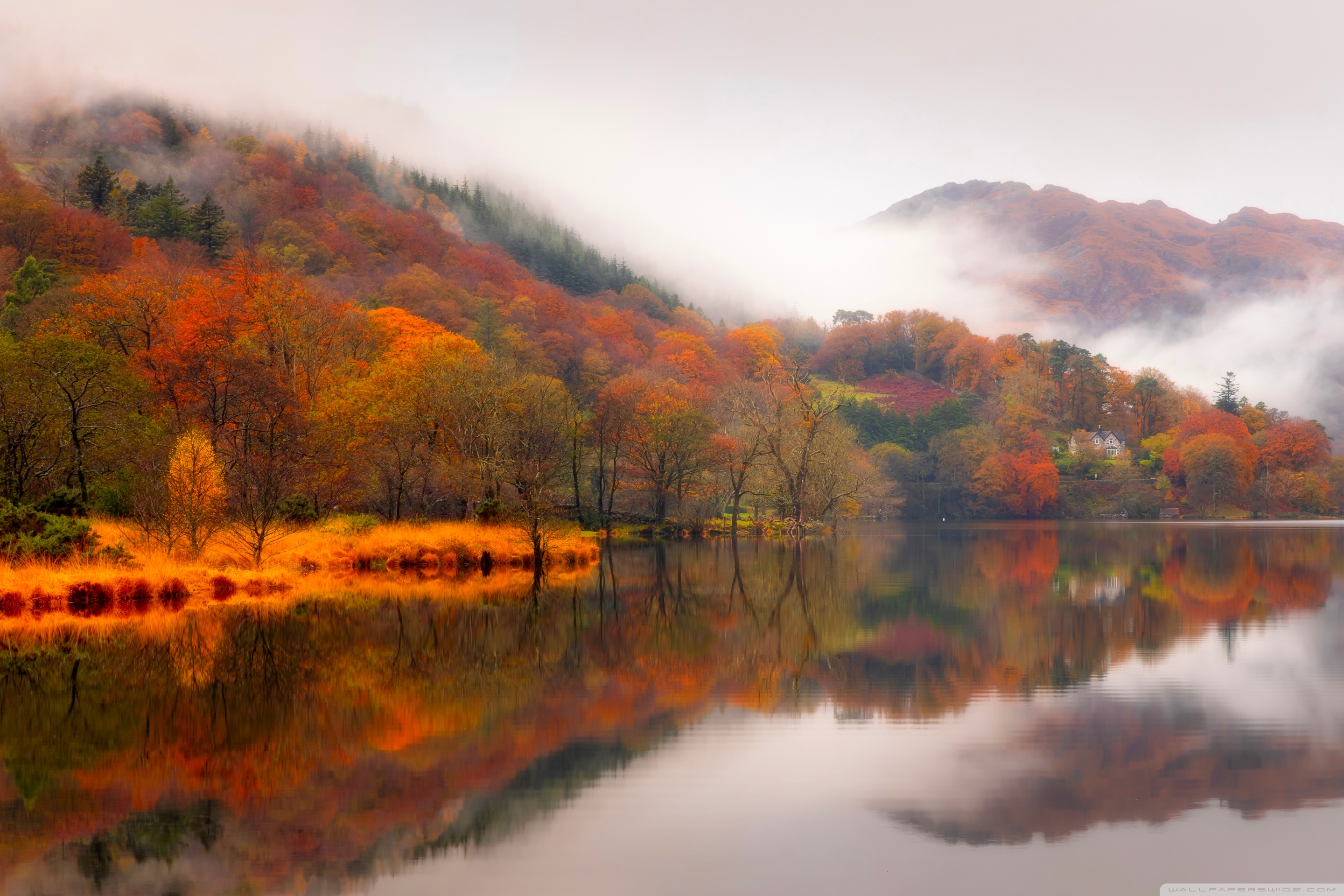 Download Autumn Lakeside House 4K UHD Wallpaper