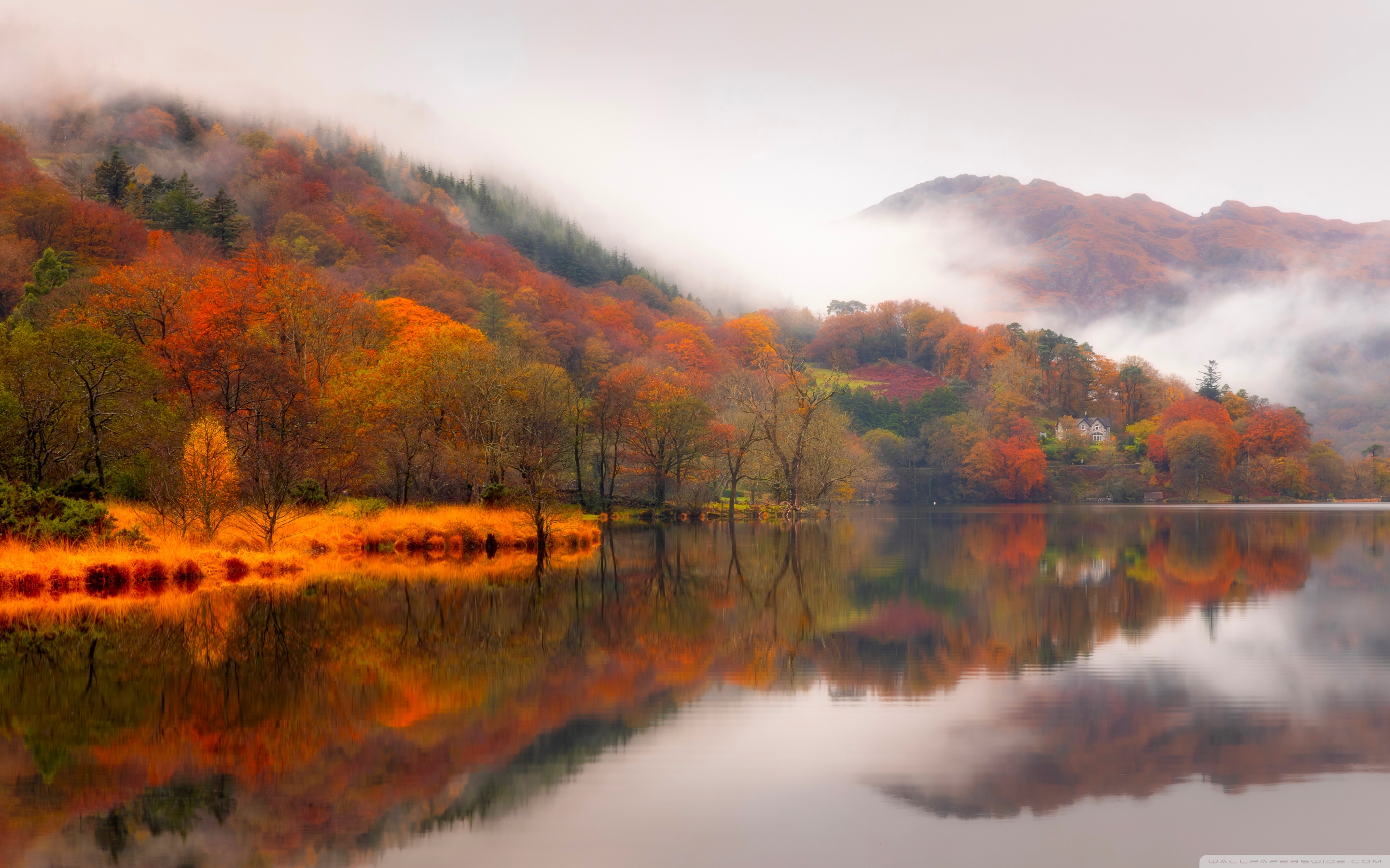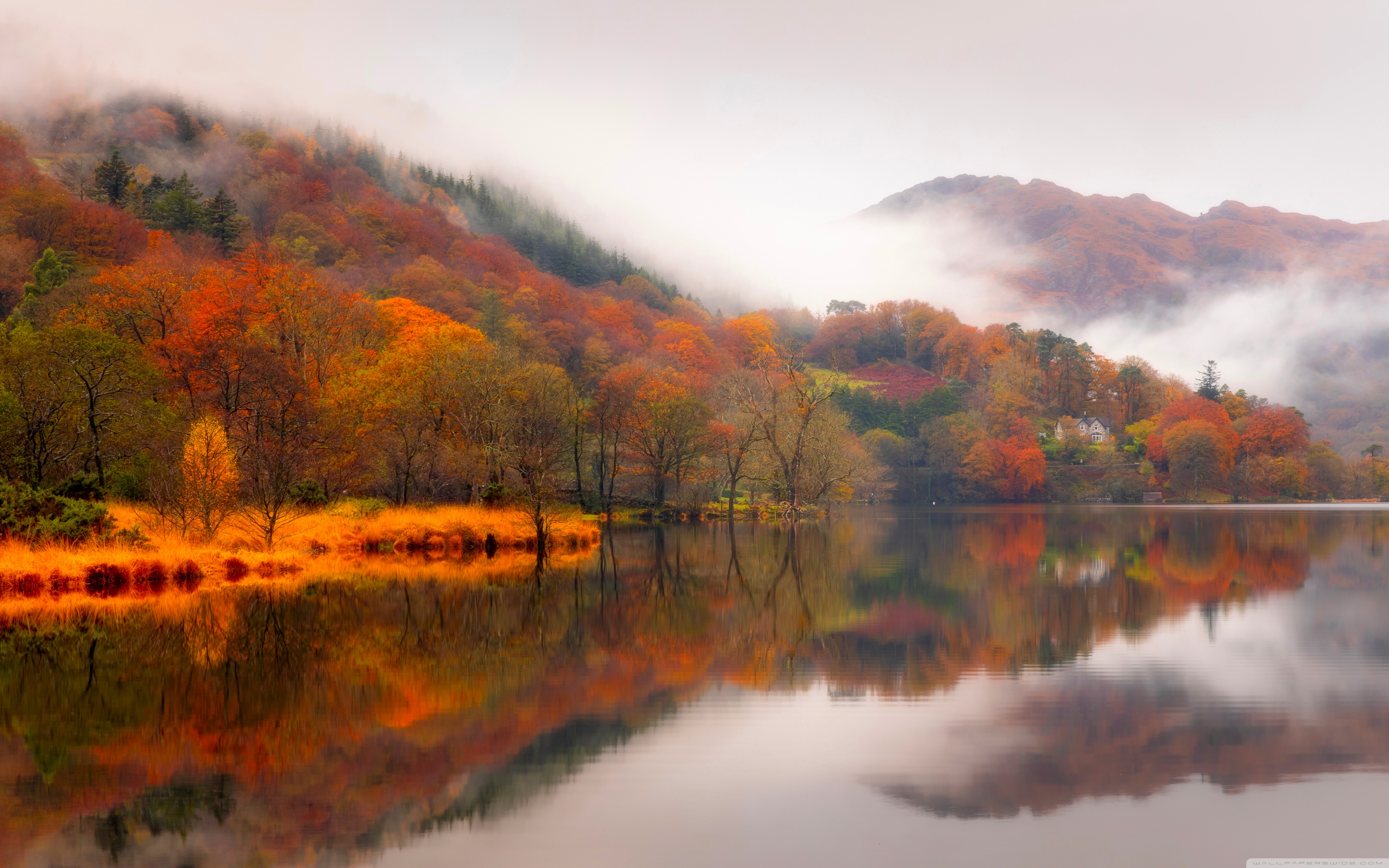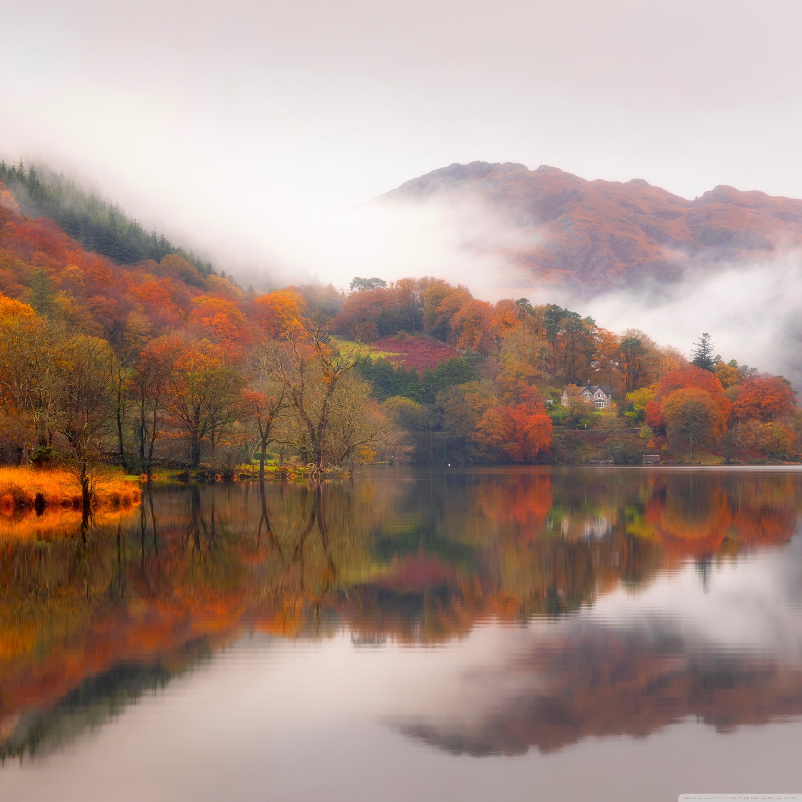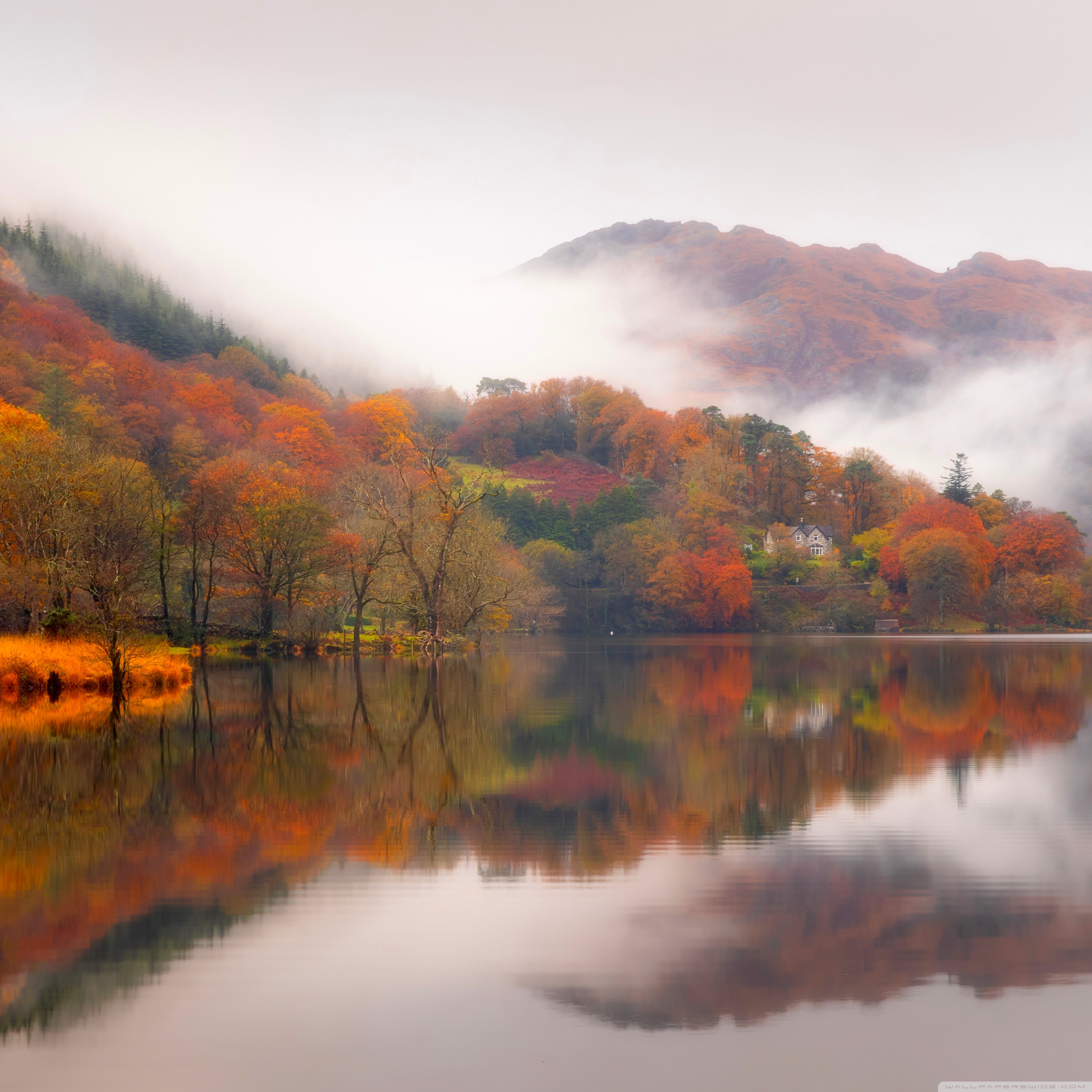Download Autumn Lakeside House 4K UHD Wallpaper
