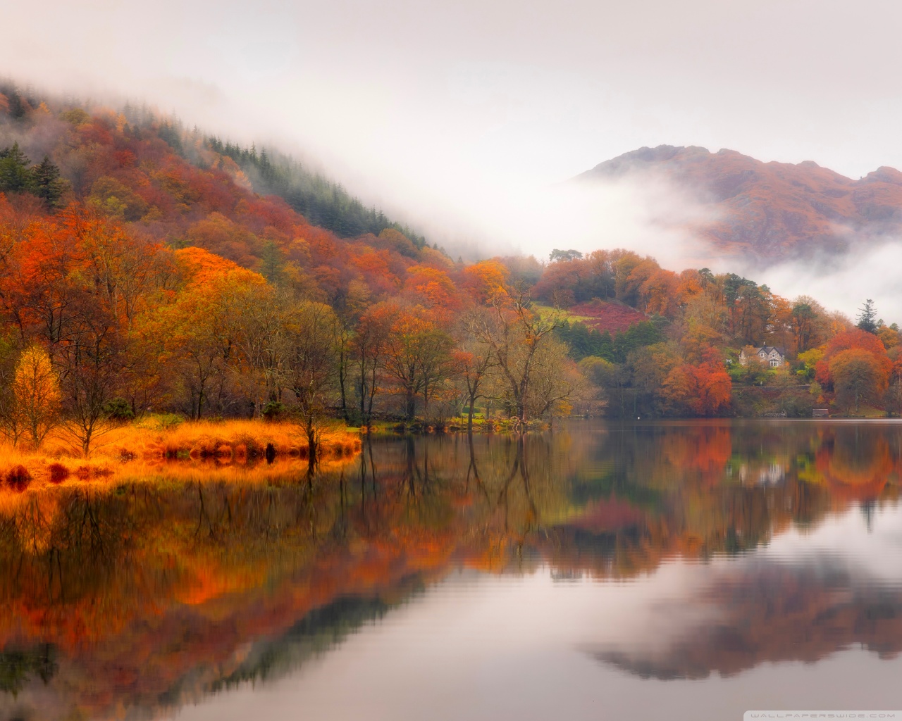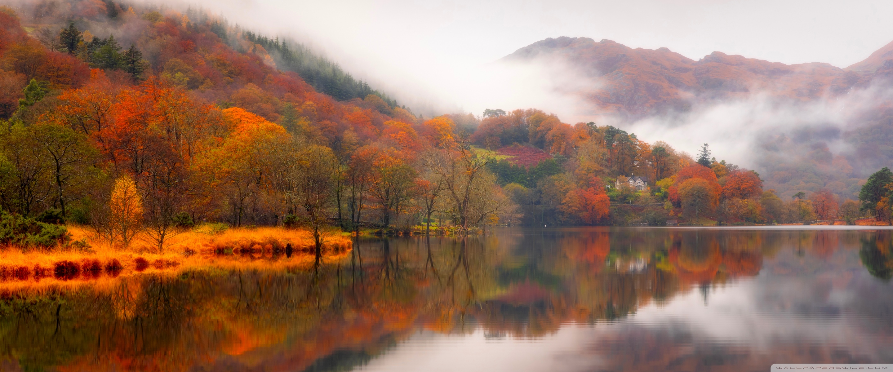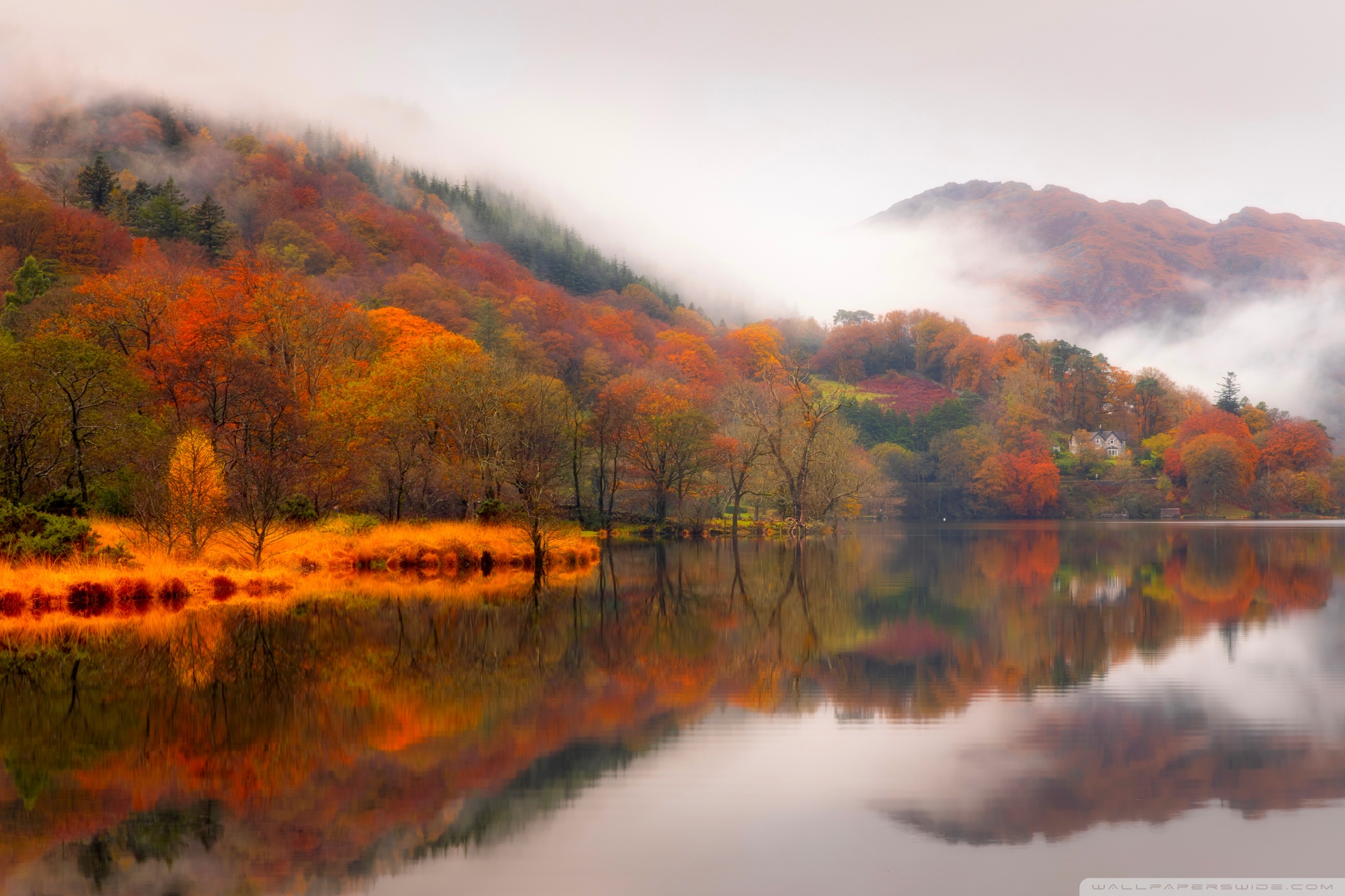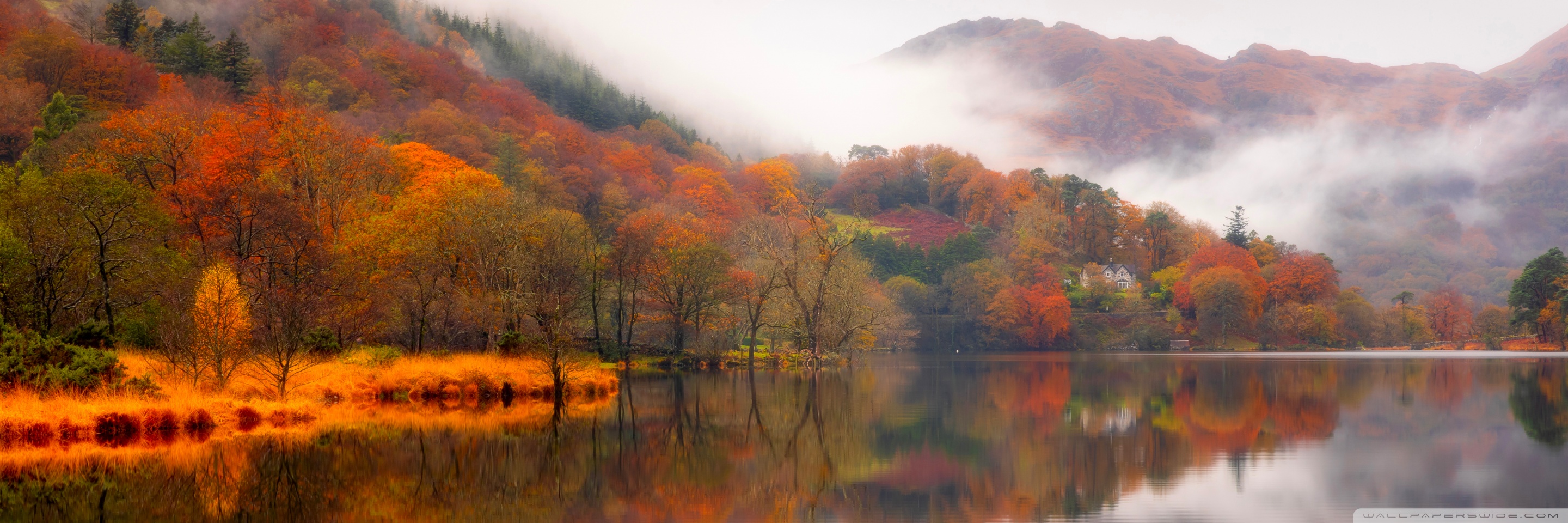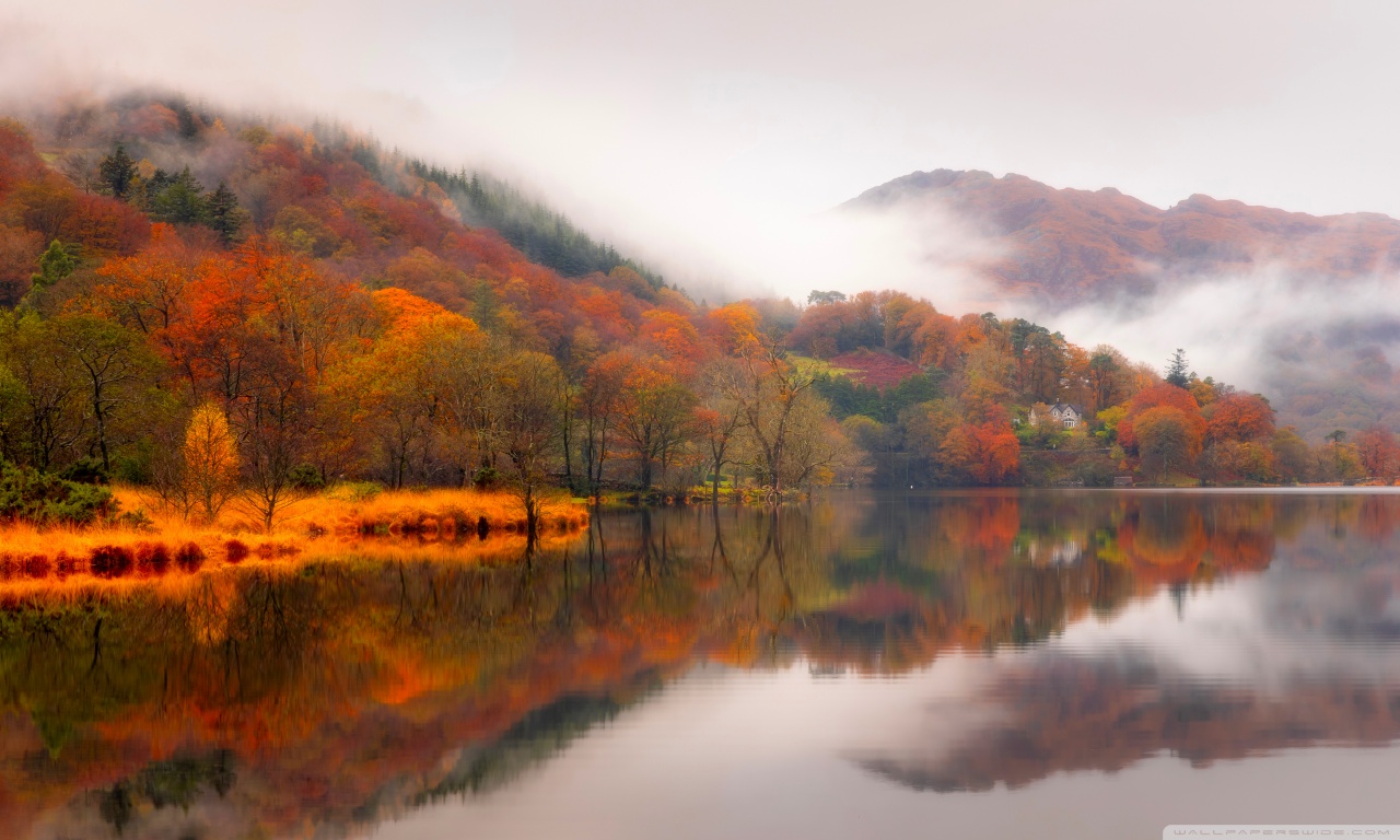 Download Autumn Lakeside House 4K UHD Wallpaper