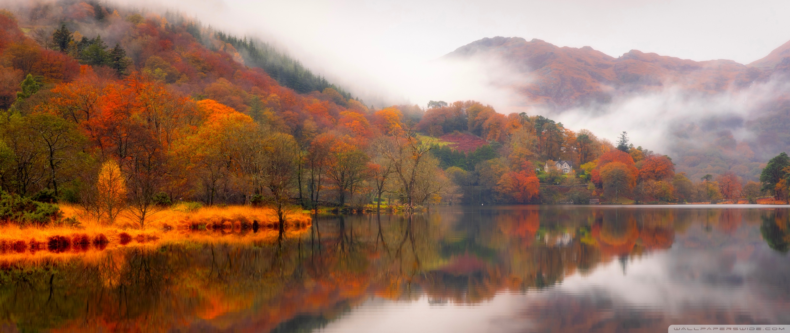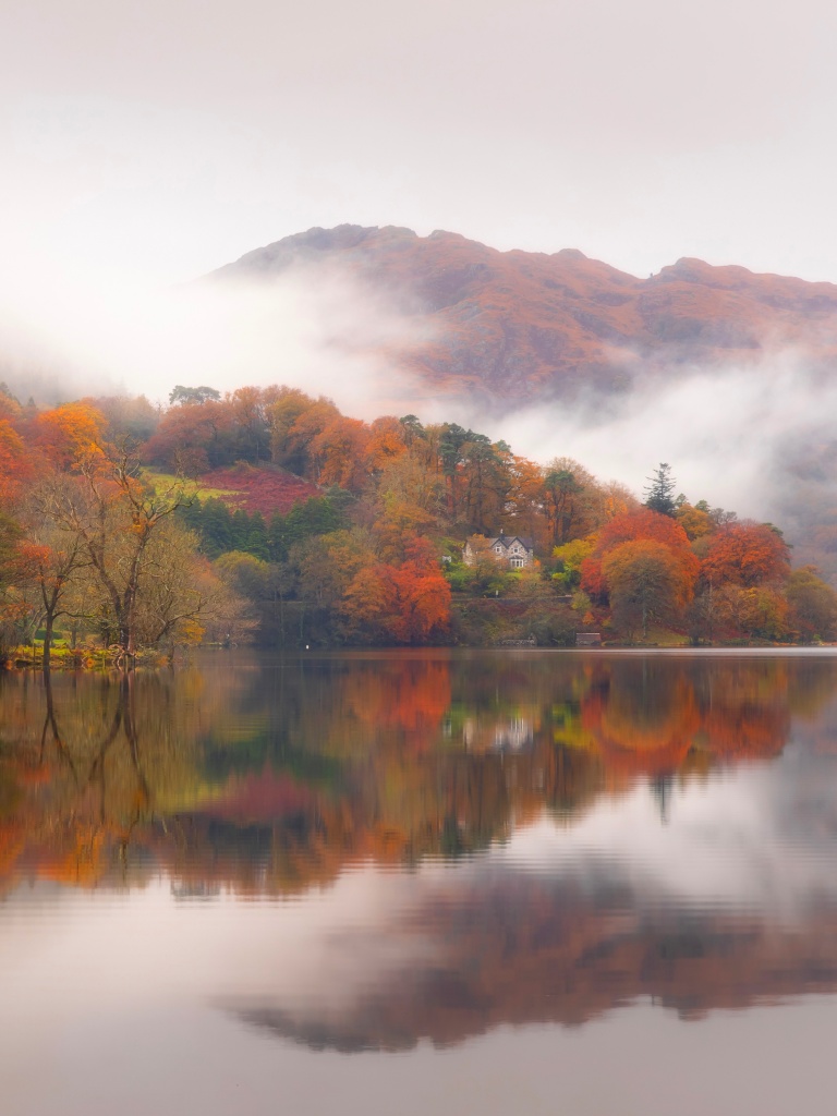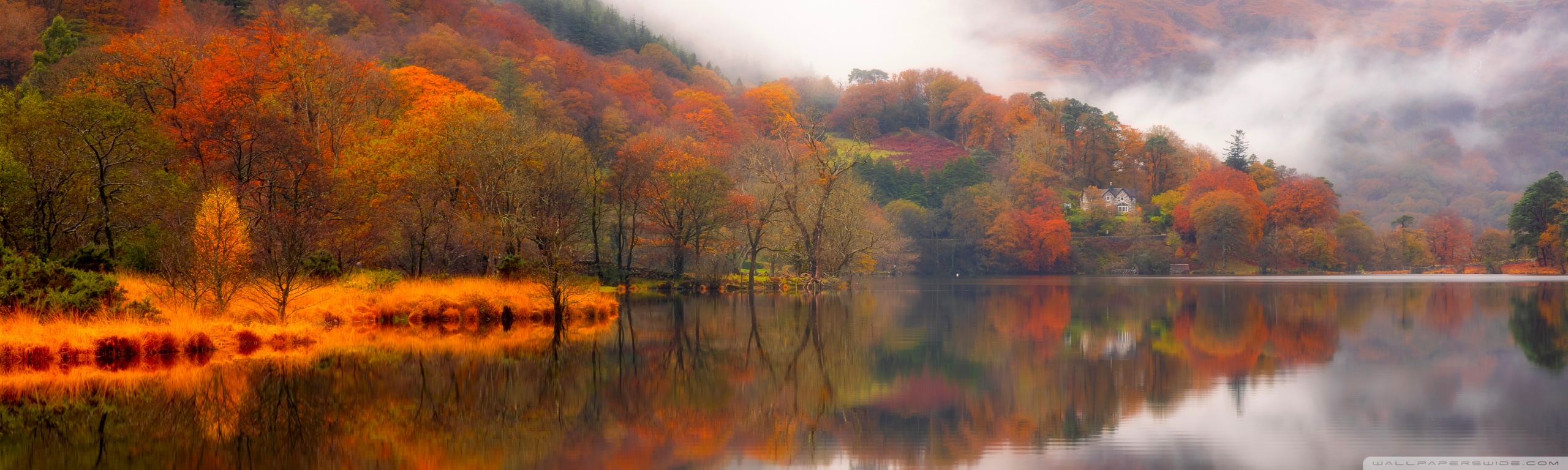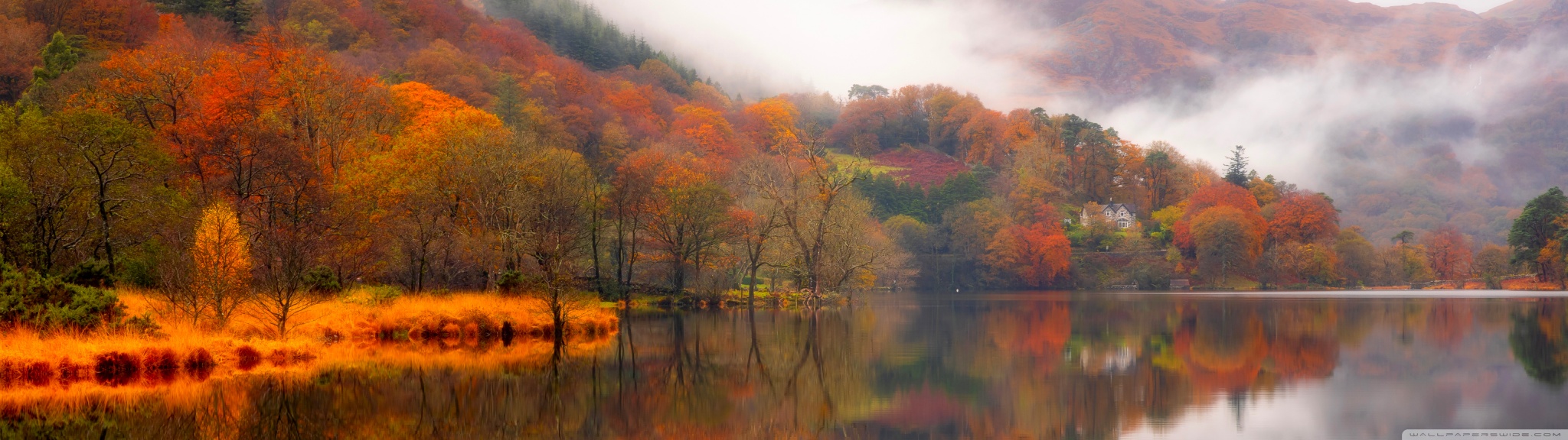 Download Autumn Lakeside House 4K UHD Wallpaper