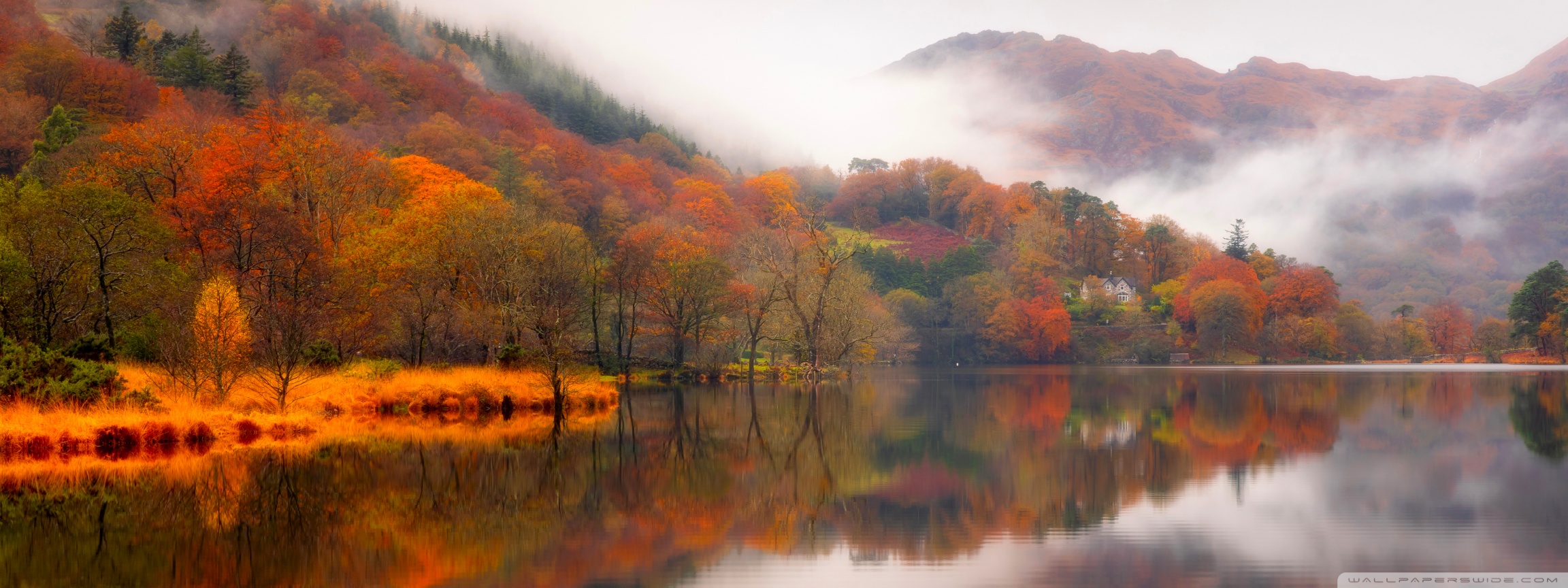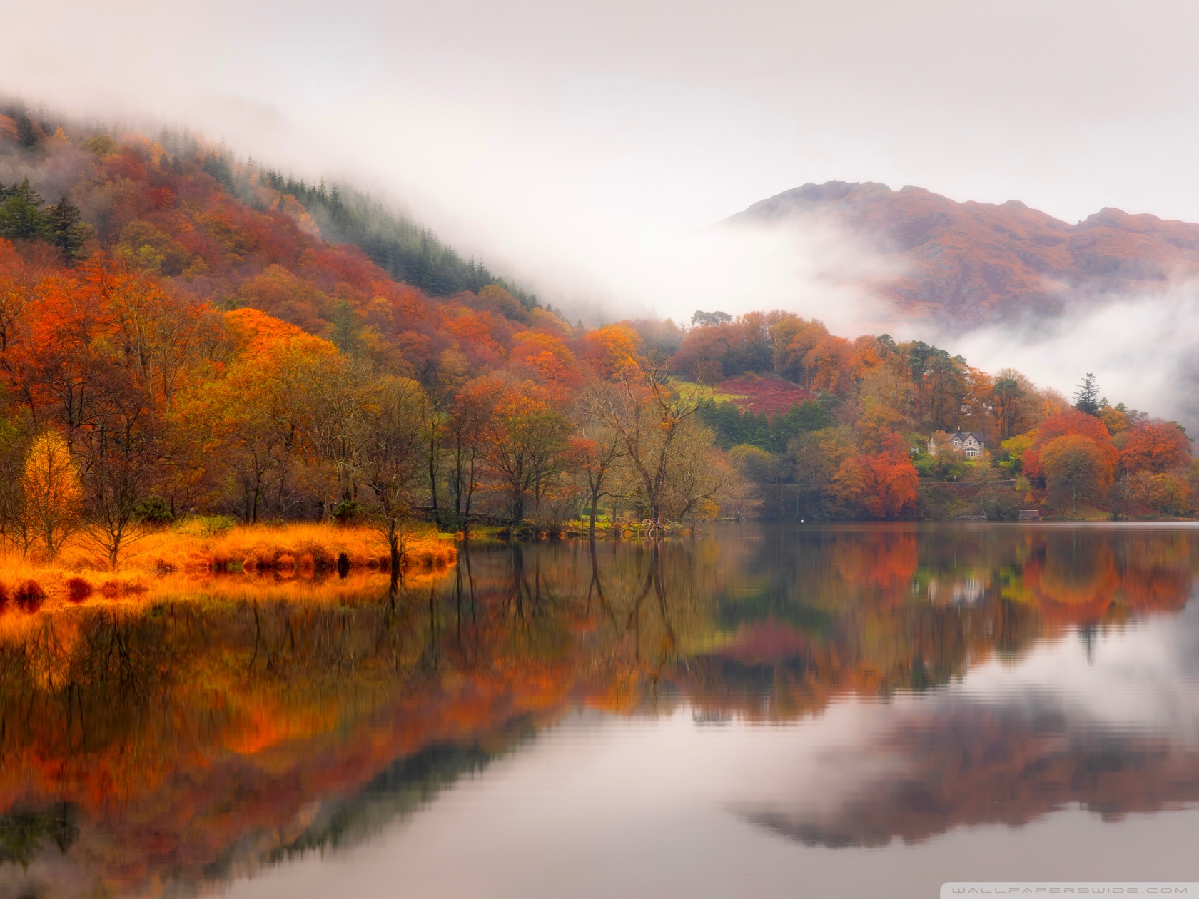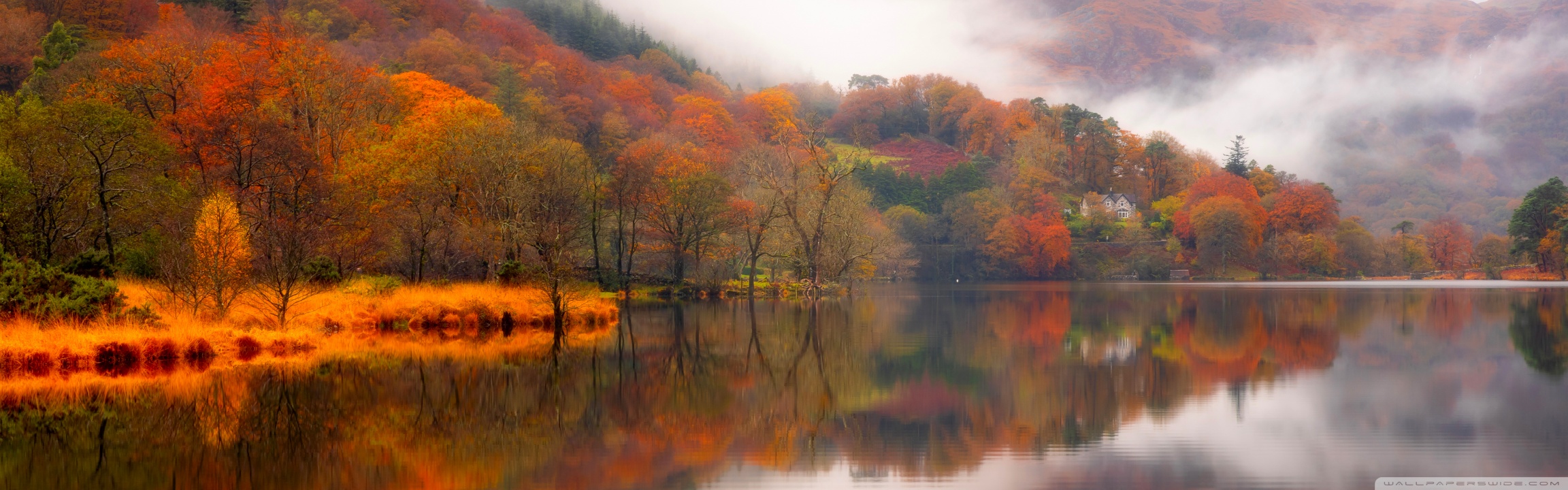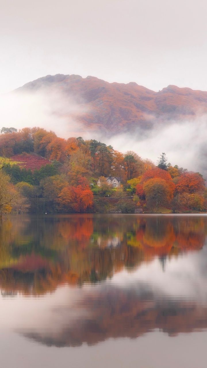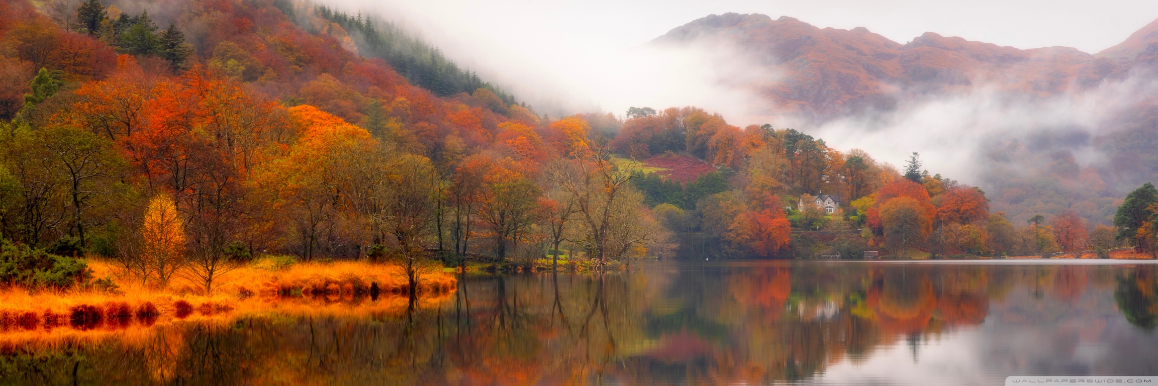 Download Autumn Lakeside House 4K UHD Wallpaper