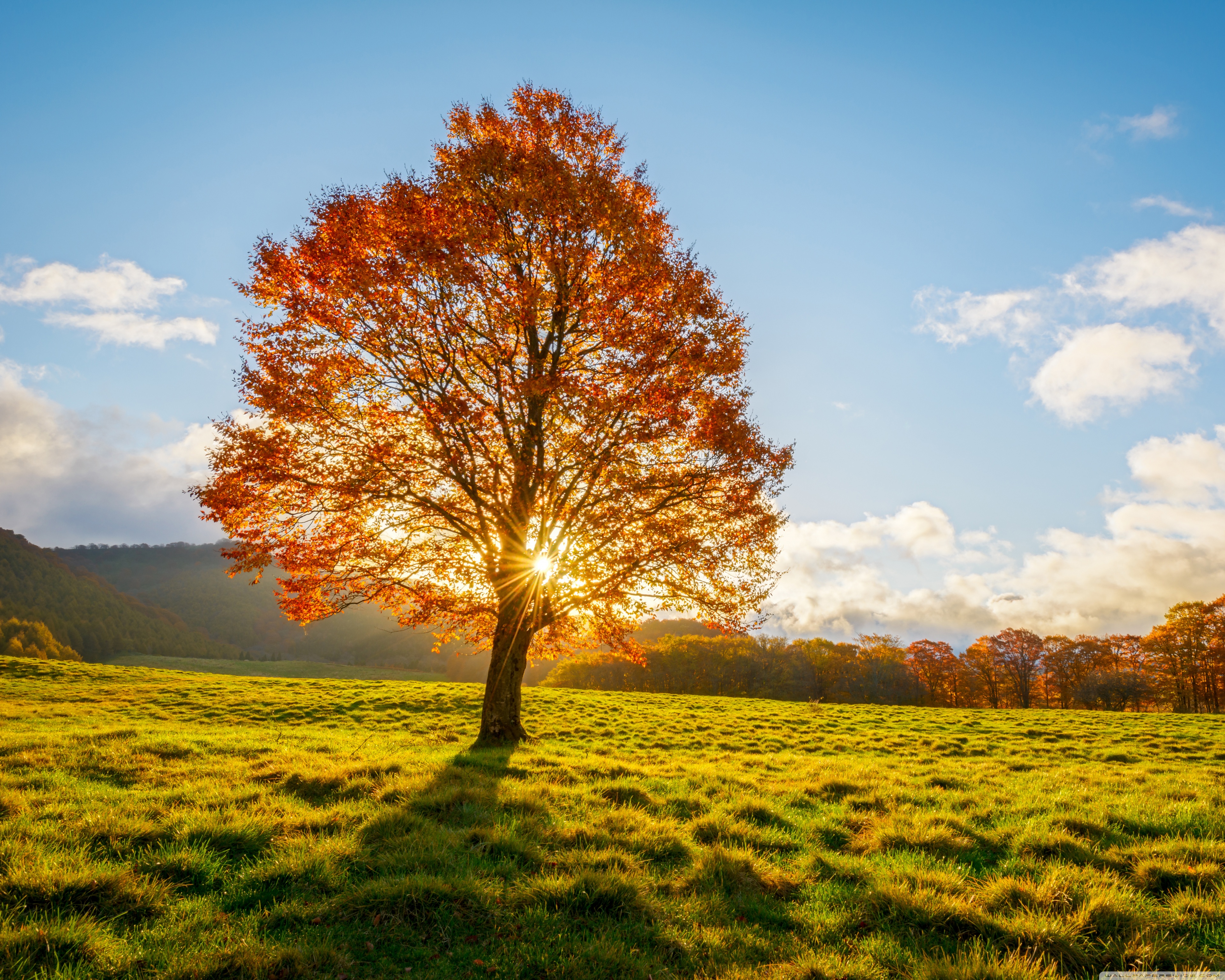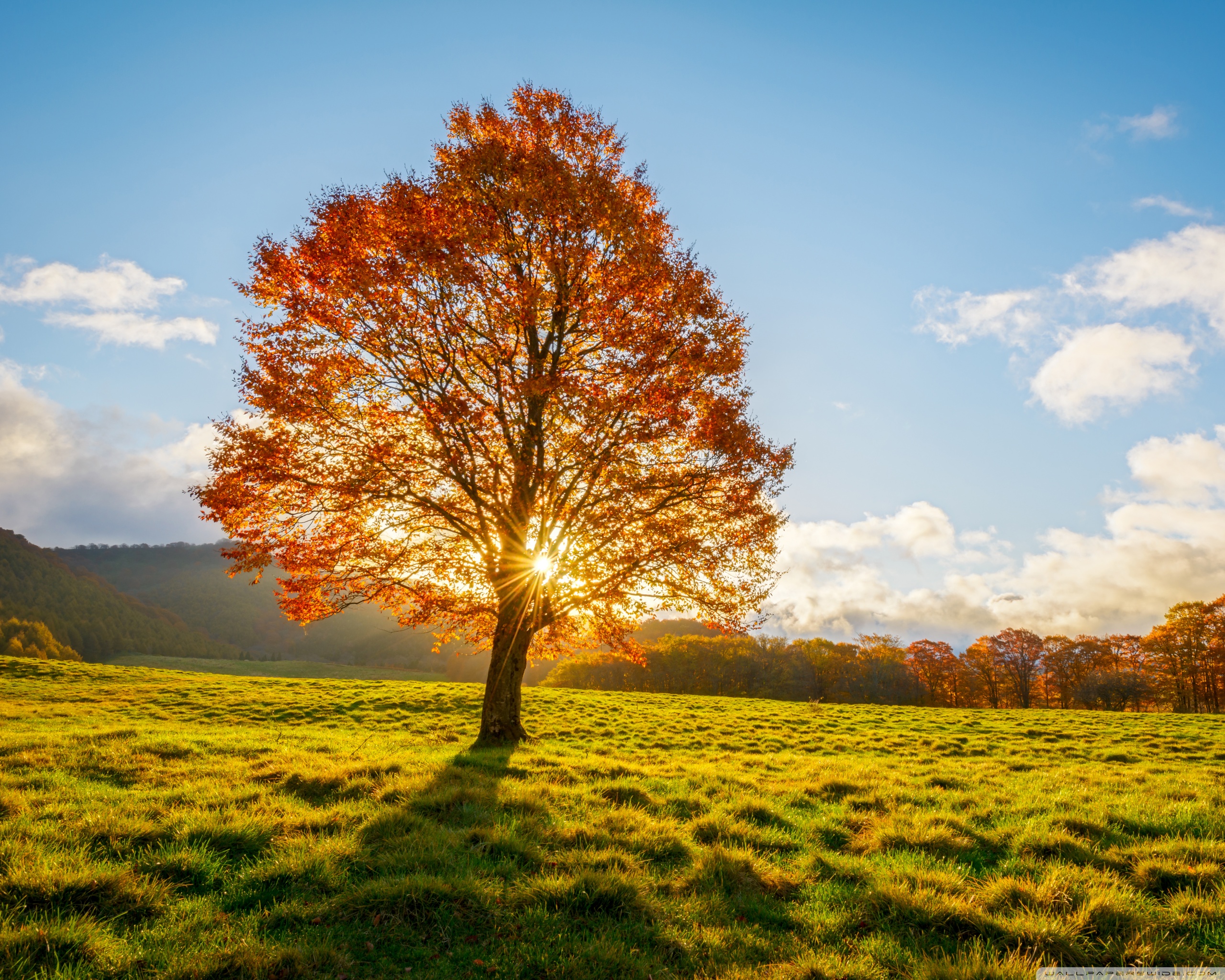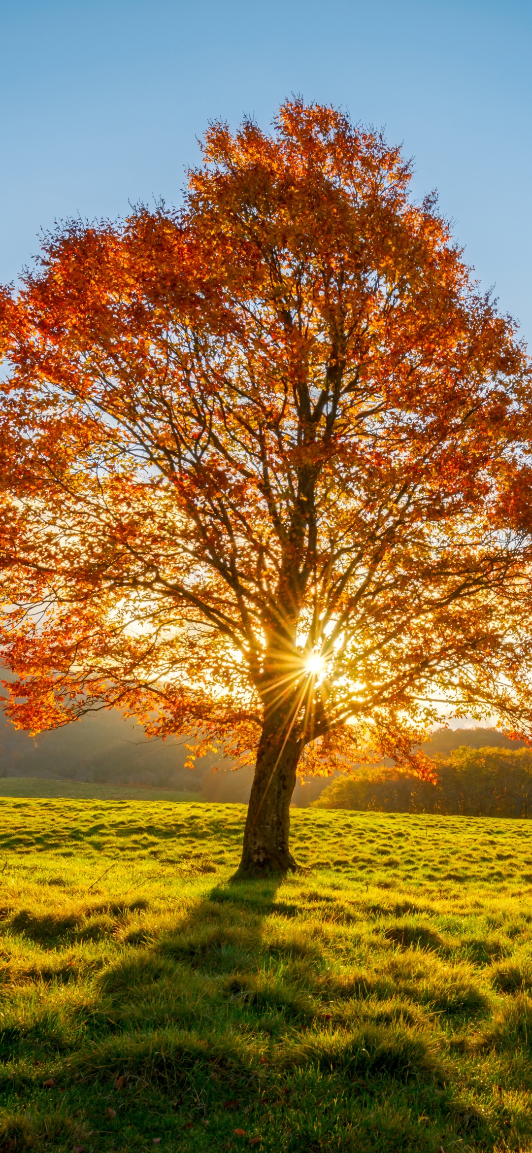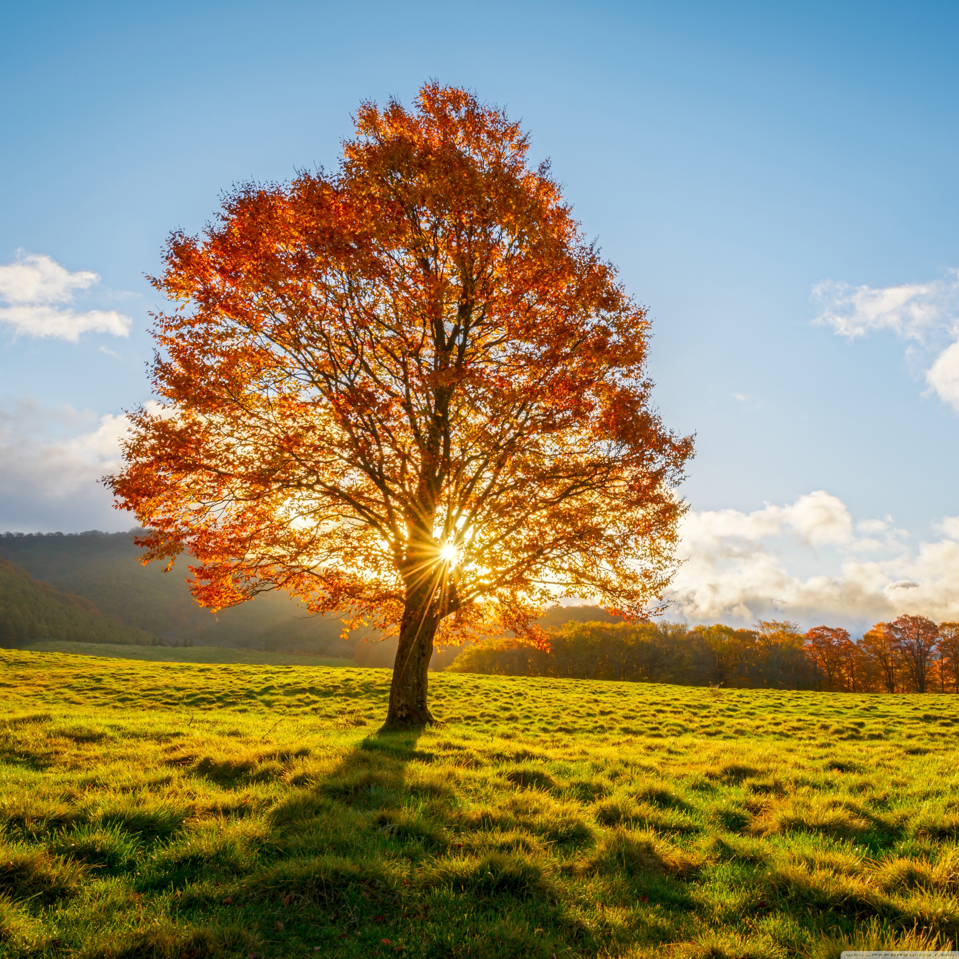 Download Autumn Sunshine Over Lone Orange Tree 4K UHD Wallpaper