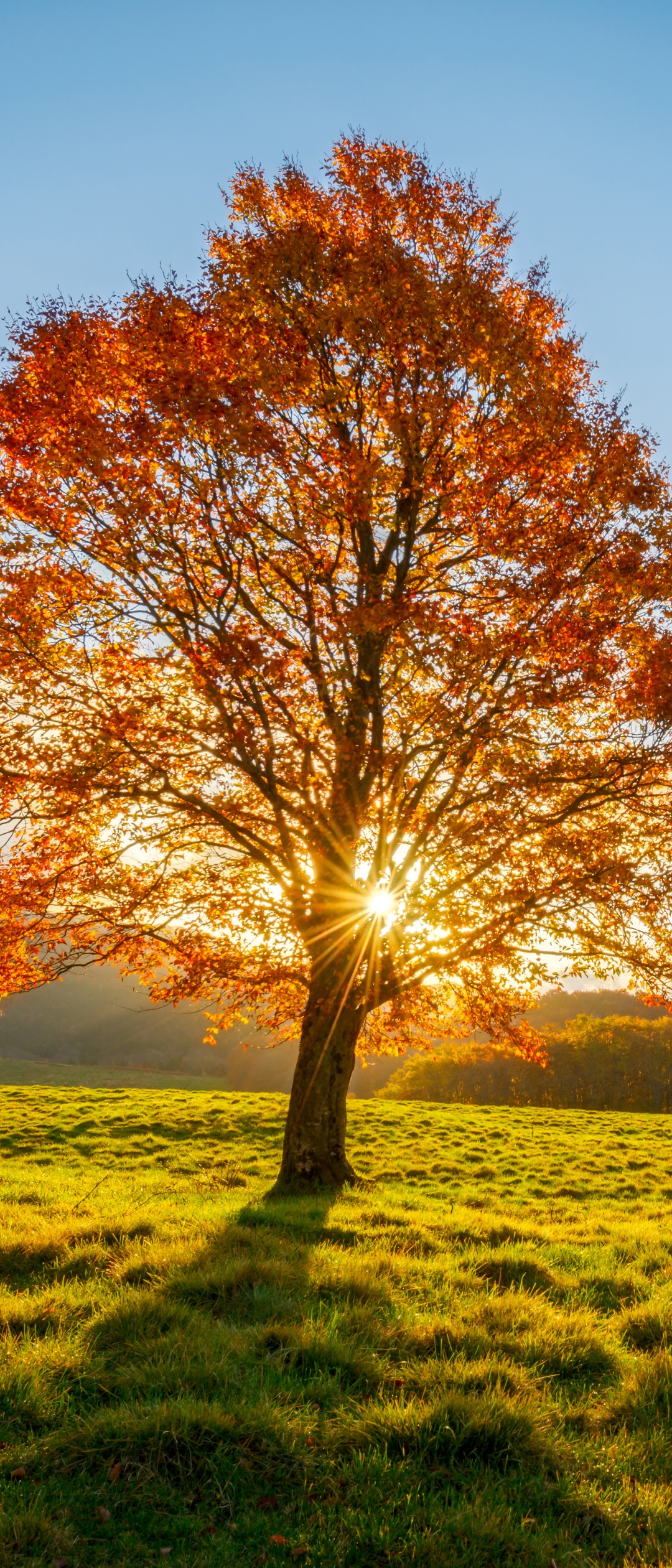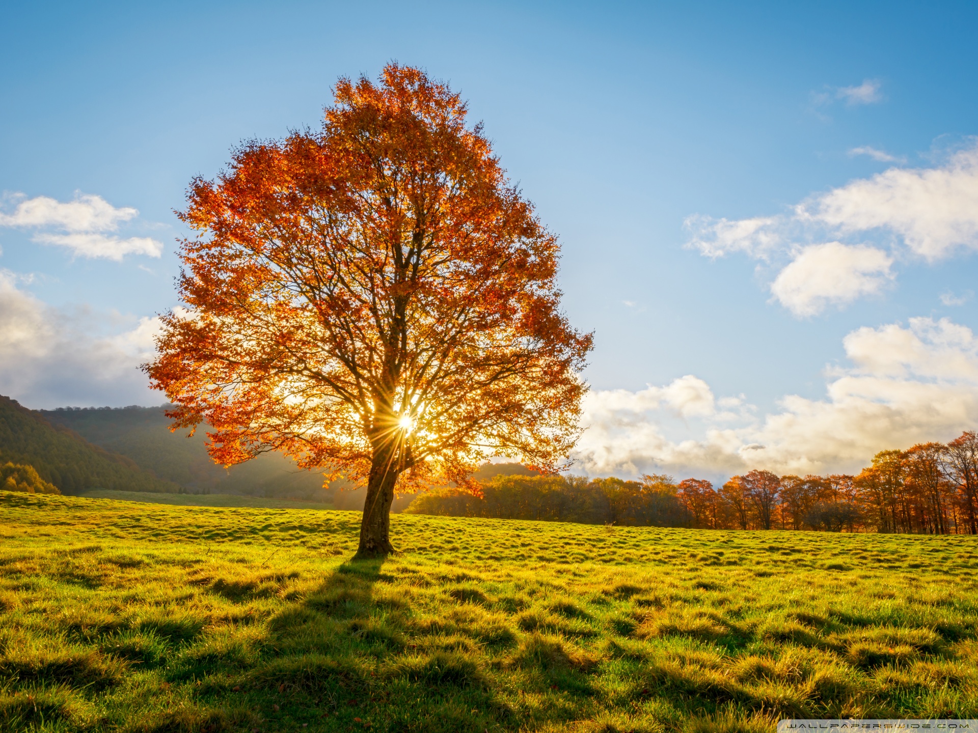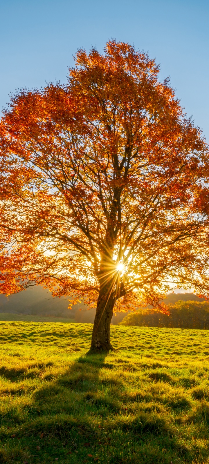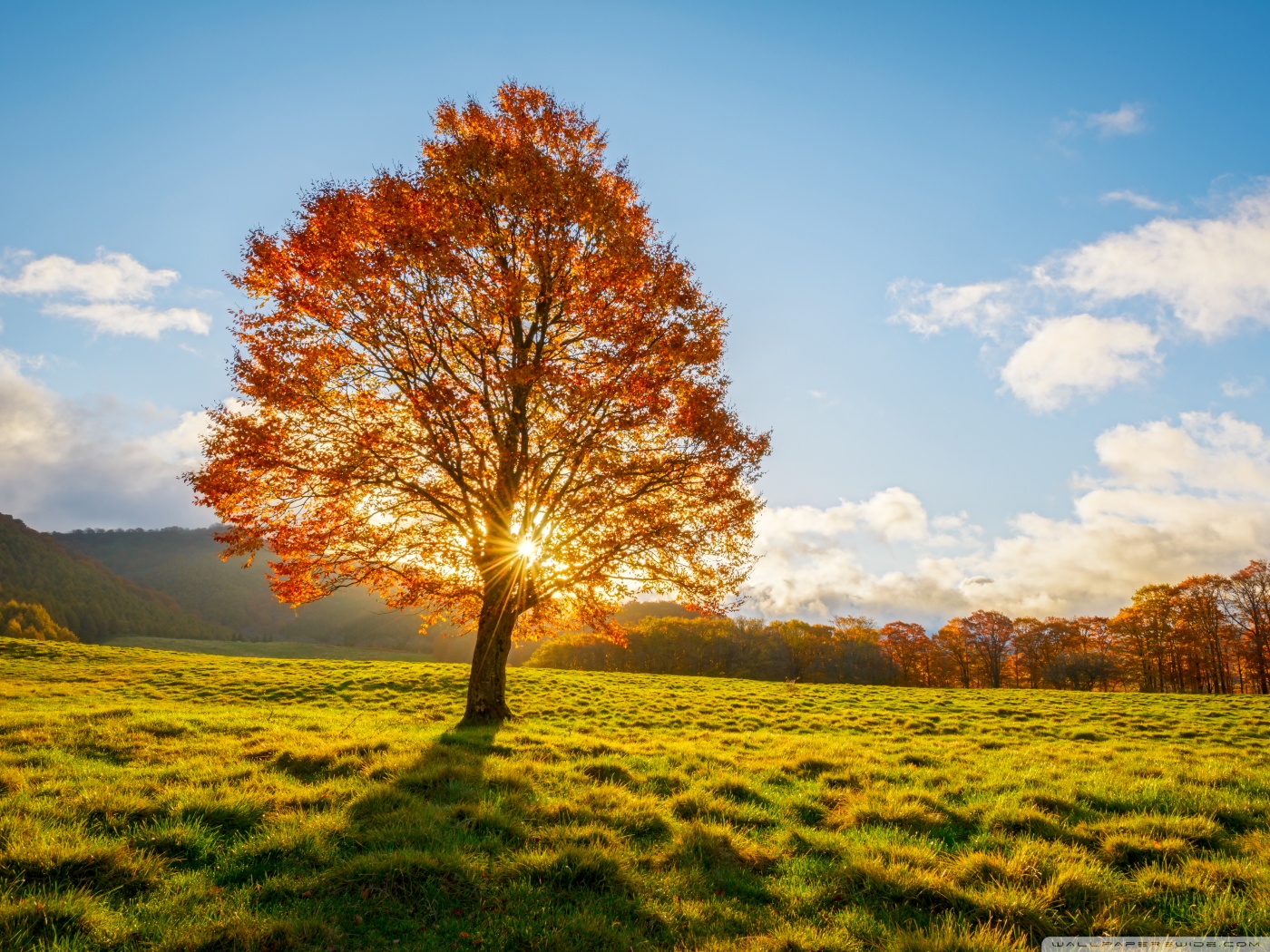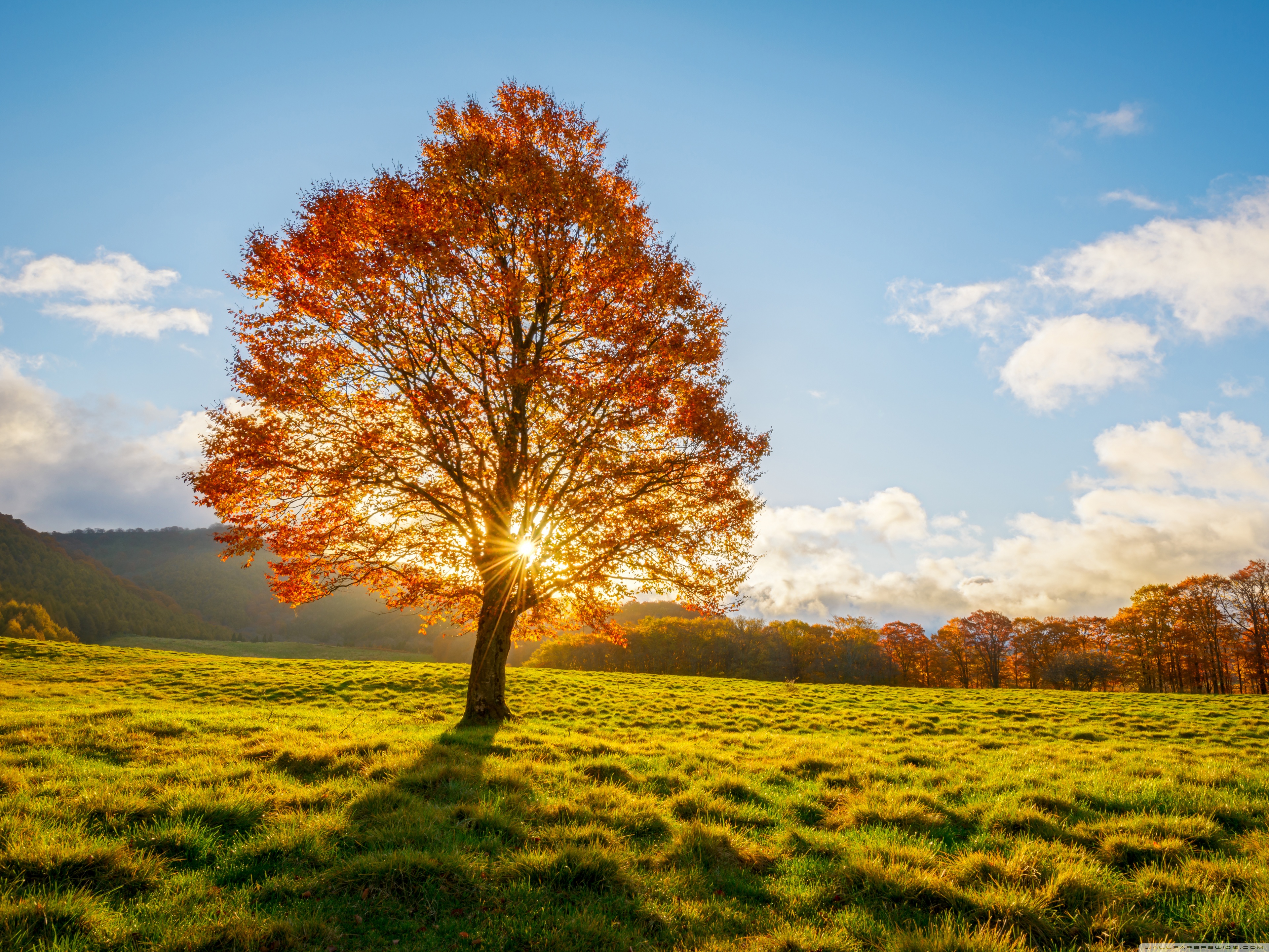 Download Autumn Sunshine Over Lone Orange Tree 4K UHD Wallpaper