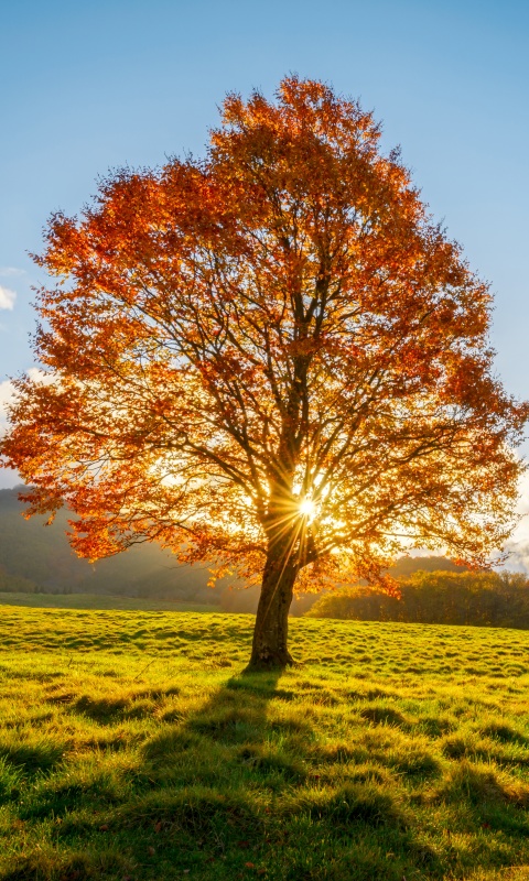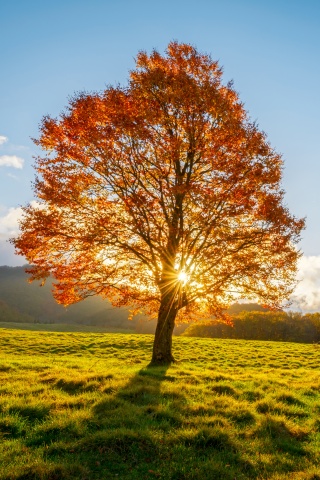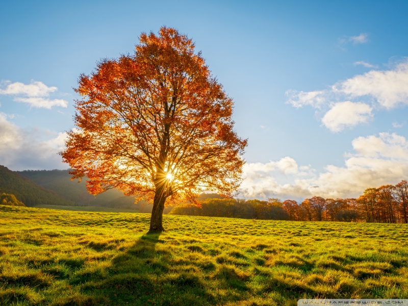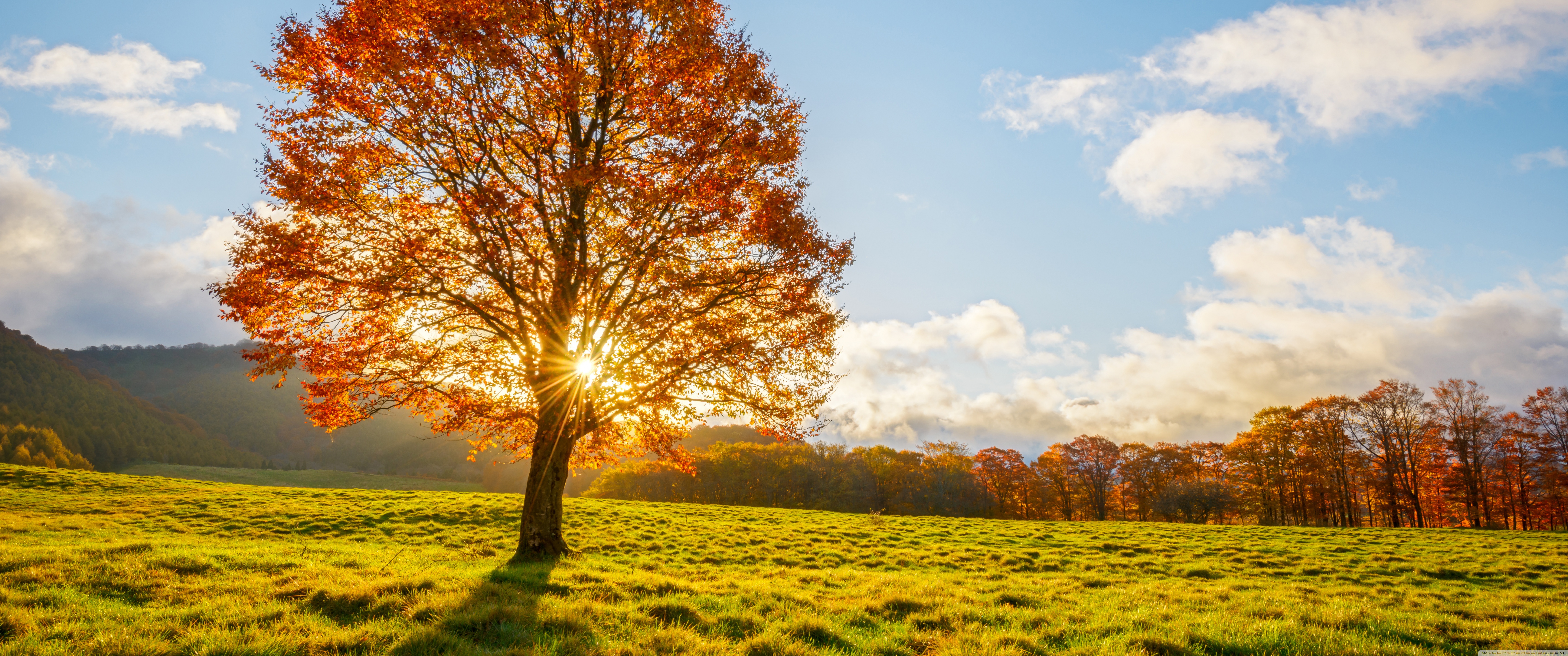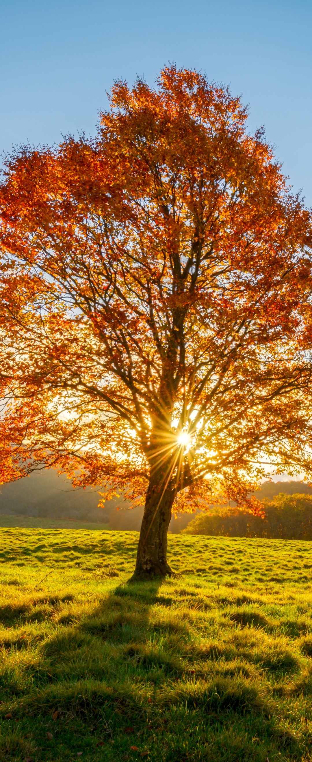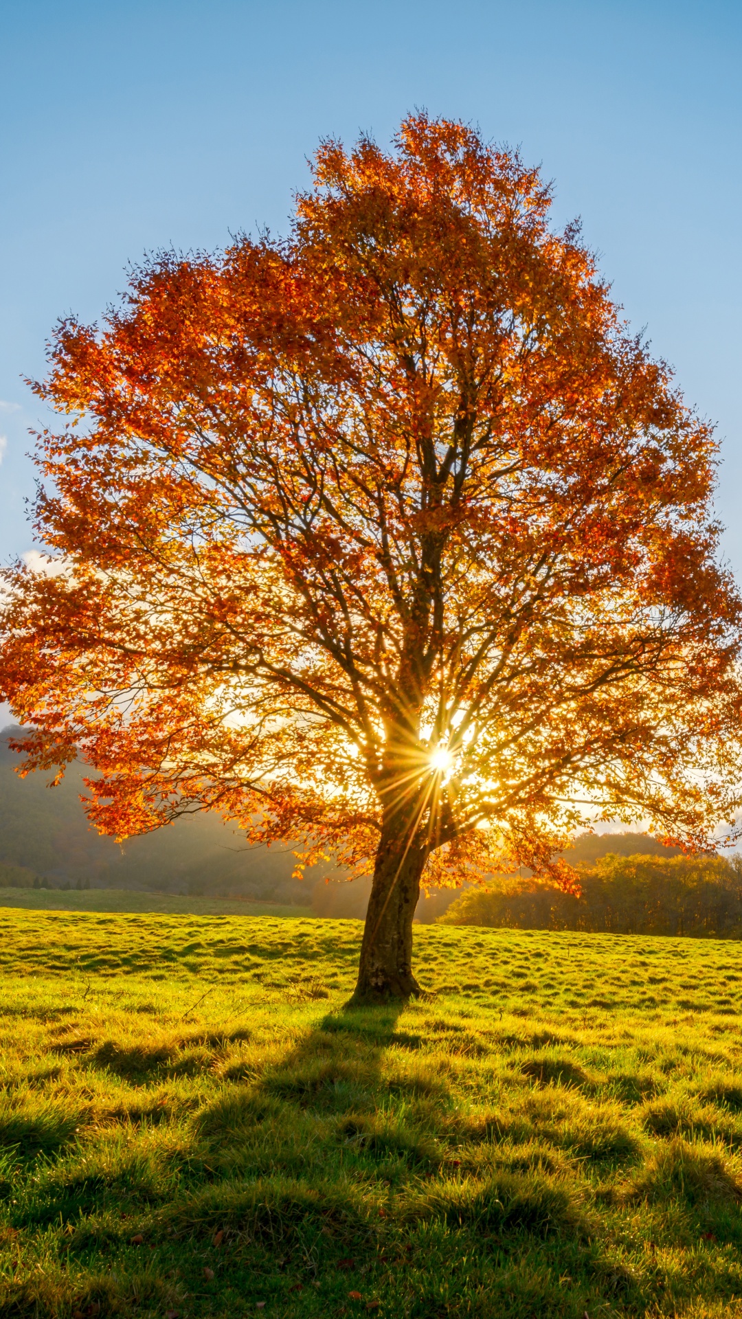 Download Autumn Sunshine Over Lone Orange Tree 4K UHD Wallpaper
