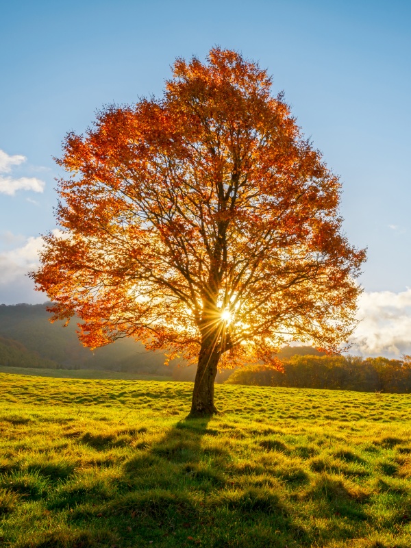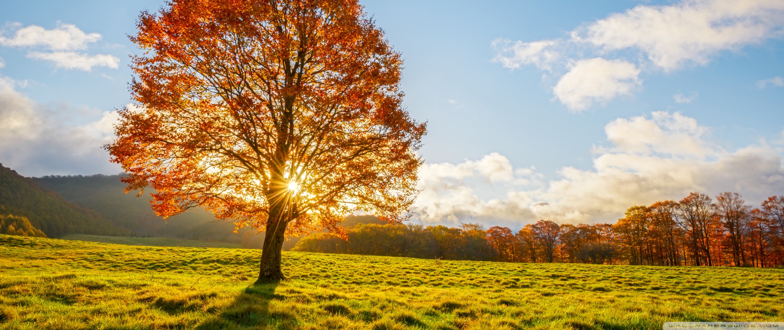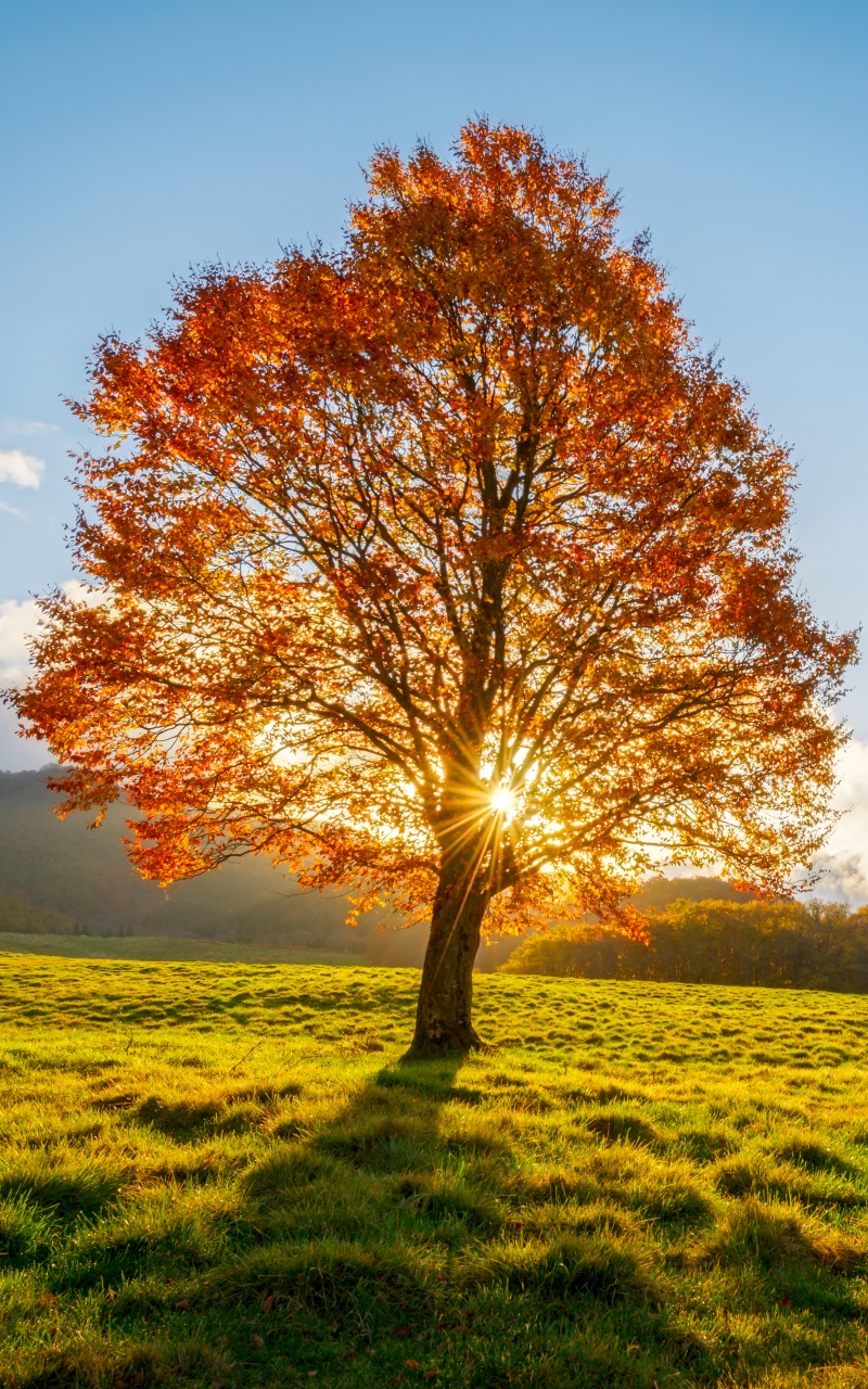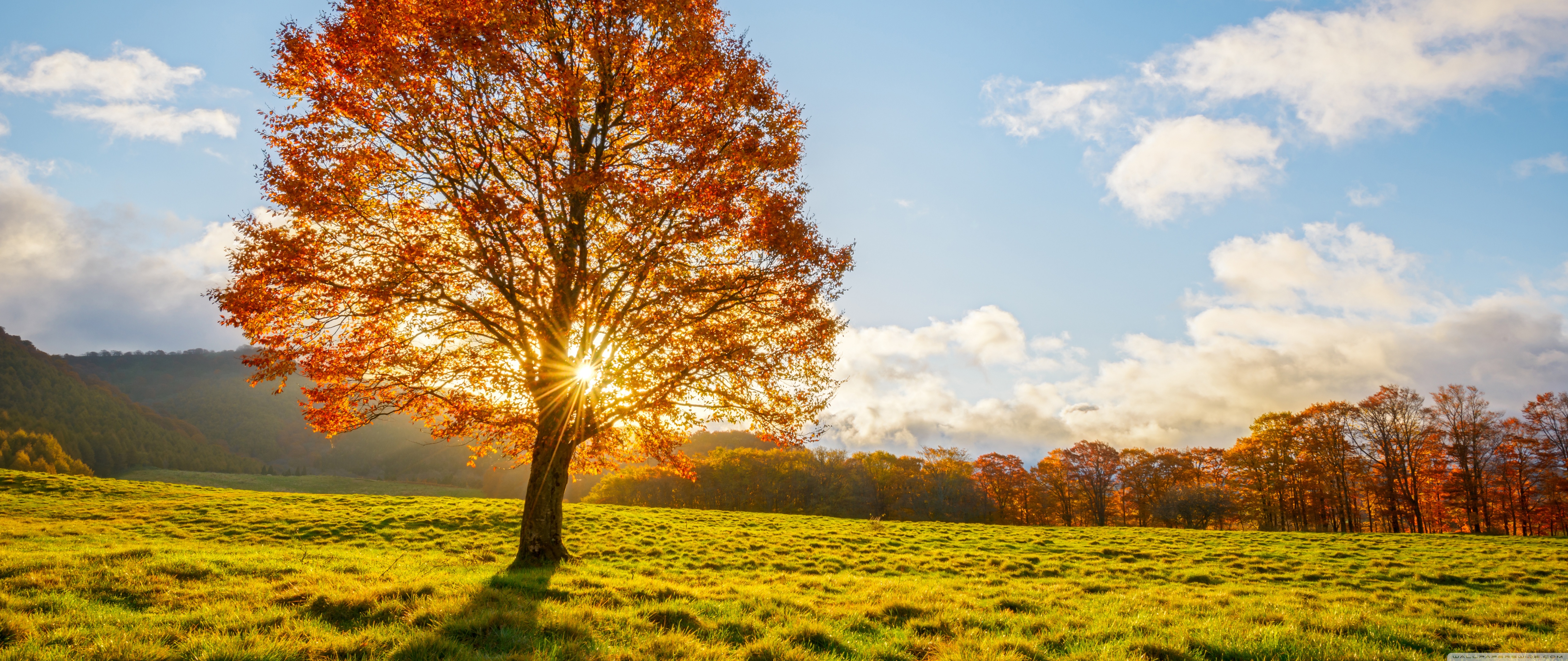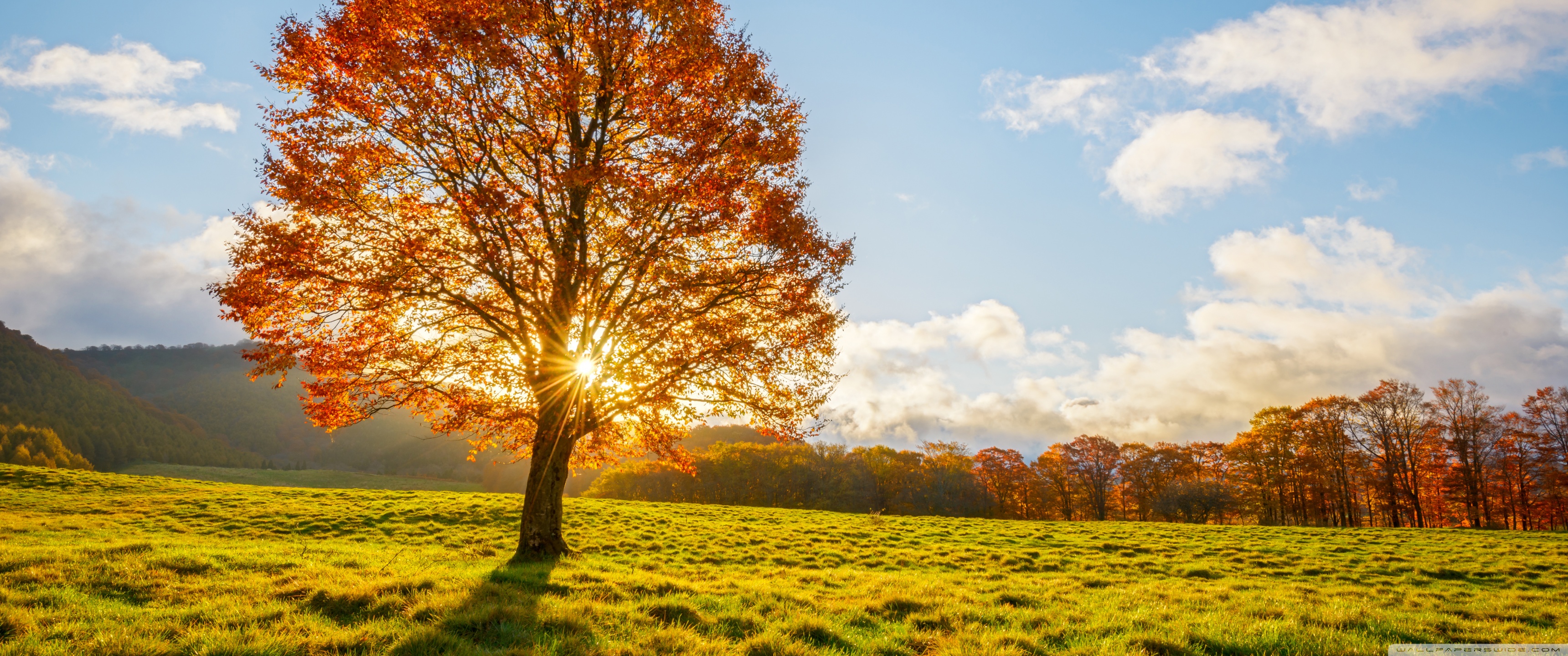 Download Autumn Sunshine Over Lone Orange Tree 4K UHD Wallpaper