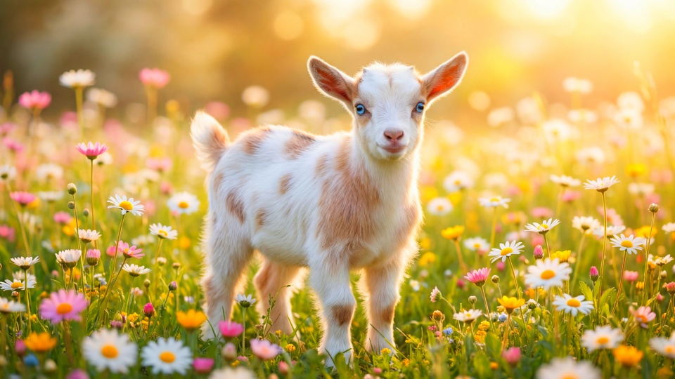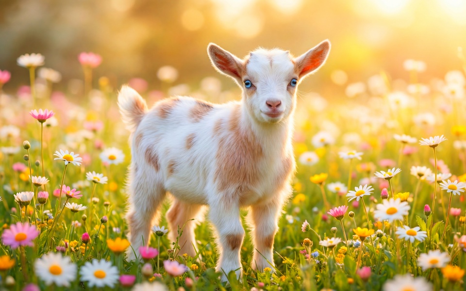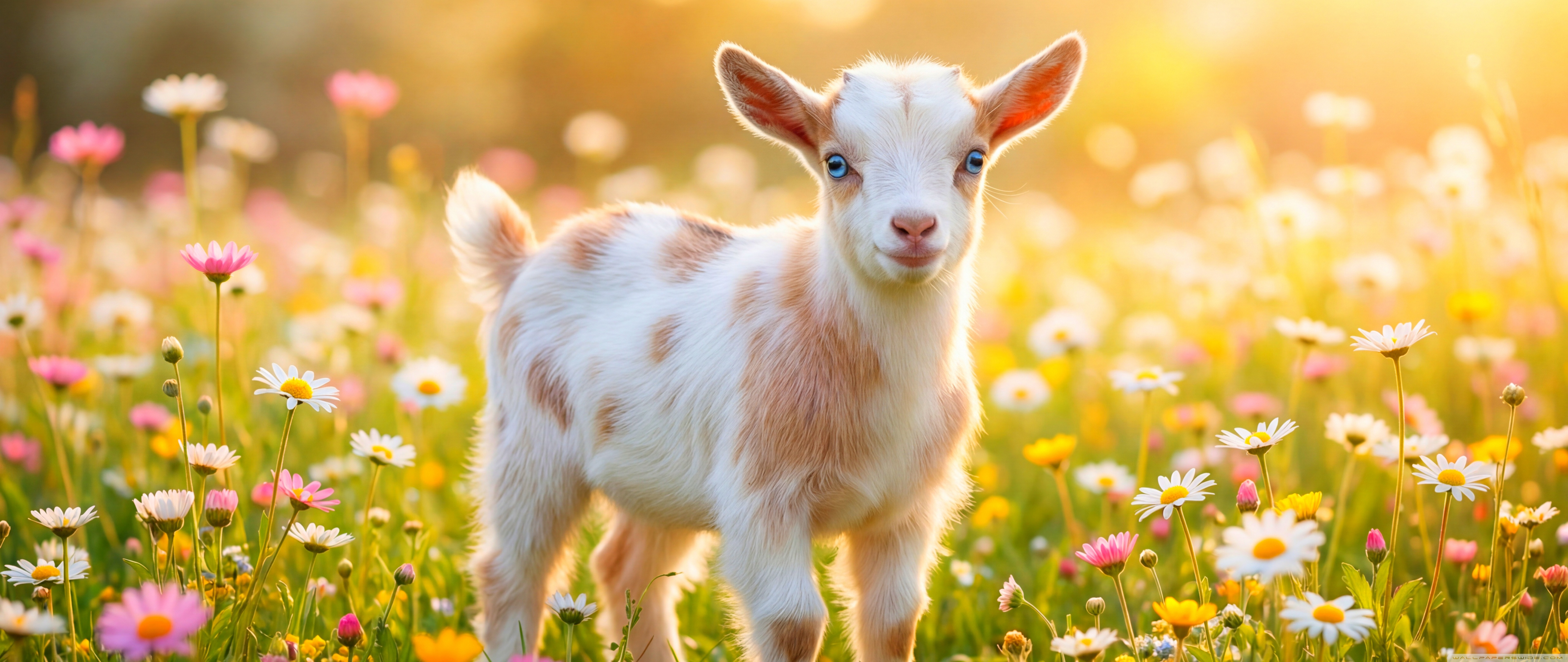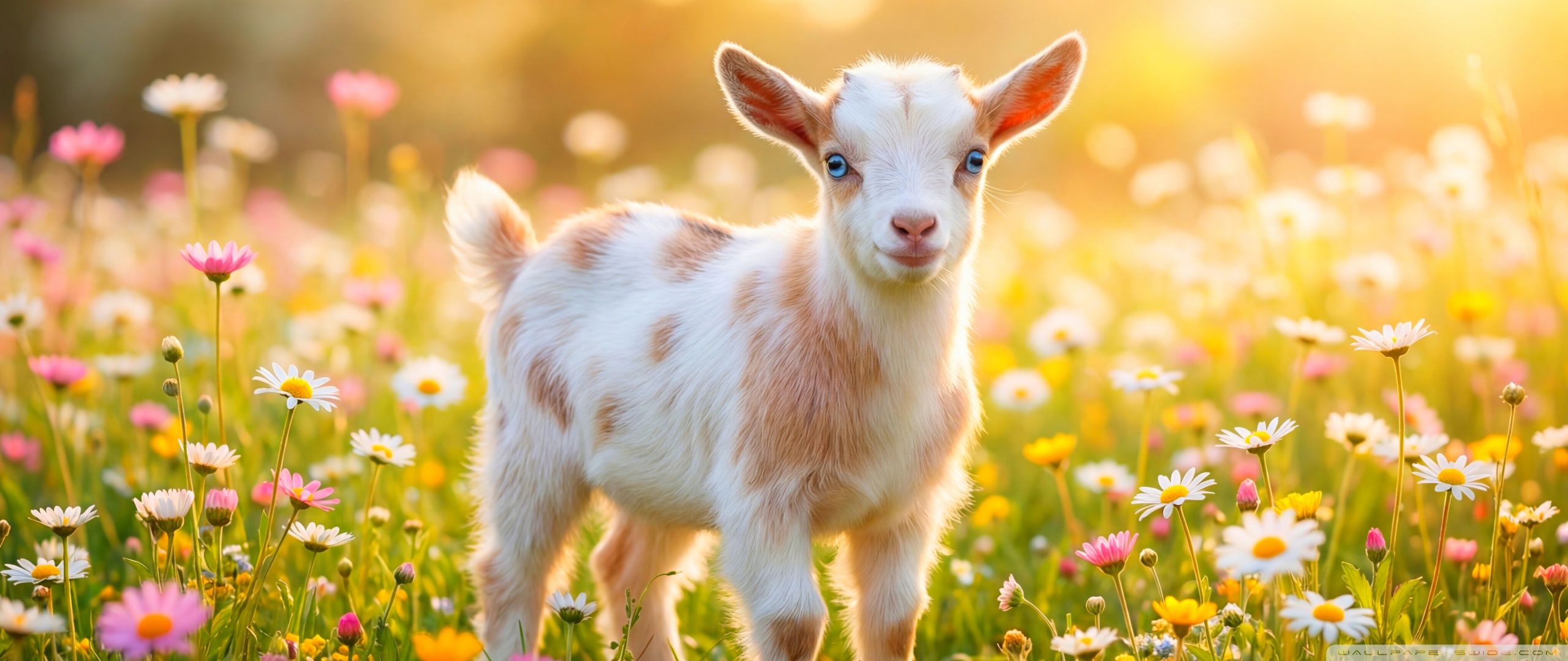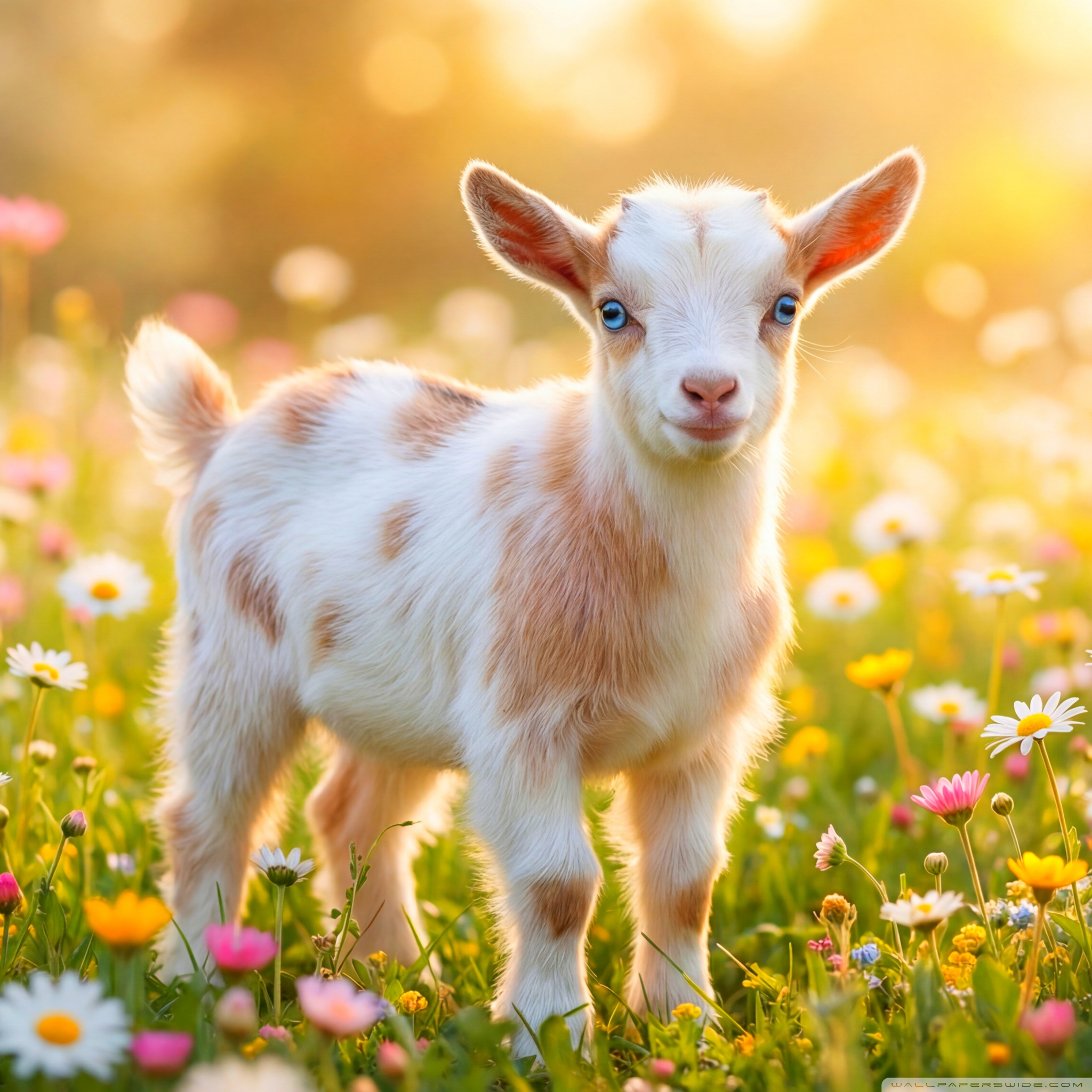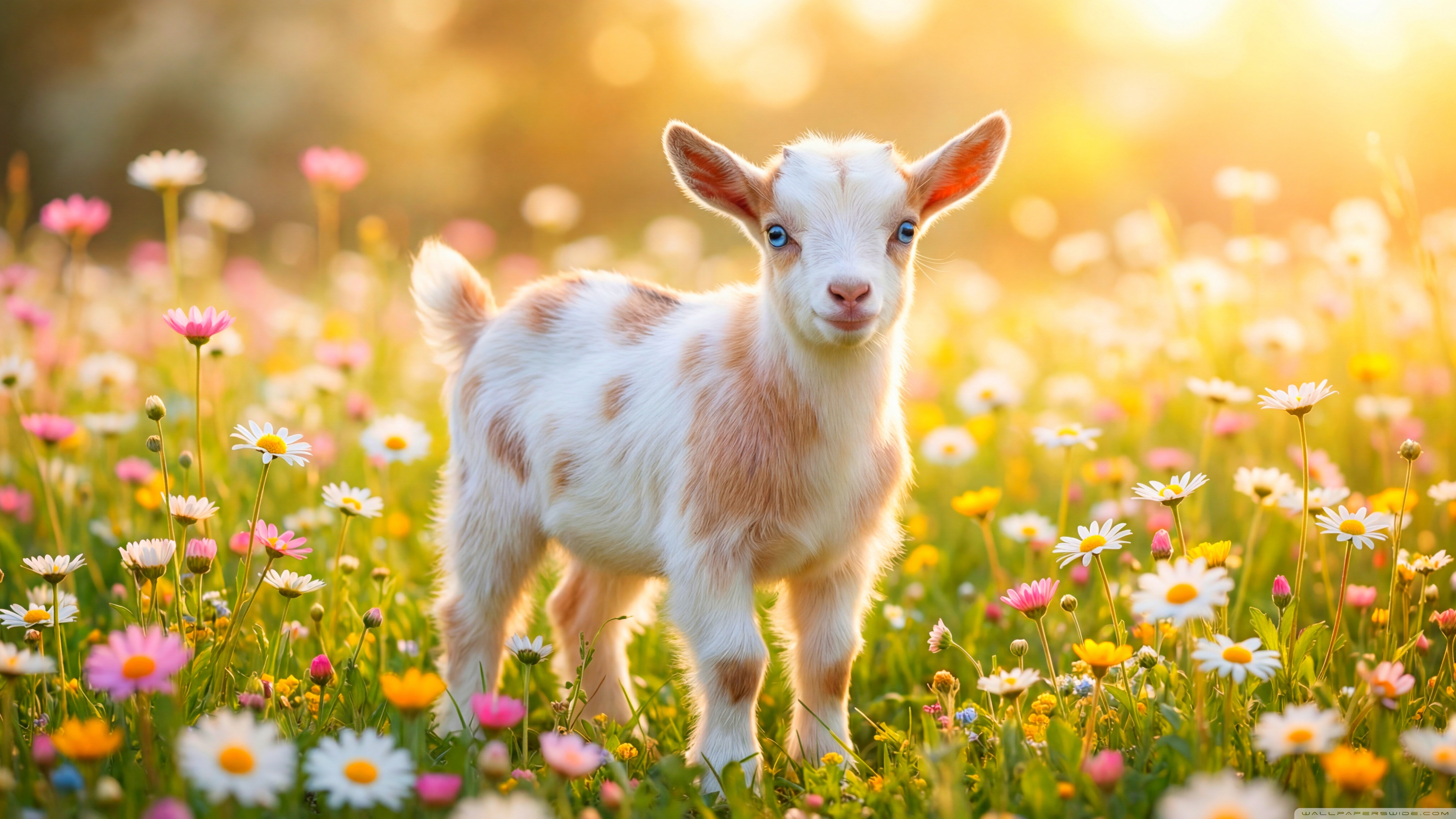 Download Baby Goat in a Spring Flower Meadow 4K UHD Wallpaper