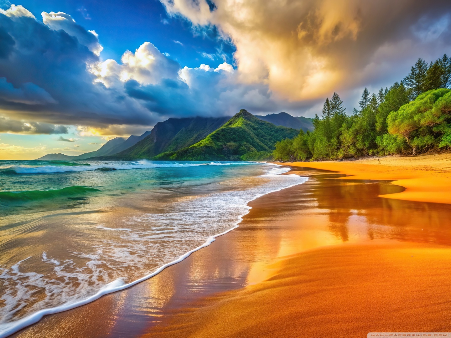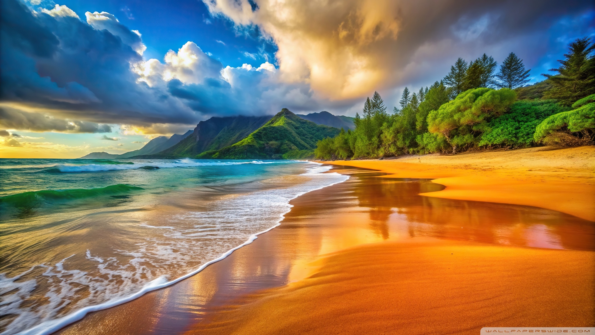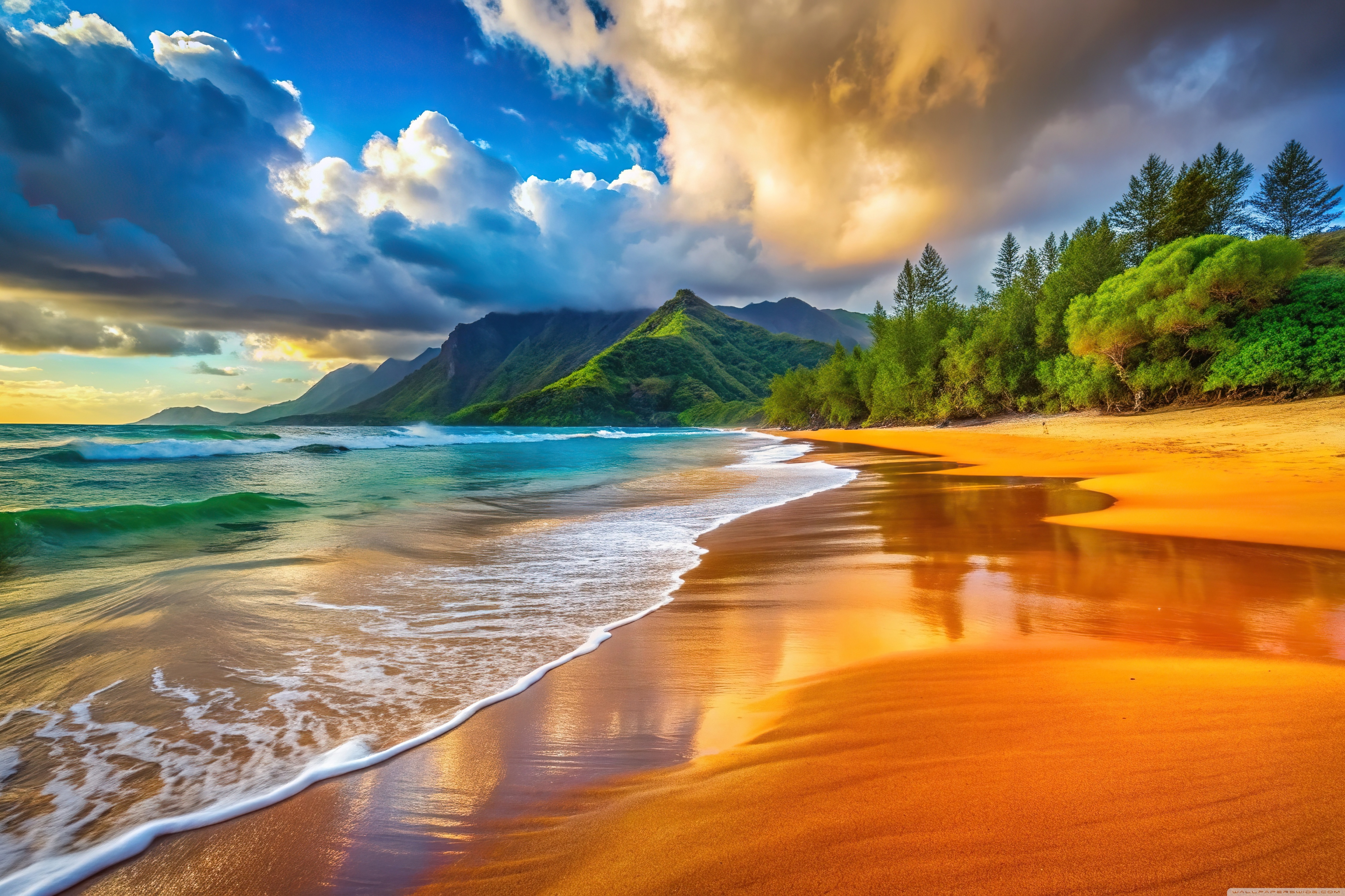 Download Beach, Wave, Vacation, Summer, Travel, Clouds 4K UHD Wallpaper