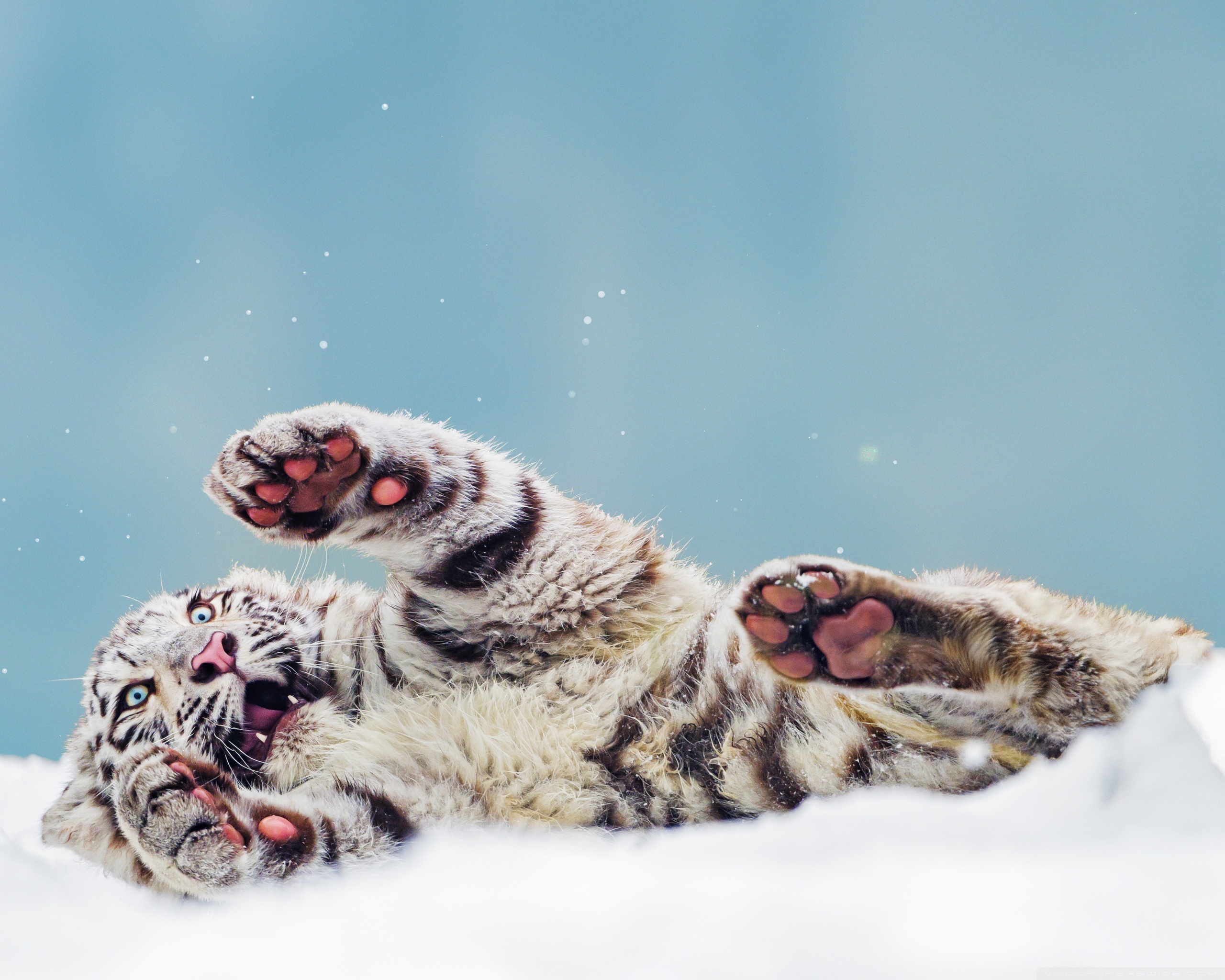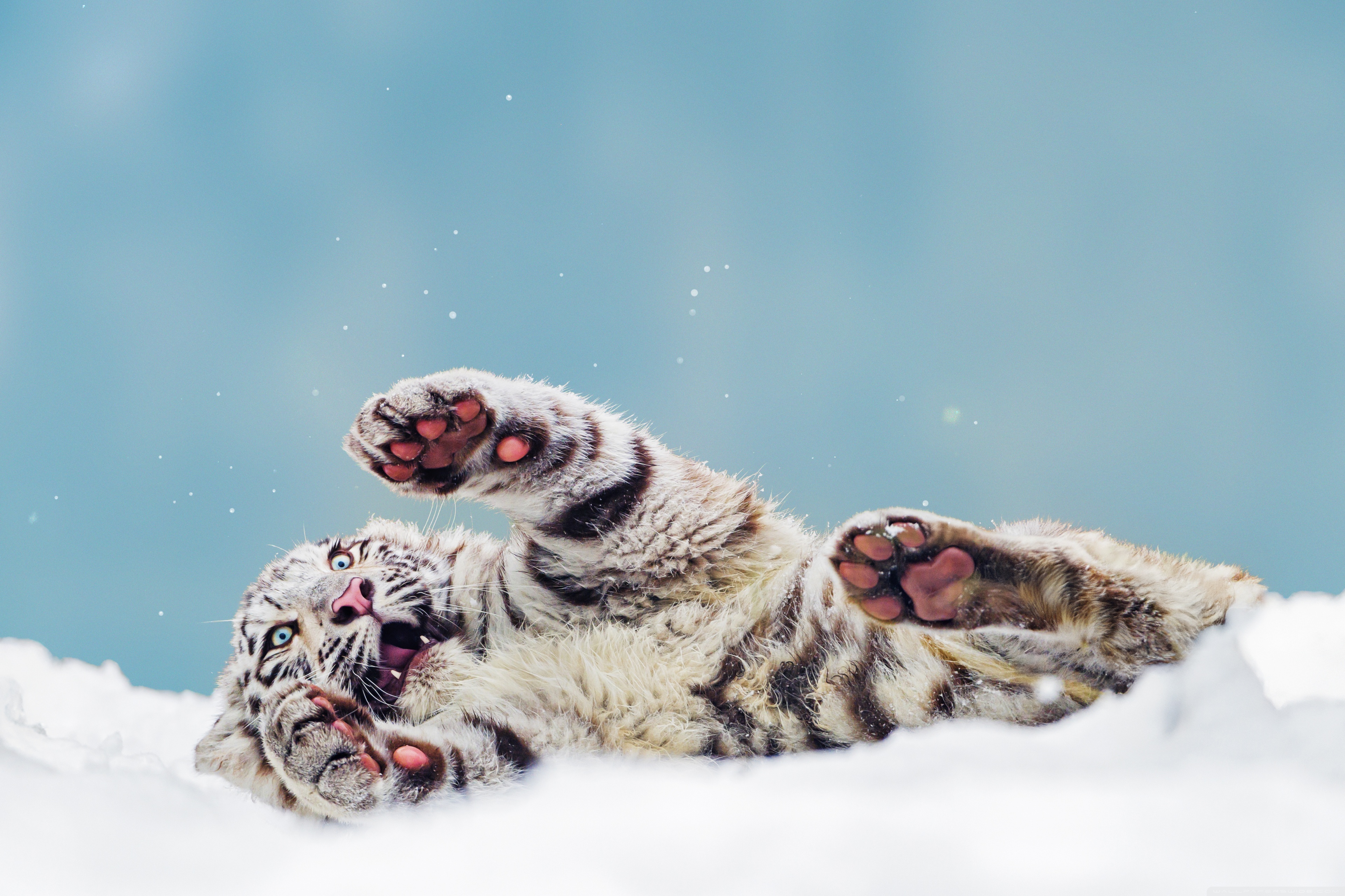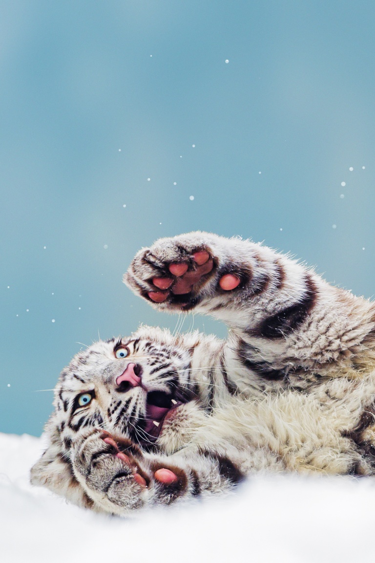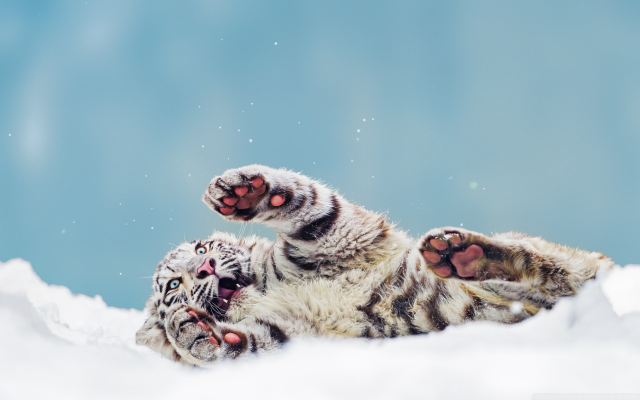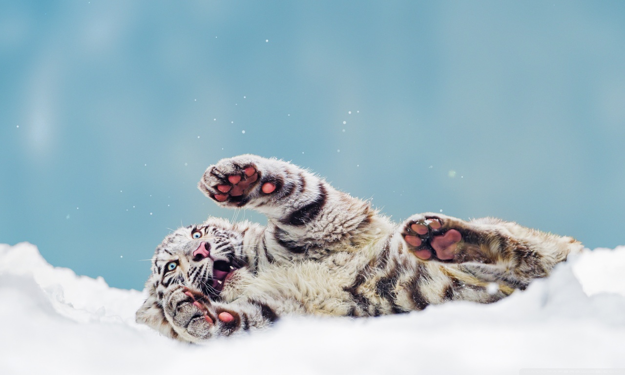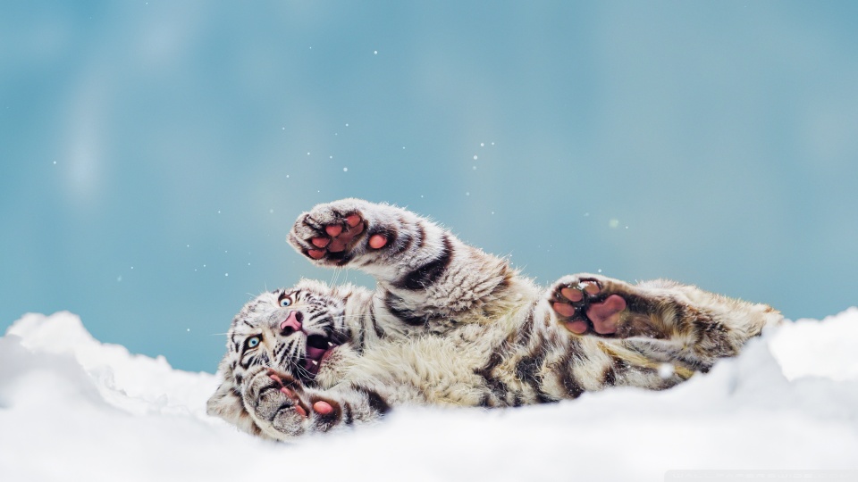 Download Bengal Tiger Cub Playing in the Snow 4K UHD Wallpaper