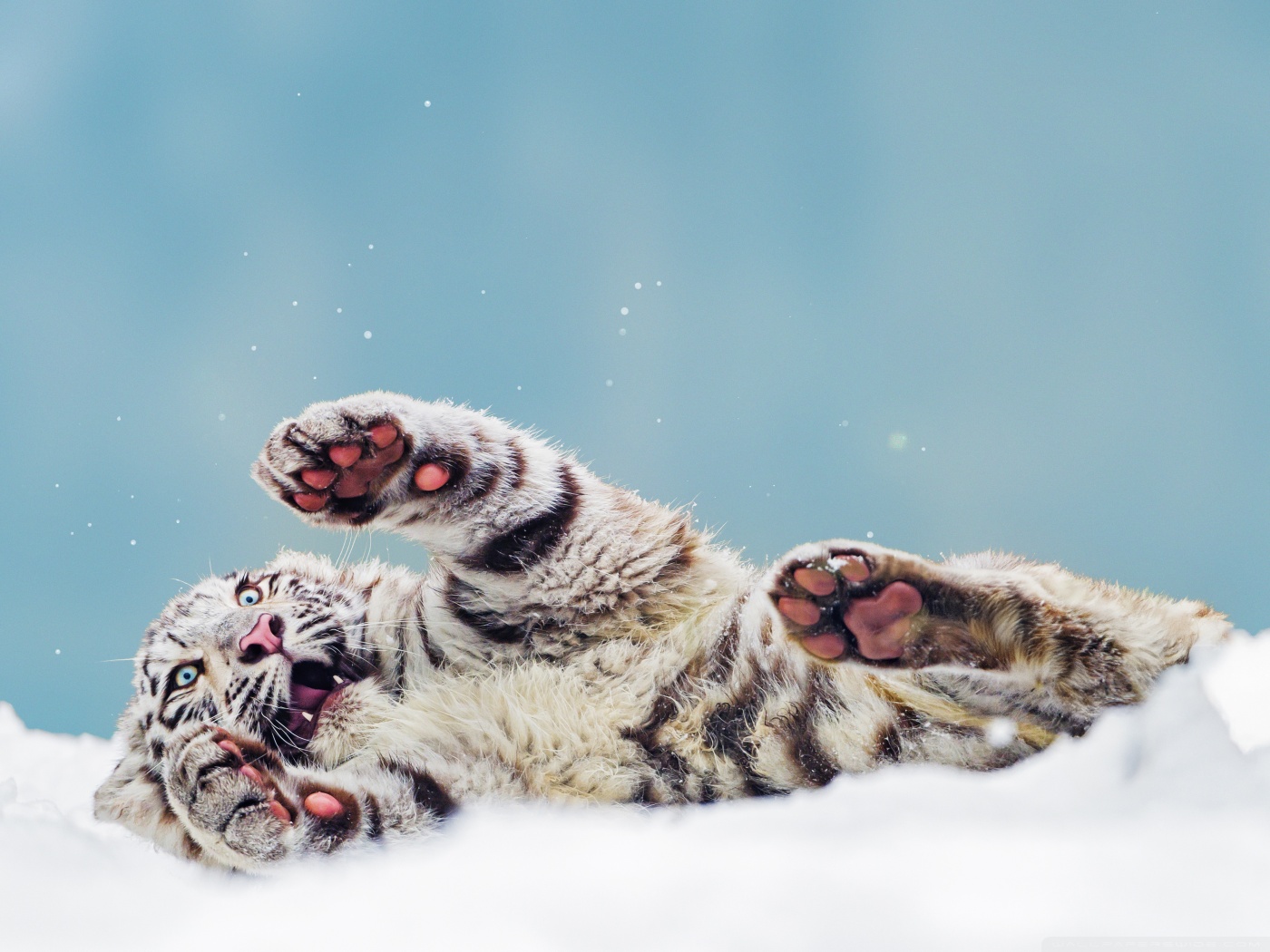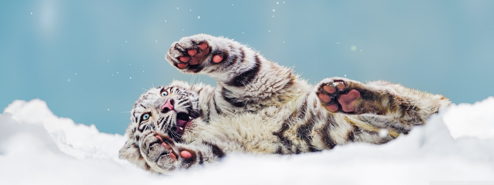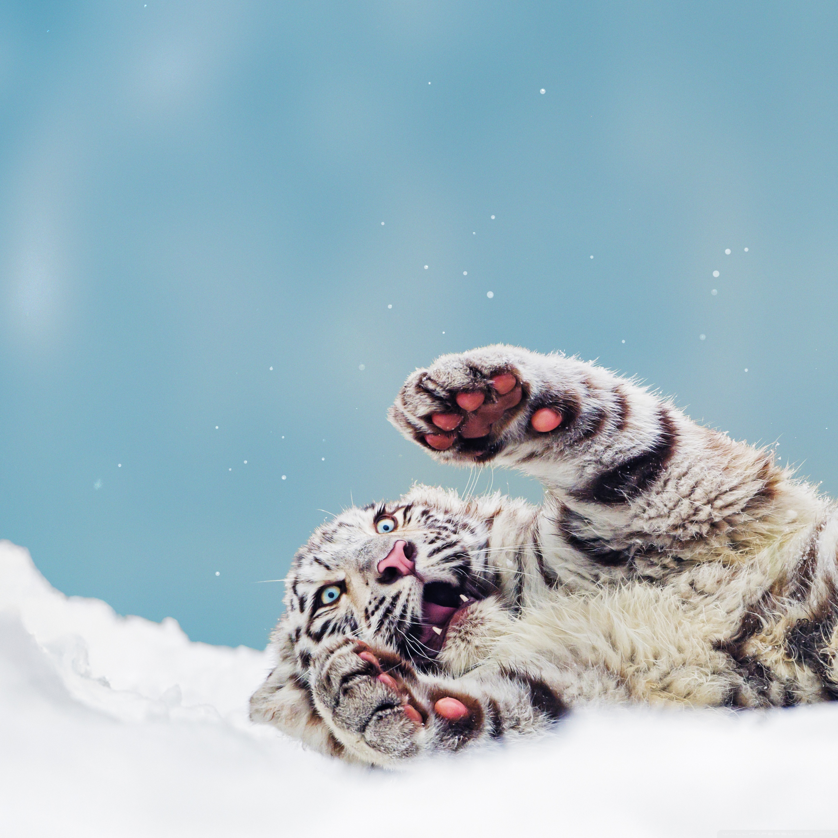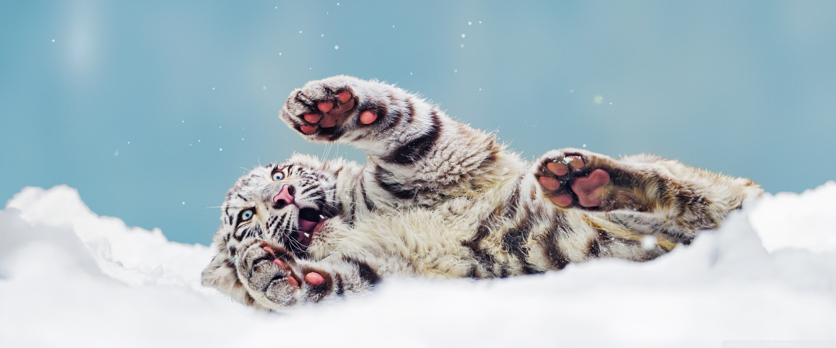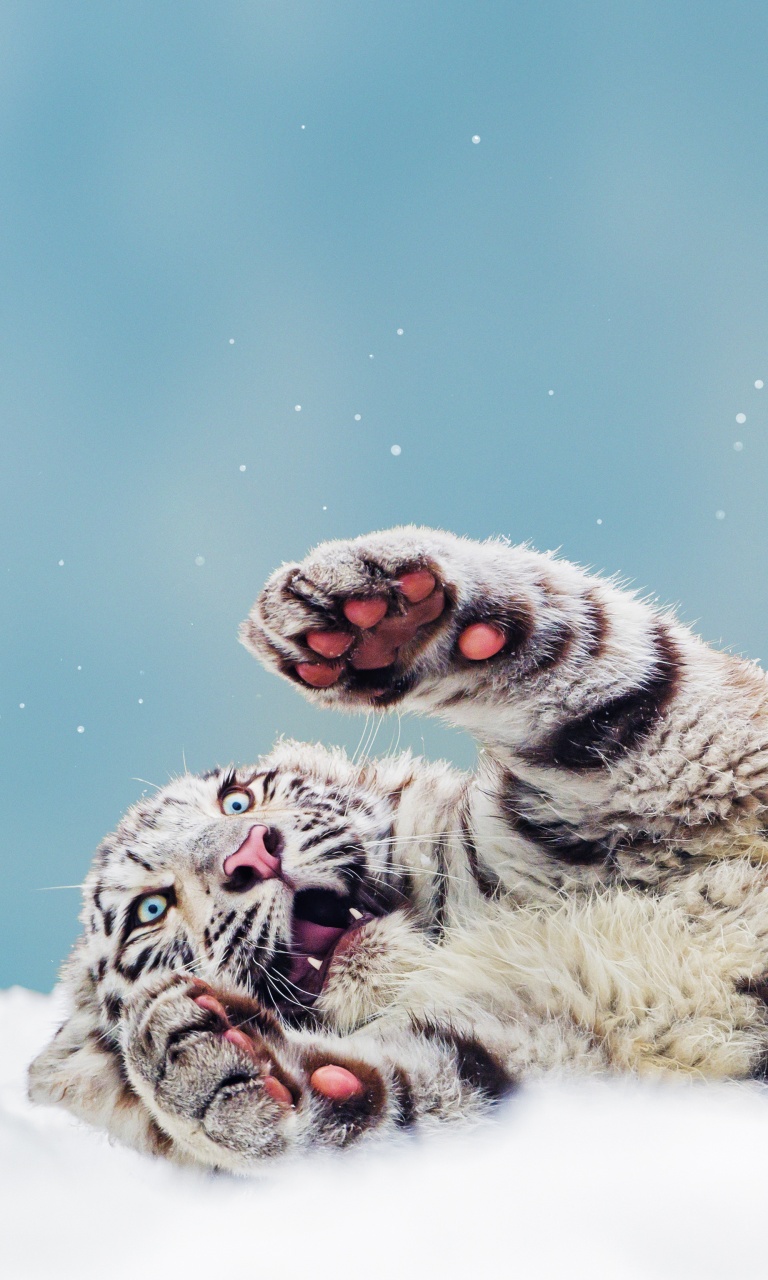 Download Bengal Tiger Cub Playing in the Snow 4K UHD Wallpaper