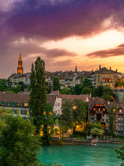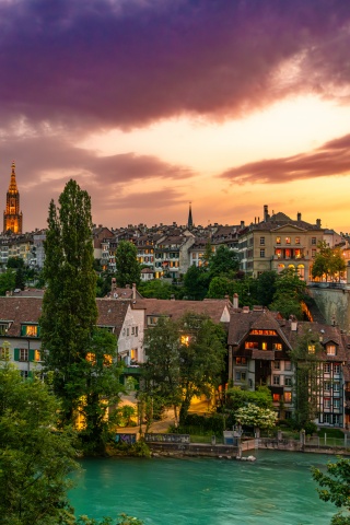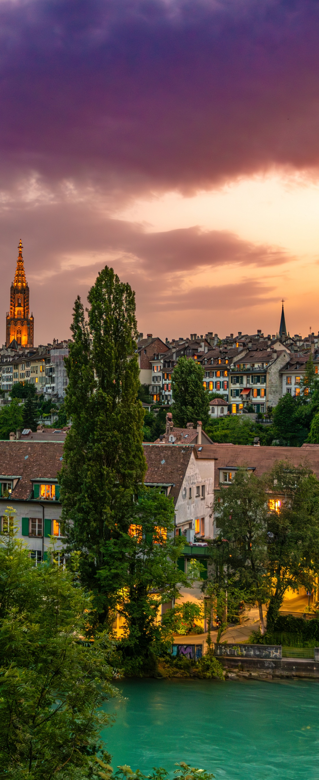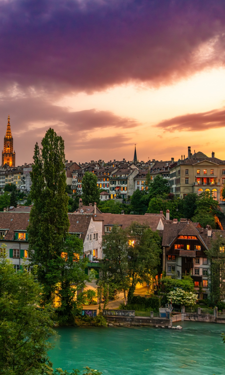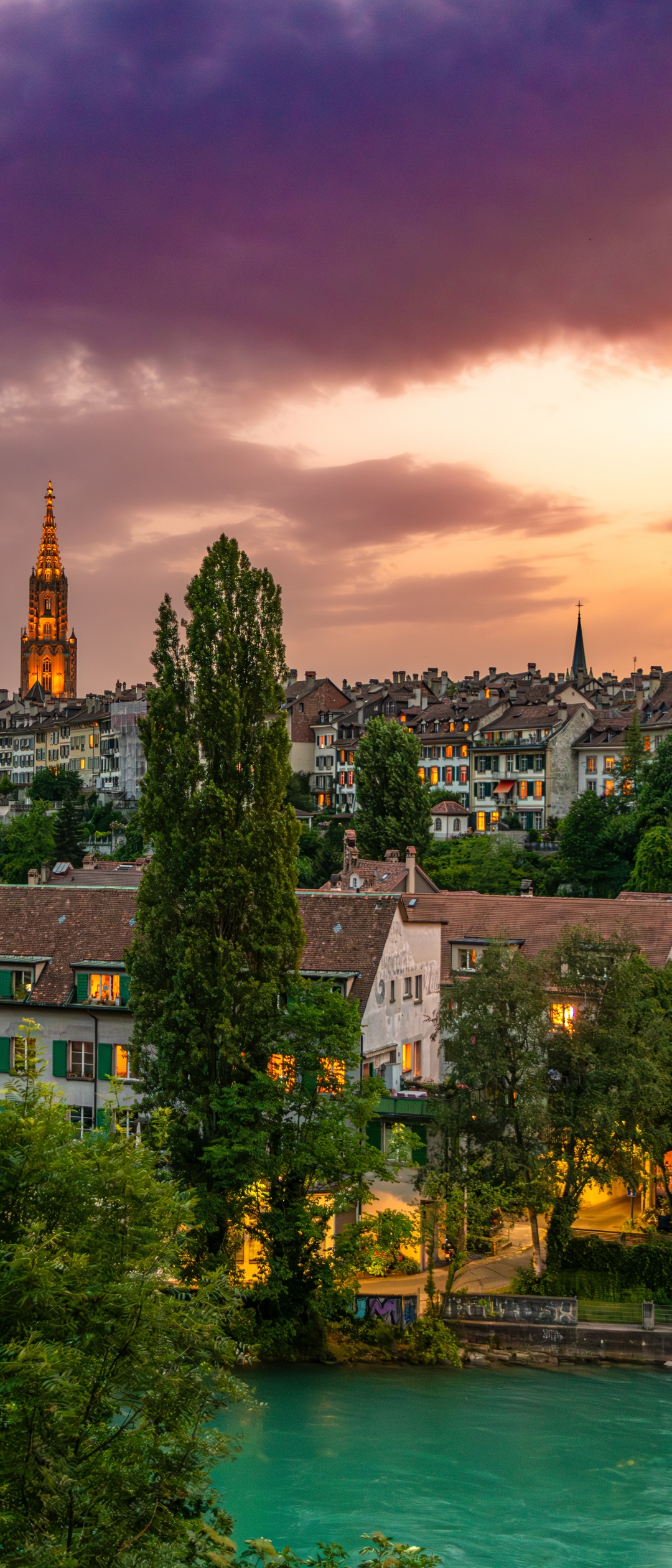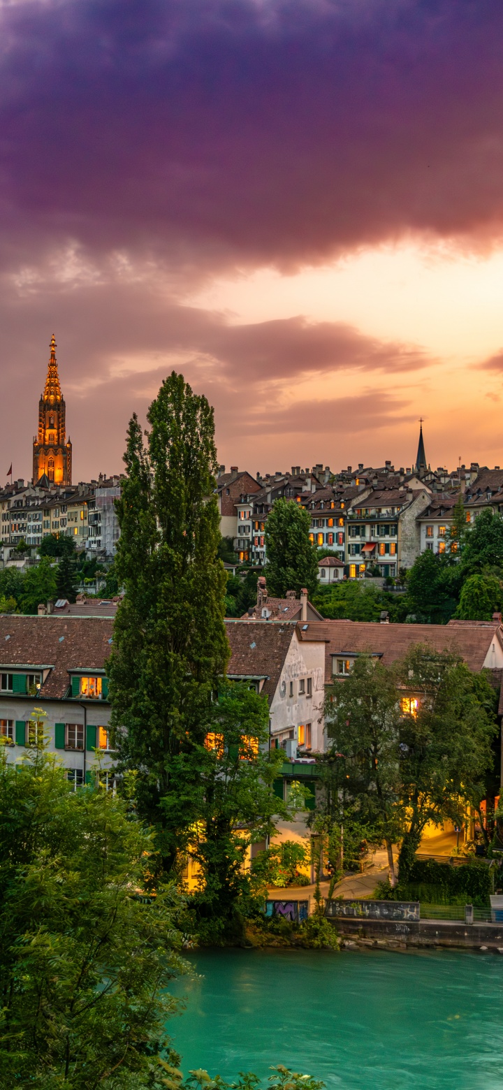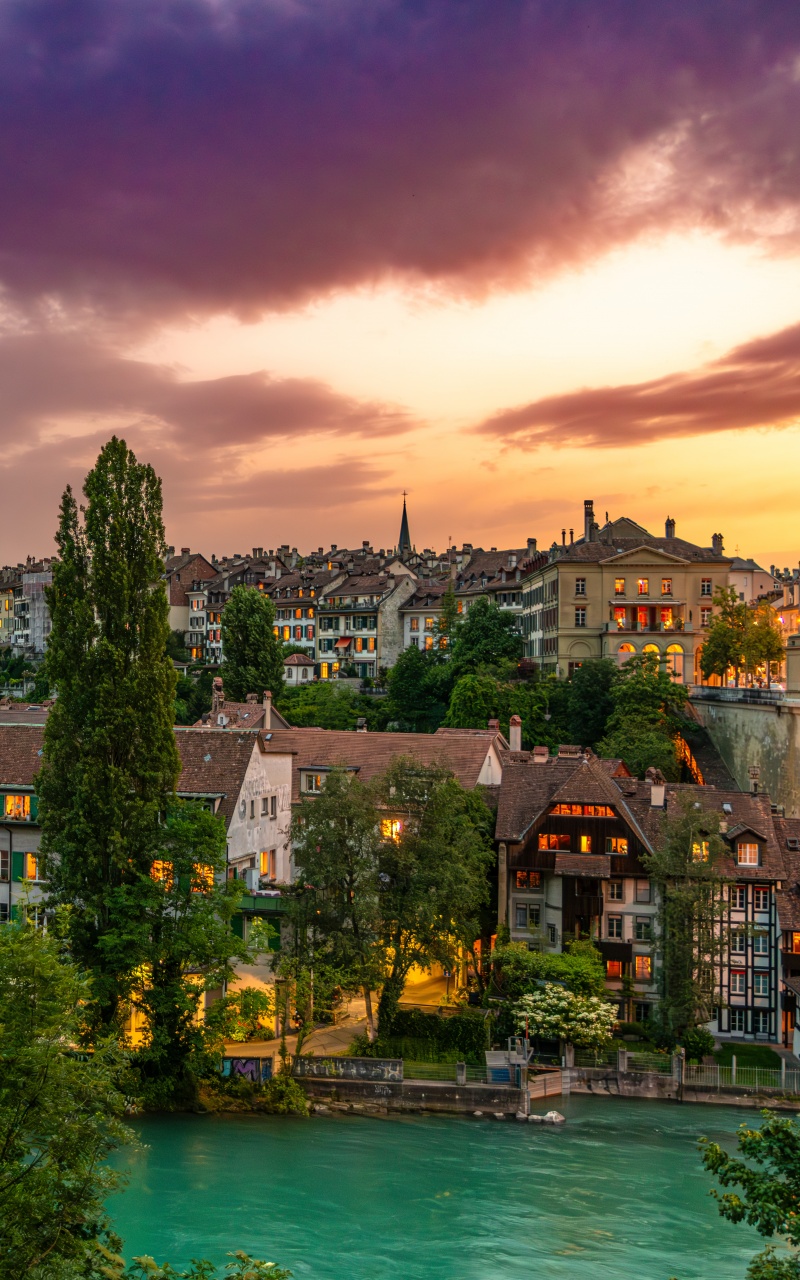 Download Bern, Switzerland, Aare River Sunset Panorama 4K UHD Wallpaper