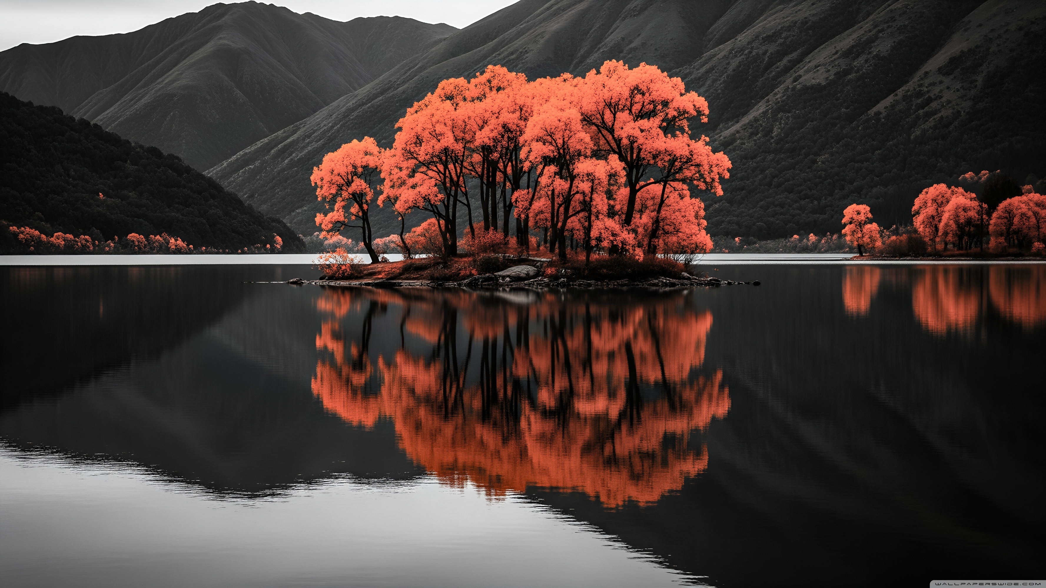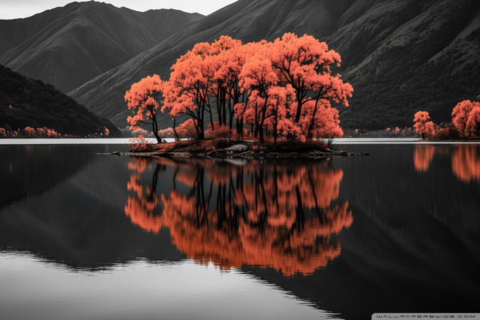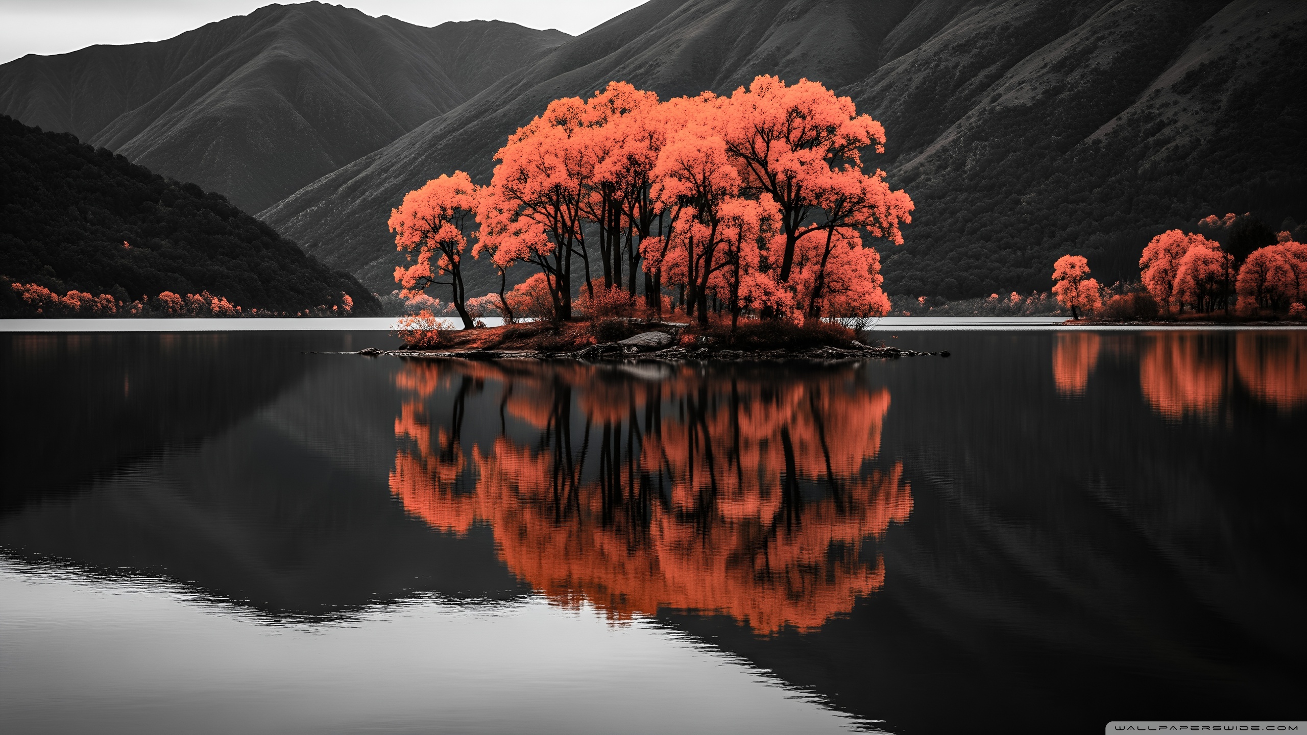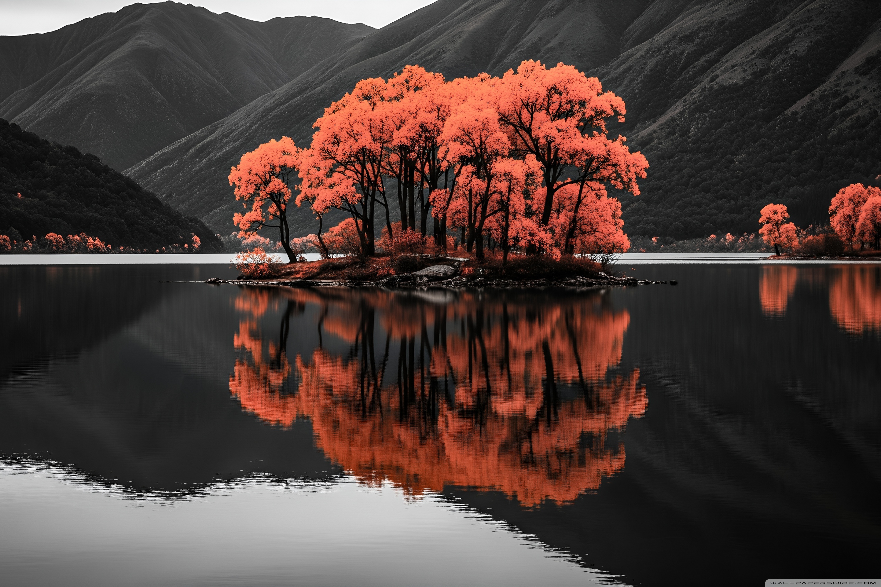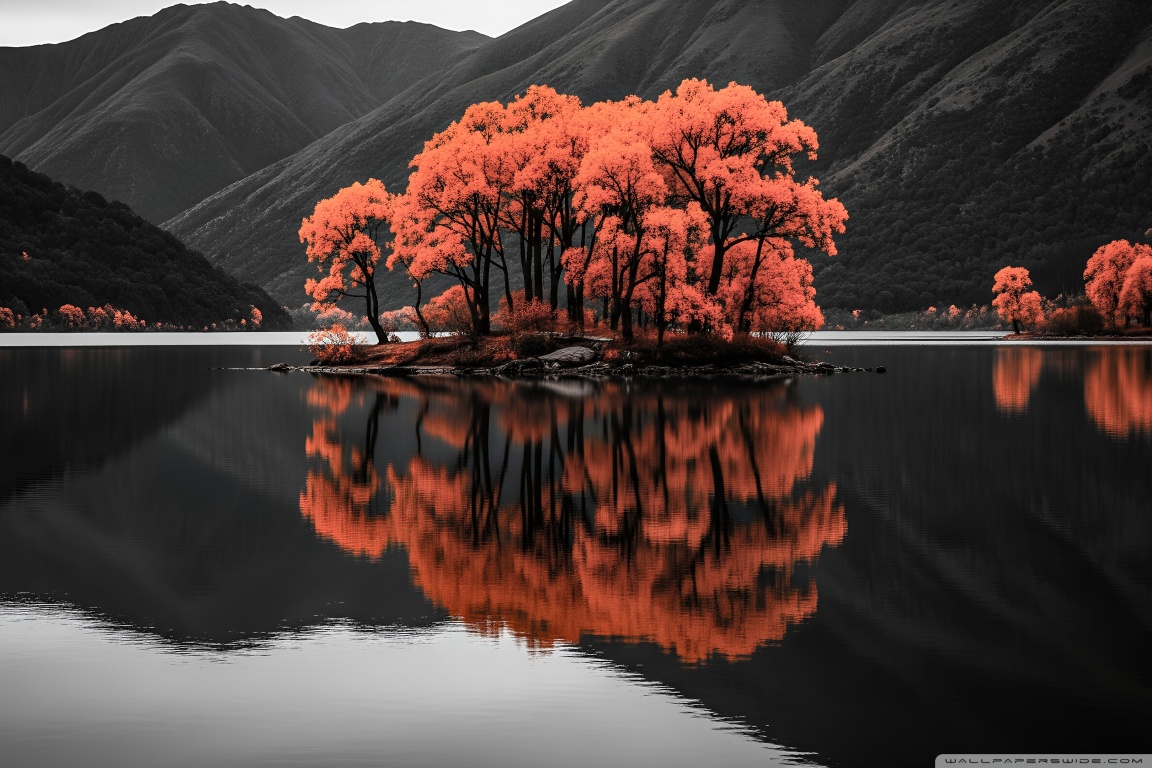 Download Black and White Mountain Landscape, Orange... 4K UHD Wallpaper