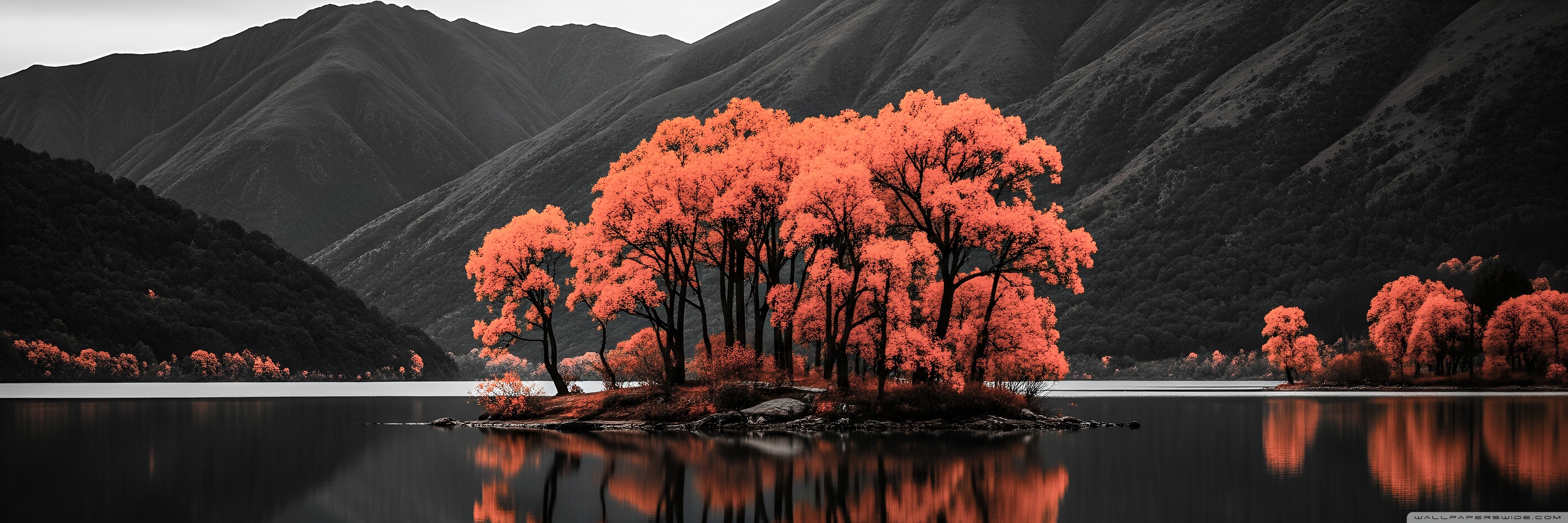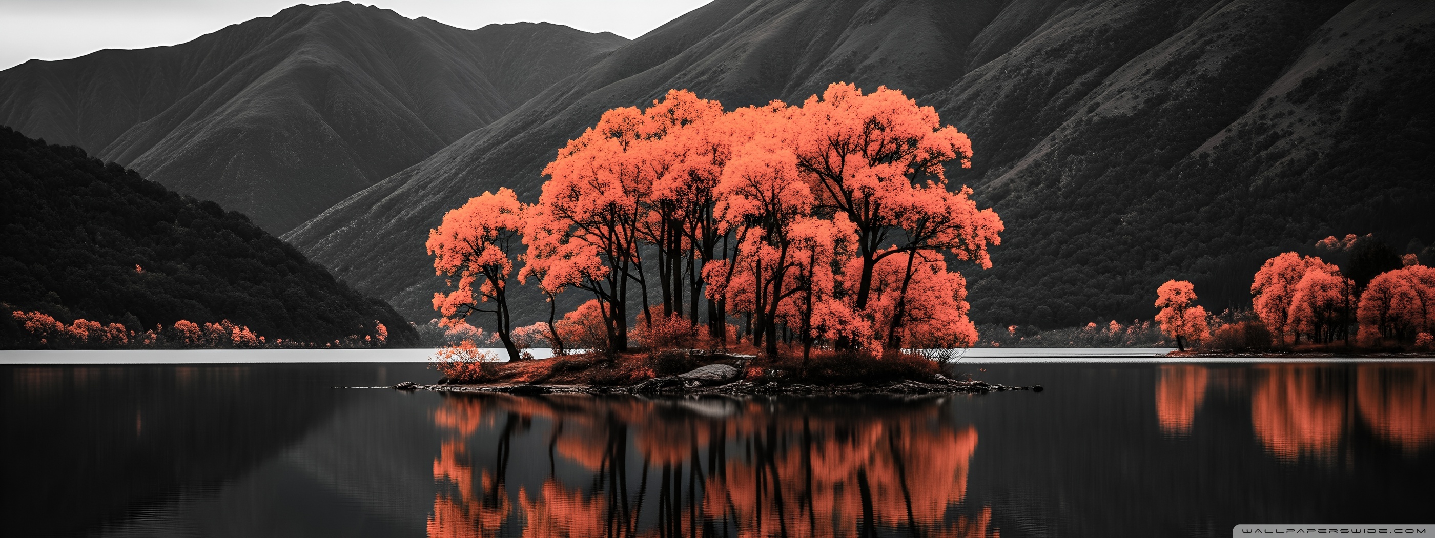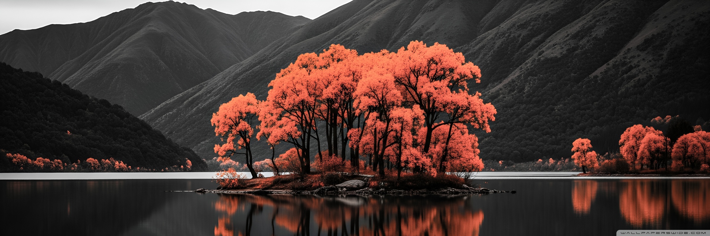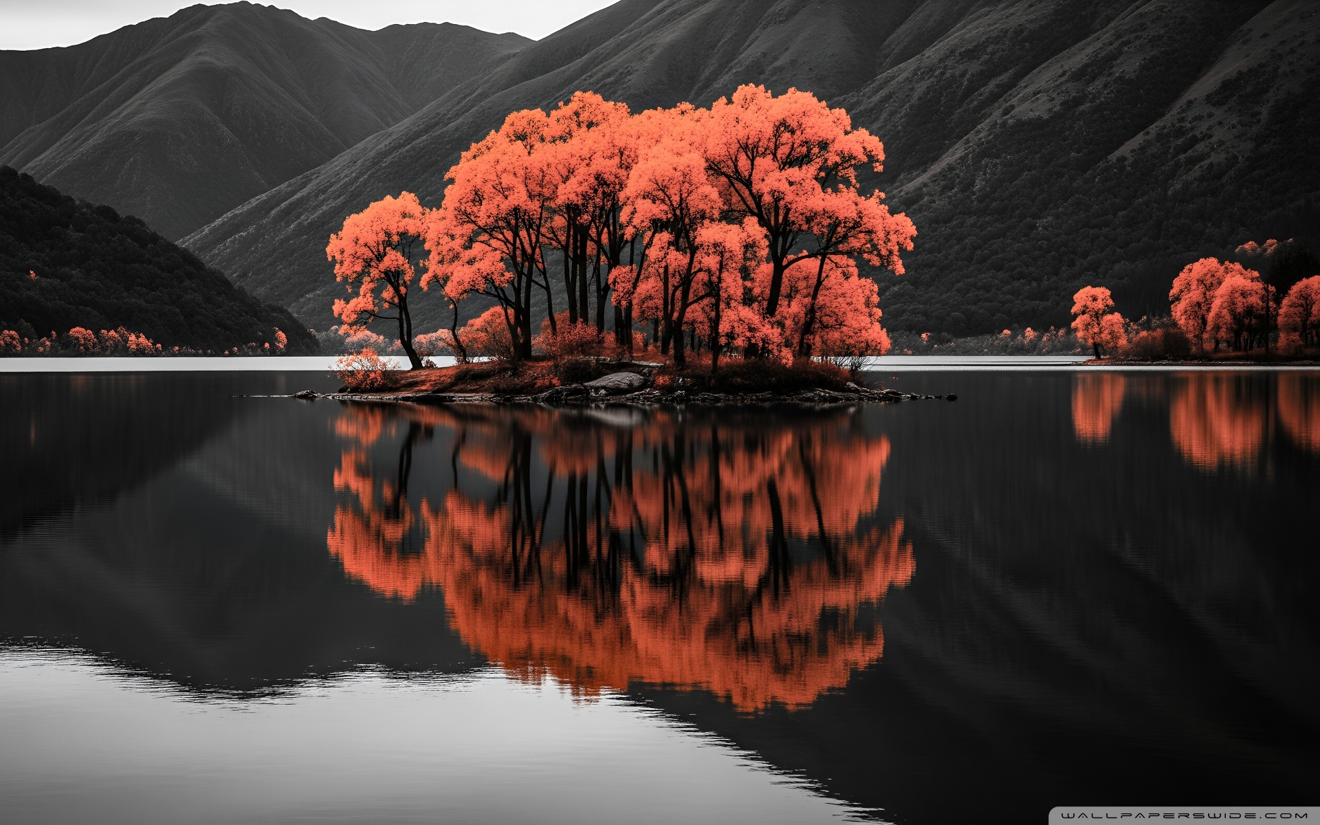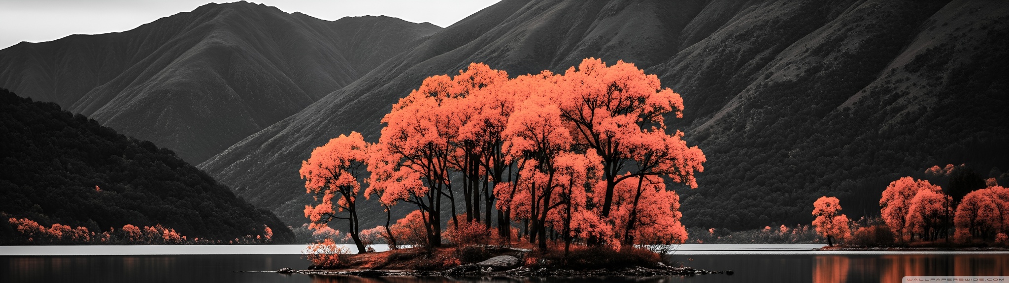 Download Black and White Mountain Landscape, Orange... 4K UHD Wallpaper