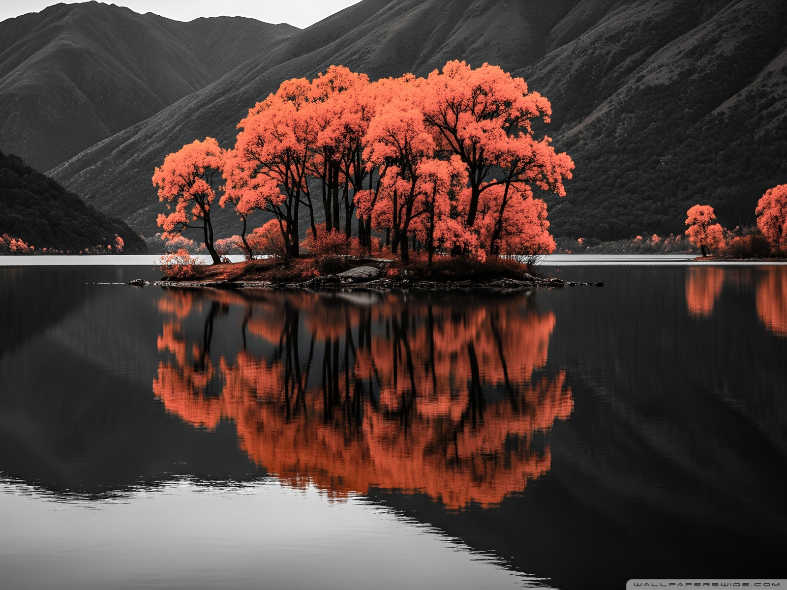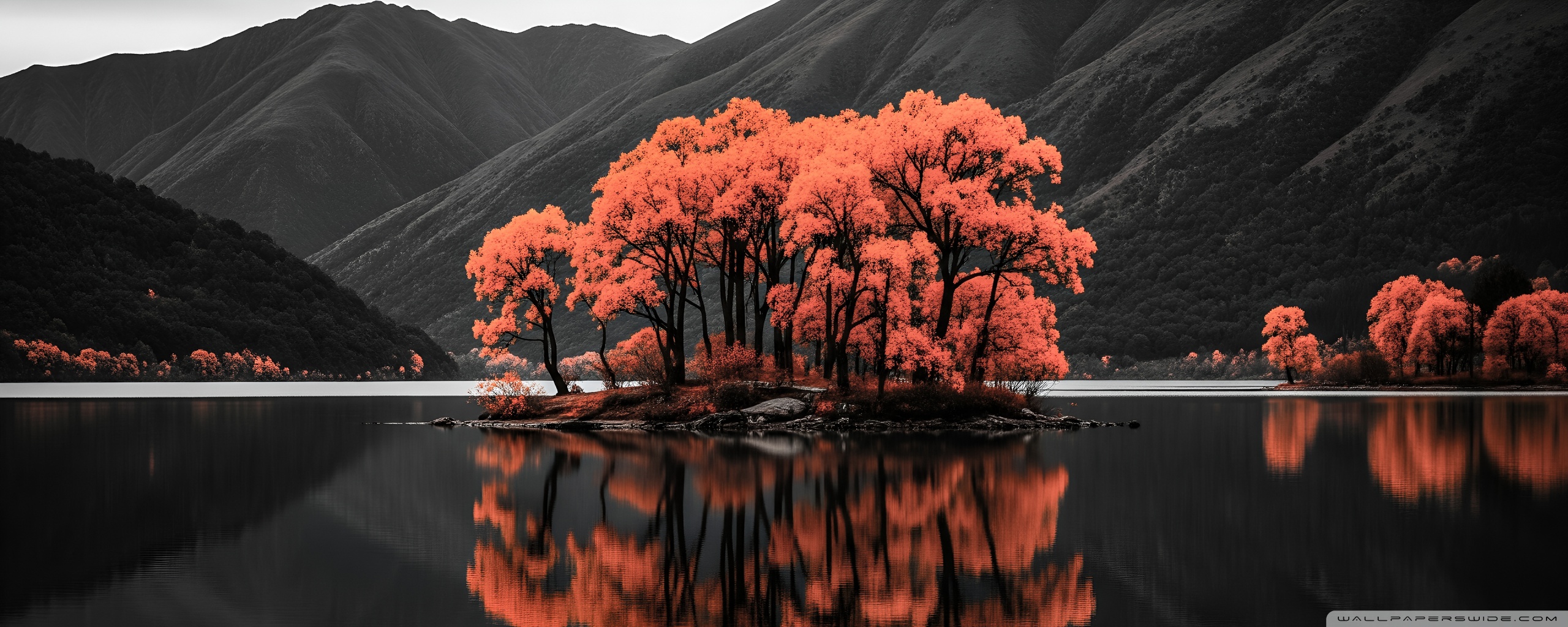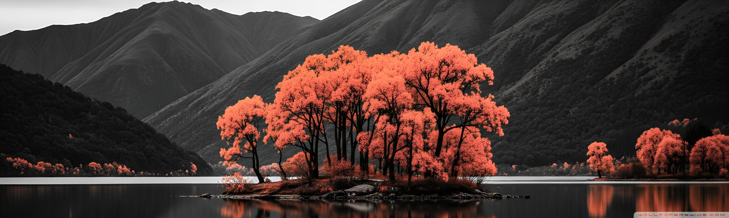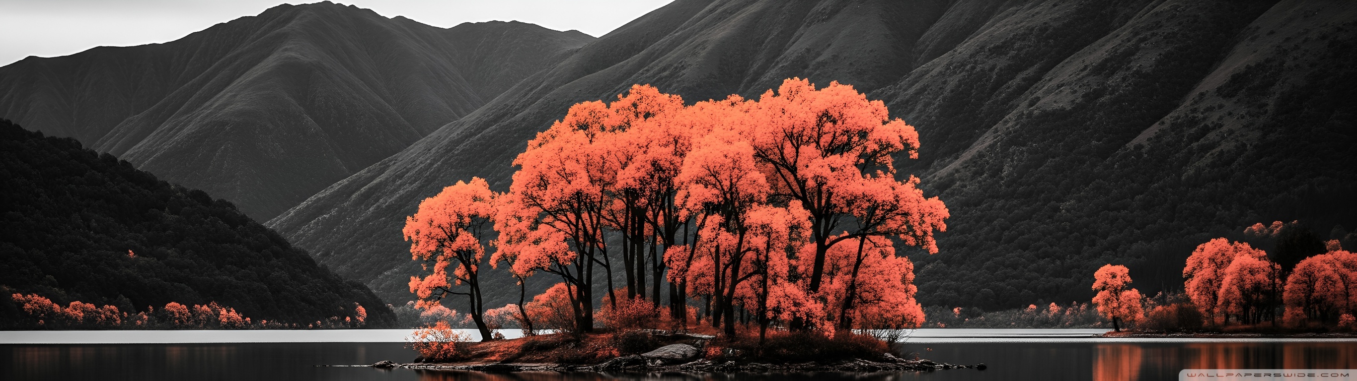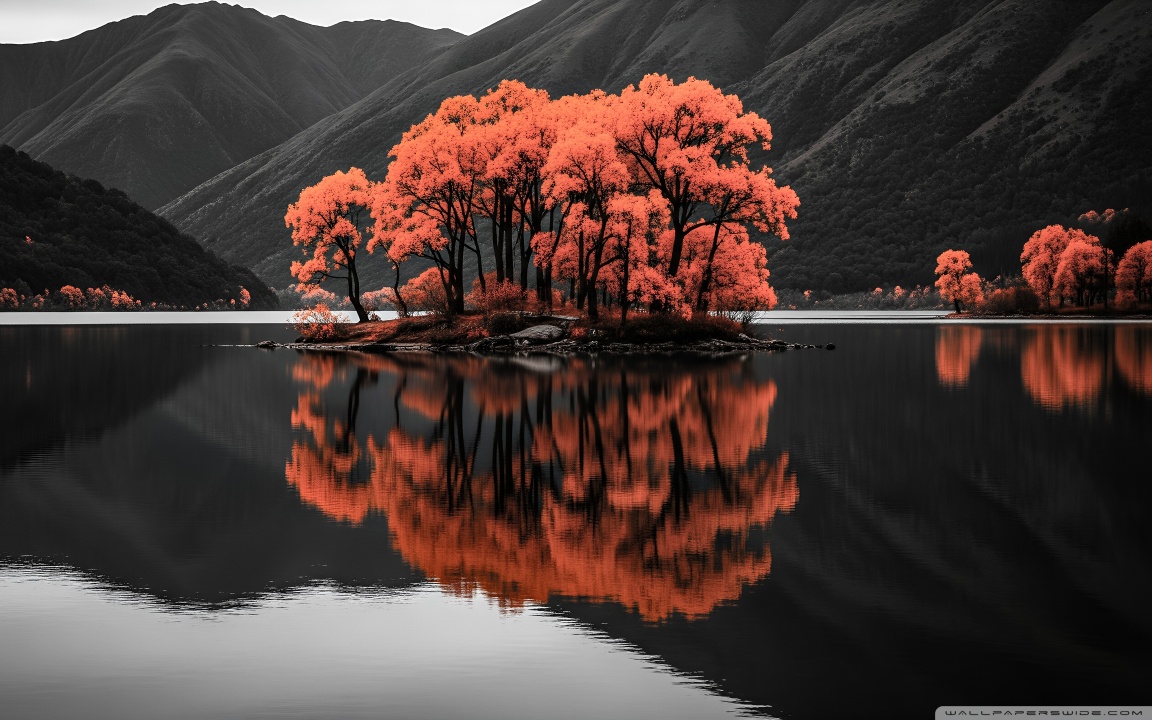 Download Black and White Mountain Landscape, Orange... 4K UHD Wallpaper