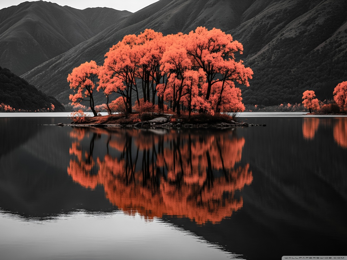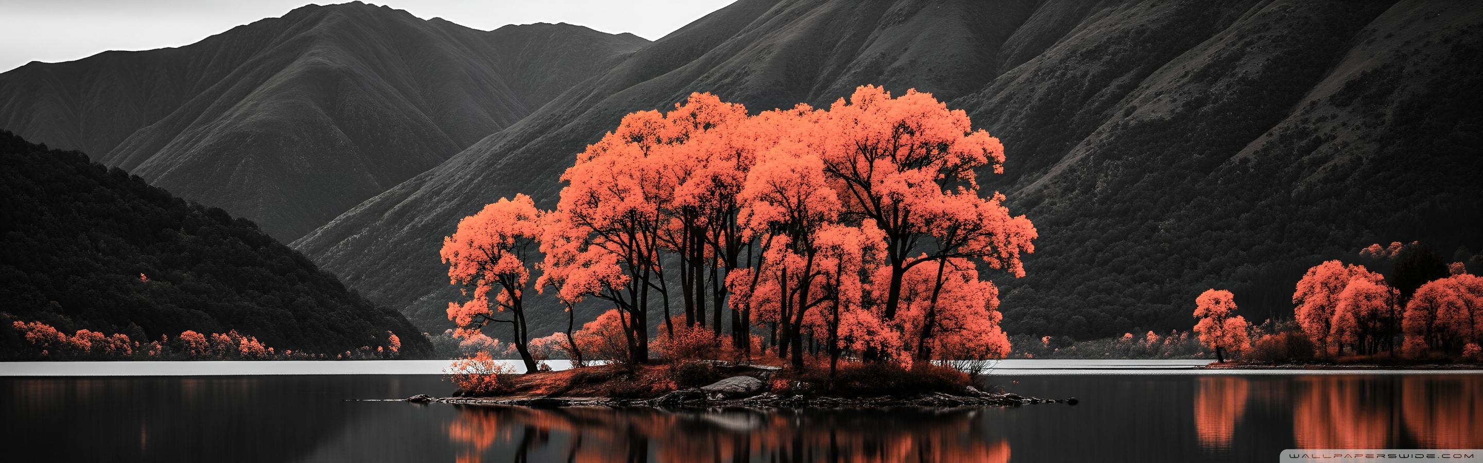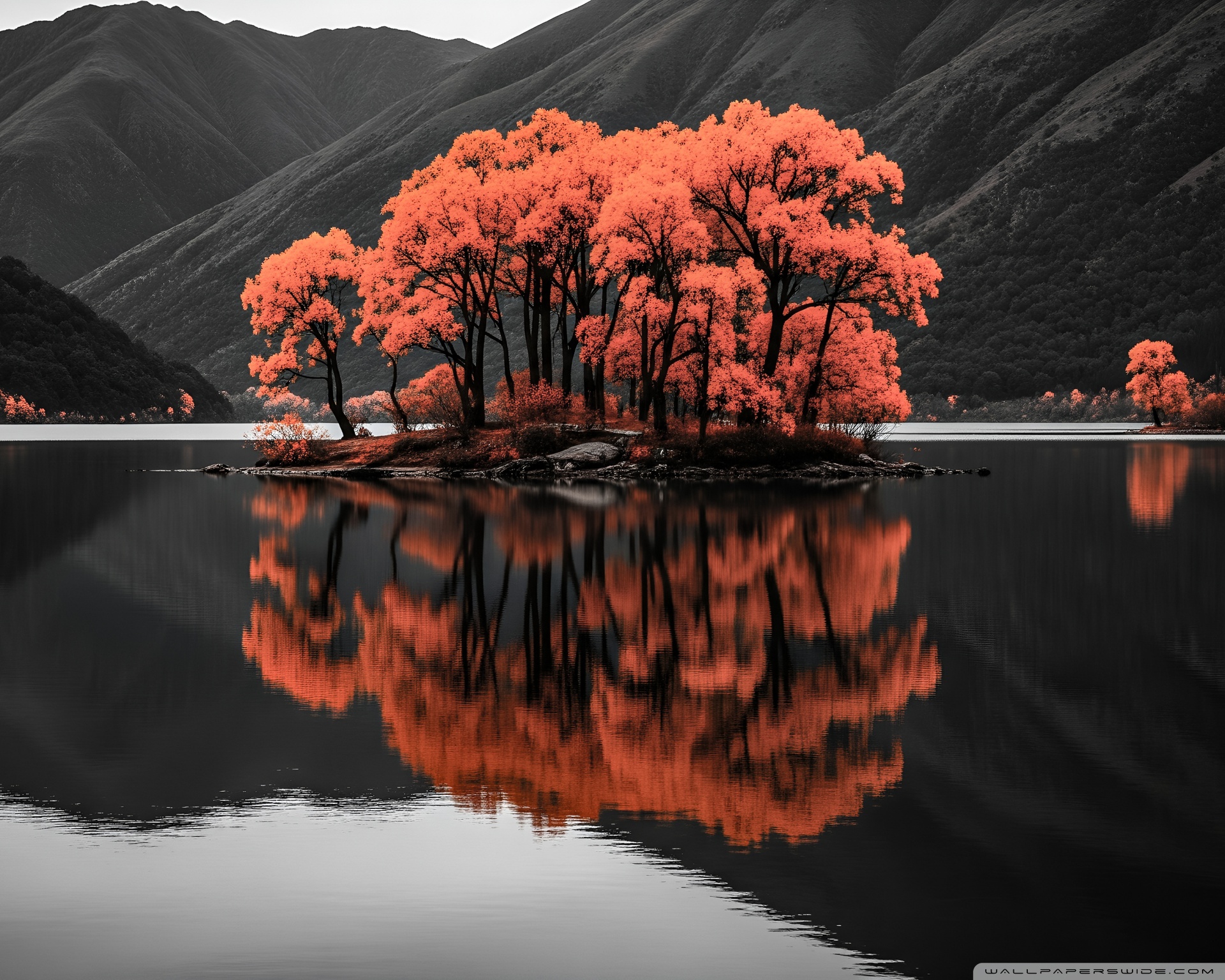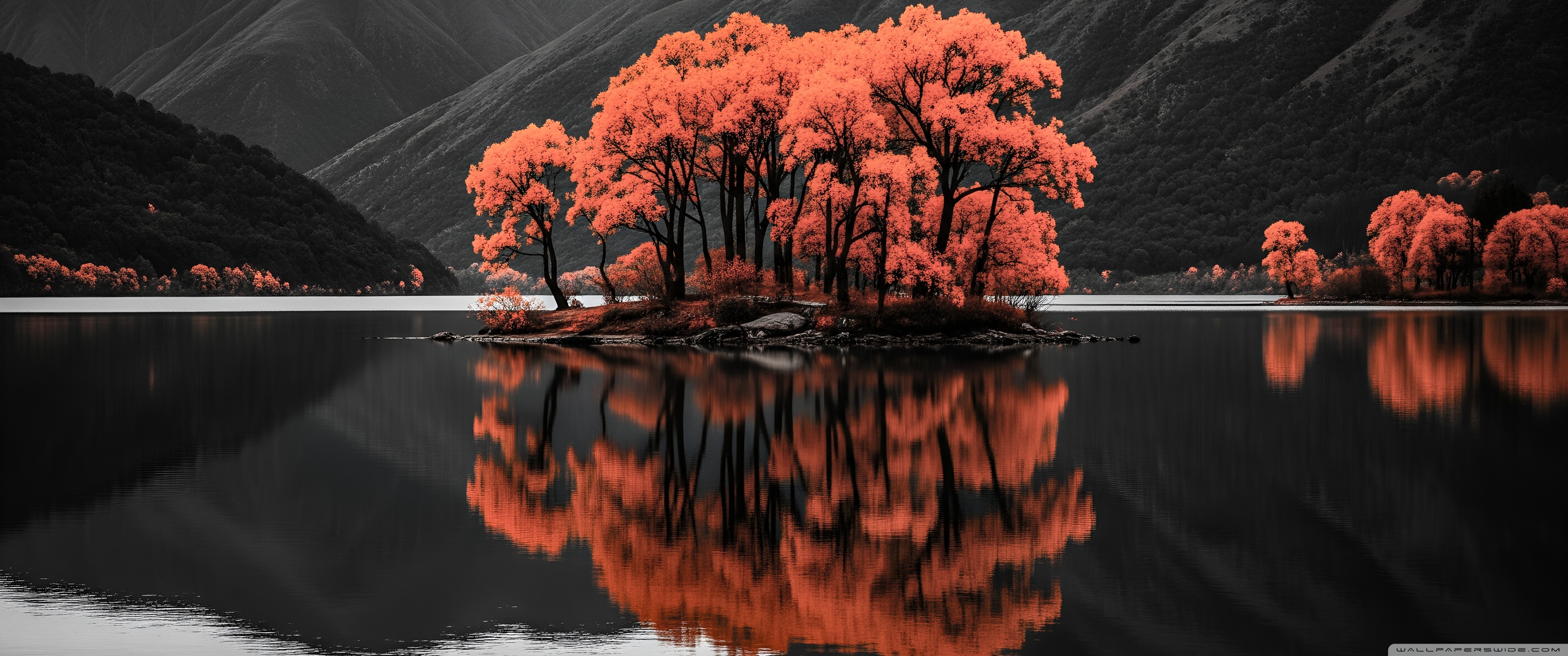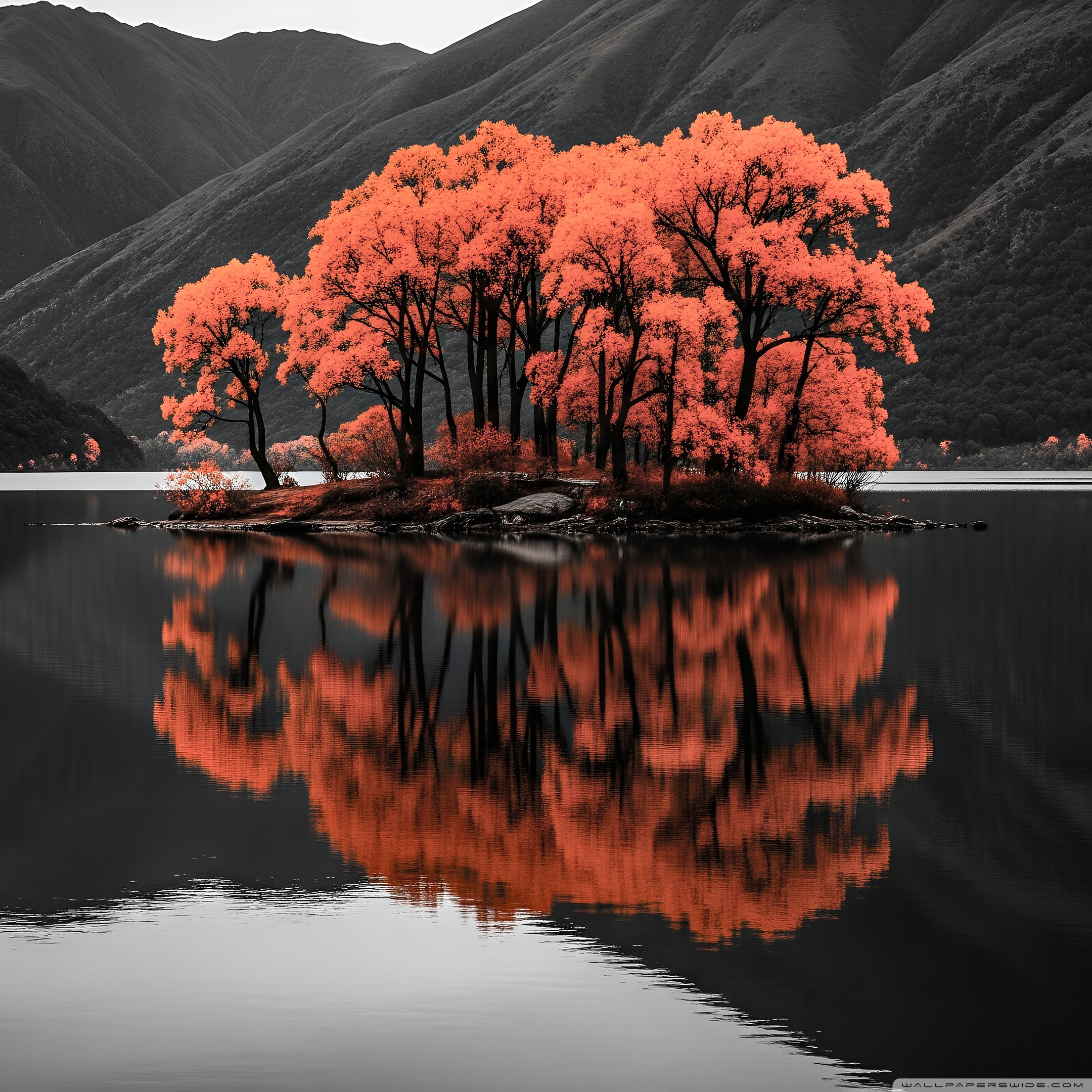 Download Black and White Mountain Landscape, Orange... 4K UHD Wallpaper
