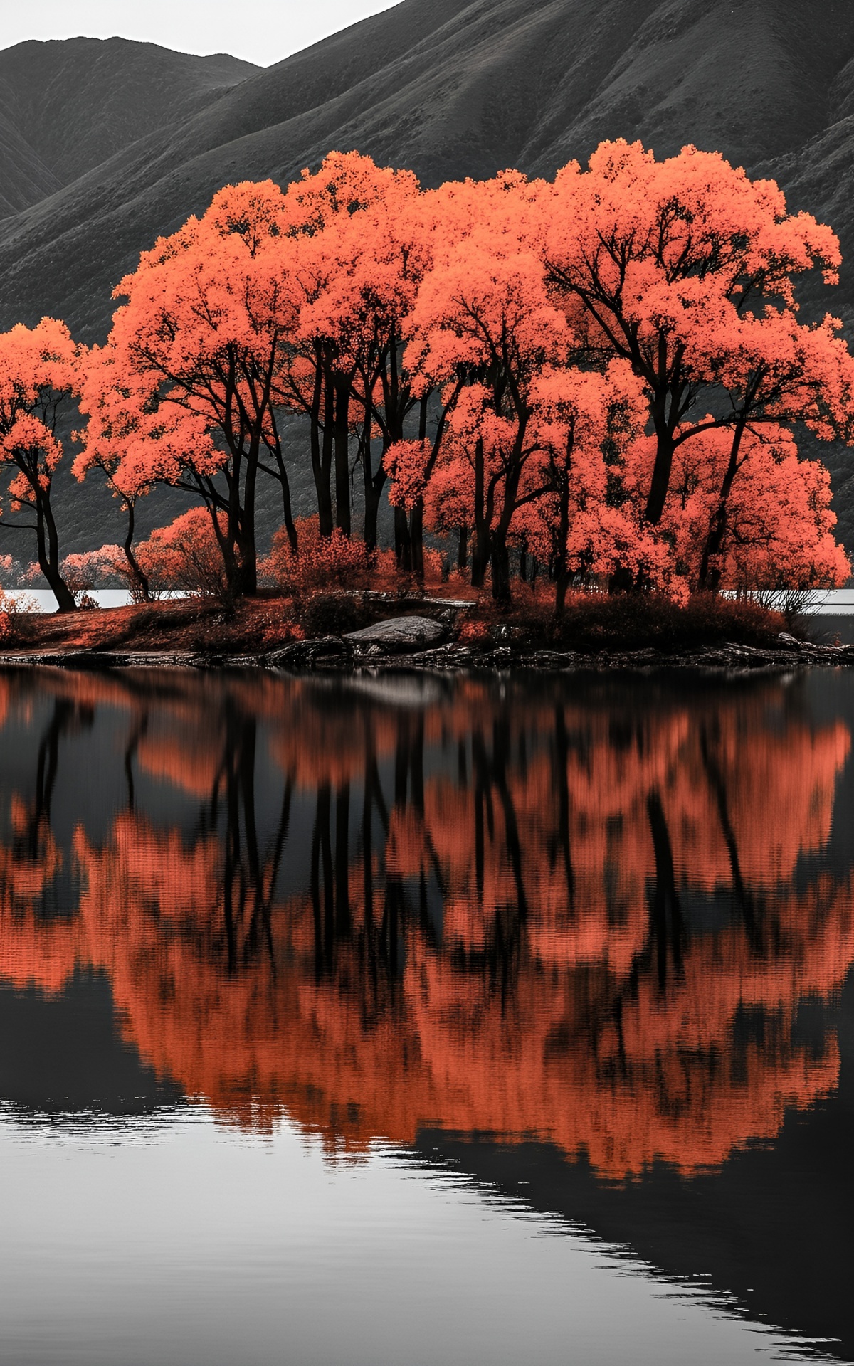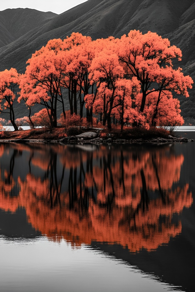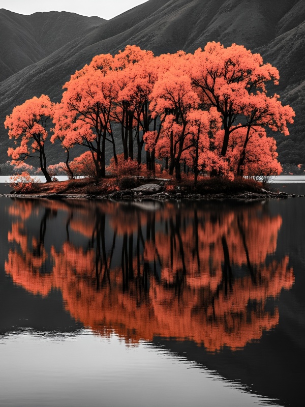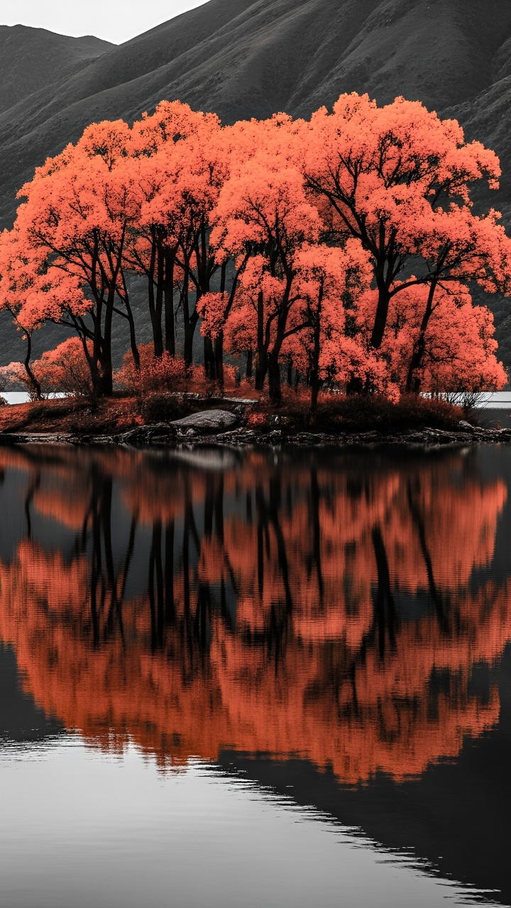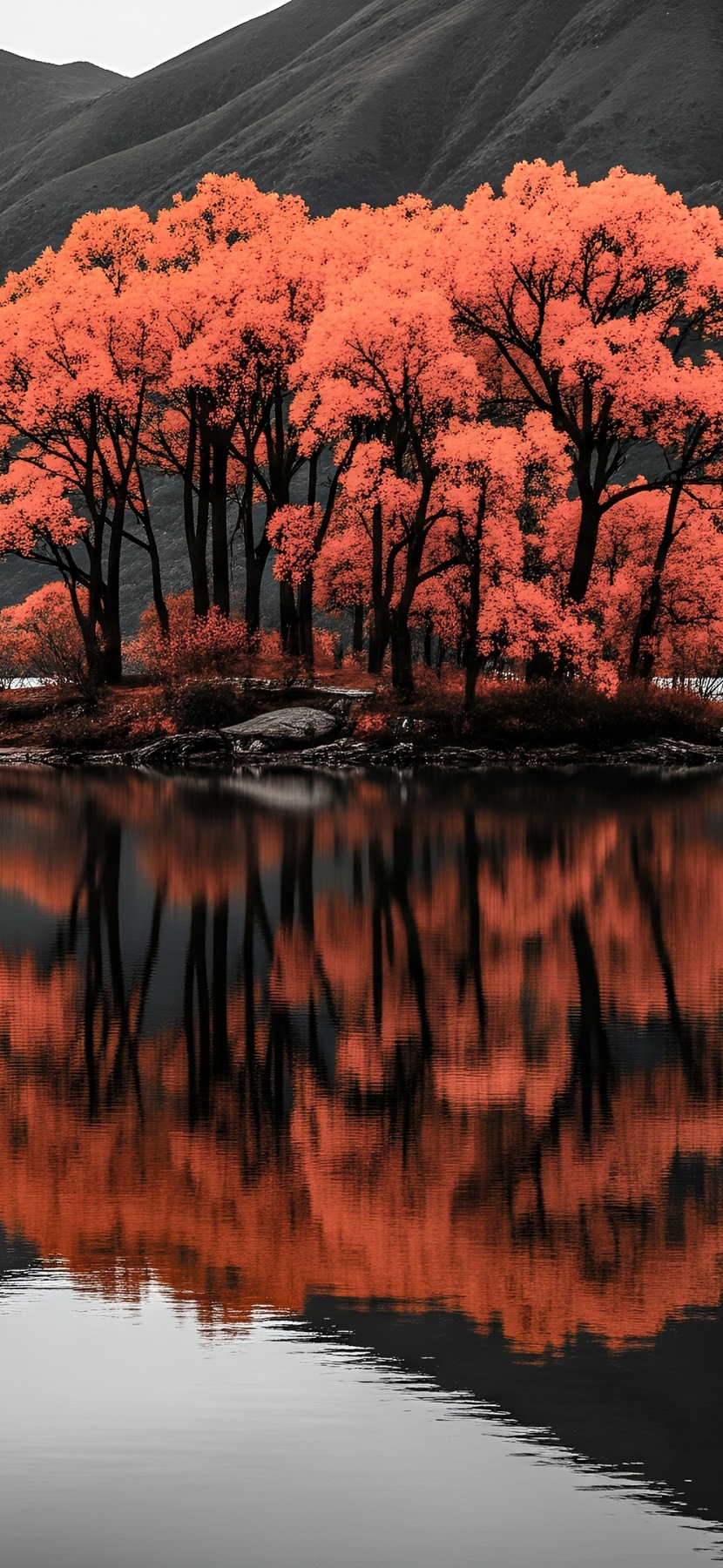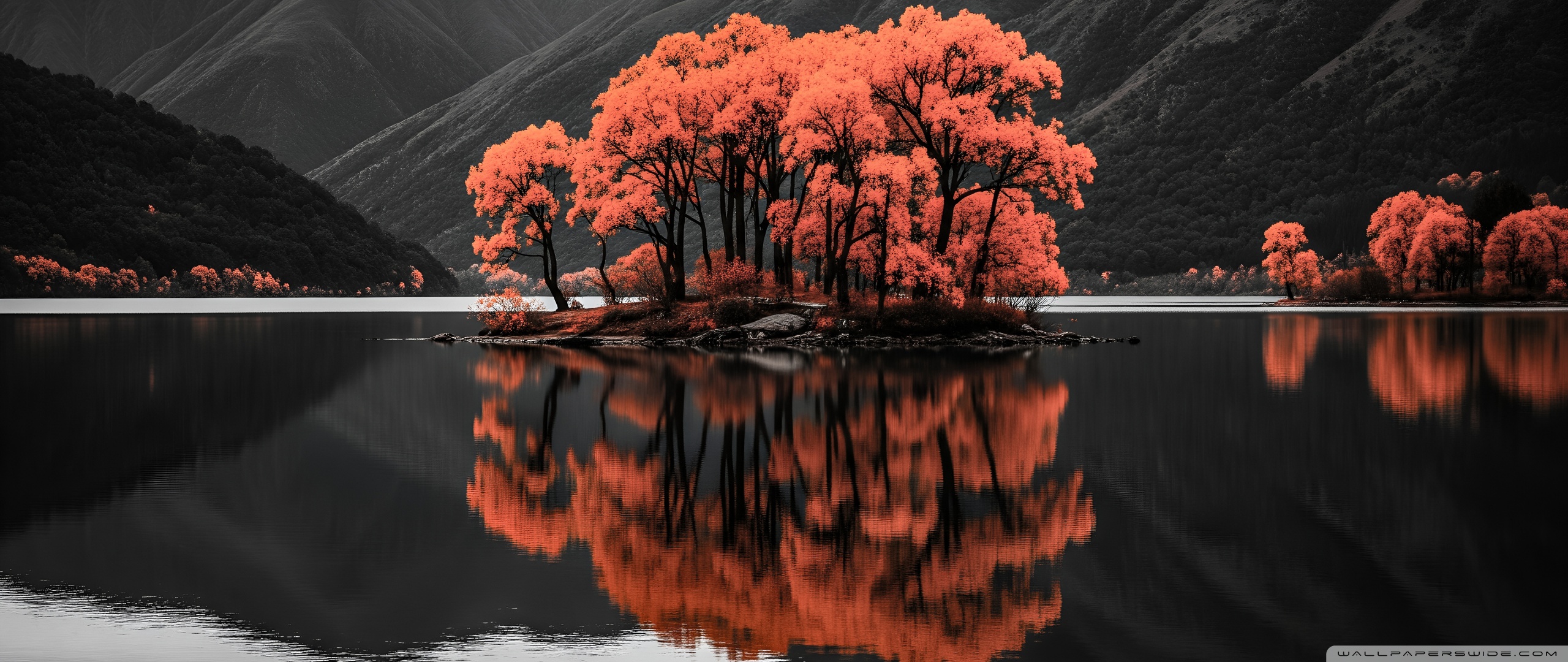 Download Black and White Mountain Landscape, Orange... 4K UHD Wallpaper