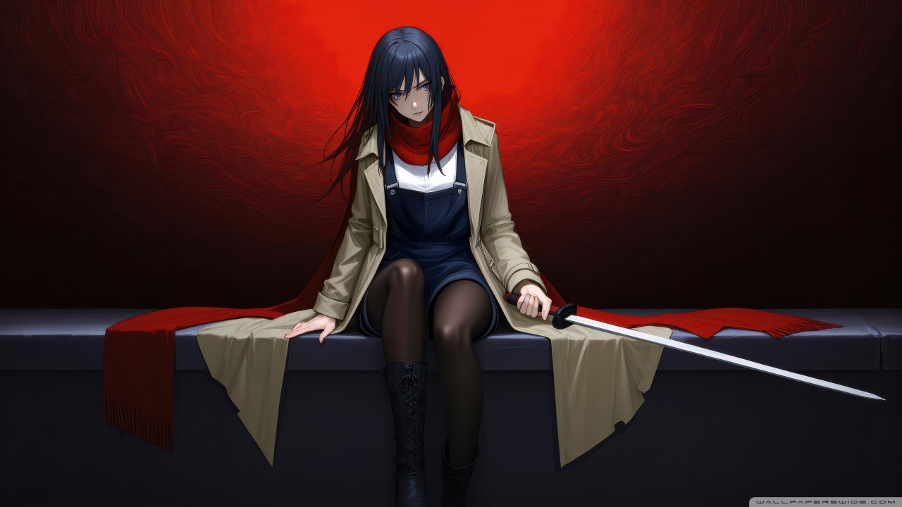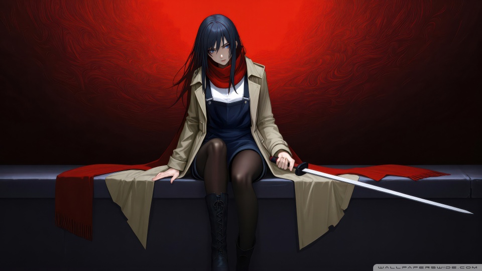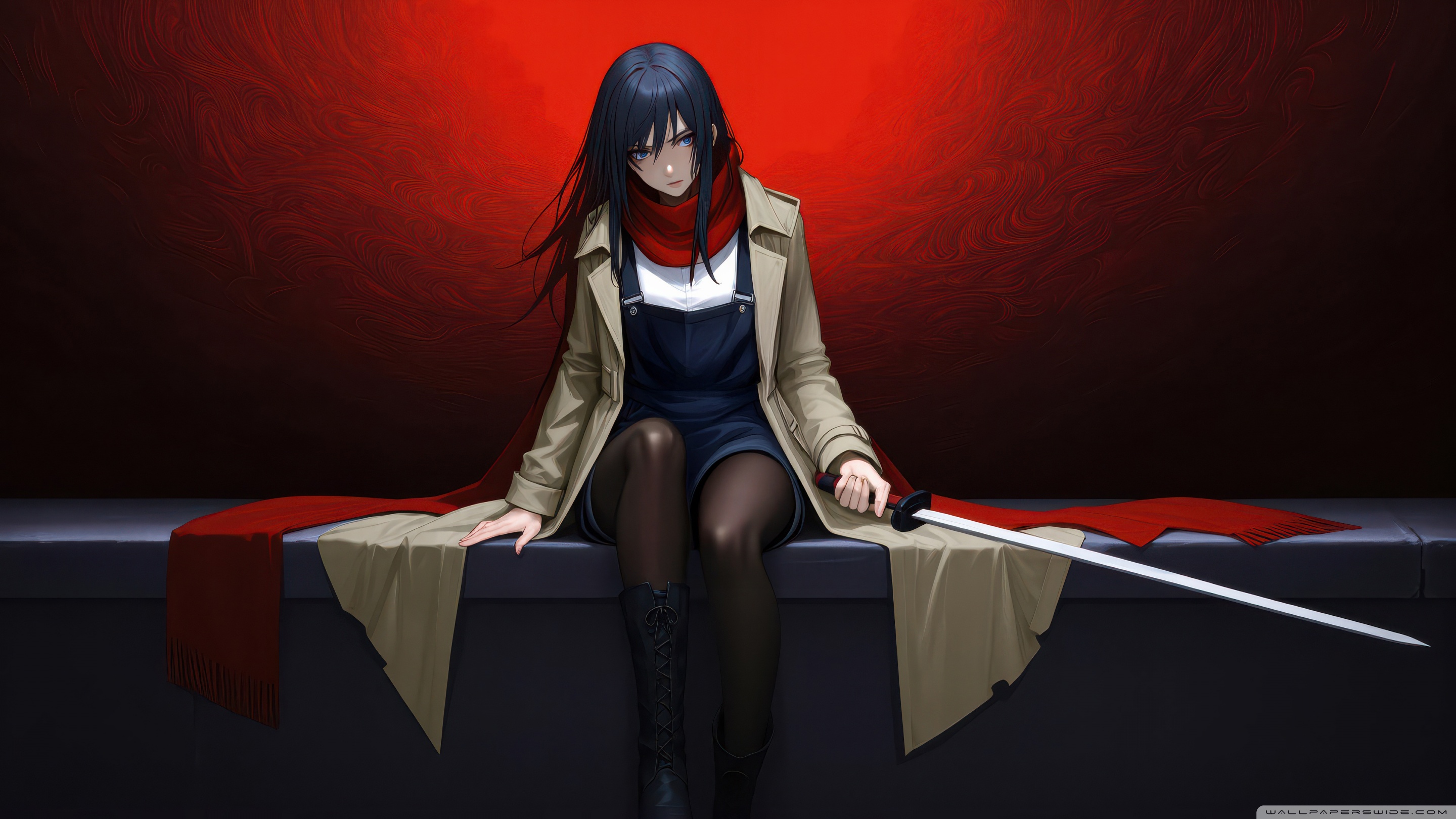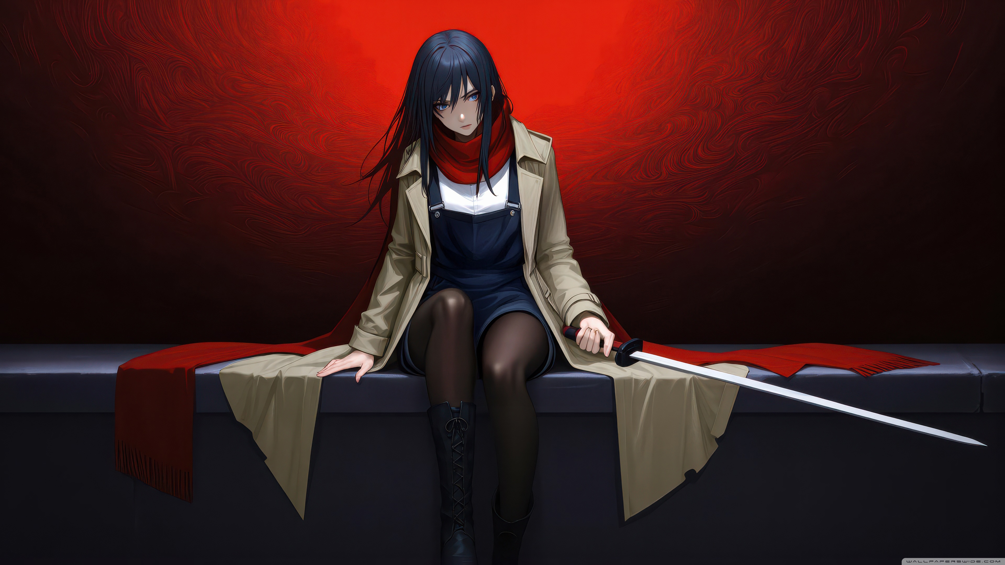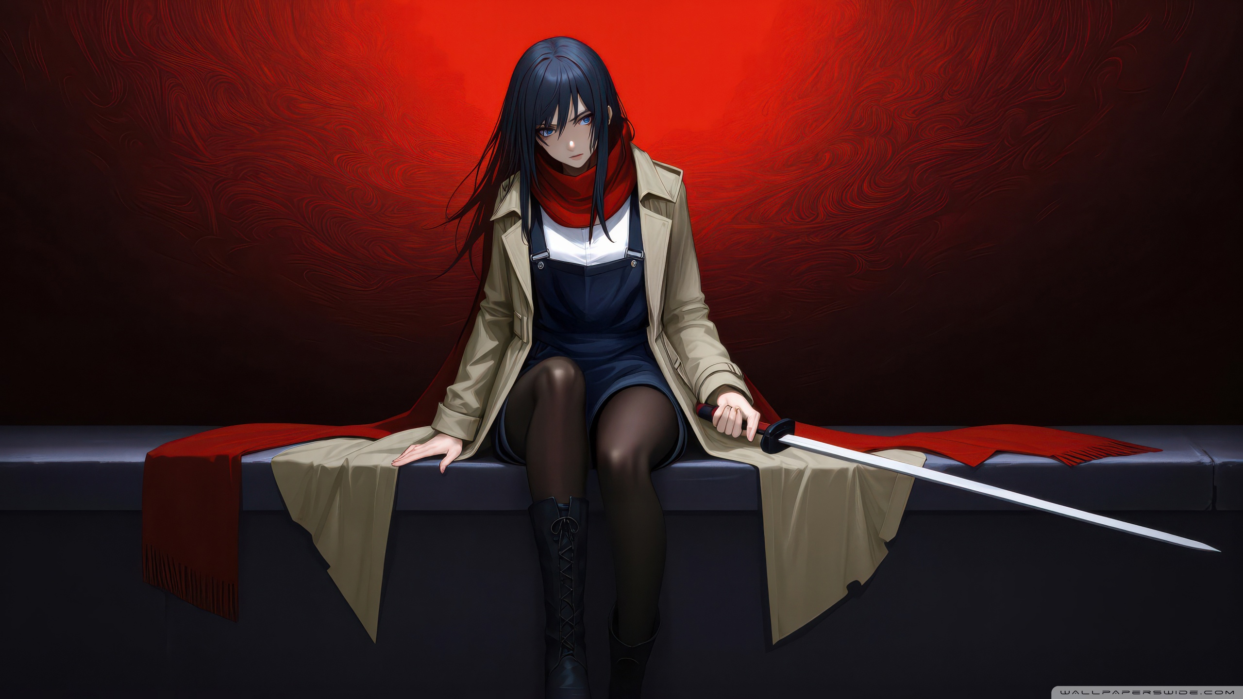 Download Black Haired Anime Sword Maiden 4K UHD Wallpaper