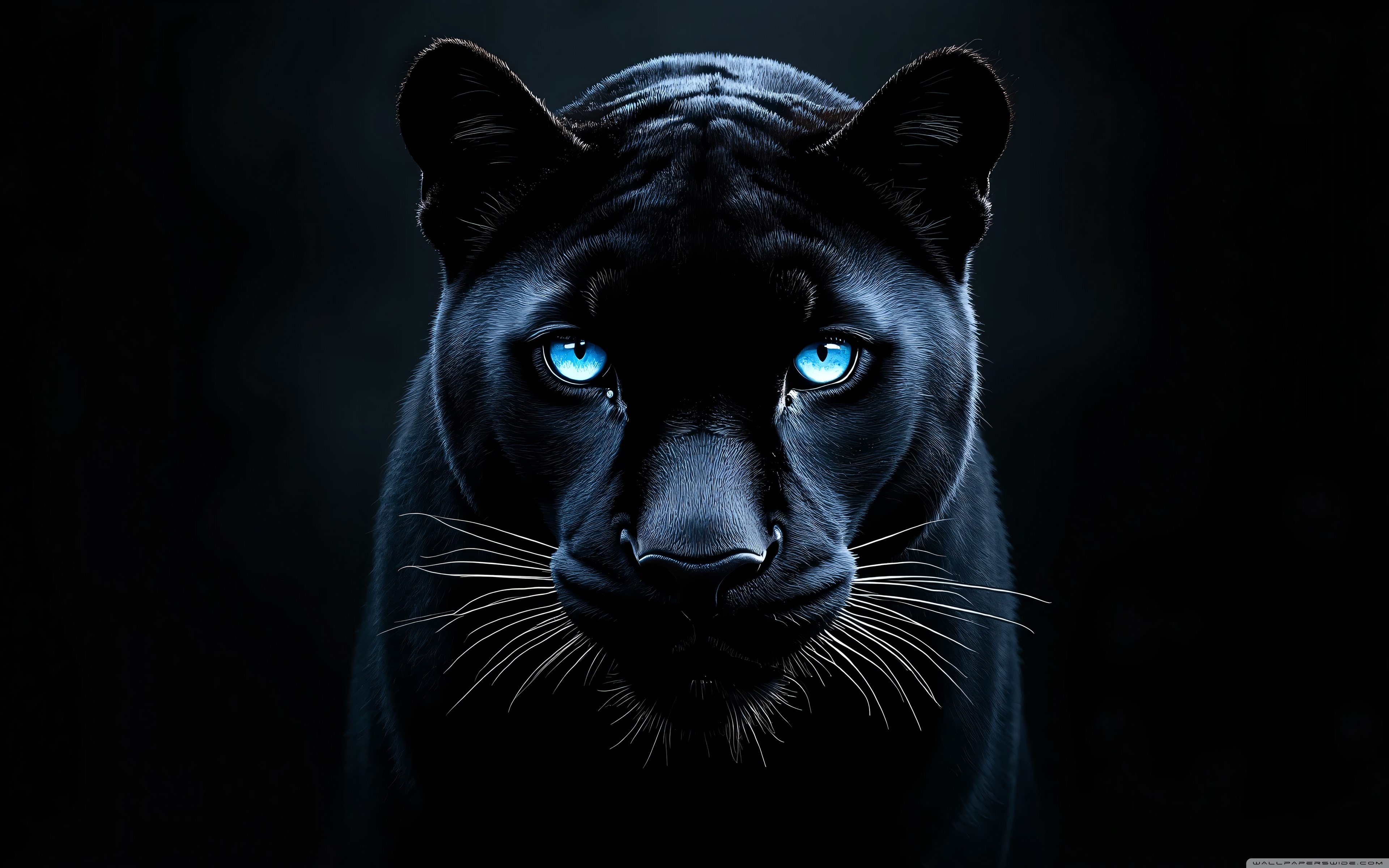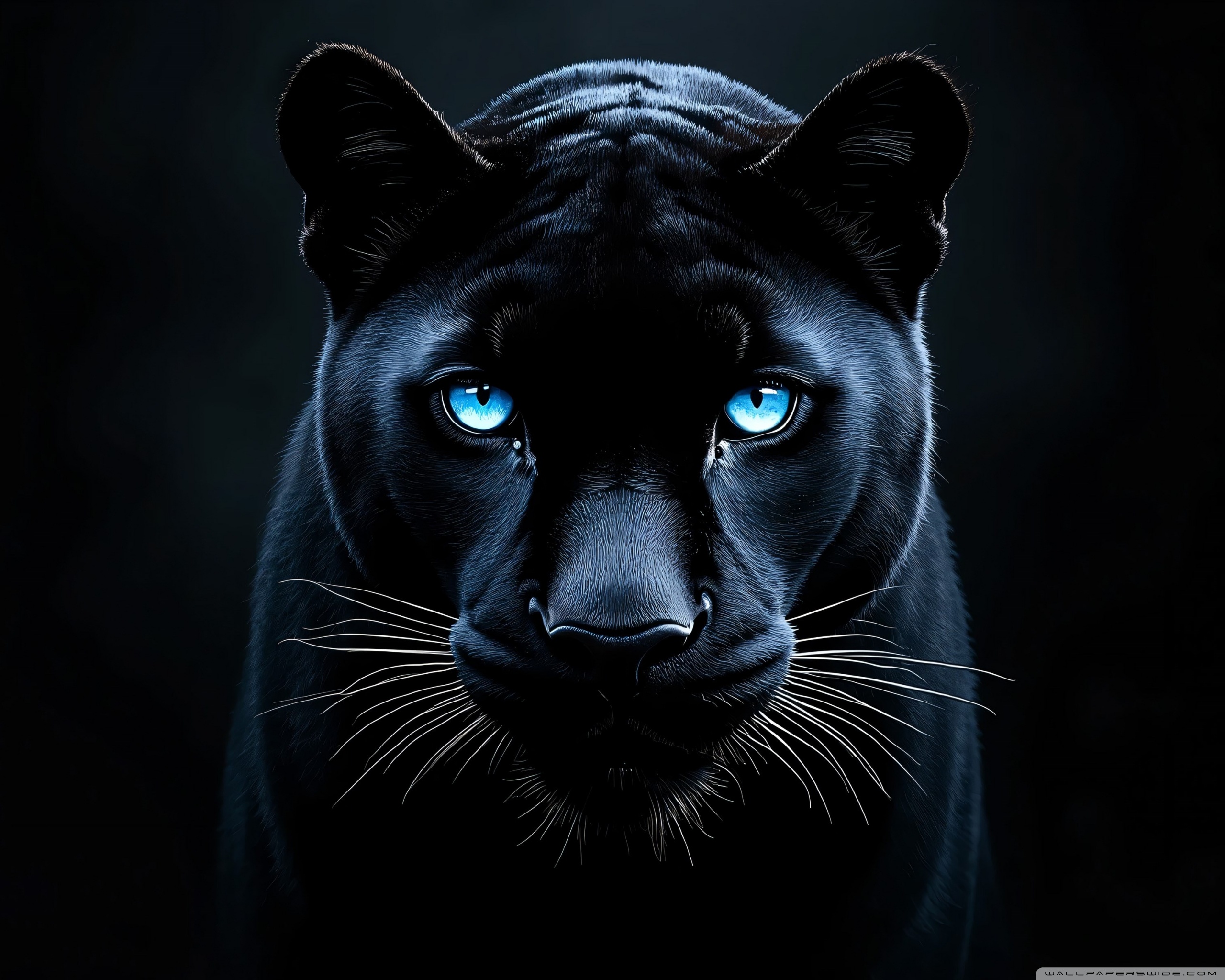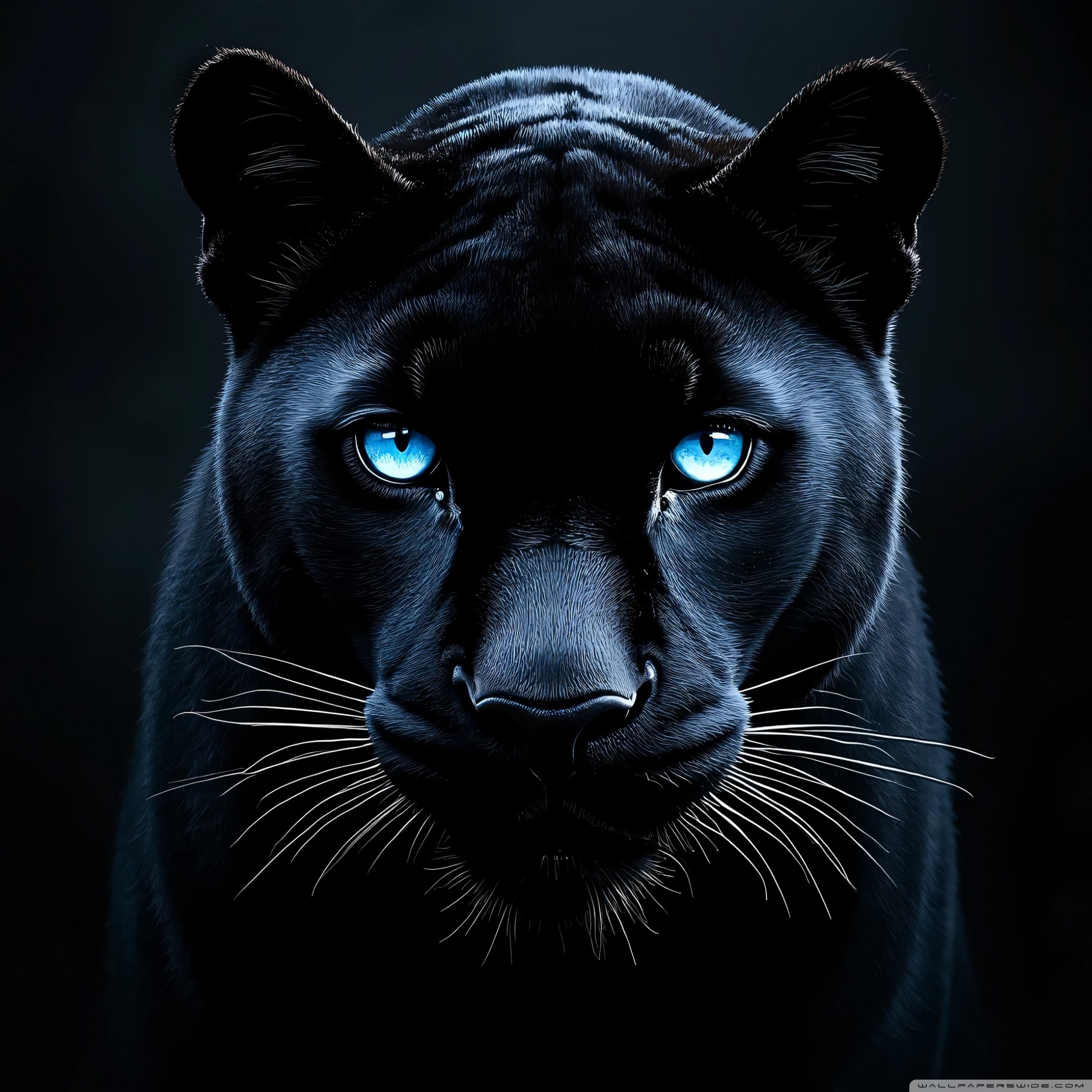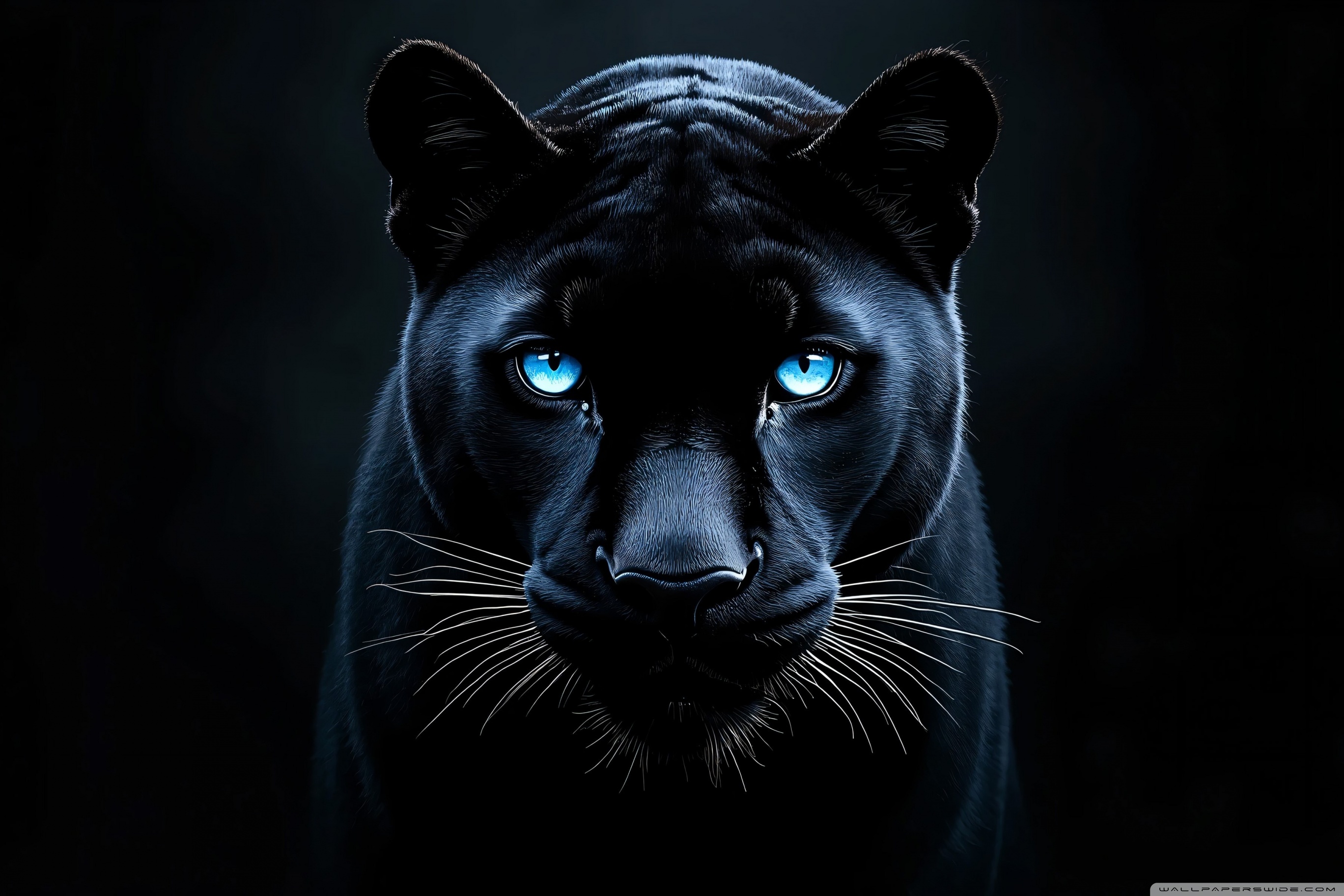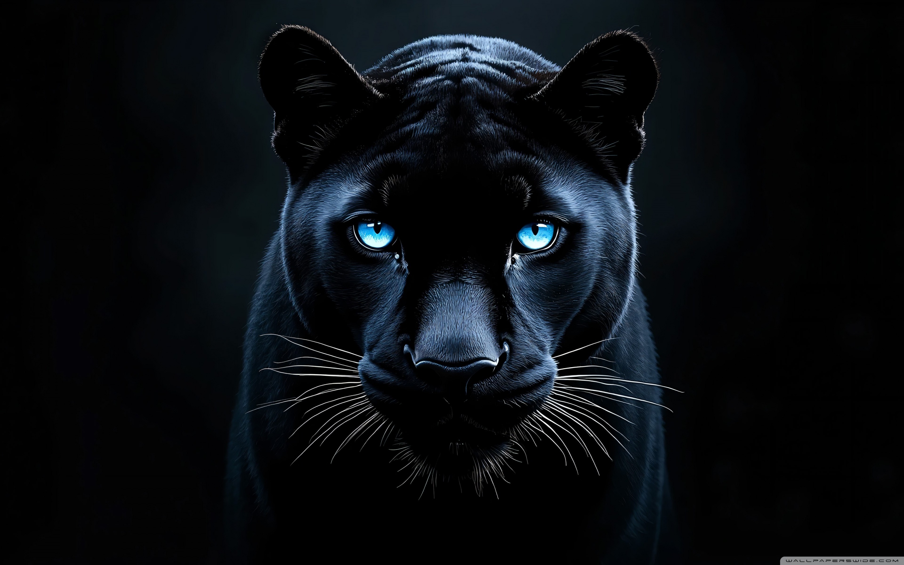 Download Black Panther With Blue Eyes Portrait 4K UHD Wallpaper