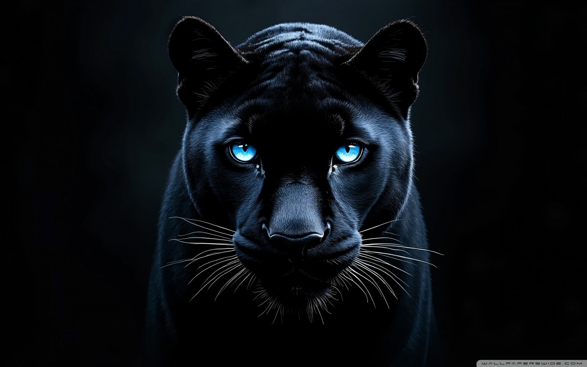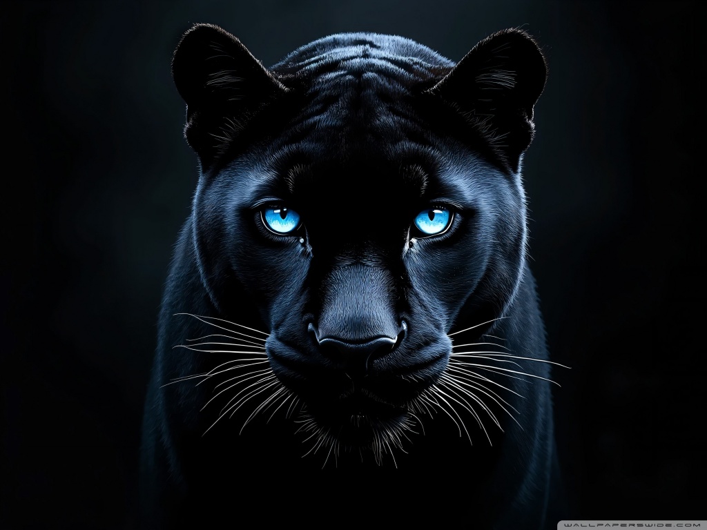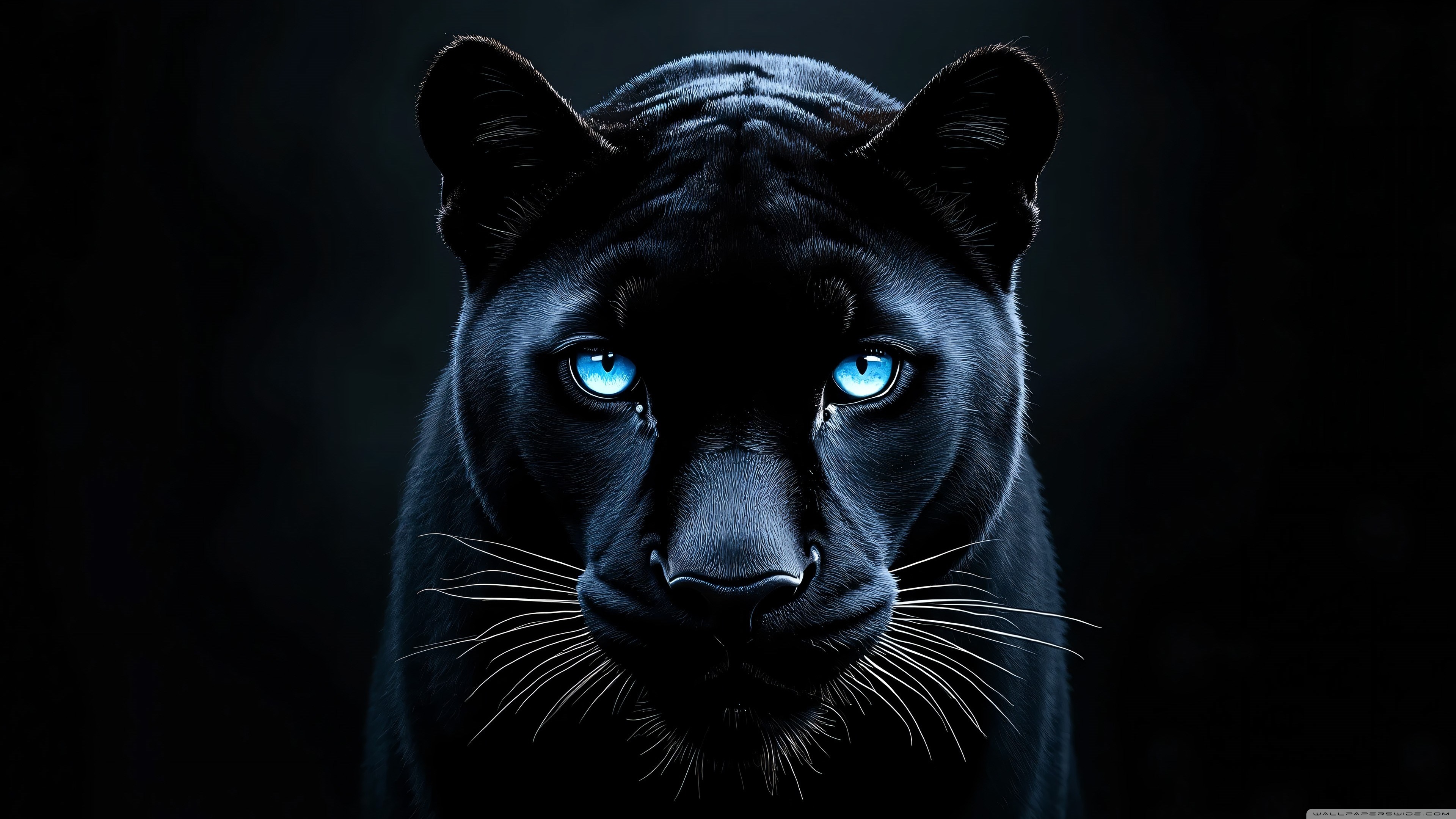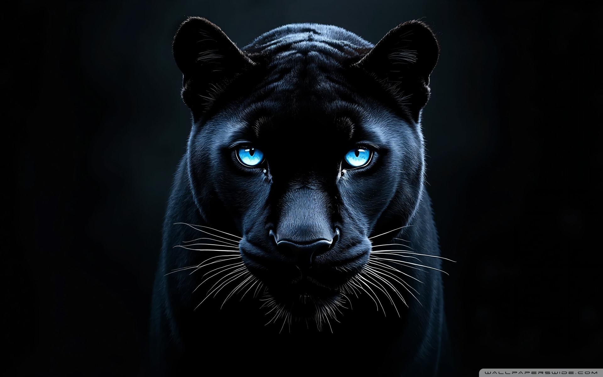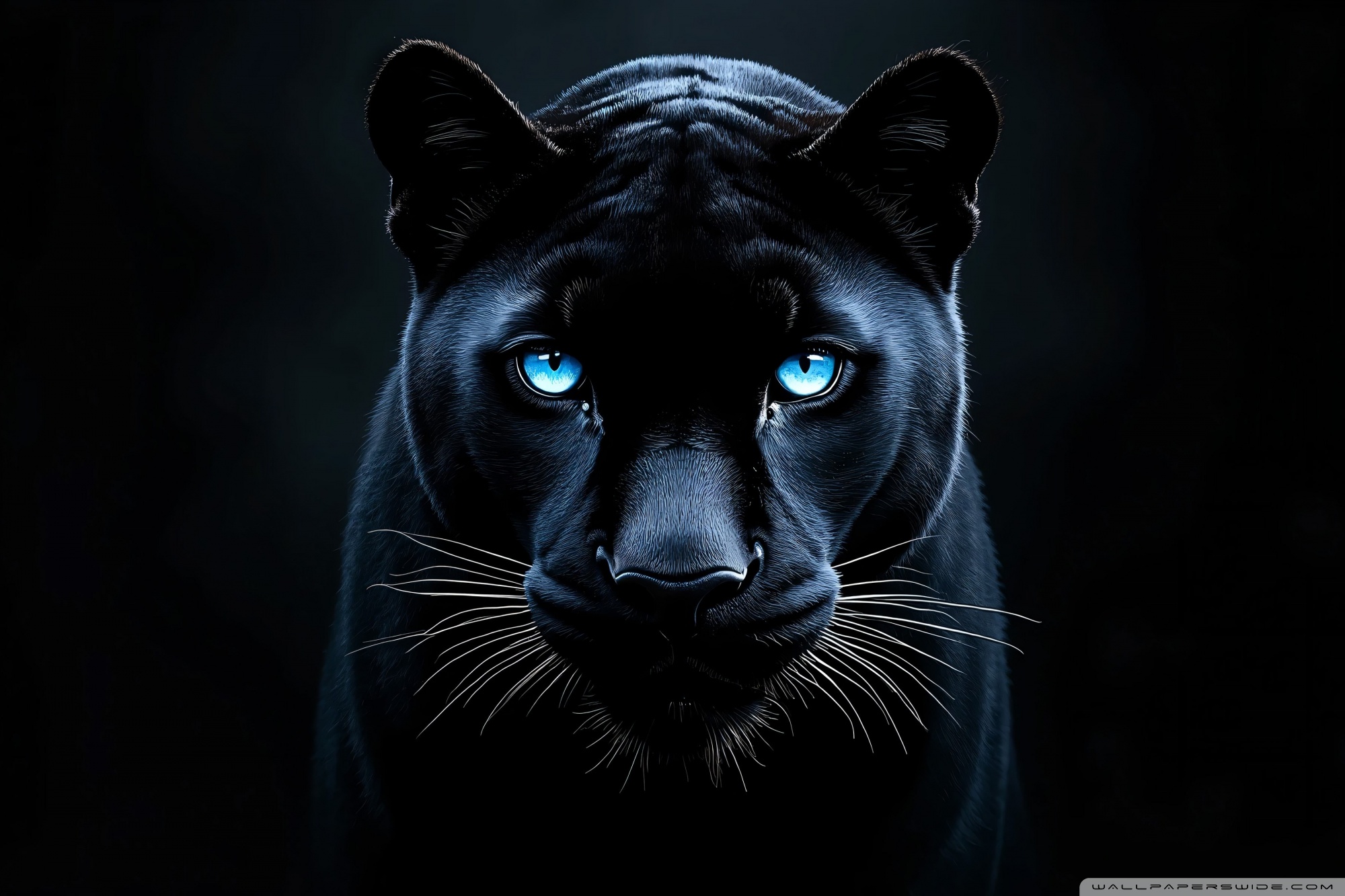Download Black Panther With Blue Eyes Portrait 4K UHD Wallpaper