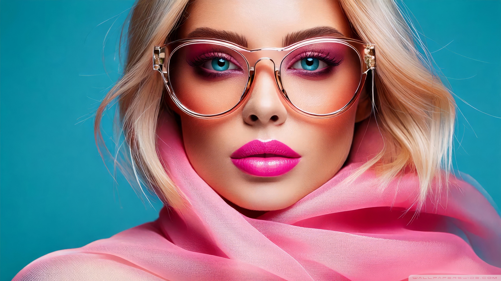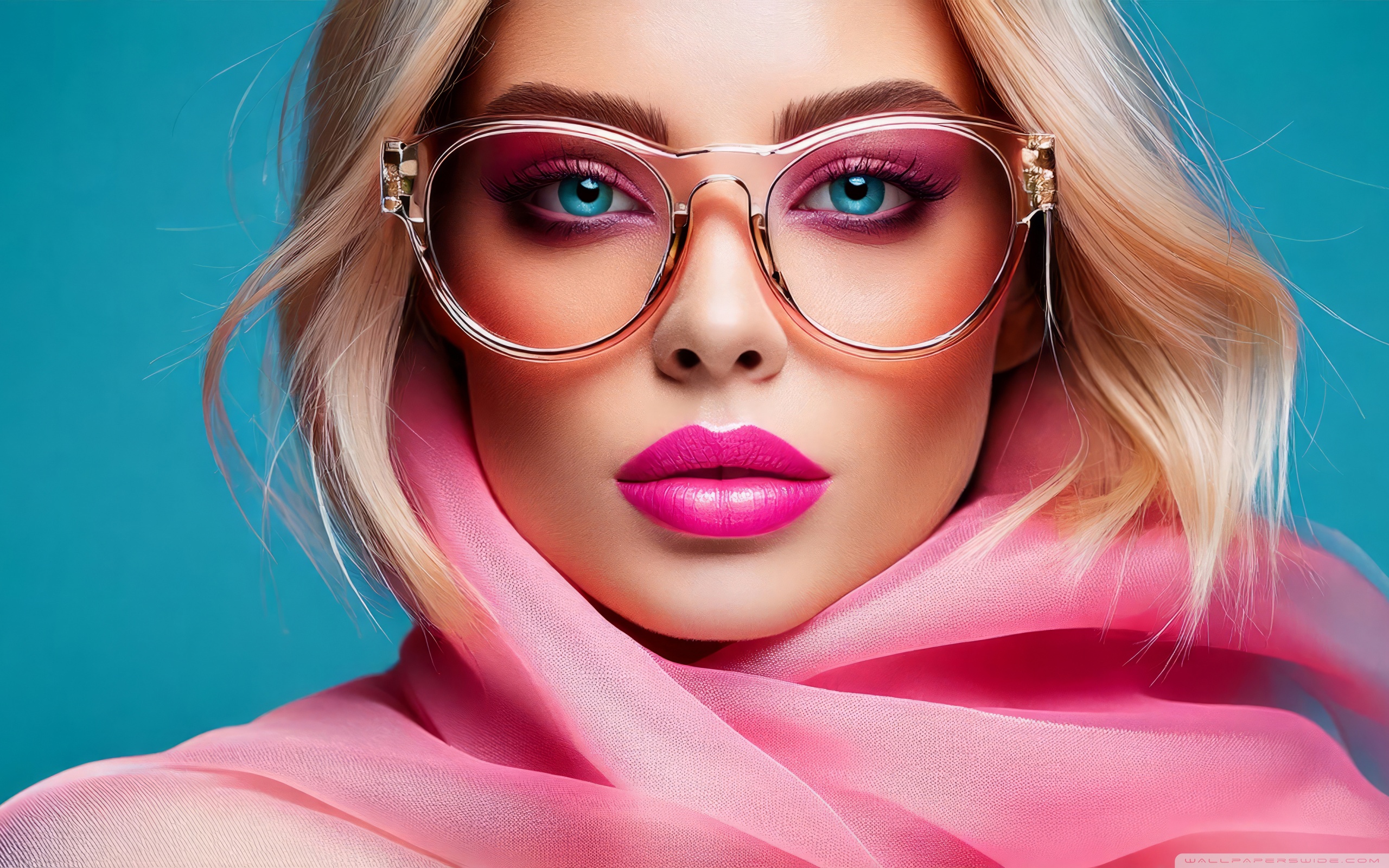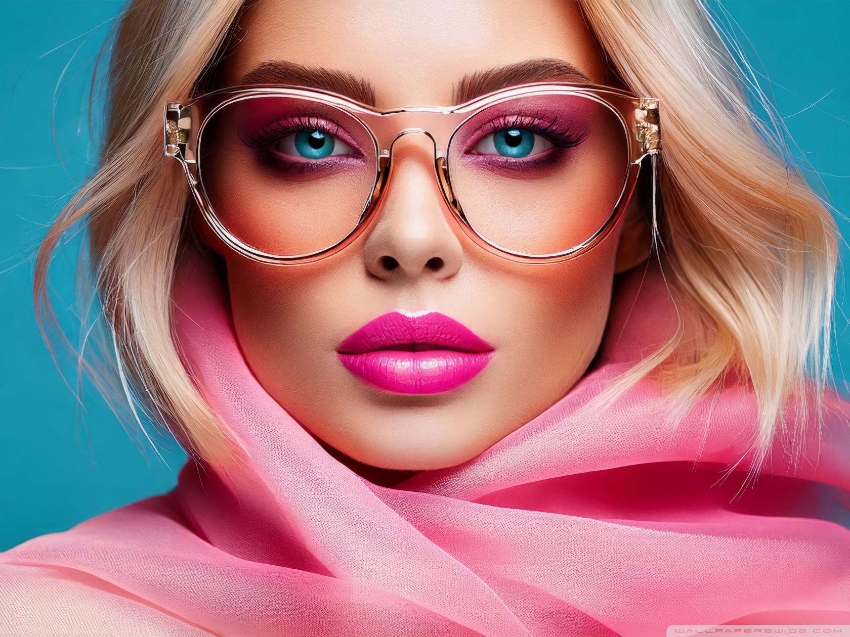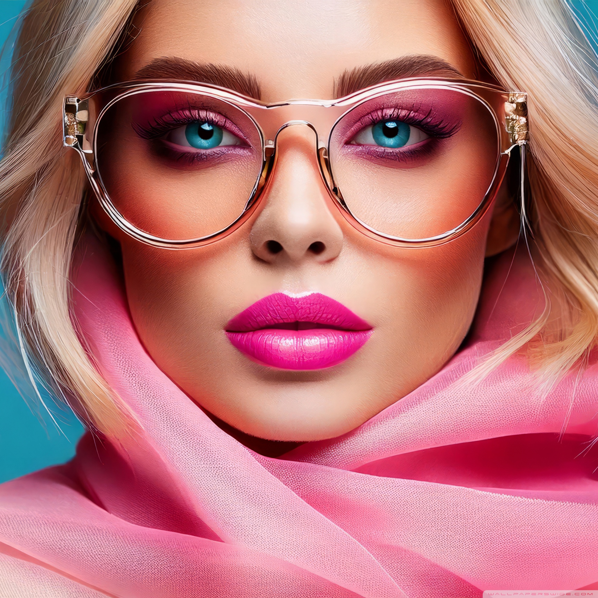 Download Blonde Beauty in Pink Scarf 4K UHD Wallpaper