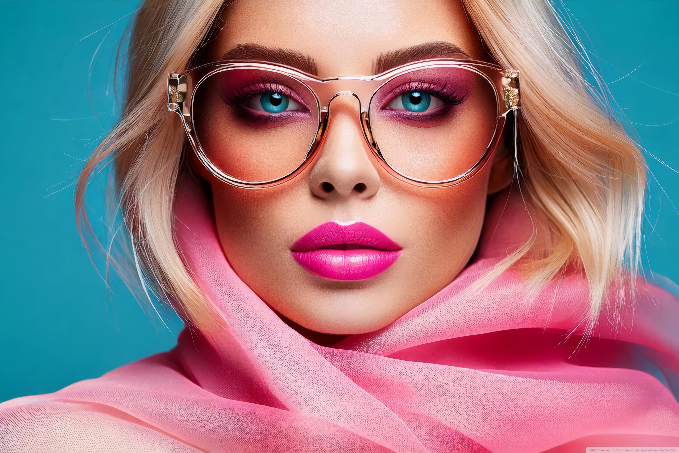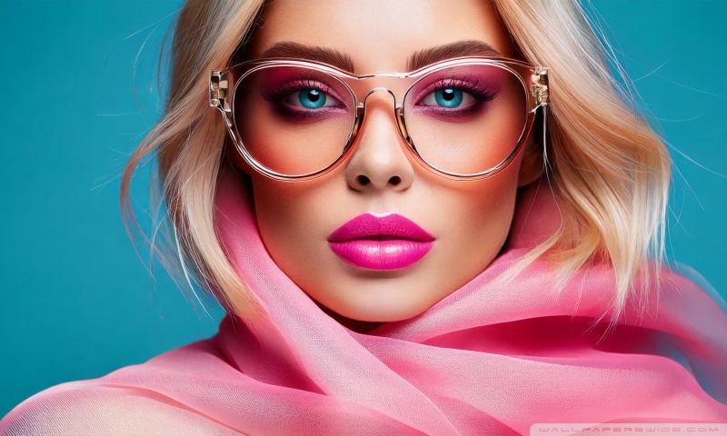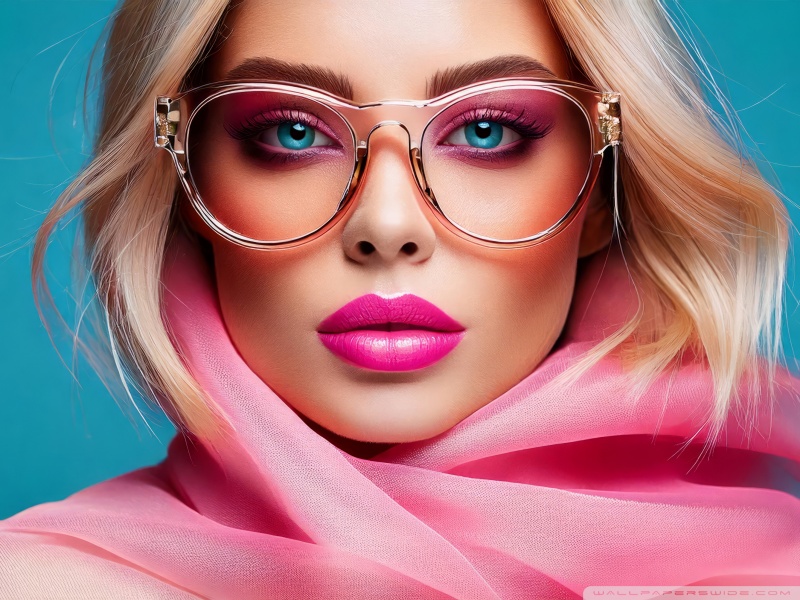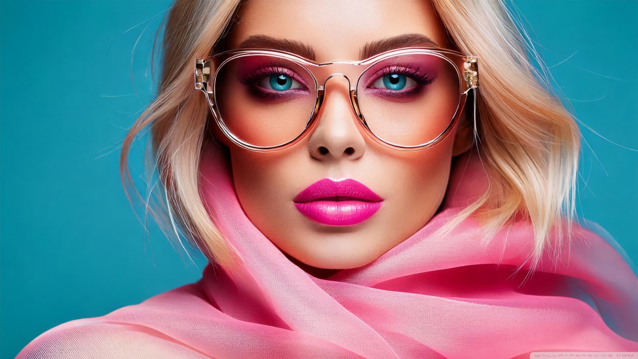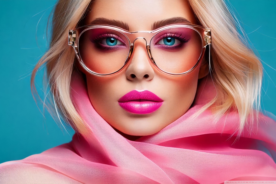Download Blonde Beauty in Pink Scarf 4K UHD Wallpaper