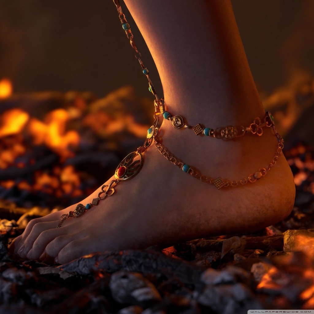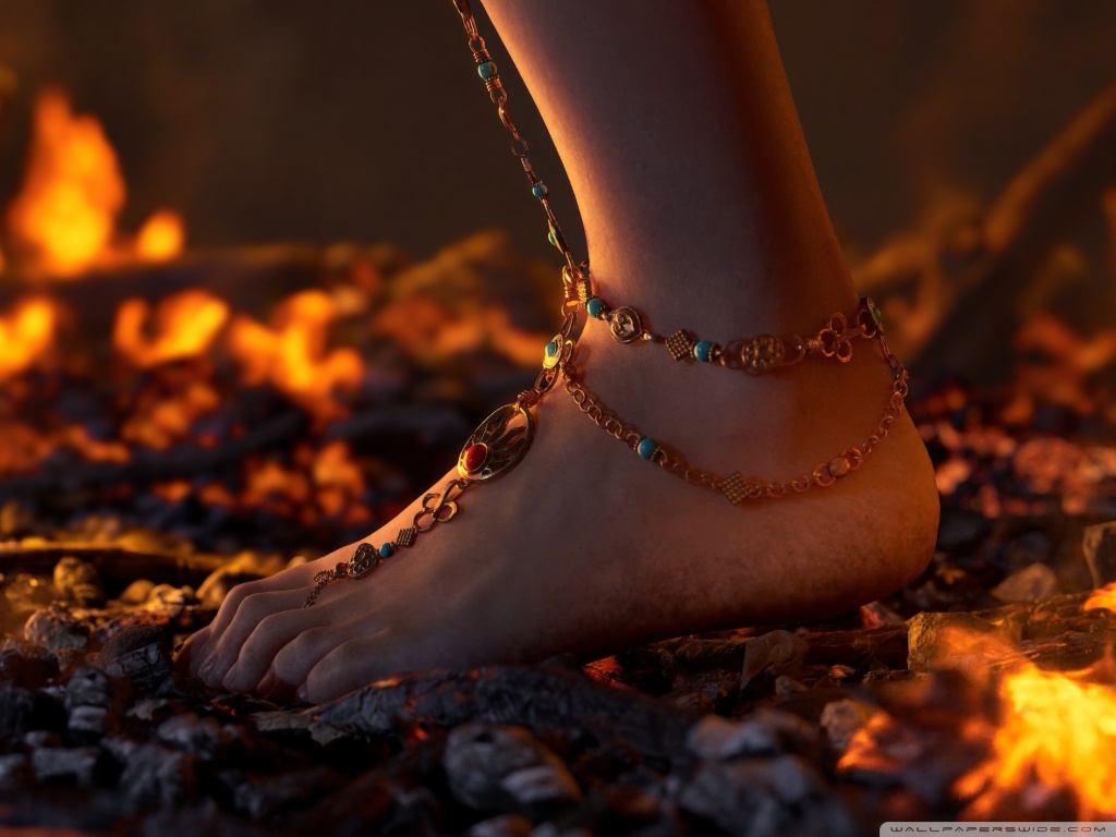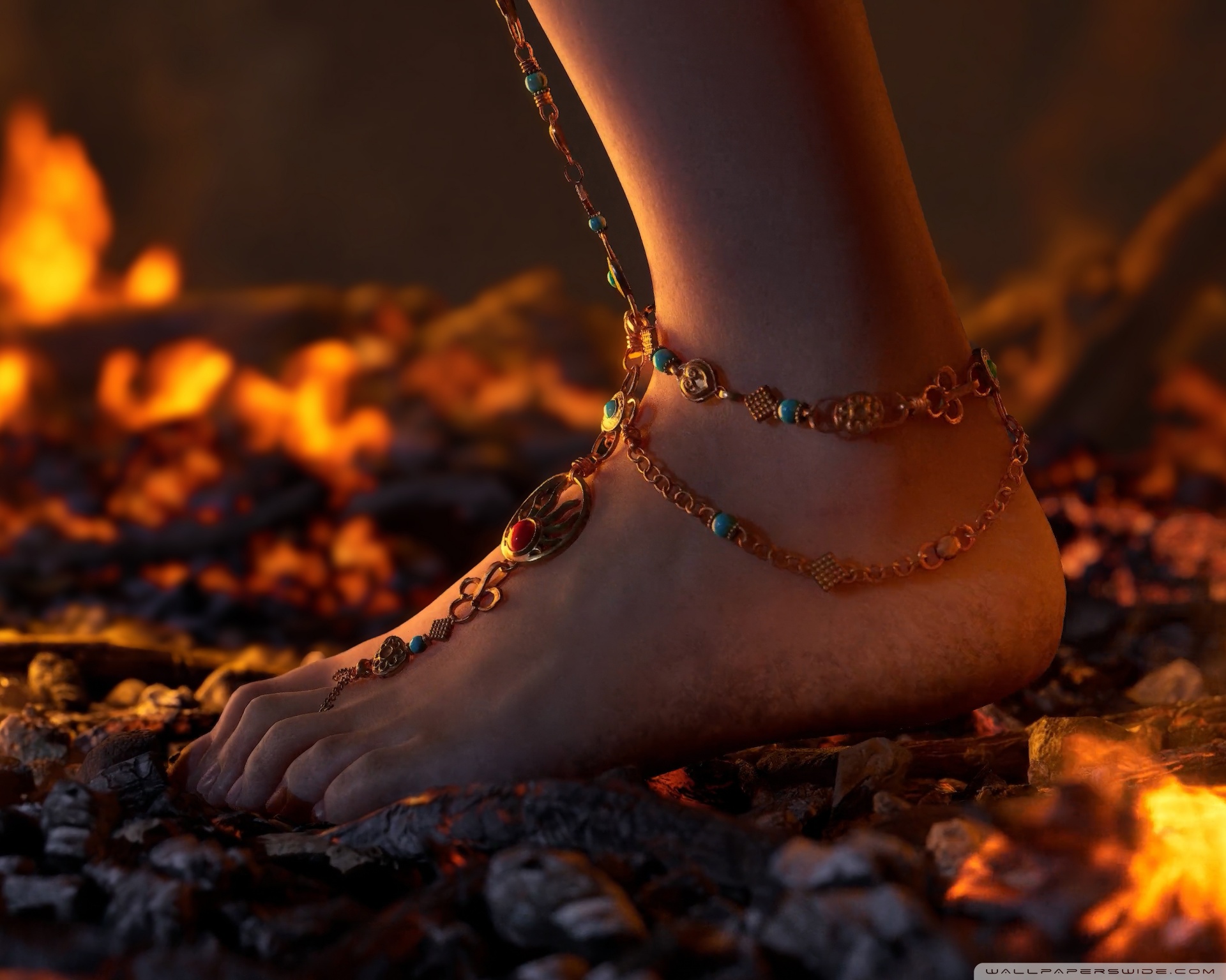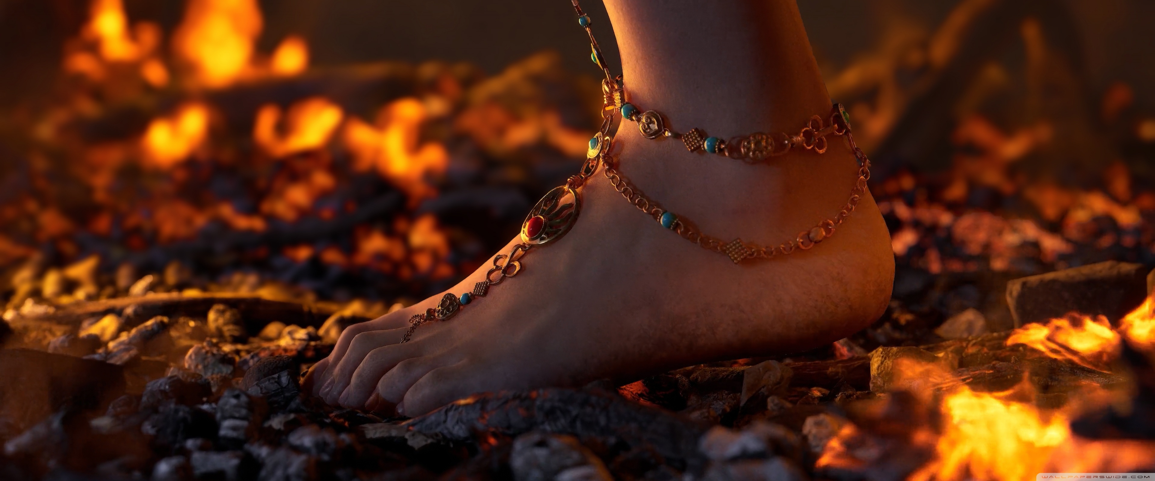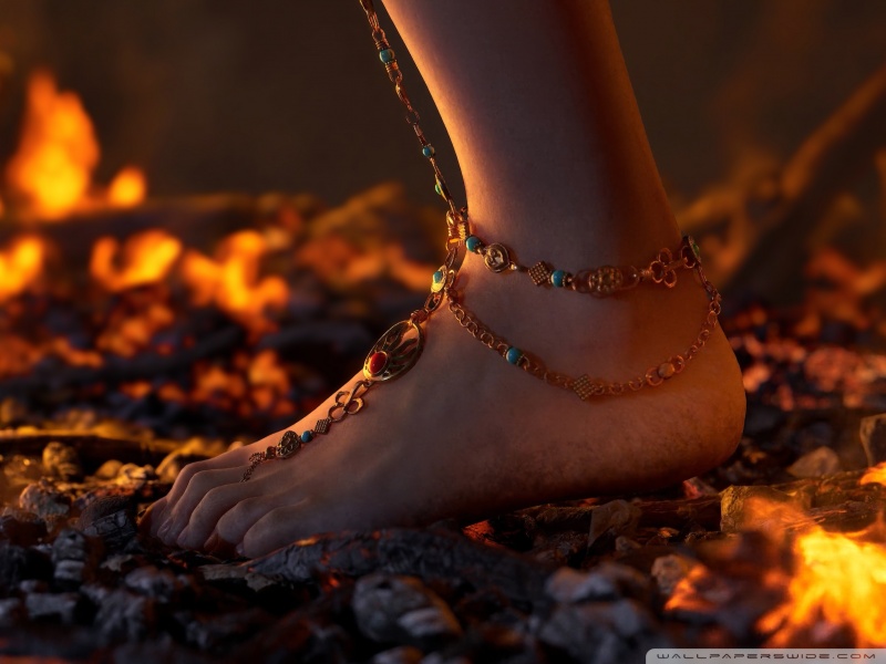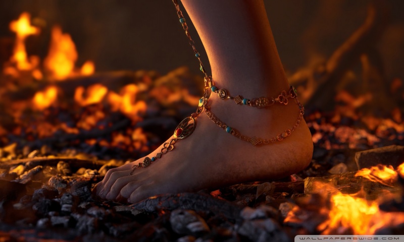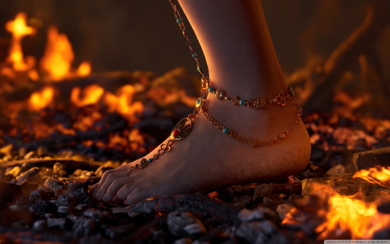 Download Blood Message, Bare Feet Walking on Fire 4K UHD Wallpaper