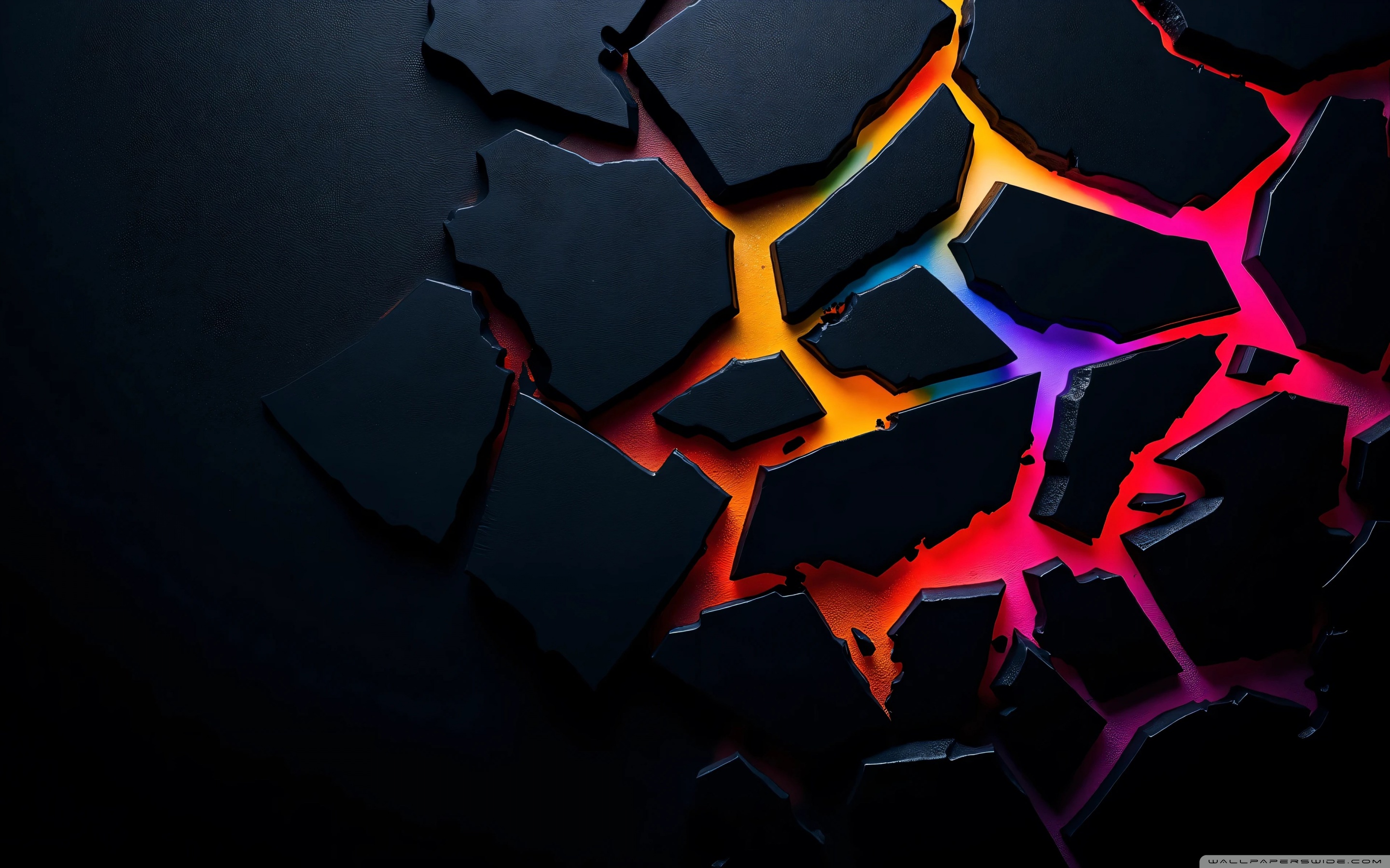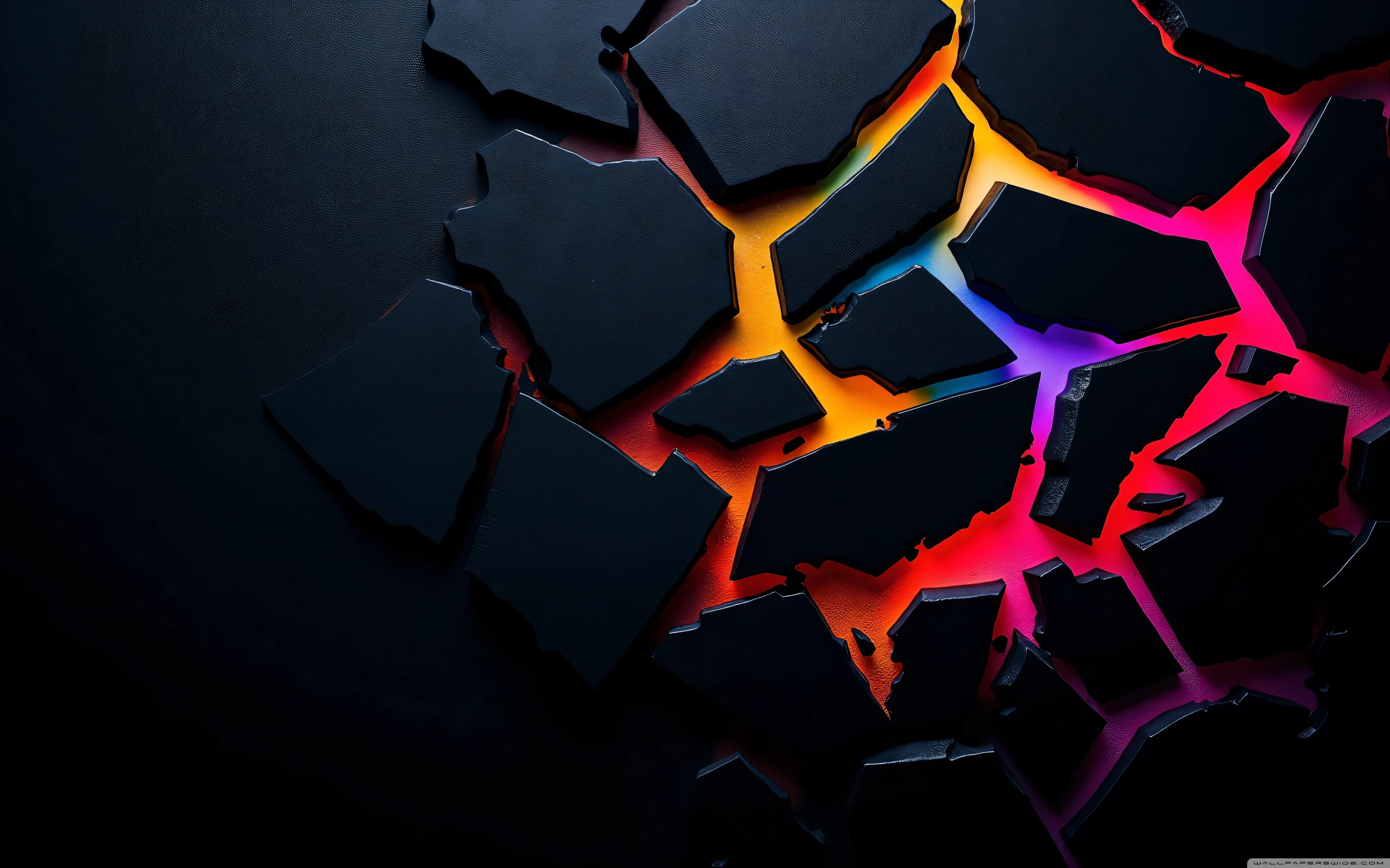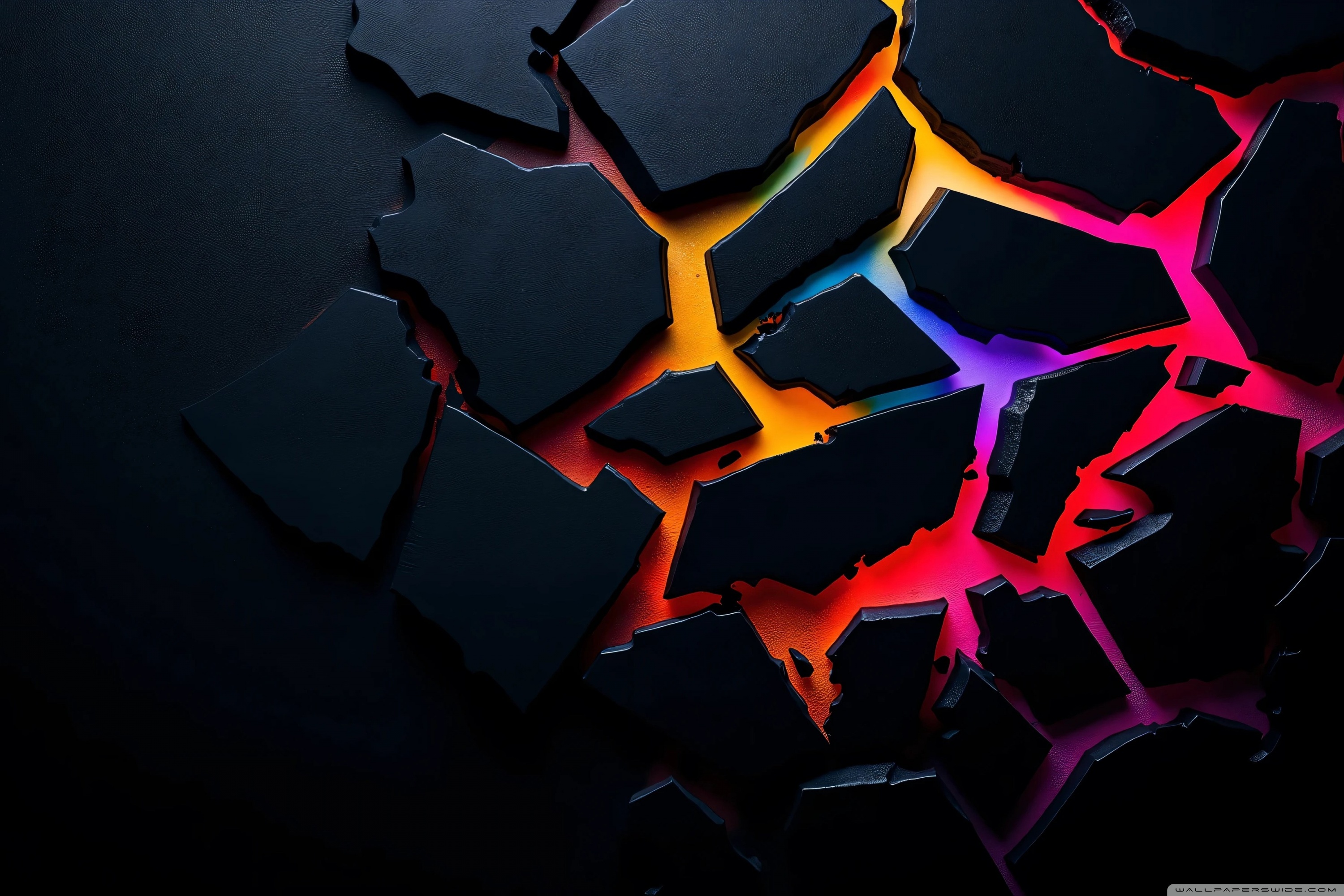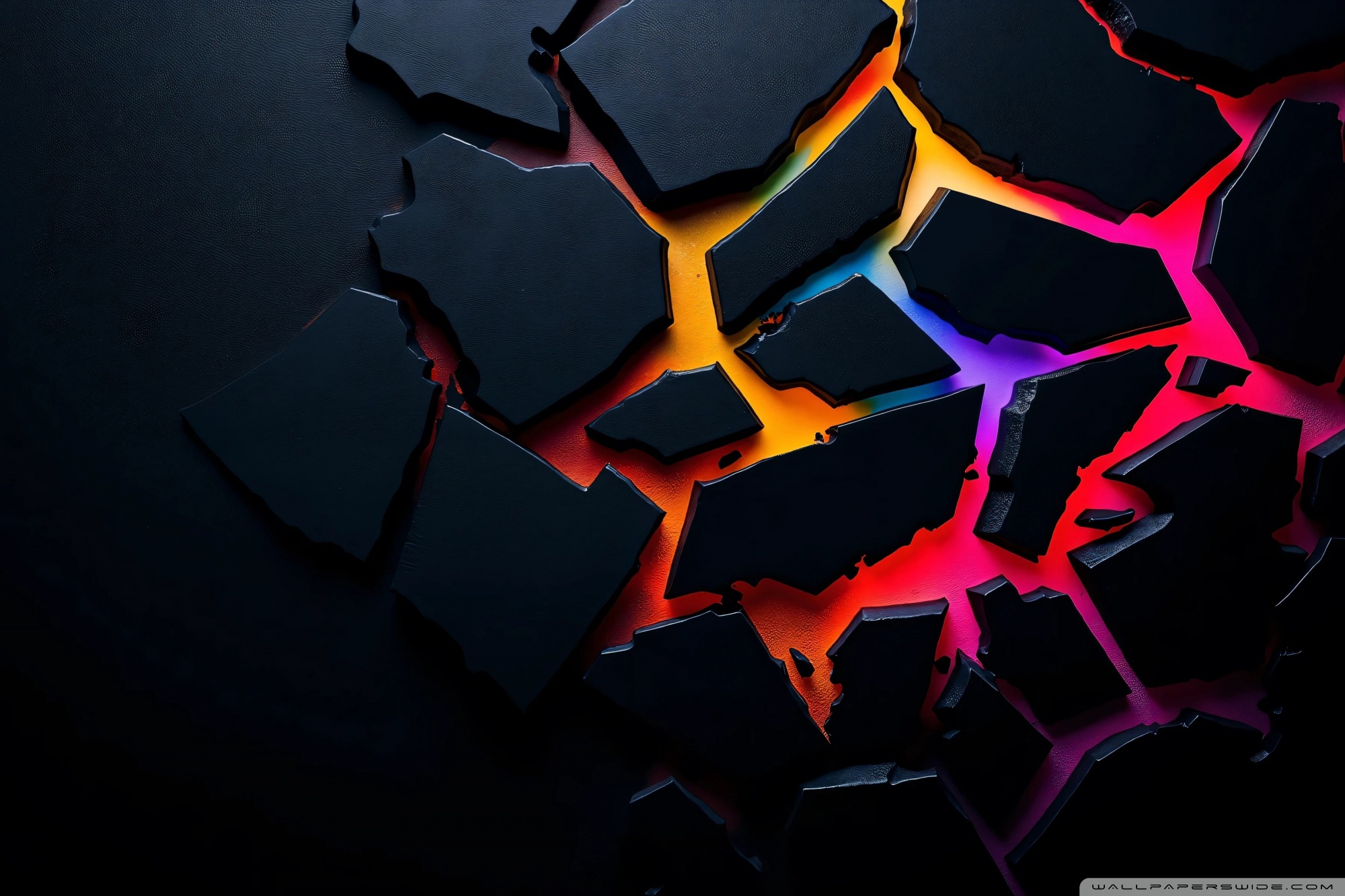 Download Broken Black Background, Colorful Contrast 4K UHD Wallpaper