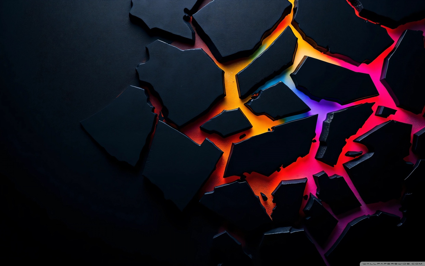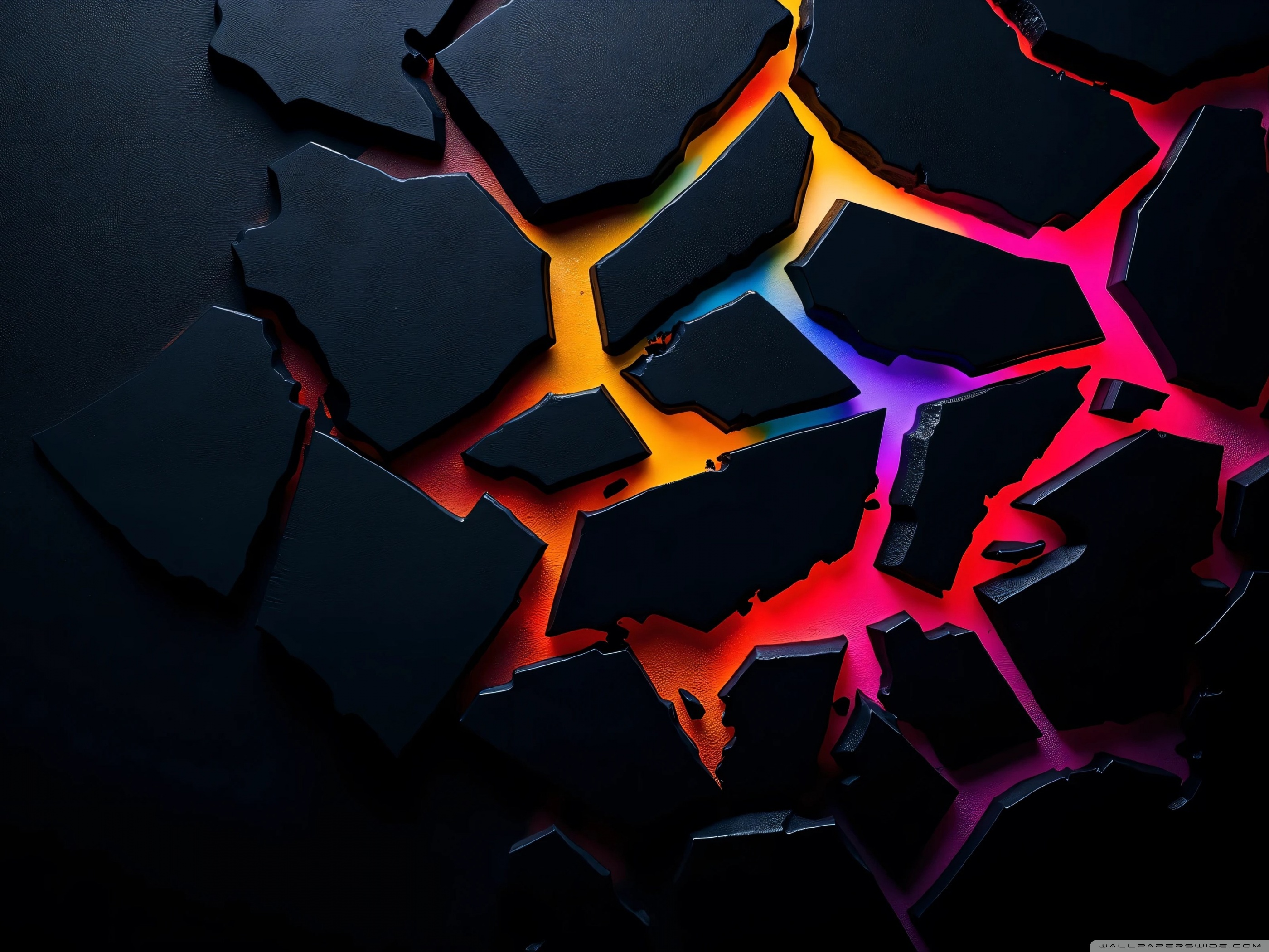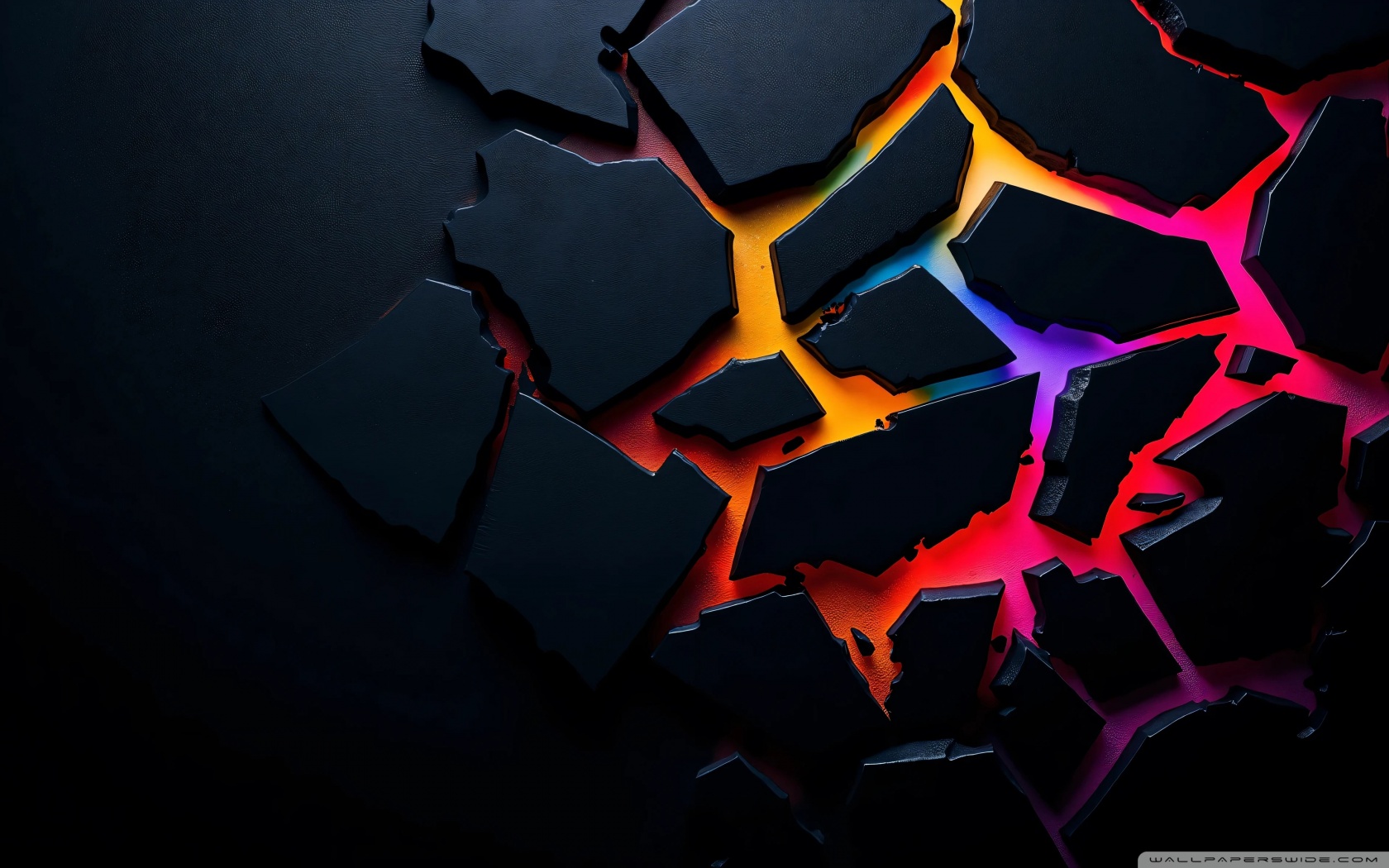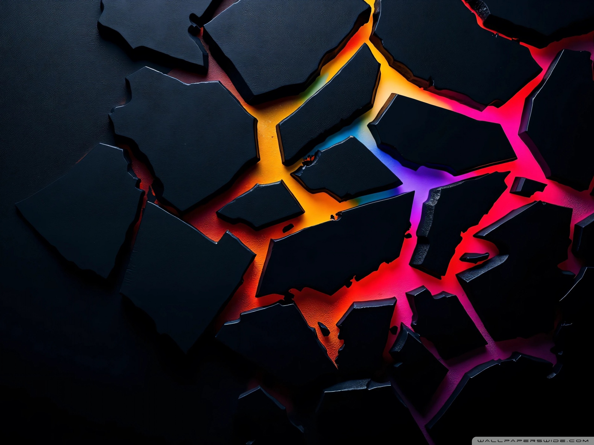 Download Broken Black Background, Colorful Contrast 4K UHD Wallpaper
