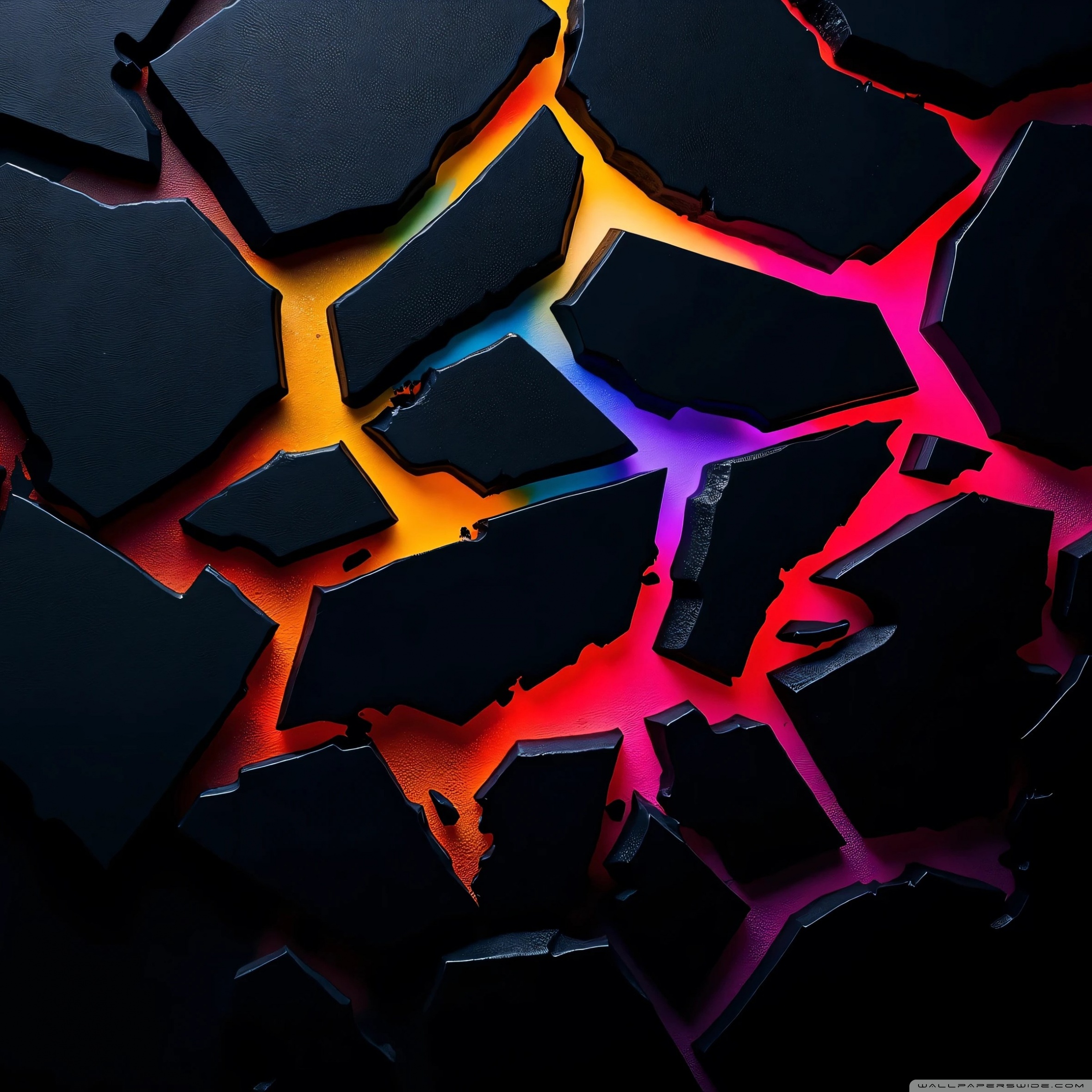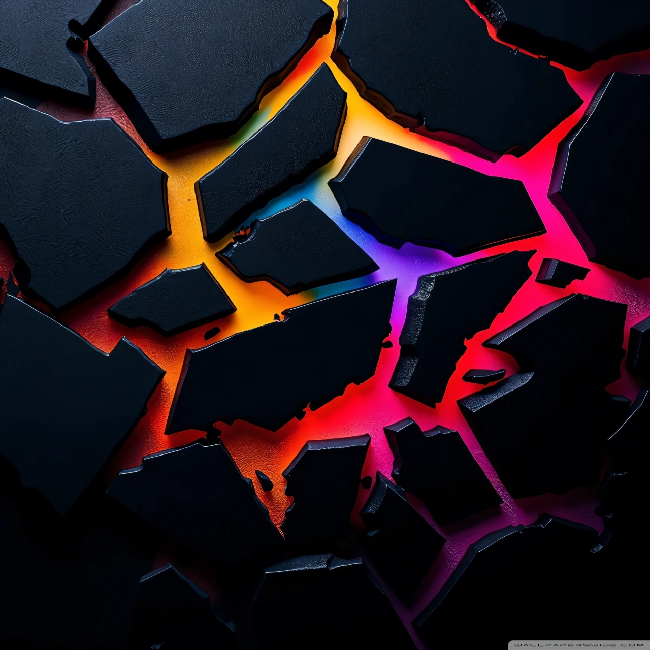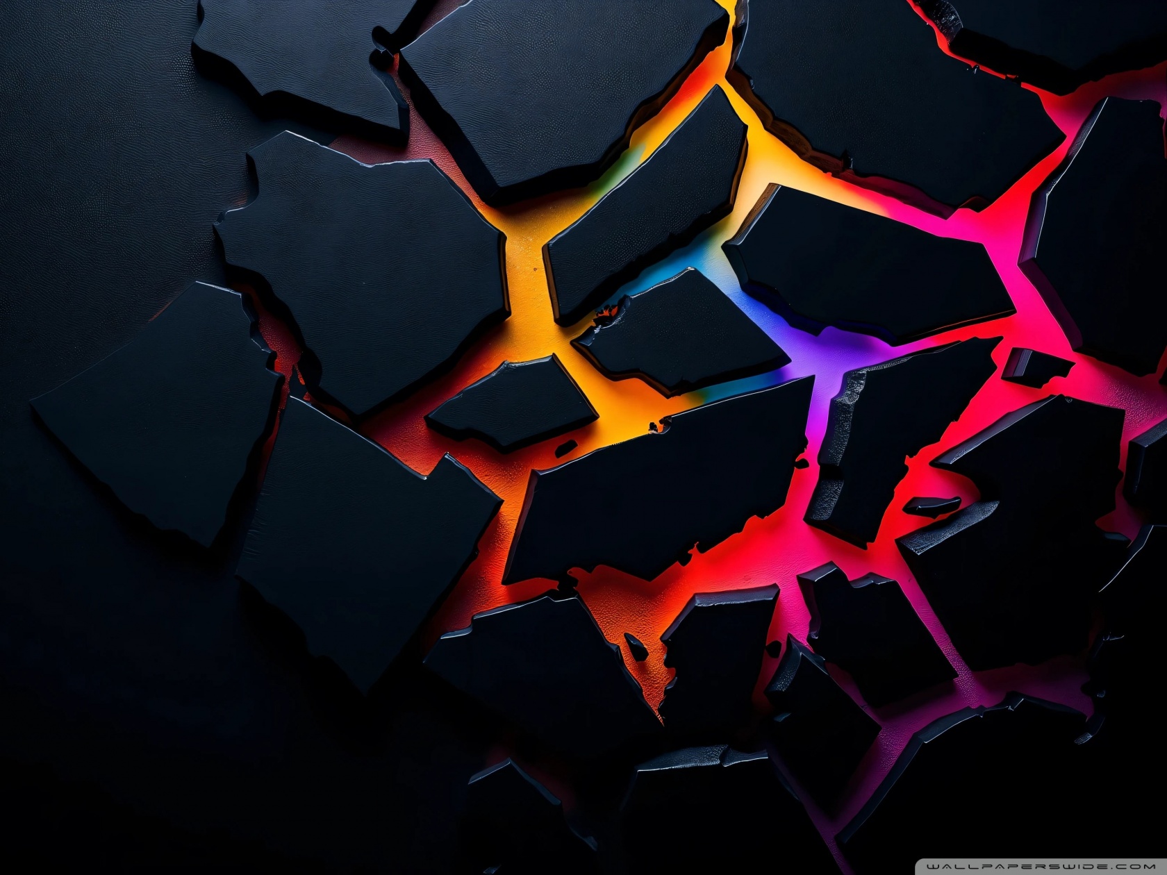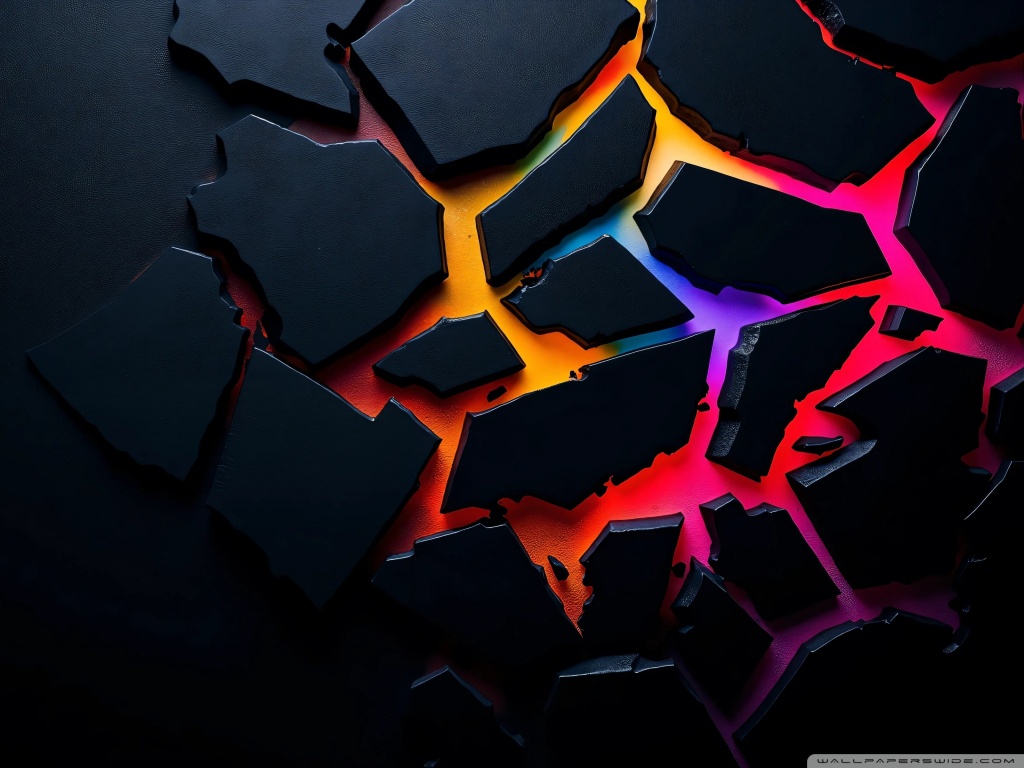 Download Broken Black Background, Colorful Contrast 4K UHD Wallpaper