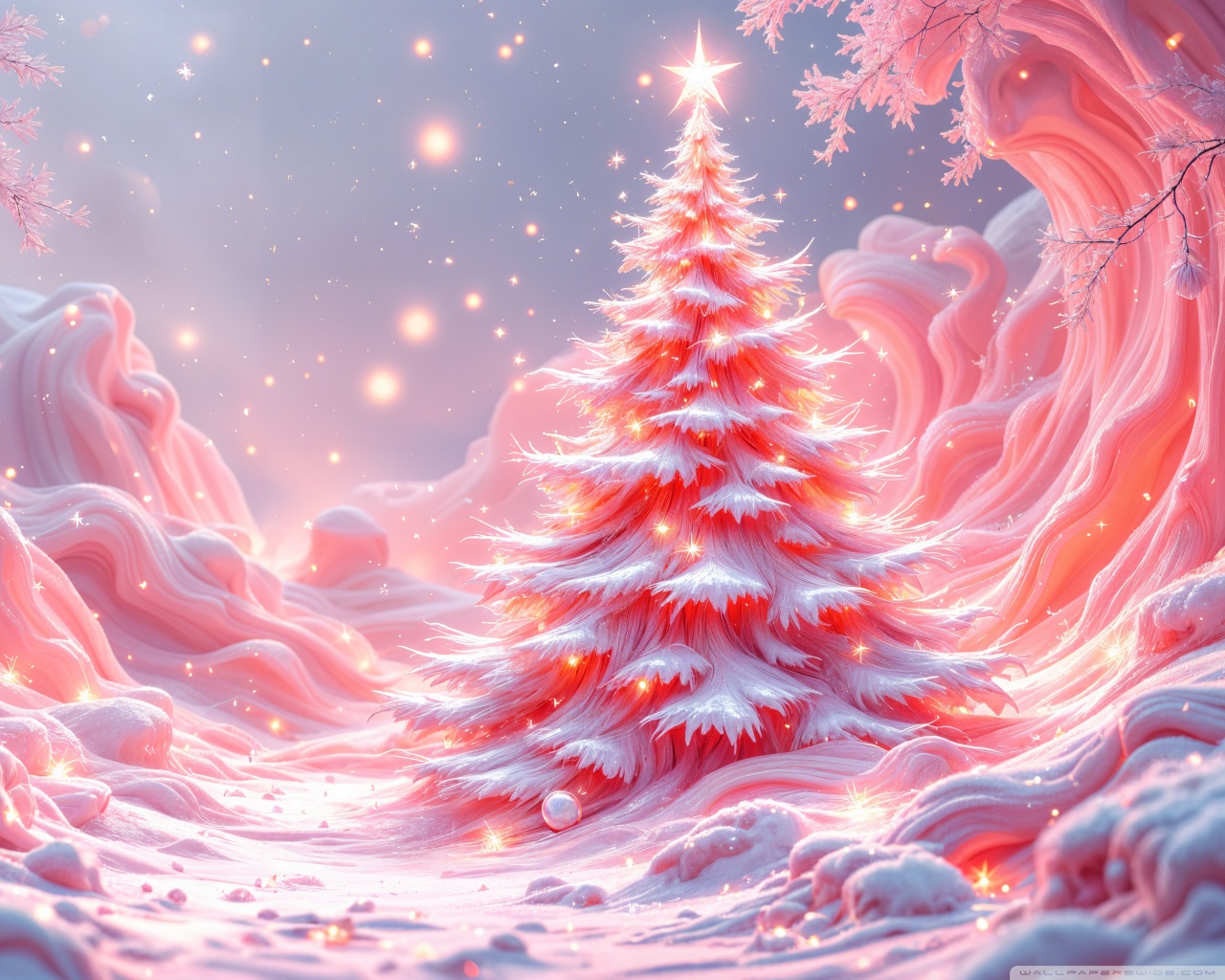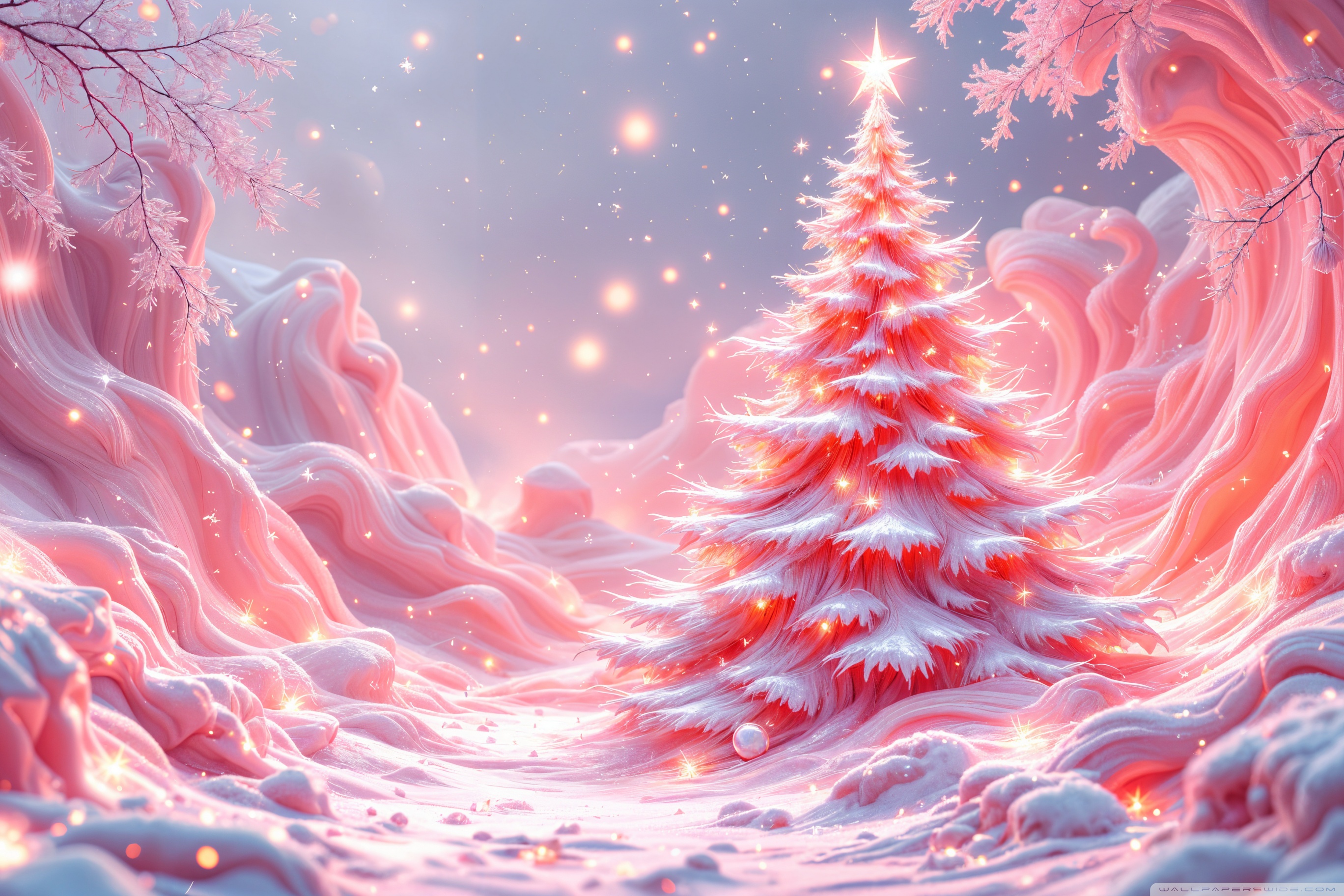 Download Candy Themed Pink Christmas Wonderland 4K UHD Wallpaper