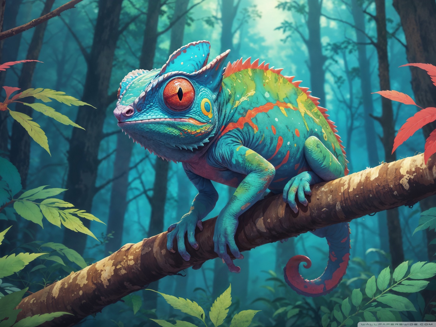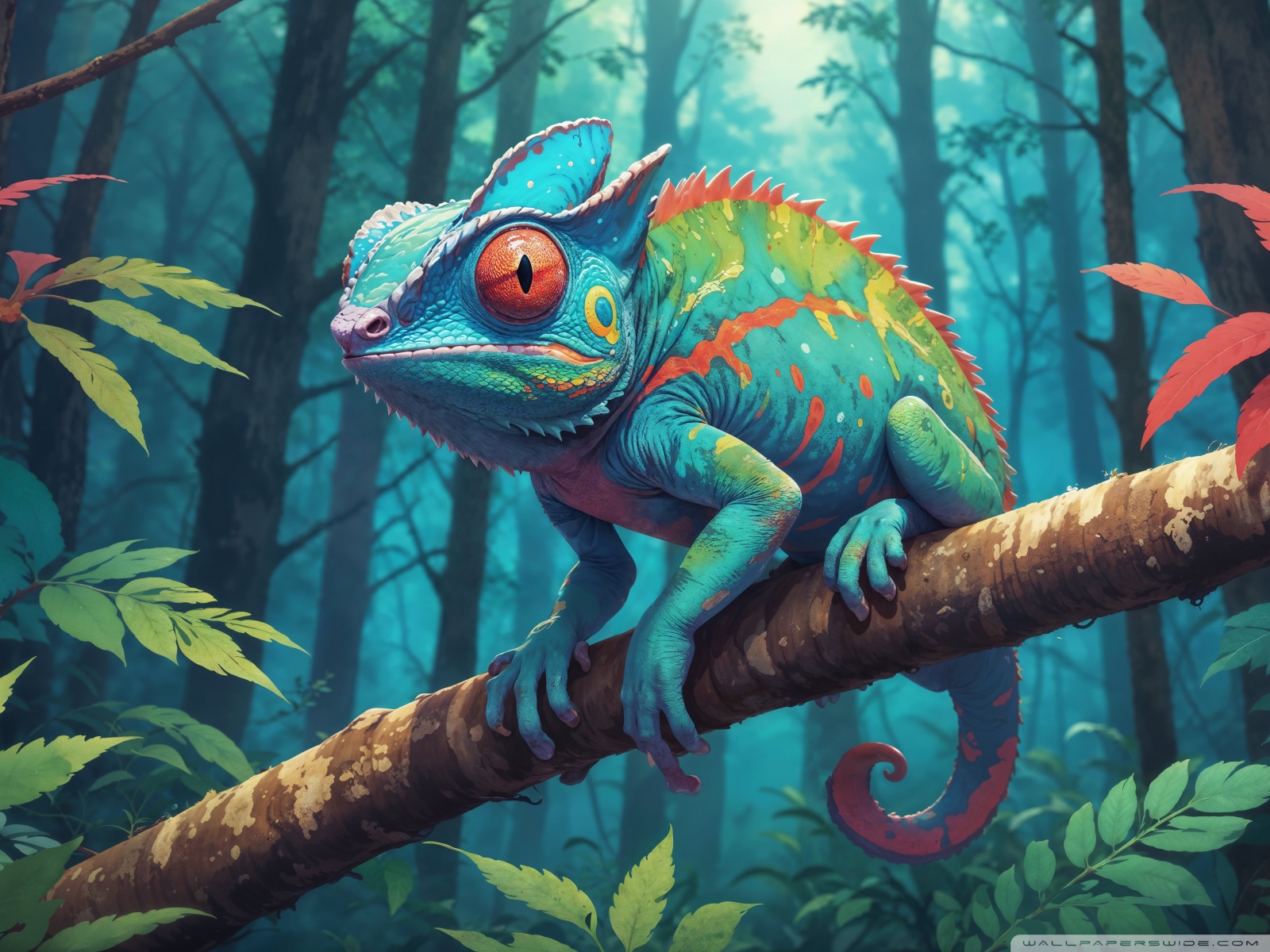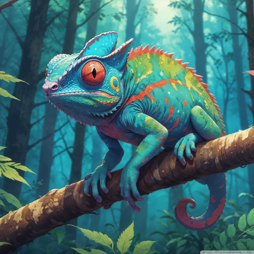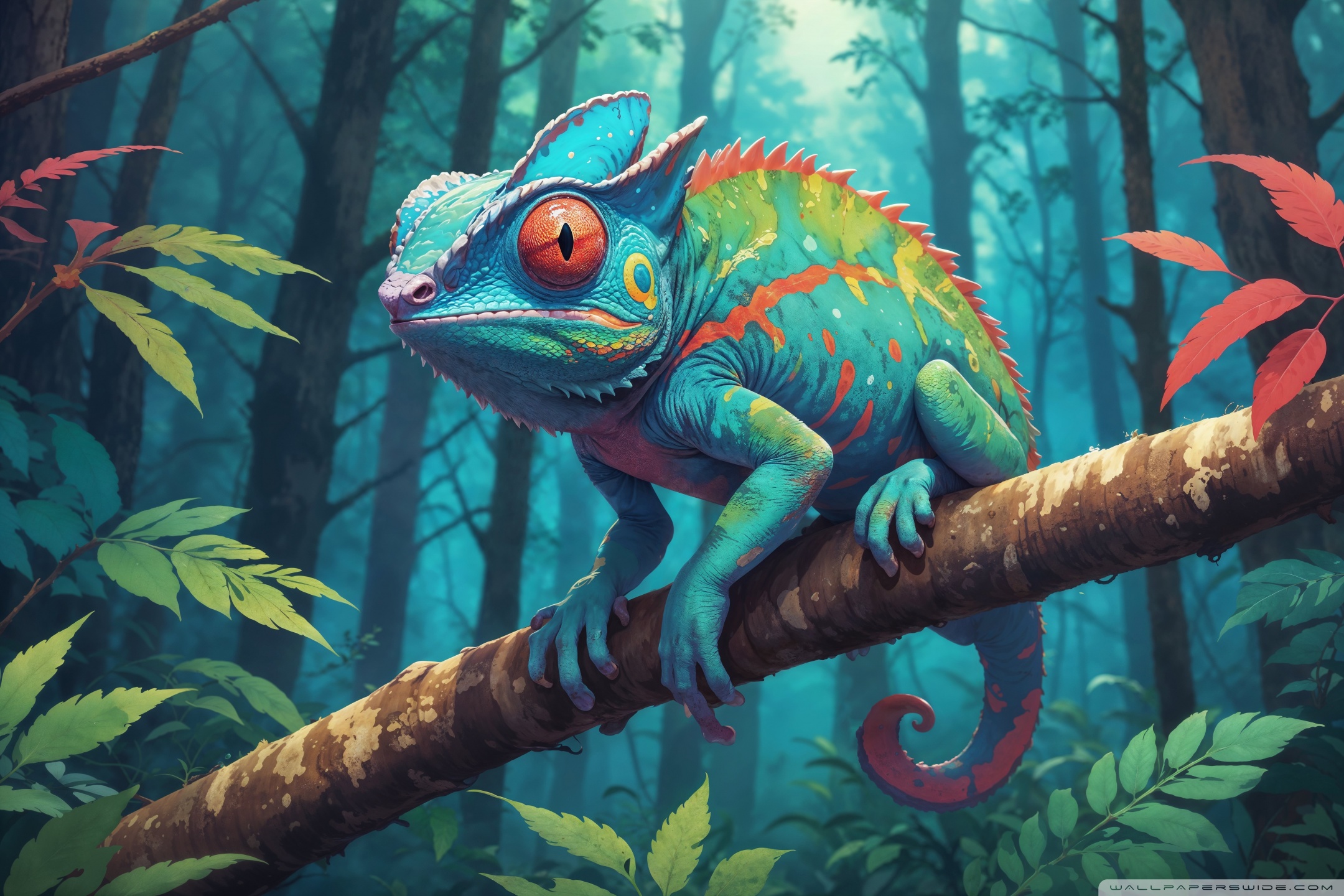 Download Chameleon Wildlife Illustration 4K UHD Wallpaper