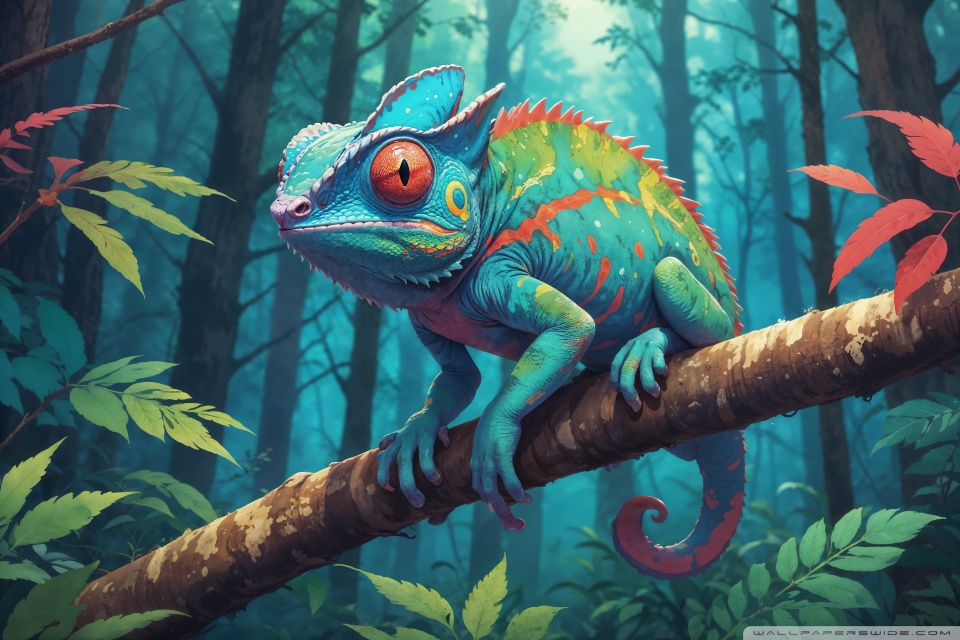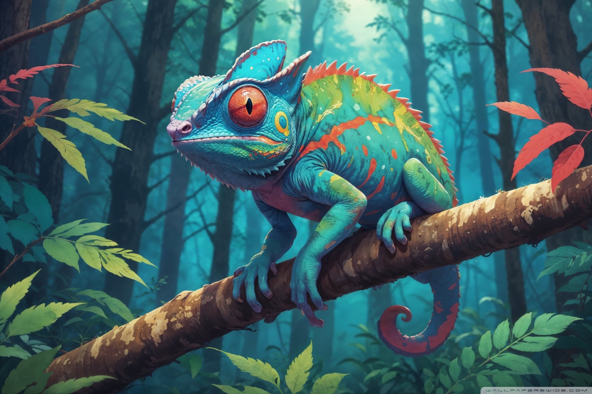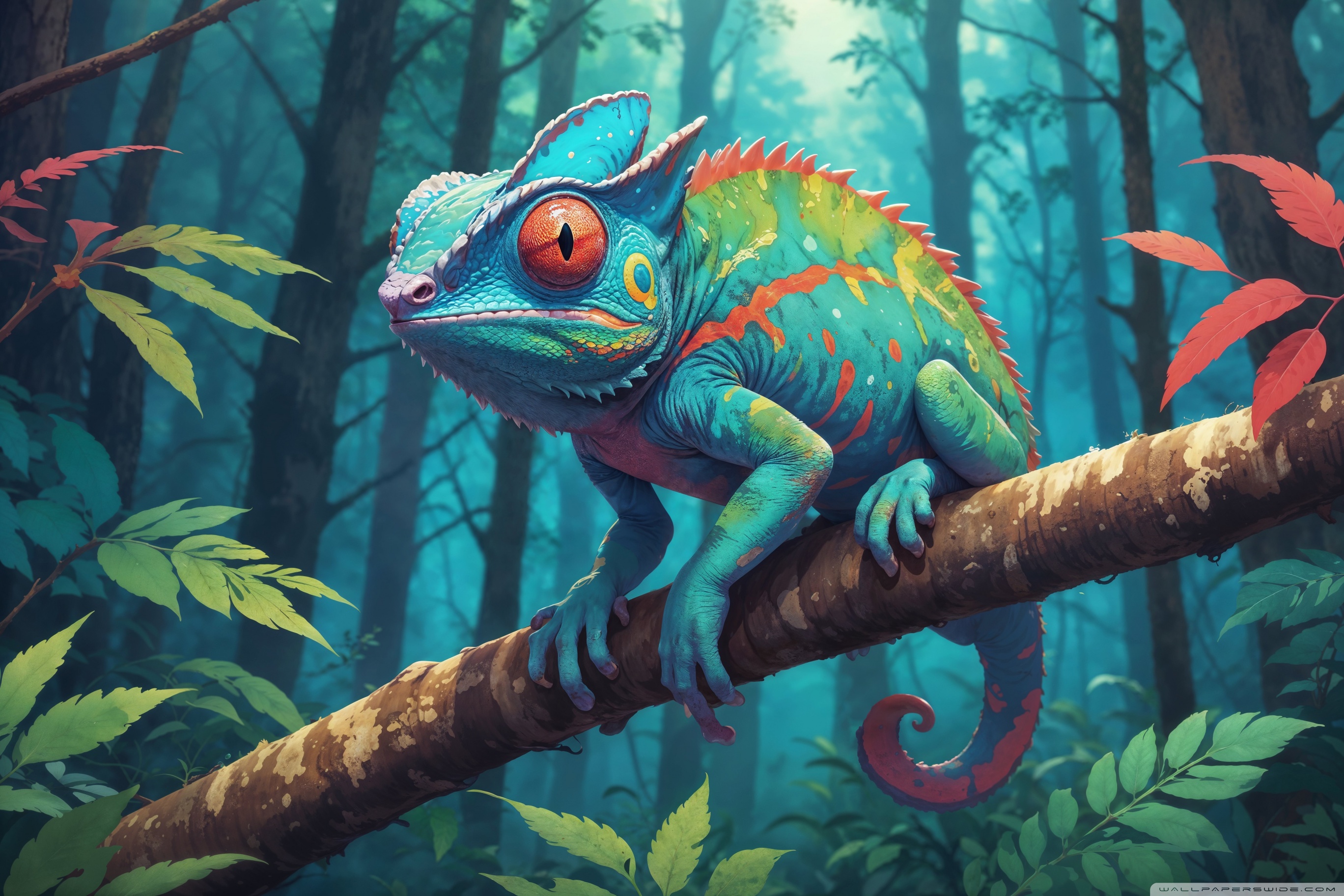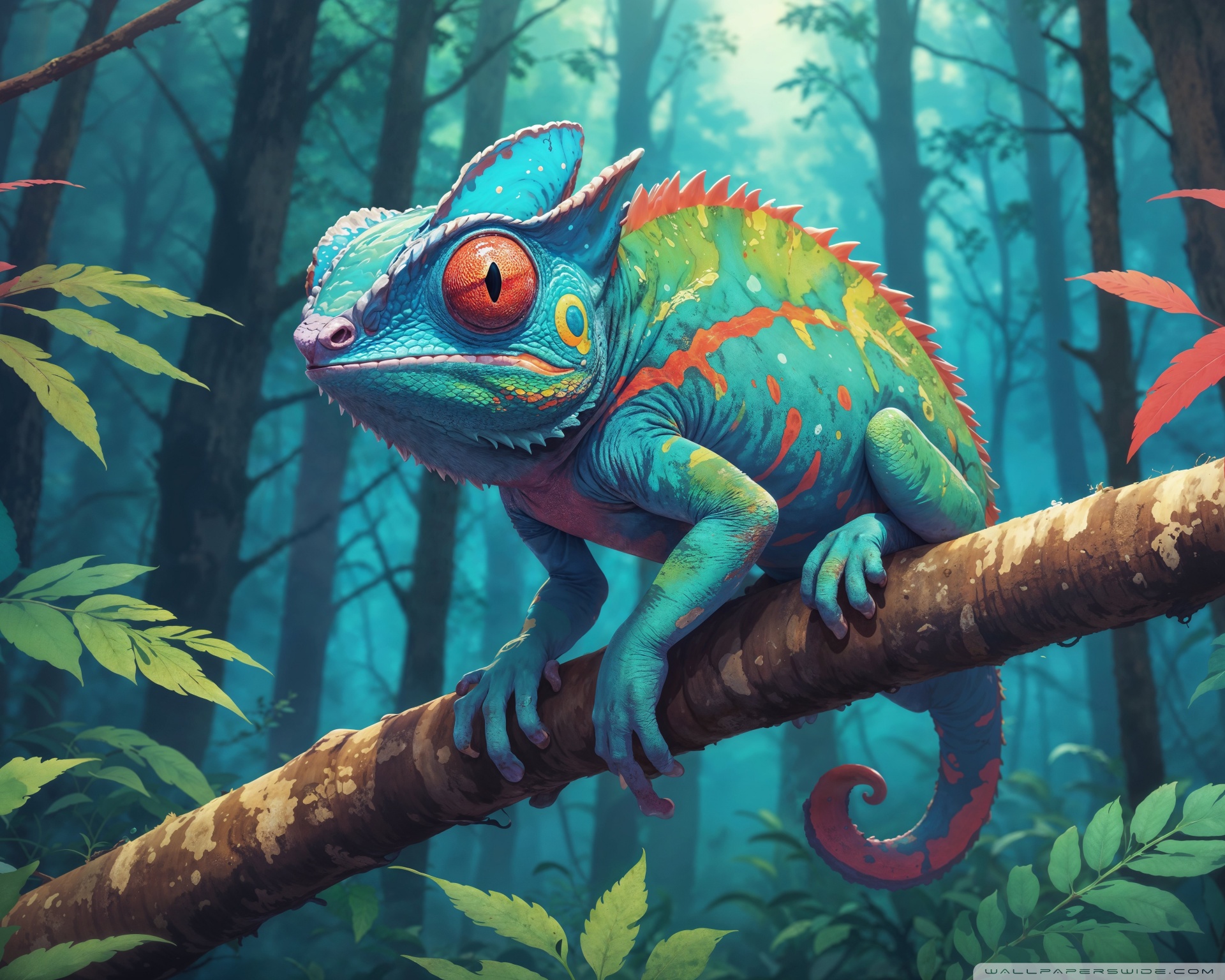 Download Chameleon Wildlife Illustration 4K UHD Wallpaper