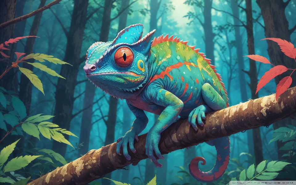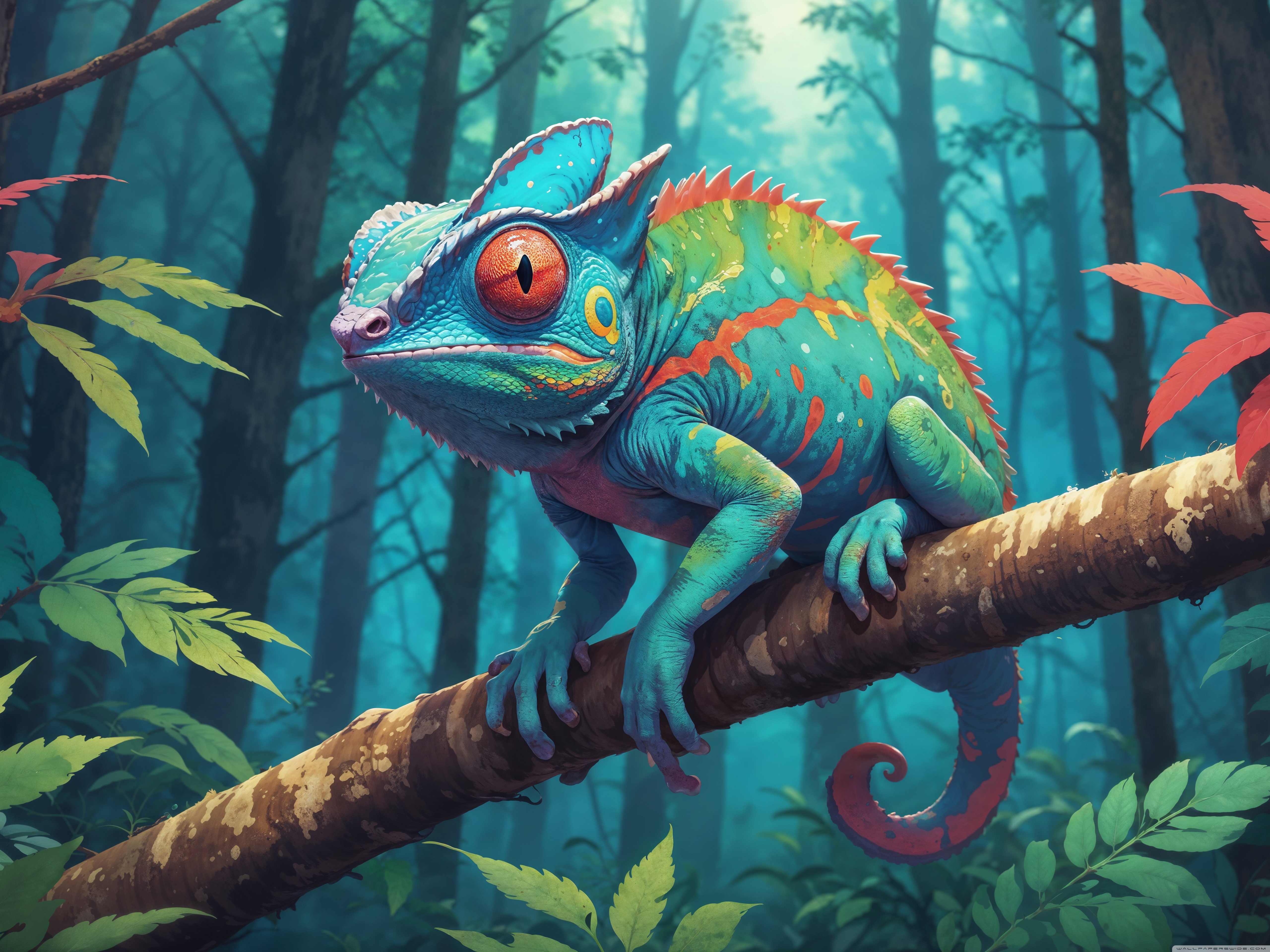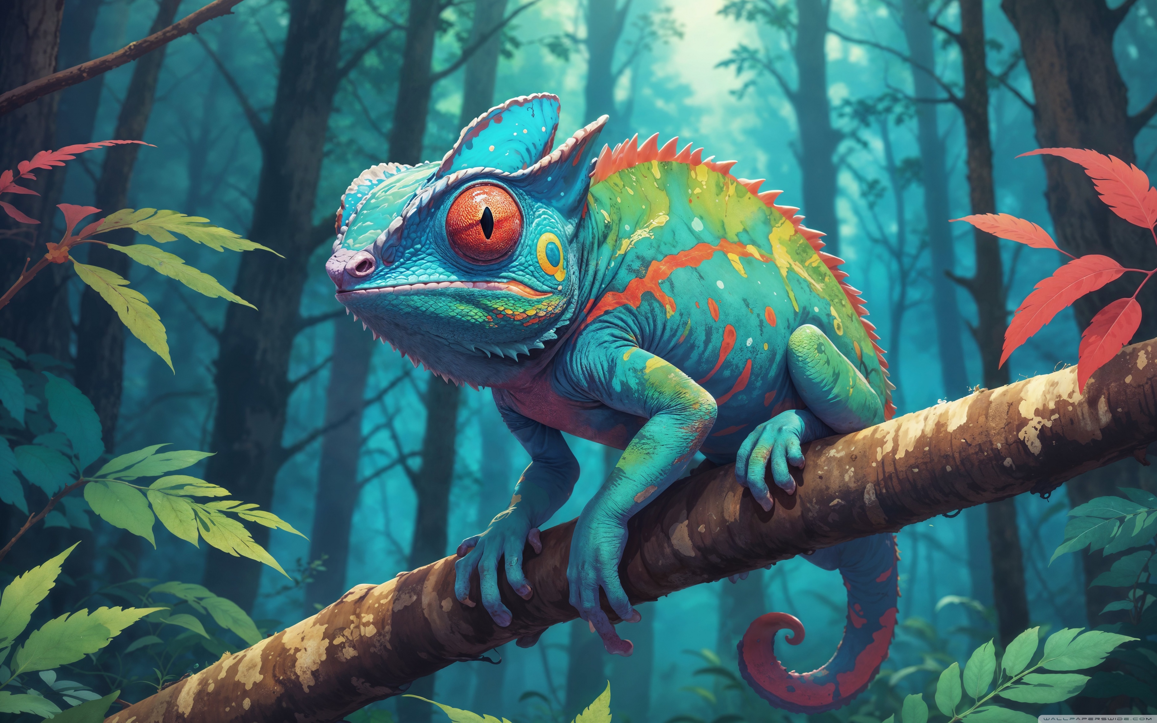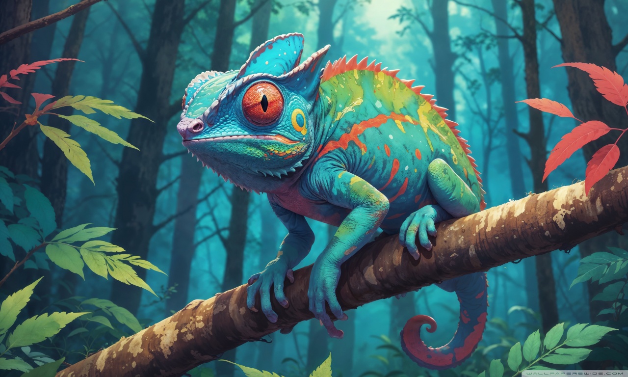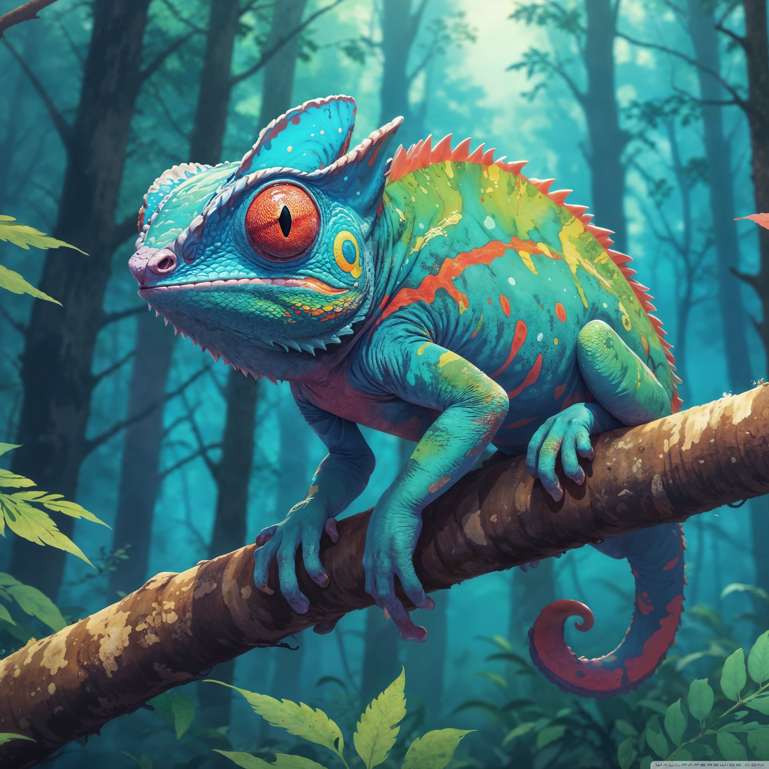 Download Chameleon Wildlife Illustration 4K UHD Wallpaper