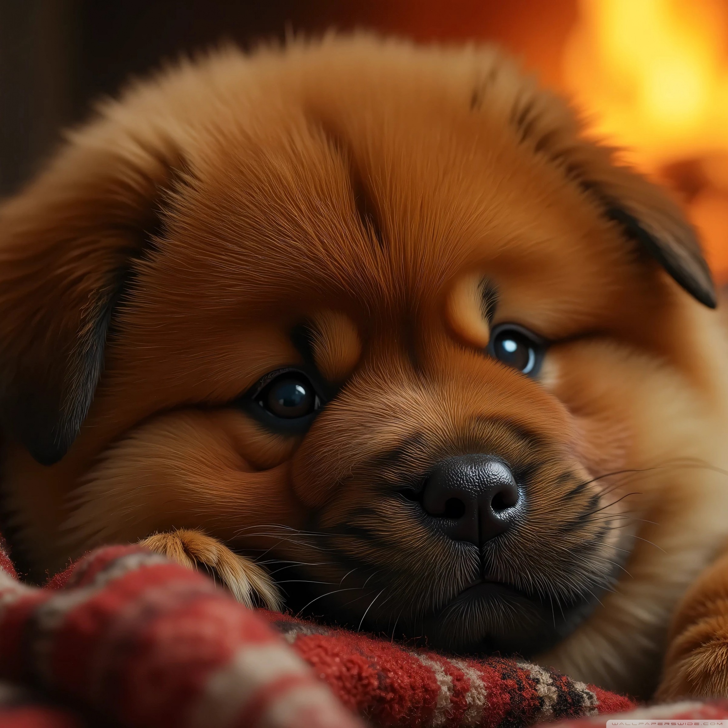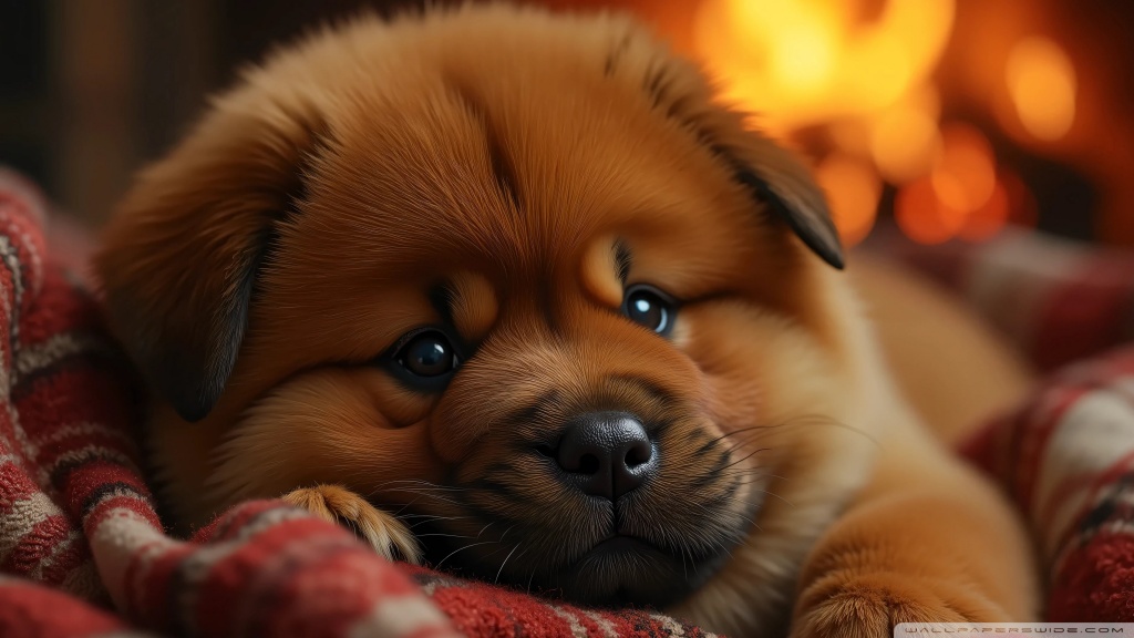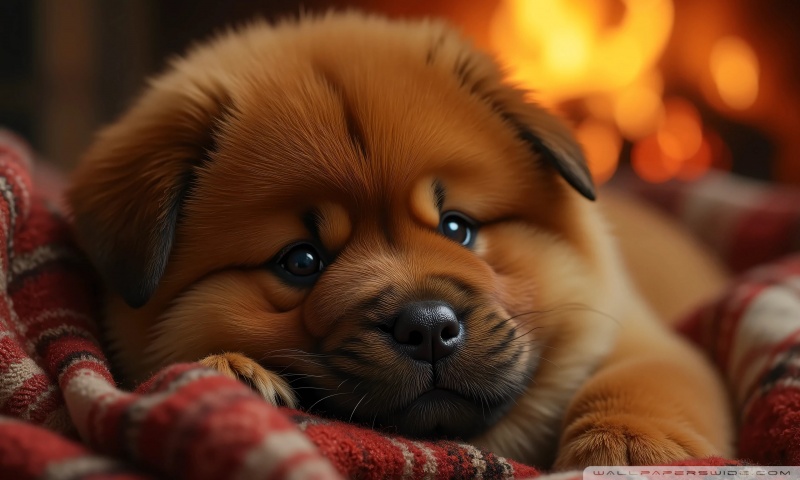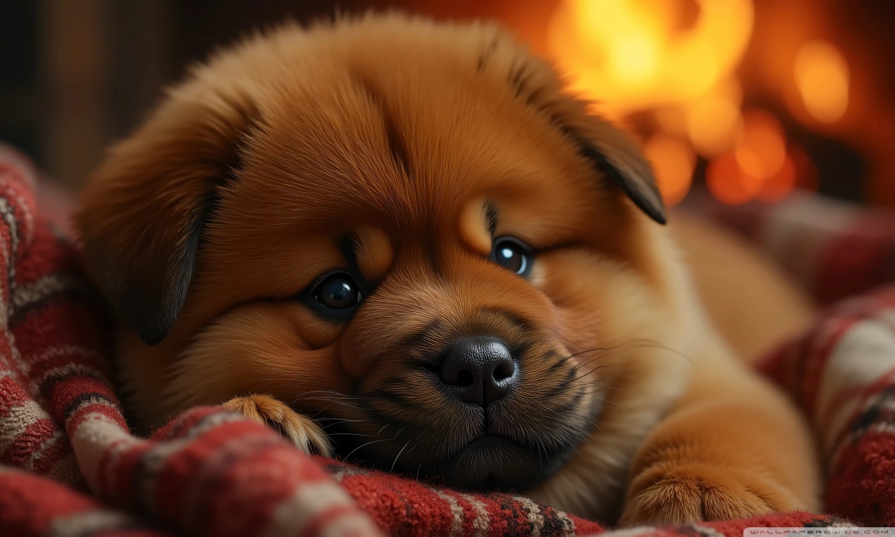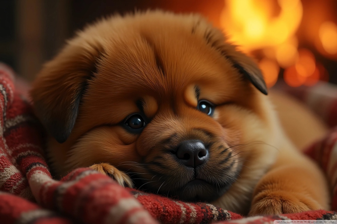 Download Chow Chow Puppy in a Cozy Blanket 4K UHD Wallpaper