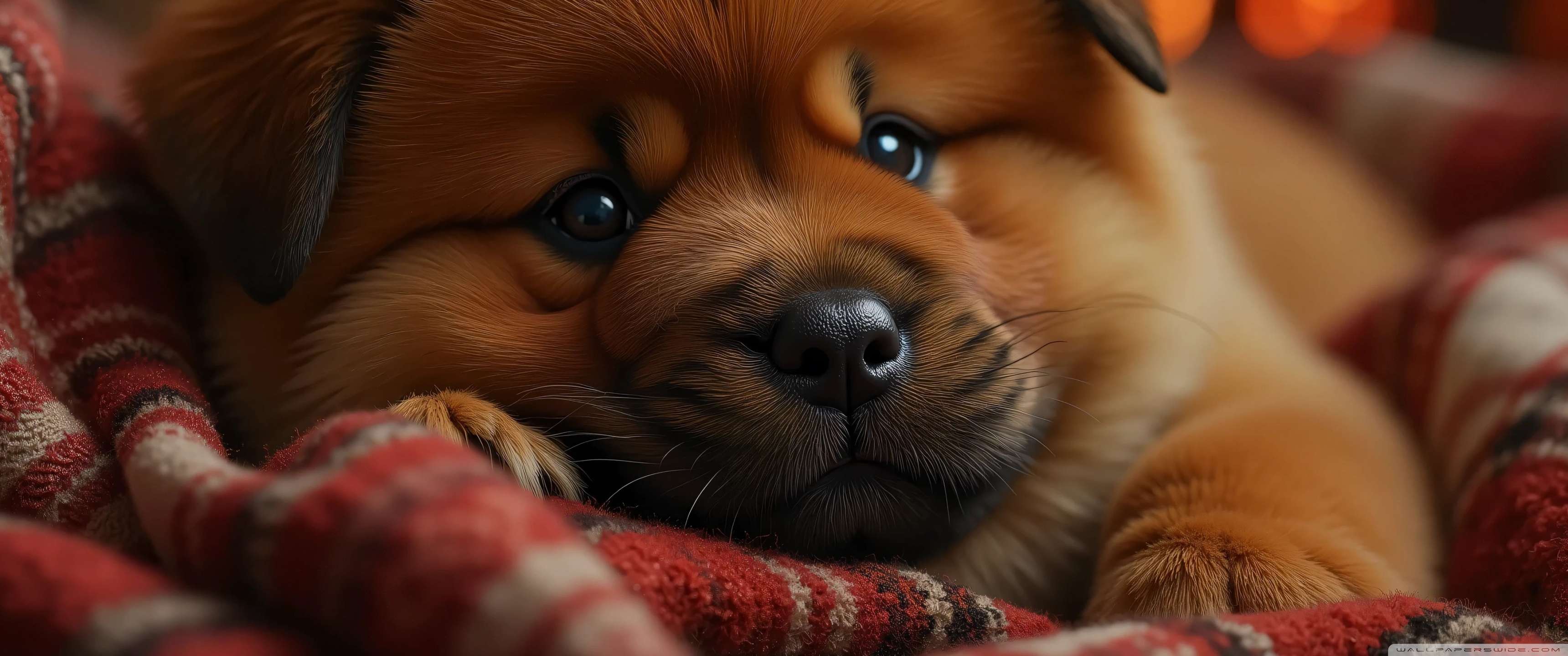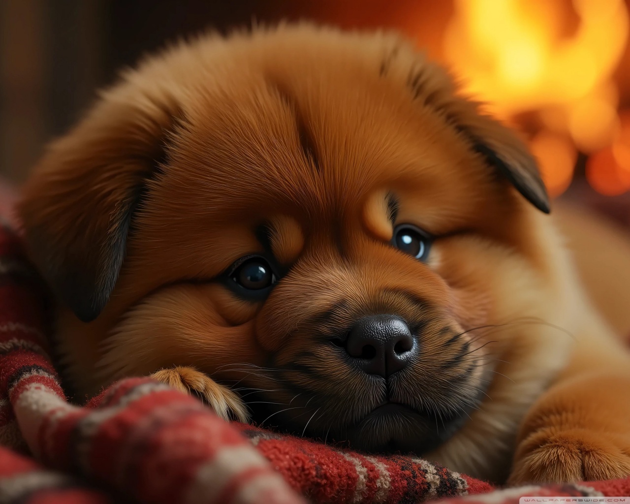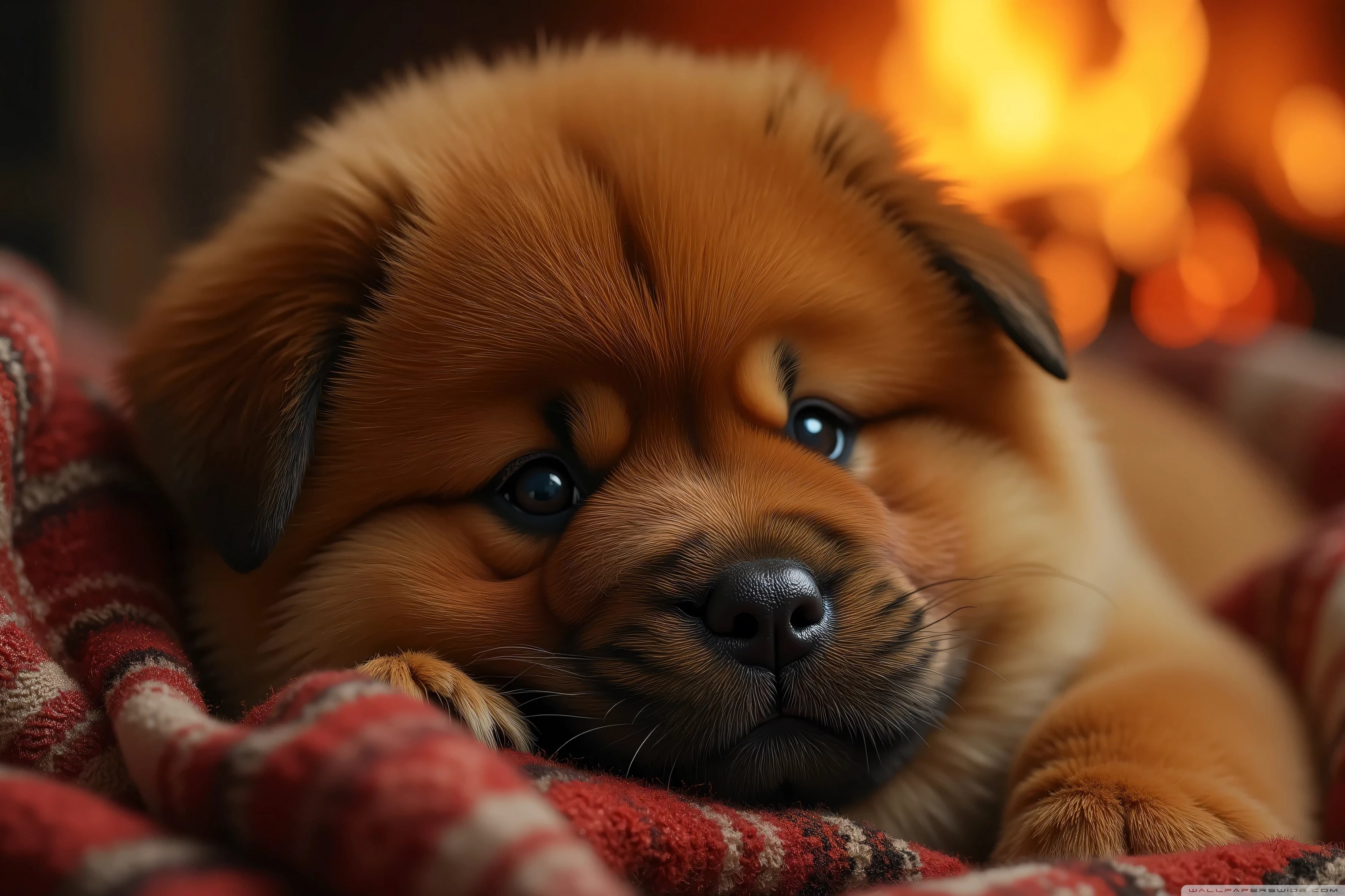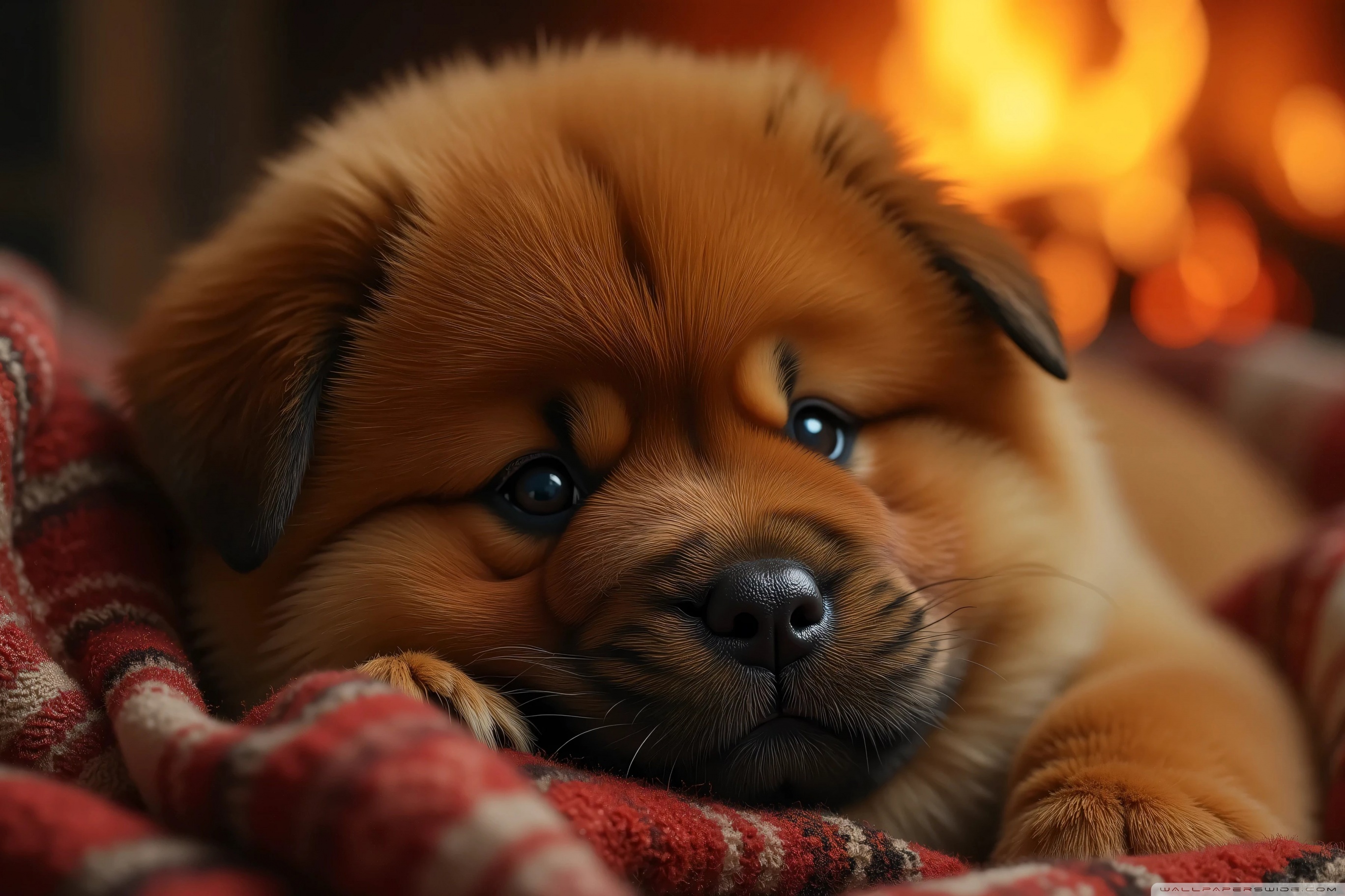 Download Chow Chow Puppy in a Cozy Blanket 4K UHD Wallpaper