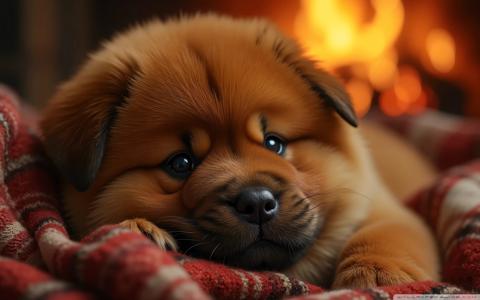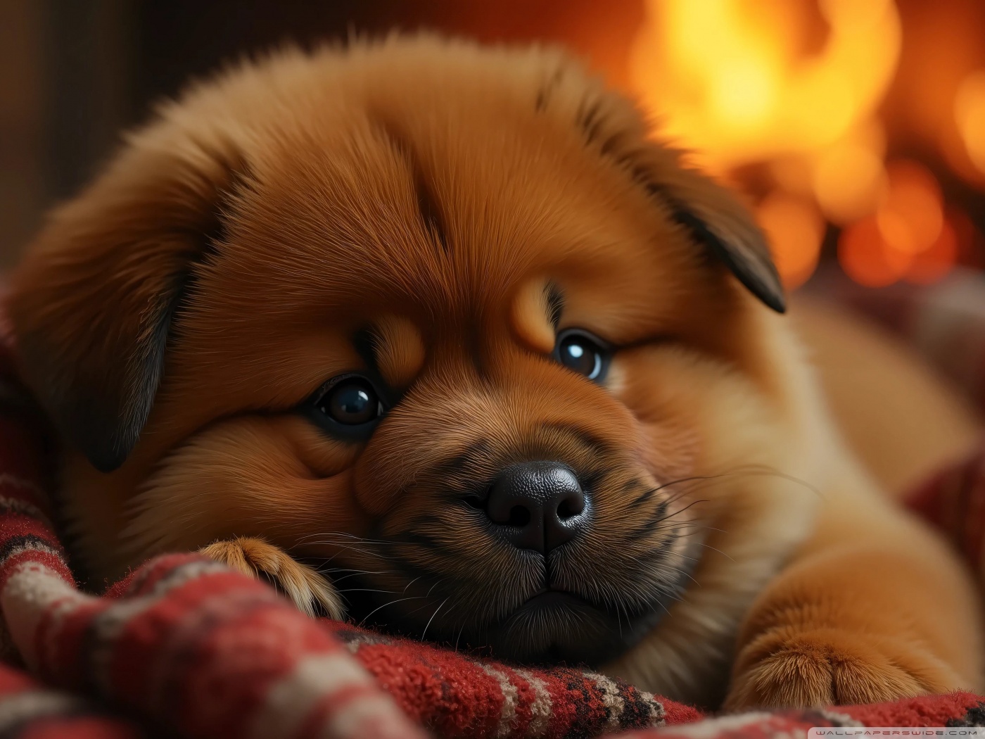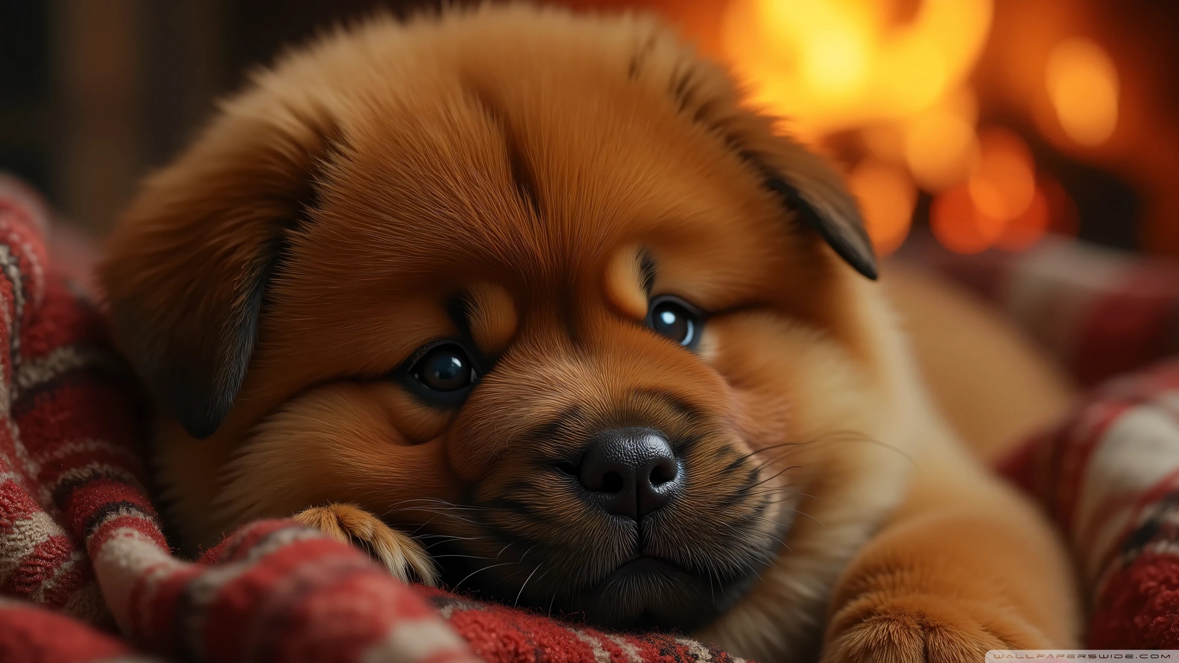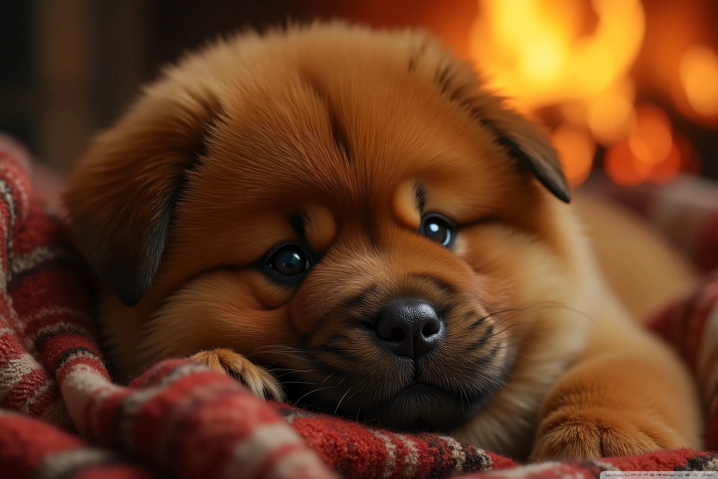 Download Chow Chow Puppy in a Cozy Blanket 4K UHD Wallpaper