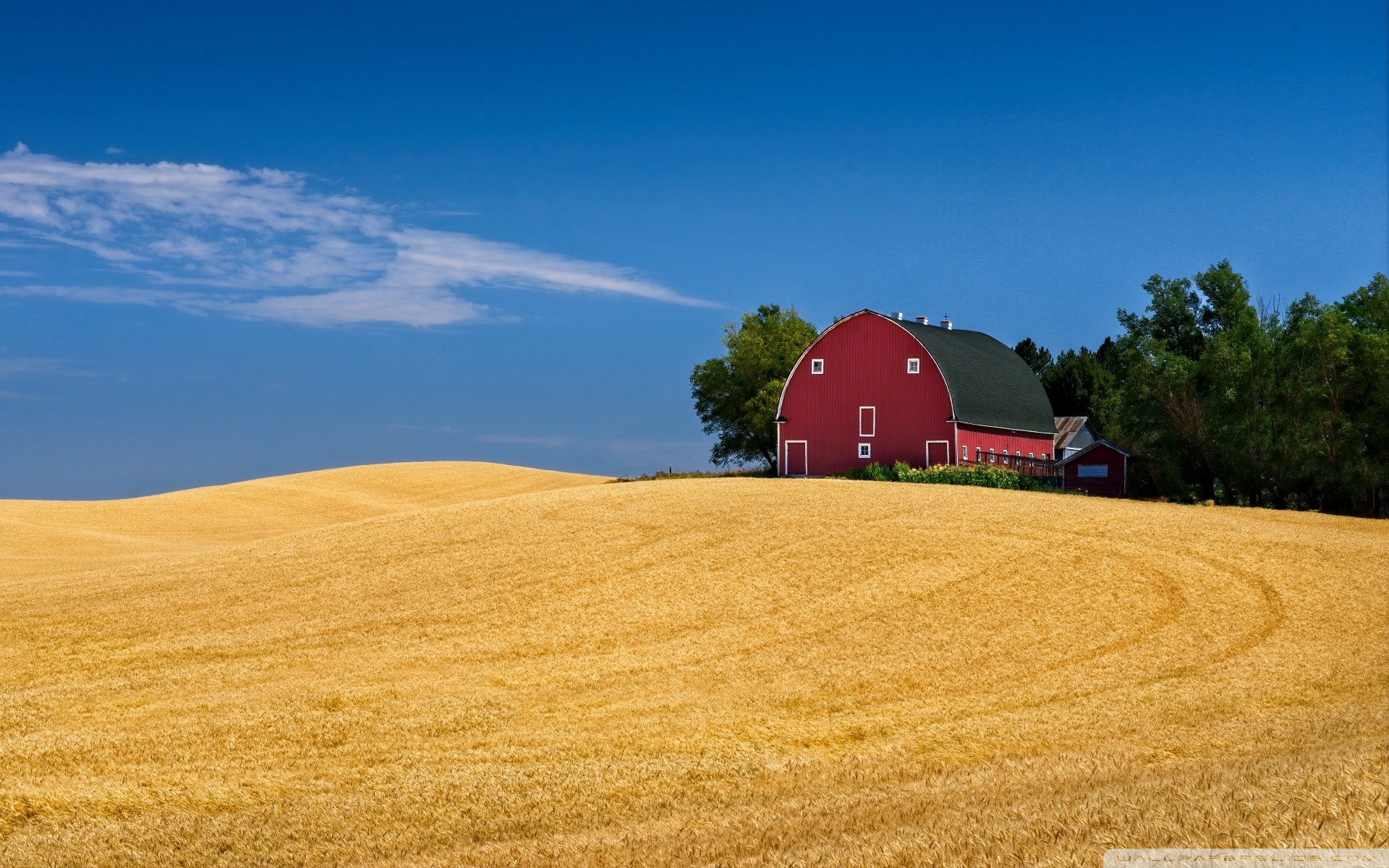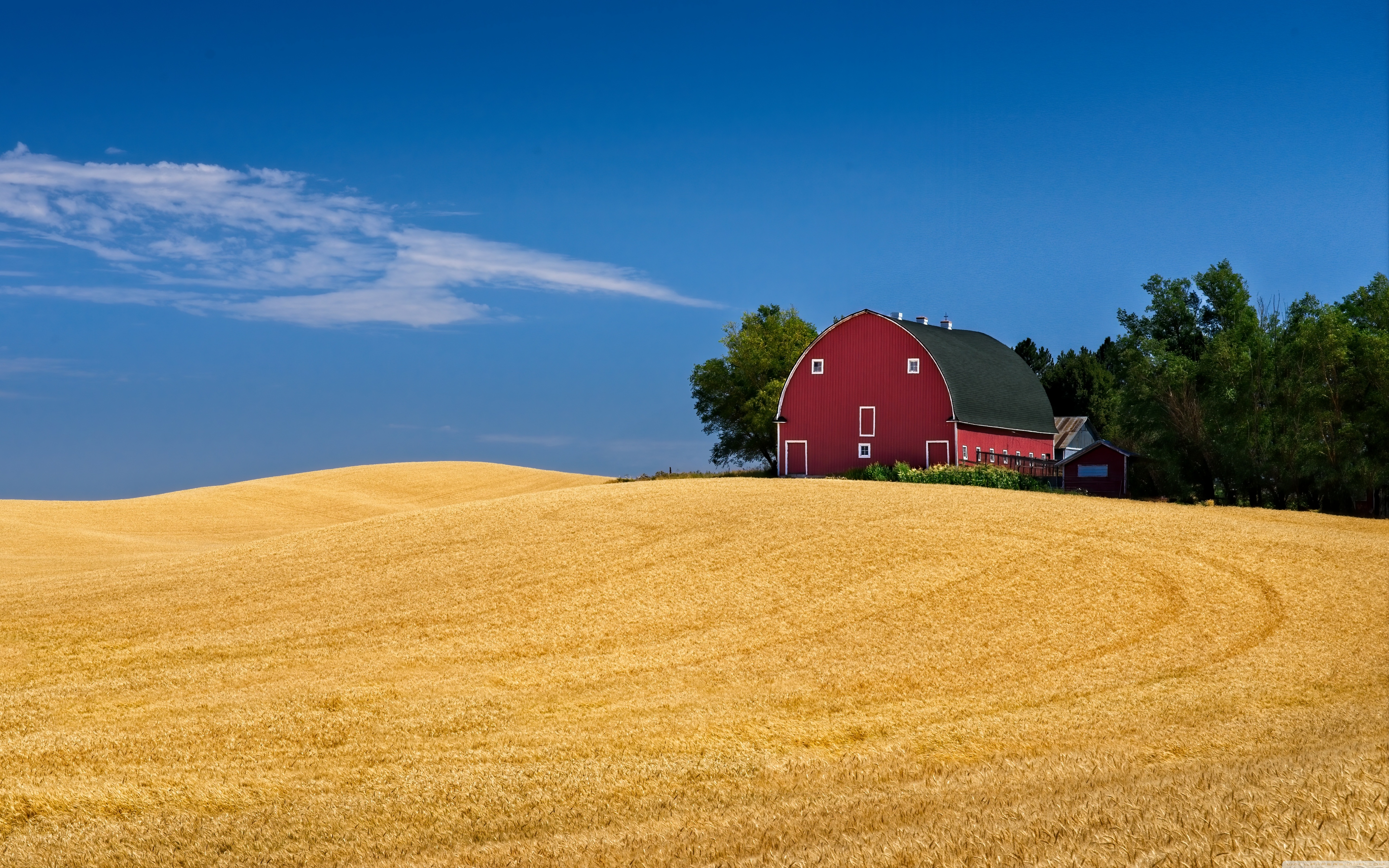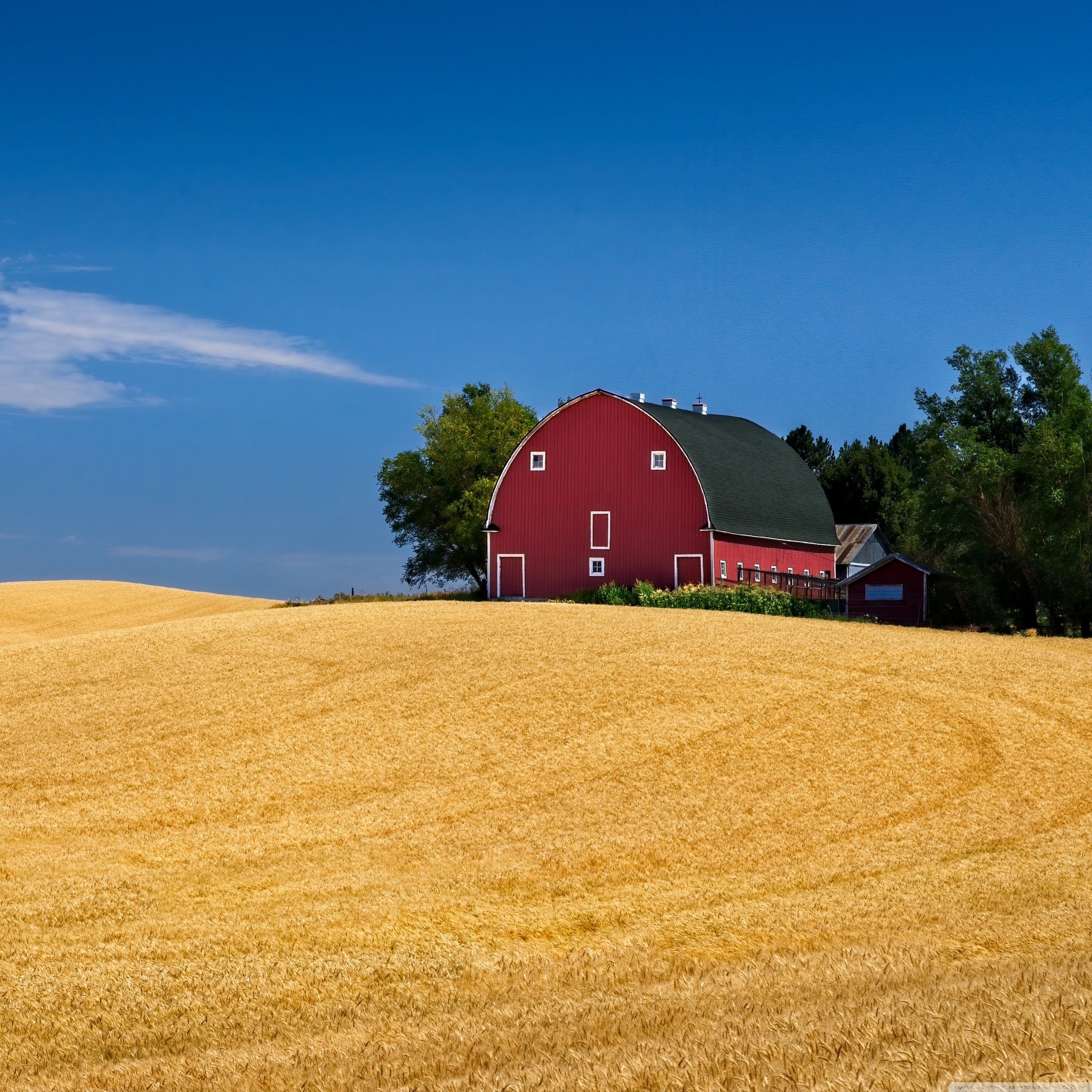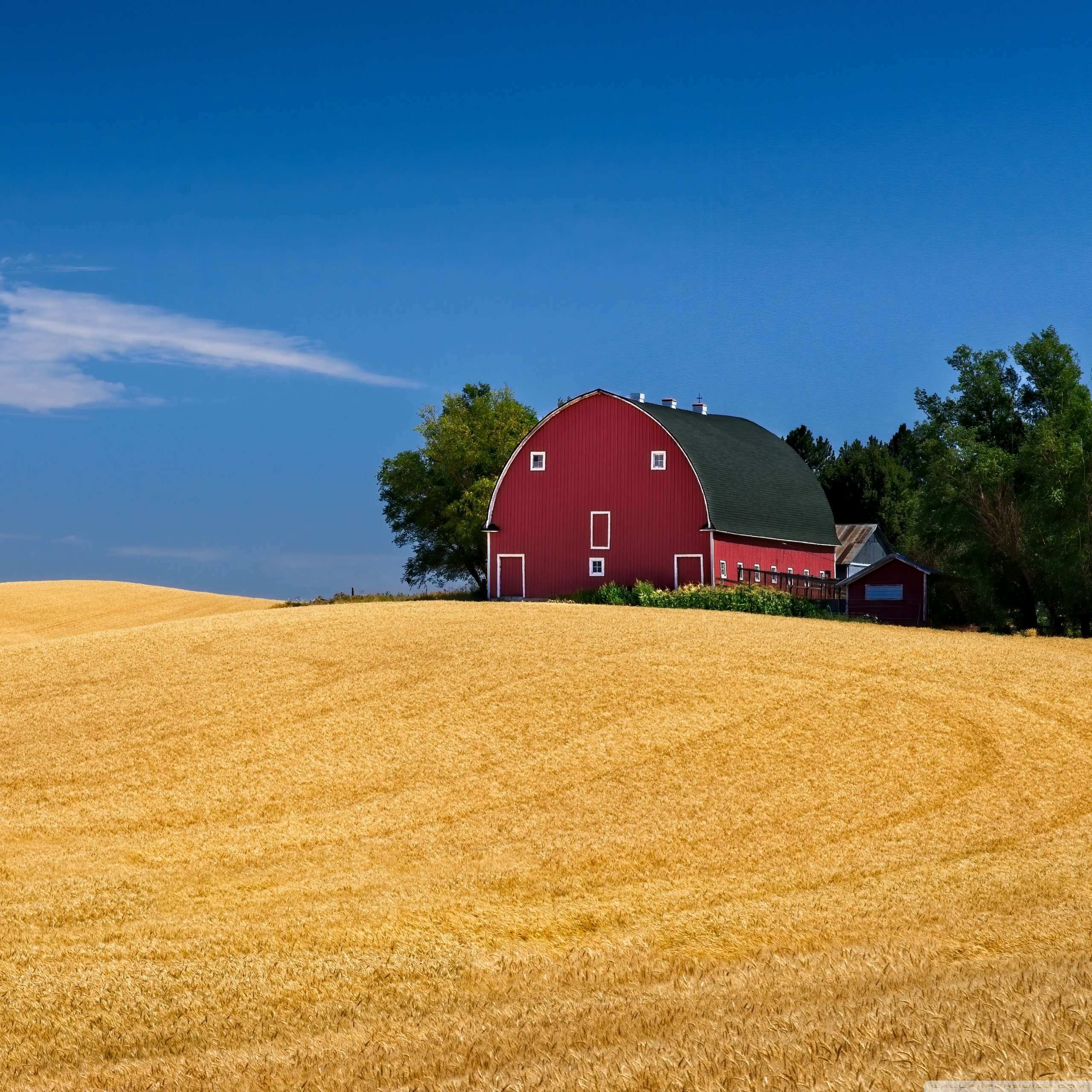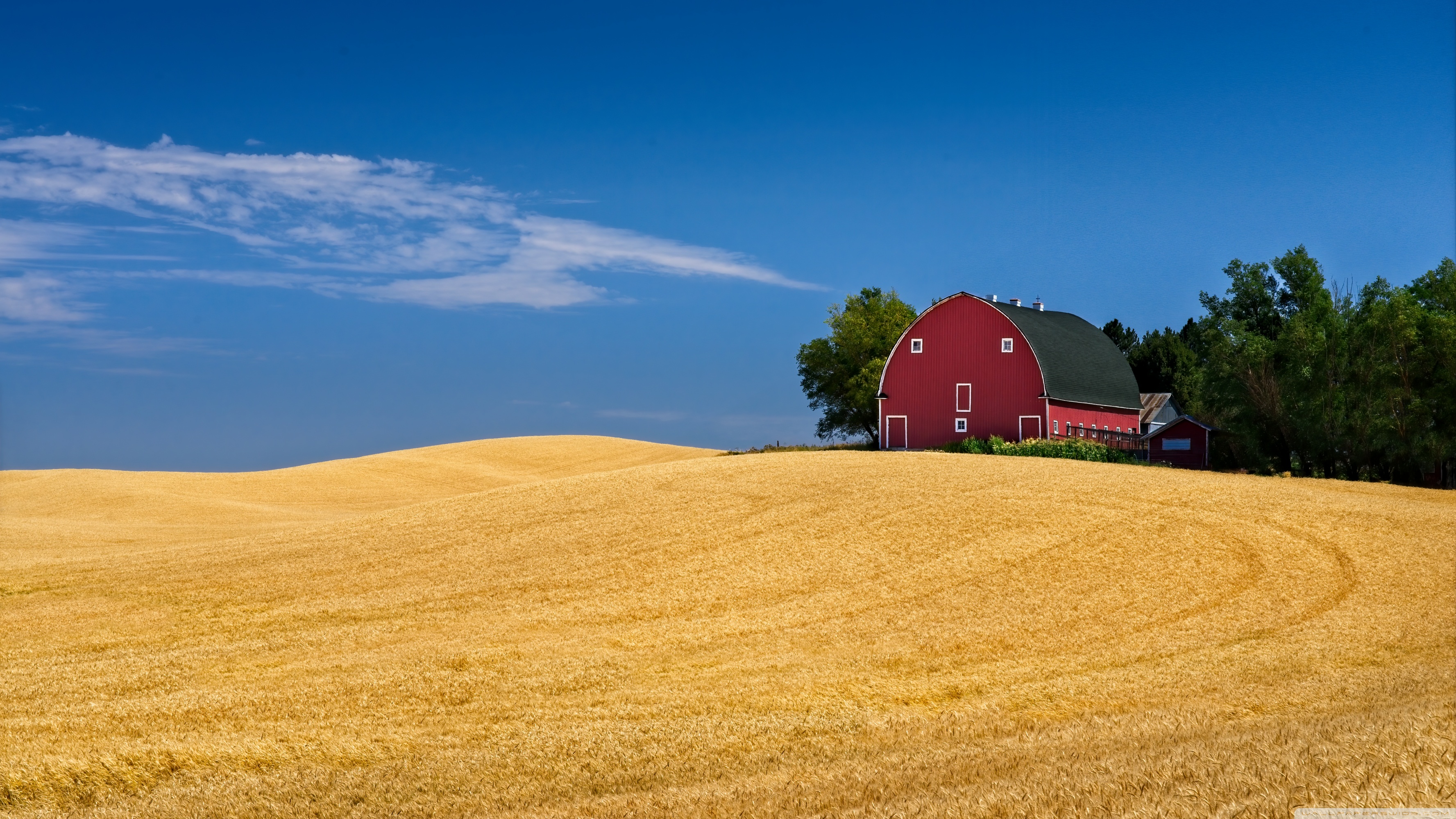 Download Classic American Red Barn in Wheat Field 4K UHD Wallpaper