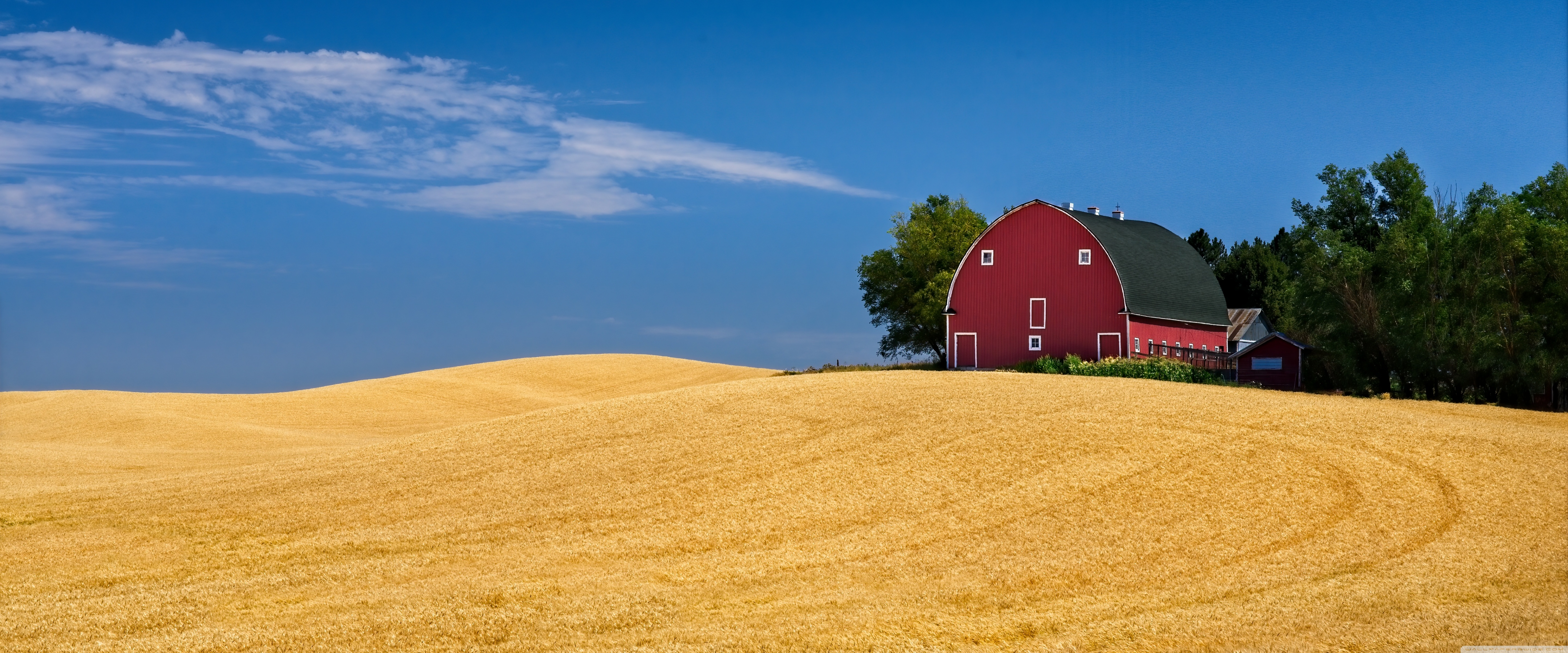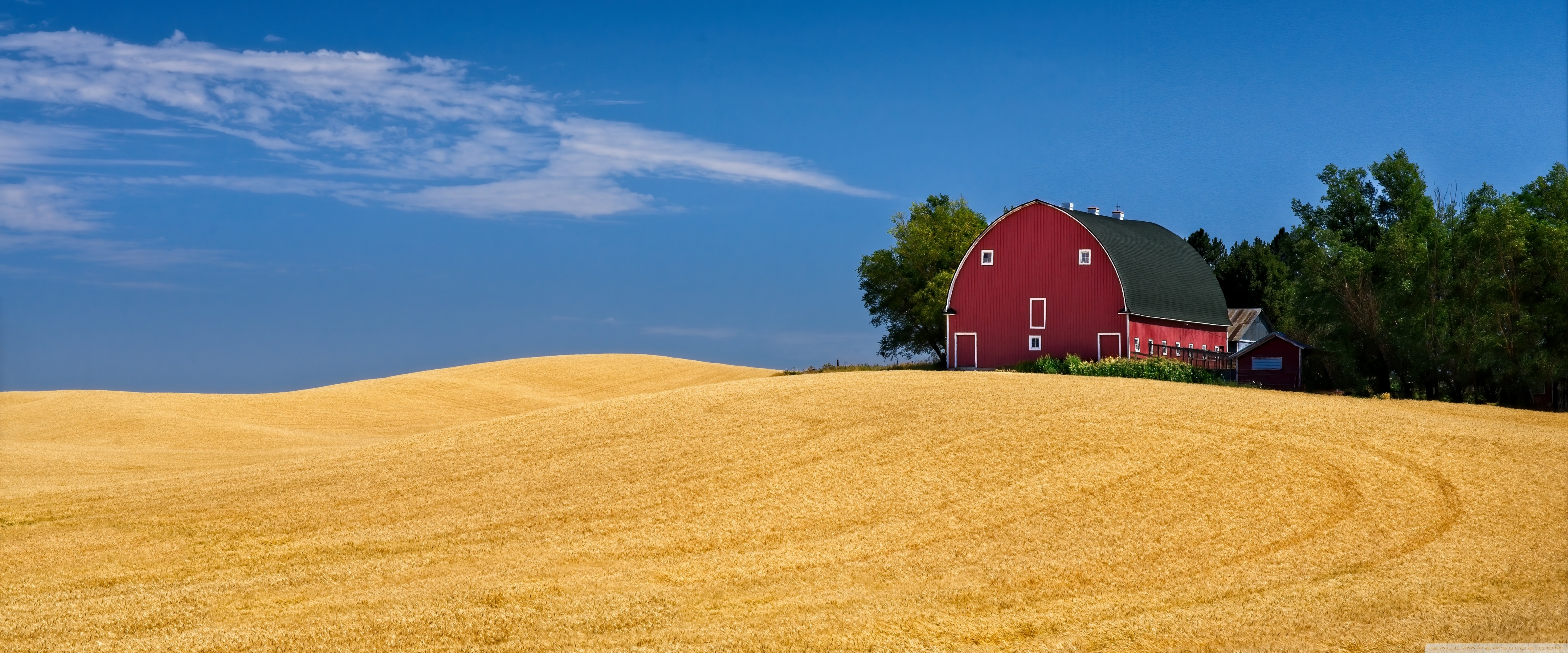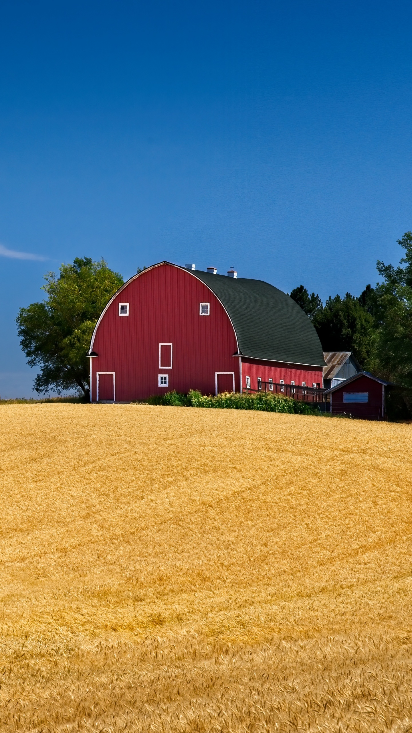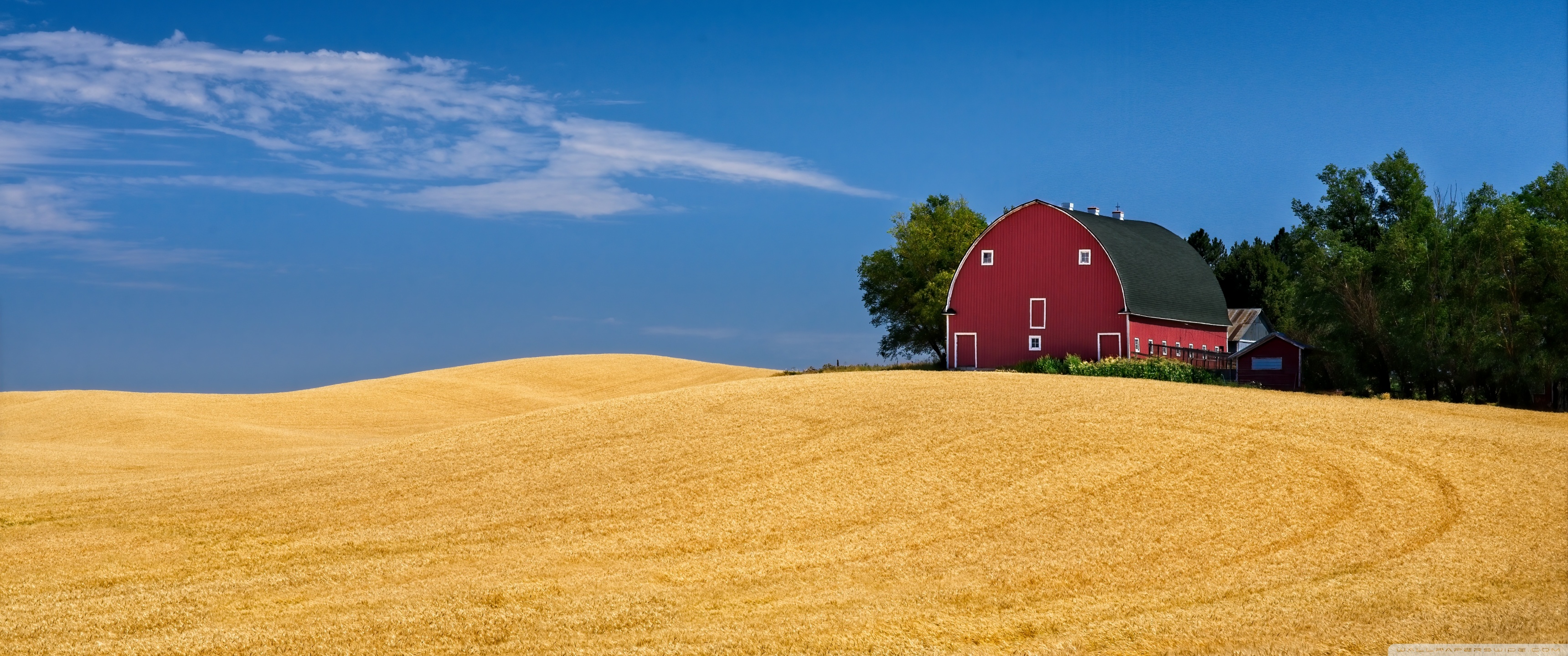 Download Classic American Red Barn in Wheat Field 4K UHD Wallpaper